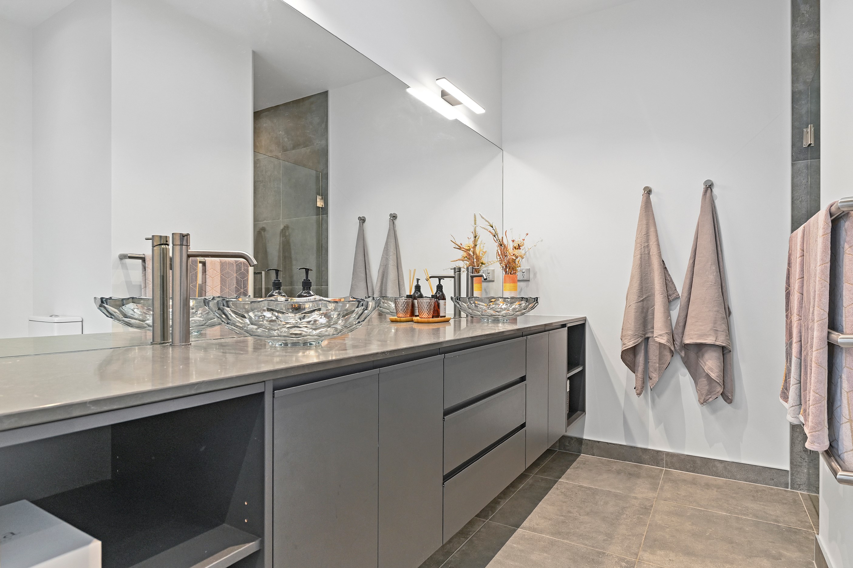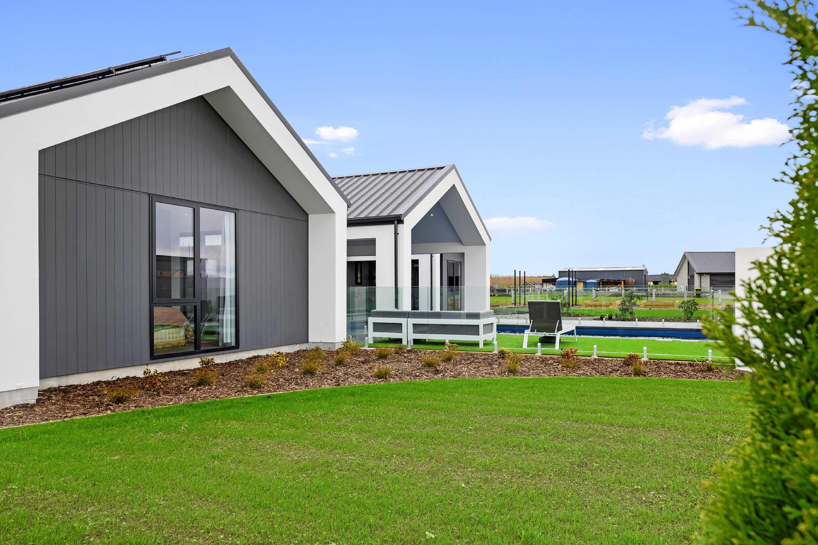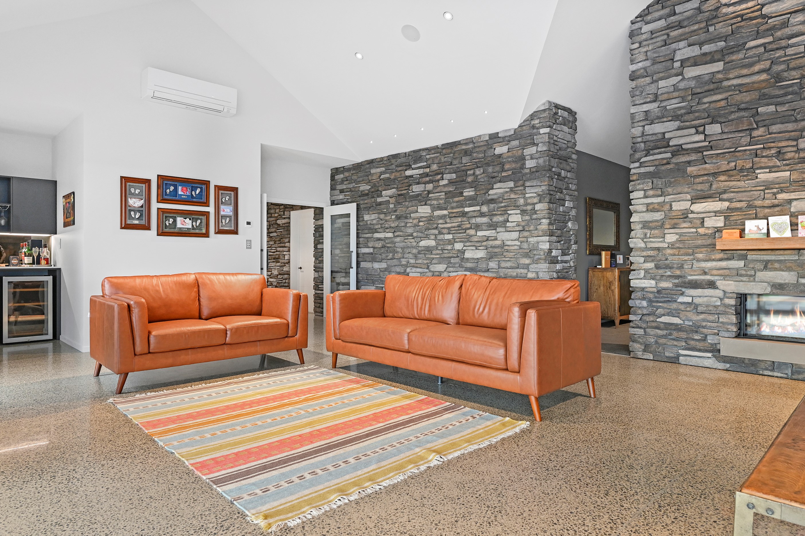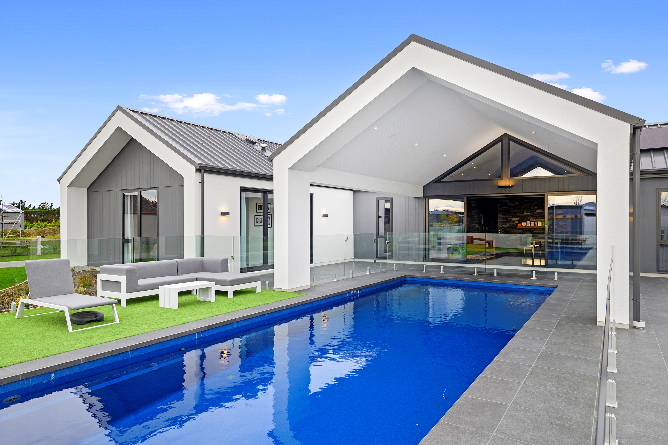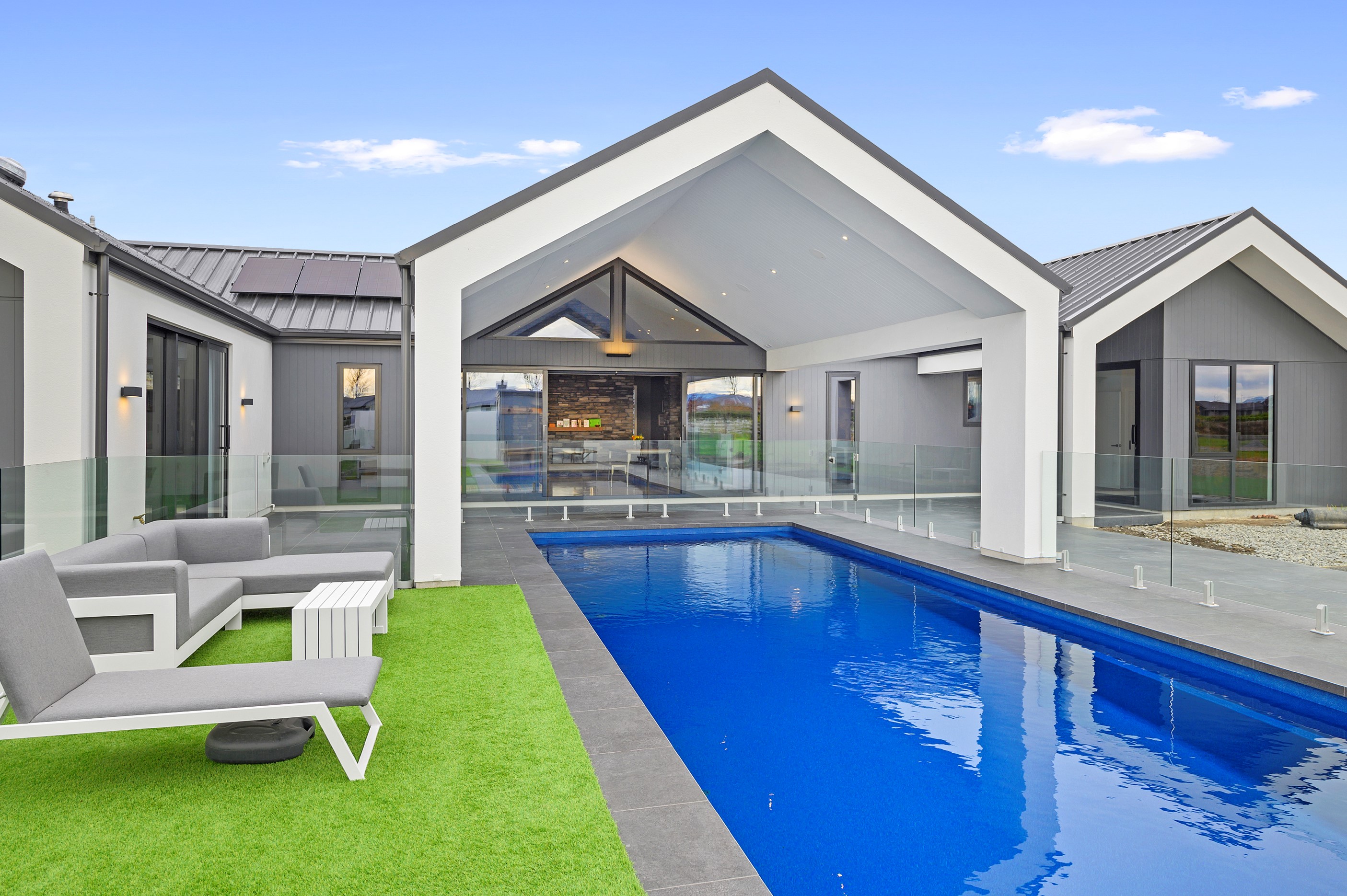 On approach to this bespoke Canterbury home for Mum, Dad and their four boys, the stone veneer wall creates a dramatic entrance. Maintaining the sense of occasion, the towering 2400mm wood-grain plasma door opens up to the extensive interior. Grandeur continues with the stone wall leading to the huge pavilion-style main living area, where stonework rises more than four metres high to meet the ceiling. It wraps all sides of the wall, enclosing a central double-sided gas fire embellished with Cerano hearths and grey ironbark mantelpieces. All this aside, the statement piece is the vaulted ceiling, meeting at the axis of each gable– a complex feat and credit to the building team. Highly polished concrete floors reflect light in the living area, which opens onto an expansive outdoor area – the capacious swimming pool takes centre stage here. Every amenity has been included, with the 361sqm, five-bedroom home featuring a media room and a television room, two bathrooms, powder room and separate toilet. The garage is big enough for a gym. Entertaining has been well considered, with a spacious kitchen and a dedicated bar. For this family home, every possible luxury has been afforded.