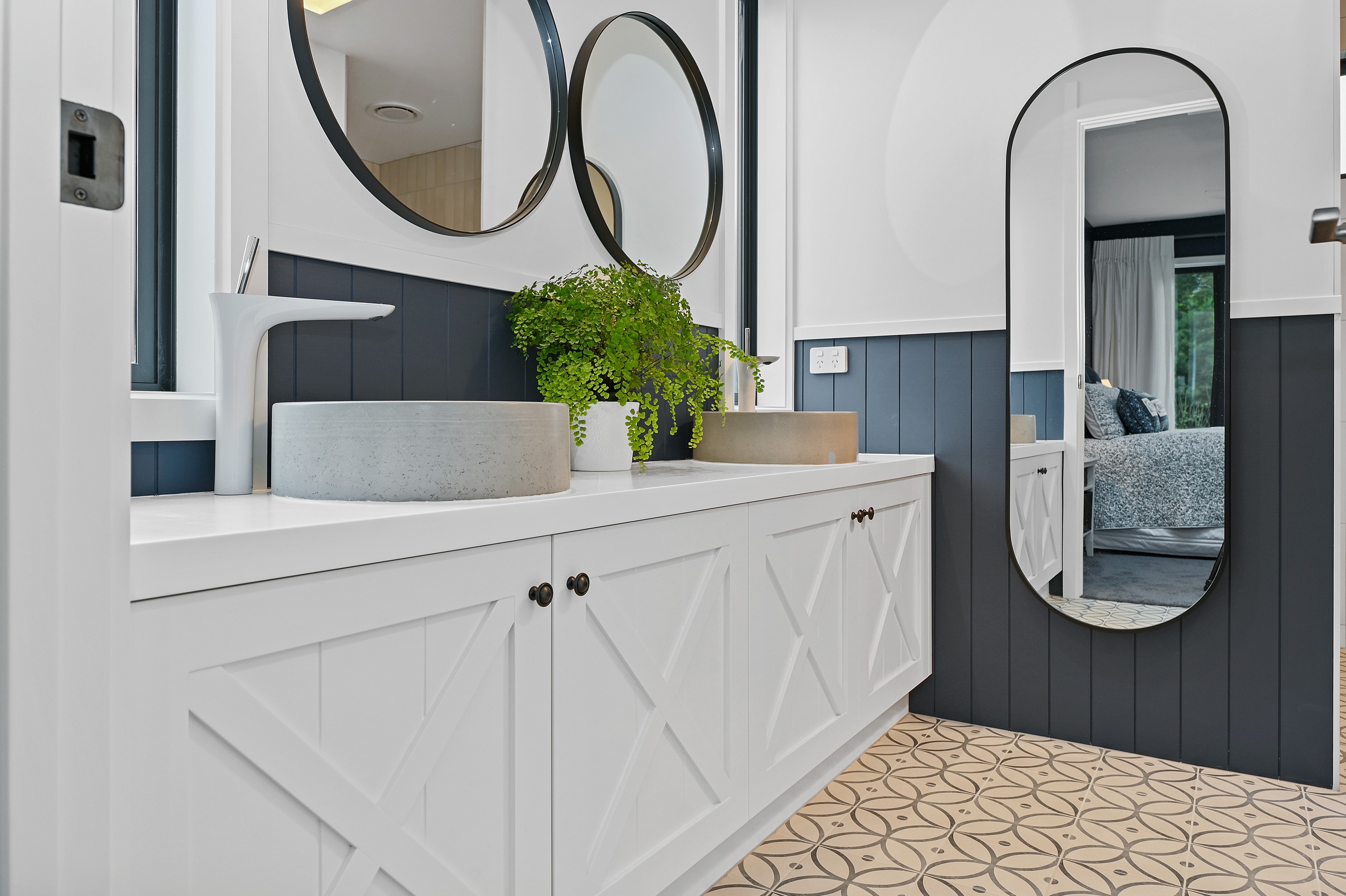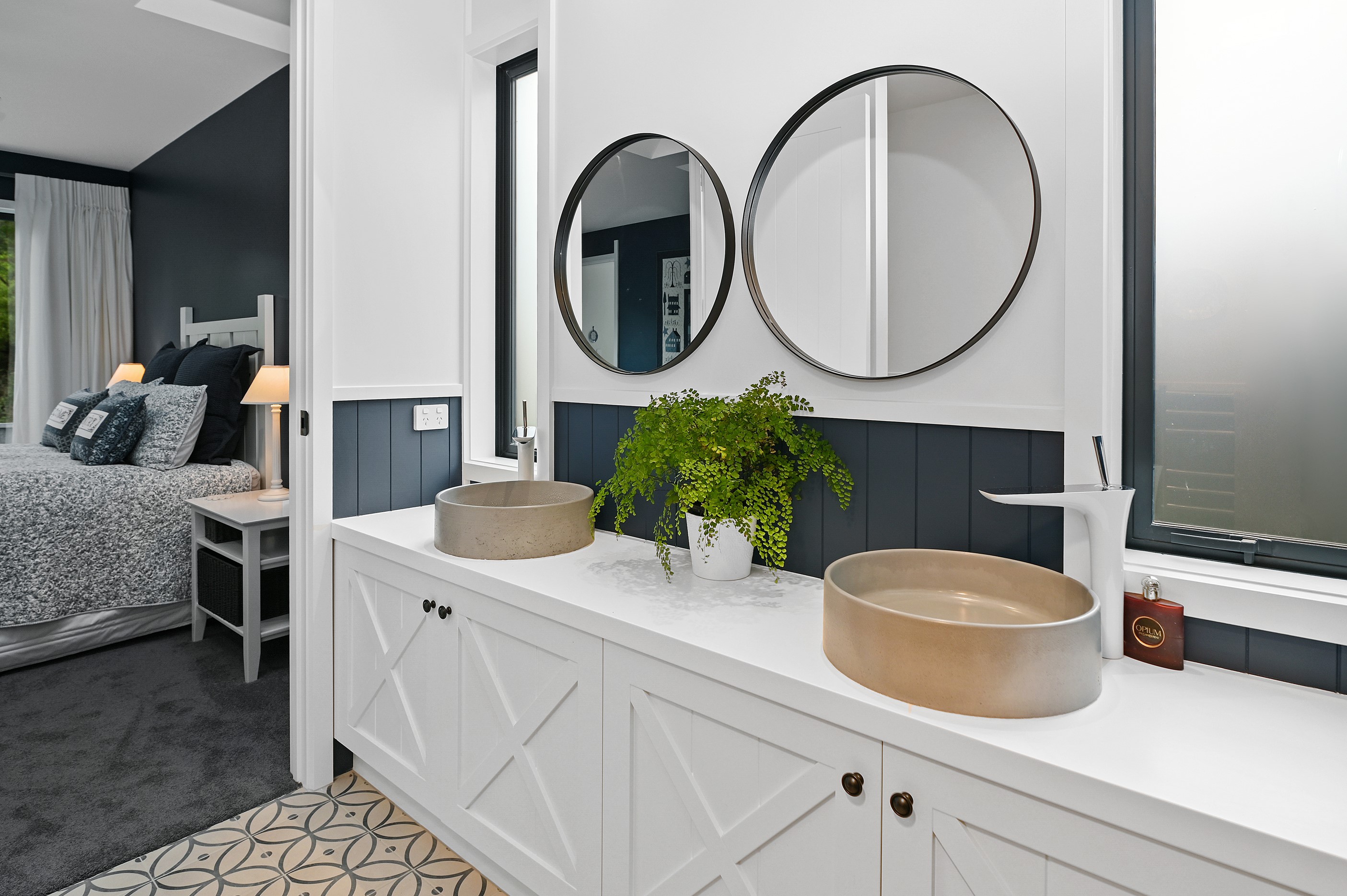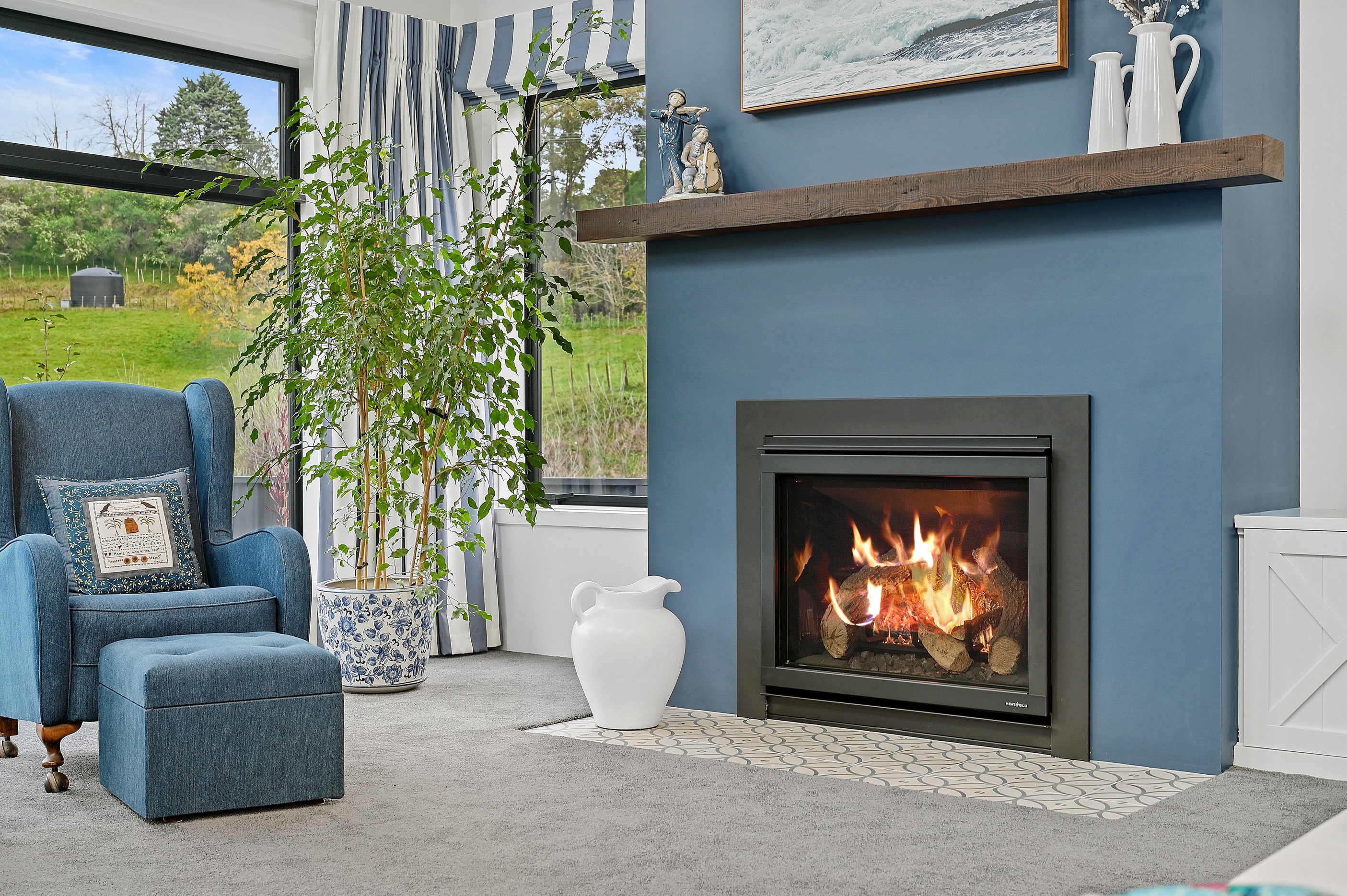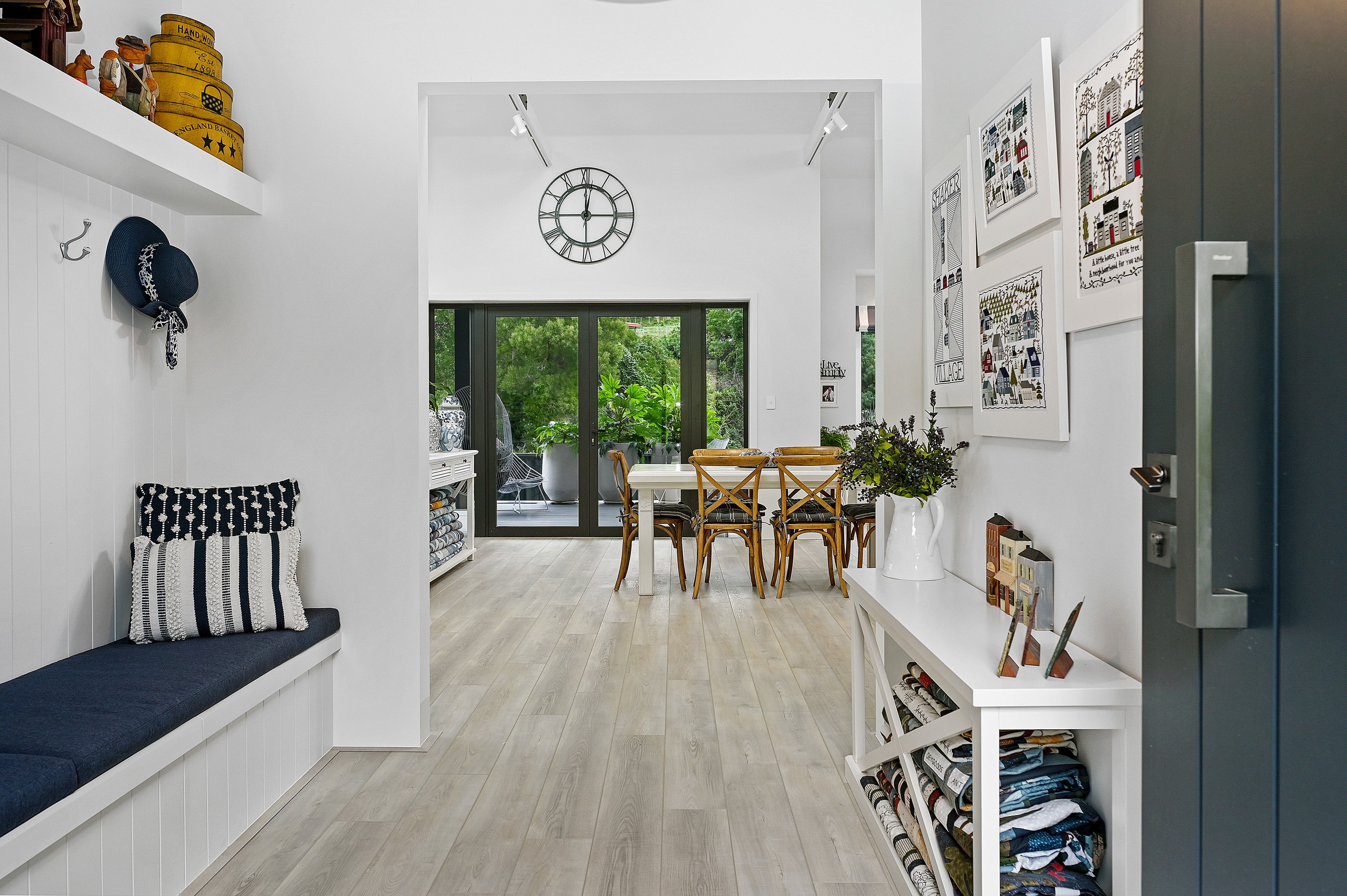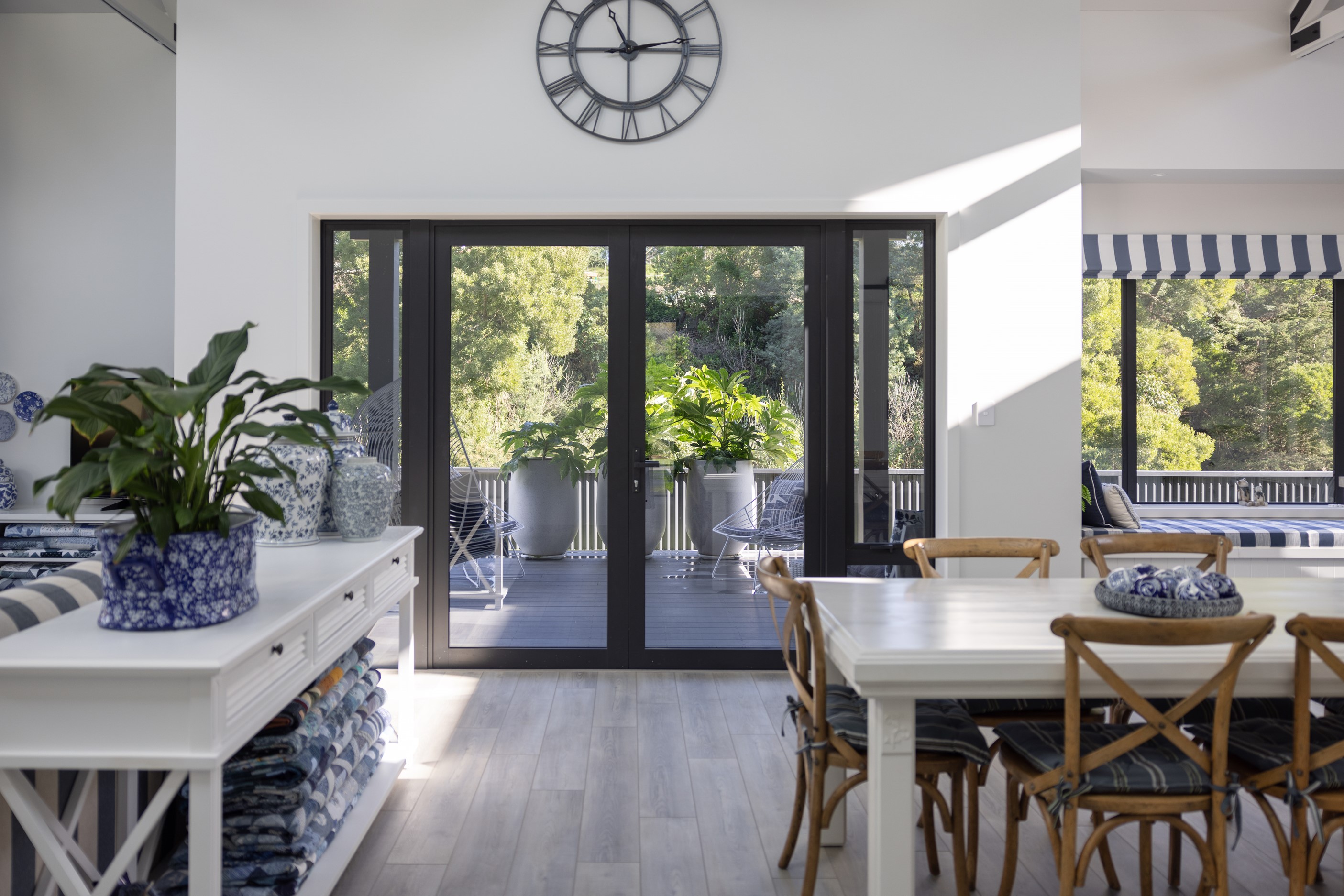 Nestled amid bush-clad hills, this Havelock North home provides a lovely place to dwell, linger and connect with friends and family. Slate blue-grey cladding, charcoal joinery and corrugated roofing lend understated elegance to the exterior. This is enhanced by rock work, landscaping and sculptures placed on the front lawn. Step inside, and the two-bedroom 194sqm home is light, bright and airy. Vaulted ceilings, clerestory windows, skylights and expanses of glazing usher in an abundance of natural light. The palette of white walls and ceilings, blue feature walls, grey carpet and timber floors is a natural and neutral offering. The open-plan design combines the kitchen, dining and living spaces, all of which are crowned by a lofty ceiling with exposed trusses. In the kitchen, stone benchtops and a sizeable island provide the cook with plenty of workspace, as well as the ability to connect with guests and the views. A window seat is a great place for friends to relax. Roof windows illuminate the main bedroom, which boasts a generous walk-in wardrobe and ensuite with a tiled shower. Lingering in this stylish home is a pleasure.