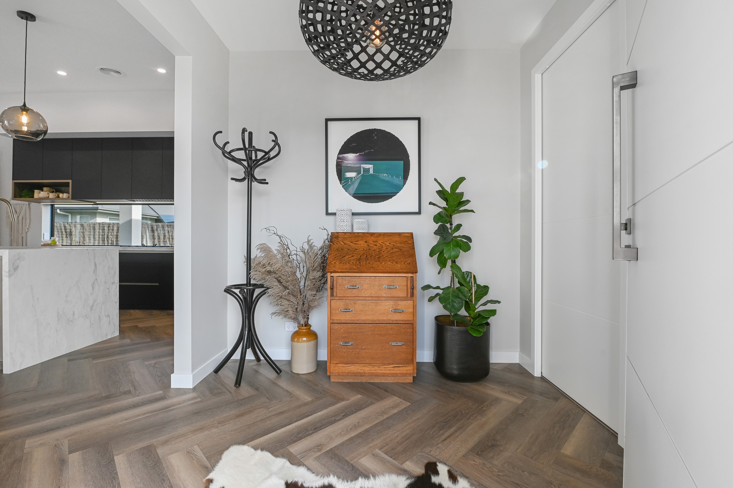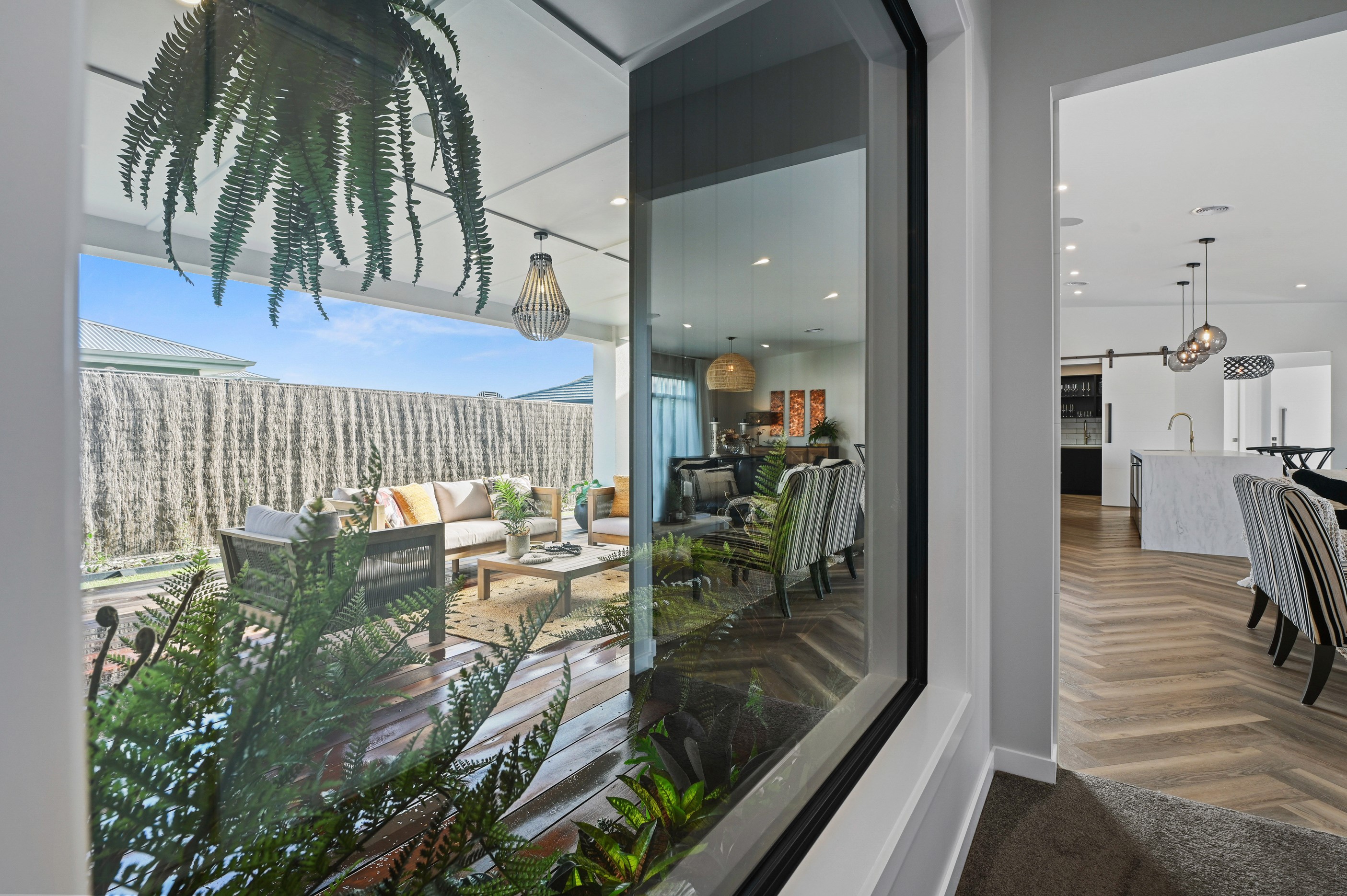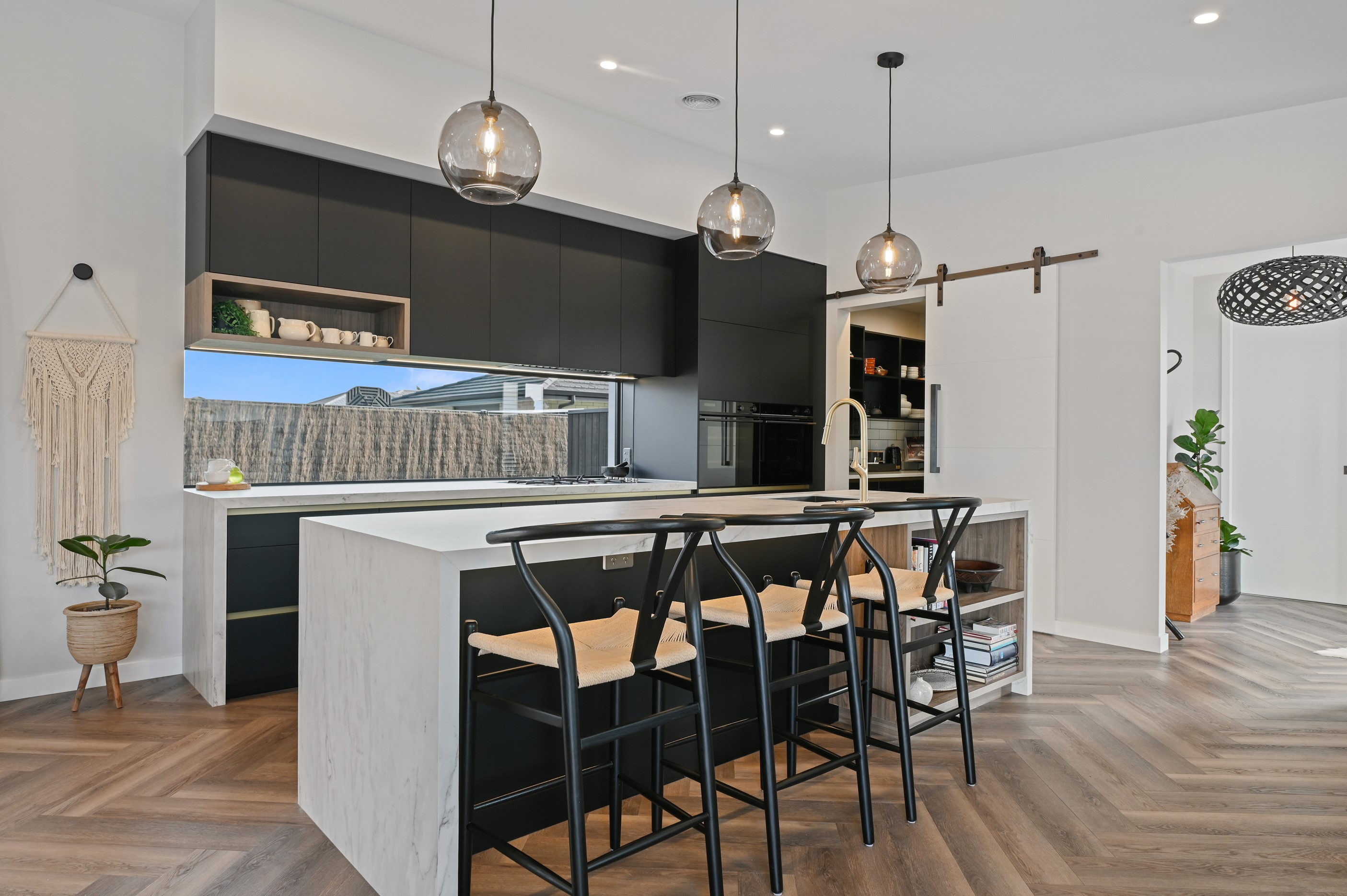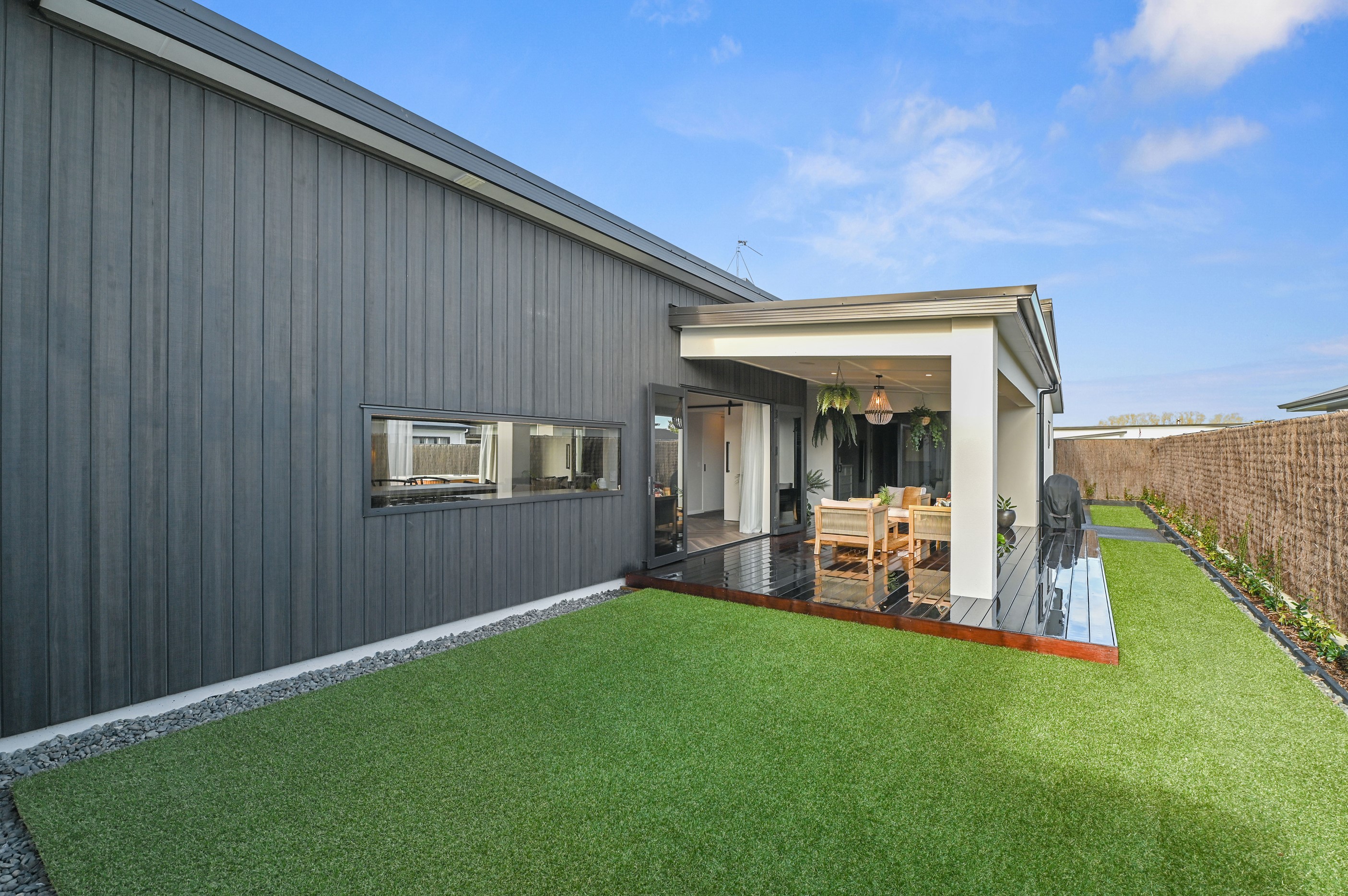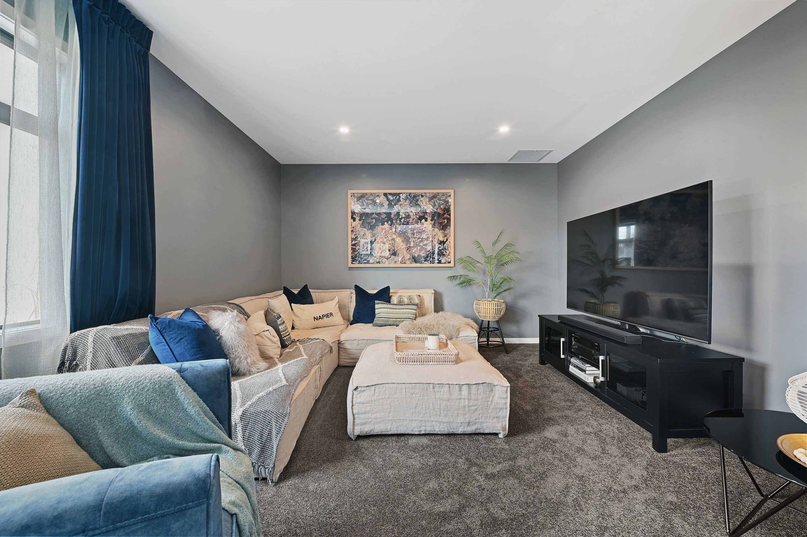 In this house, the lines between indoors and out have been blurred beautifully. The kitchen, dining and living areas open to decks on both sides of the 255sqm home. On one side there’s a patio with a spa pool; on the other, a portico with everything needed for alfresco dining and relaxing. It’s seamless. This is Gearey Homes’ second build for the owners, who are now empty nesters. They wanted open-plan living and indoor-outdoor flow radiating from a large kitchen. These spaces are beautifully presented with herringbone flooring, and are designed for entertaining. Four bedrooms and two bathrooms make this house ideal for visiting friends and family. You’ll also find a media lounge behind barn-style doors. This house is warm, too. With a ducted heat pump, air-conditioning and gas fire, temperatures are constant and comfortable. The clients enjoy travelling and wanted a place they could lock up and leave. What could be more easy-care than hardwood decking, and plaster and stained timber cladding with cavity systems? The building team is rightly proud of the quality and workmanship throughout the Hawke’s Bay residence, which provides the owners everything they need.