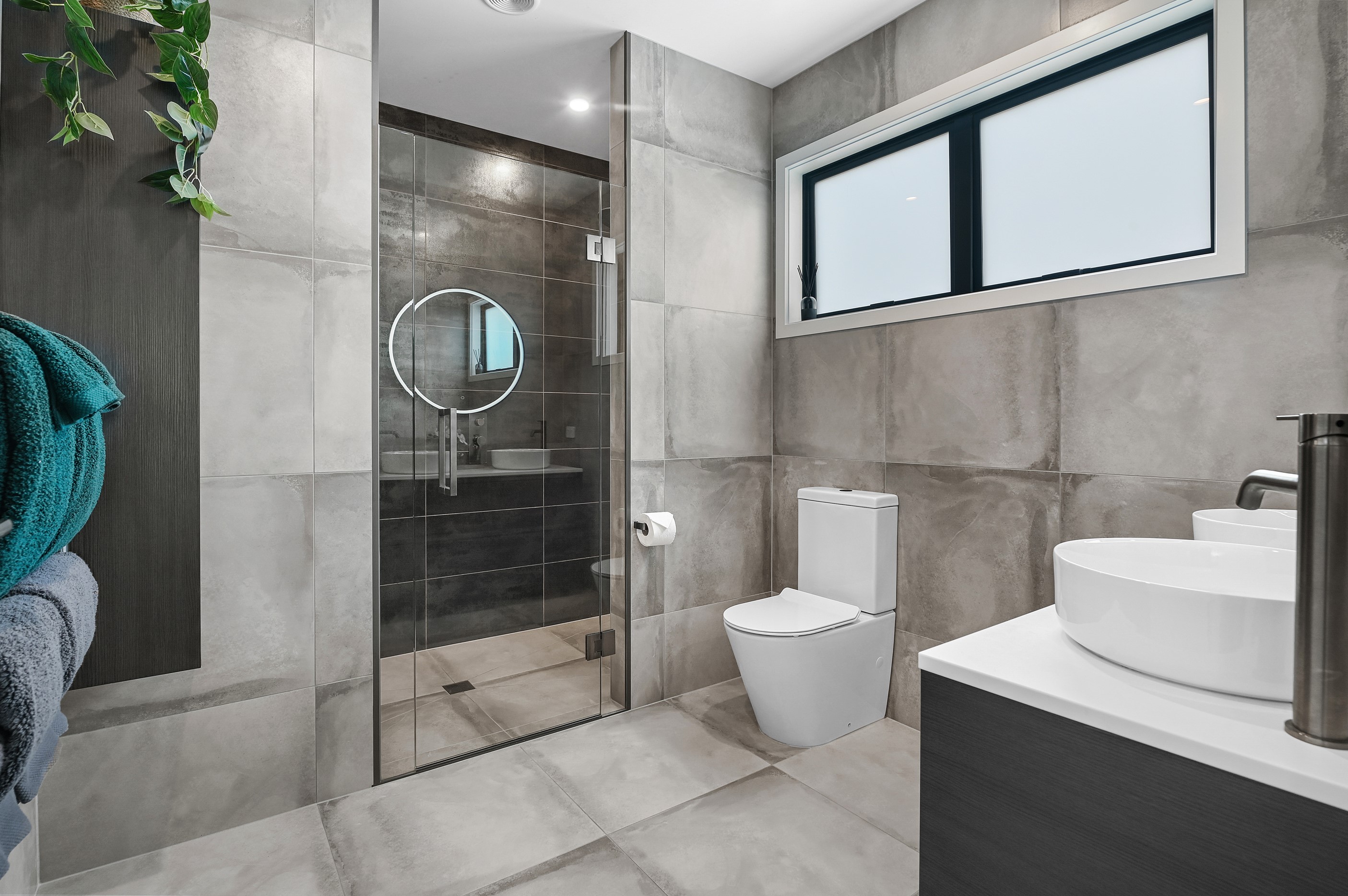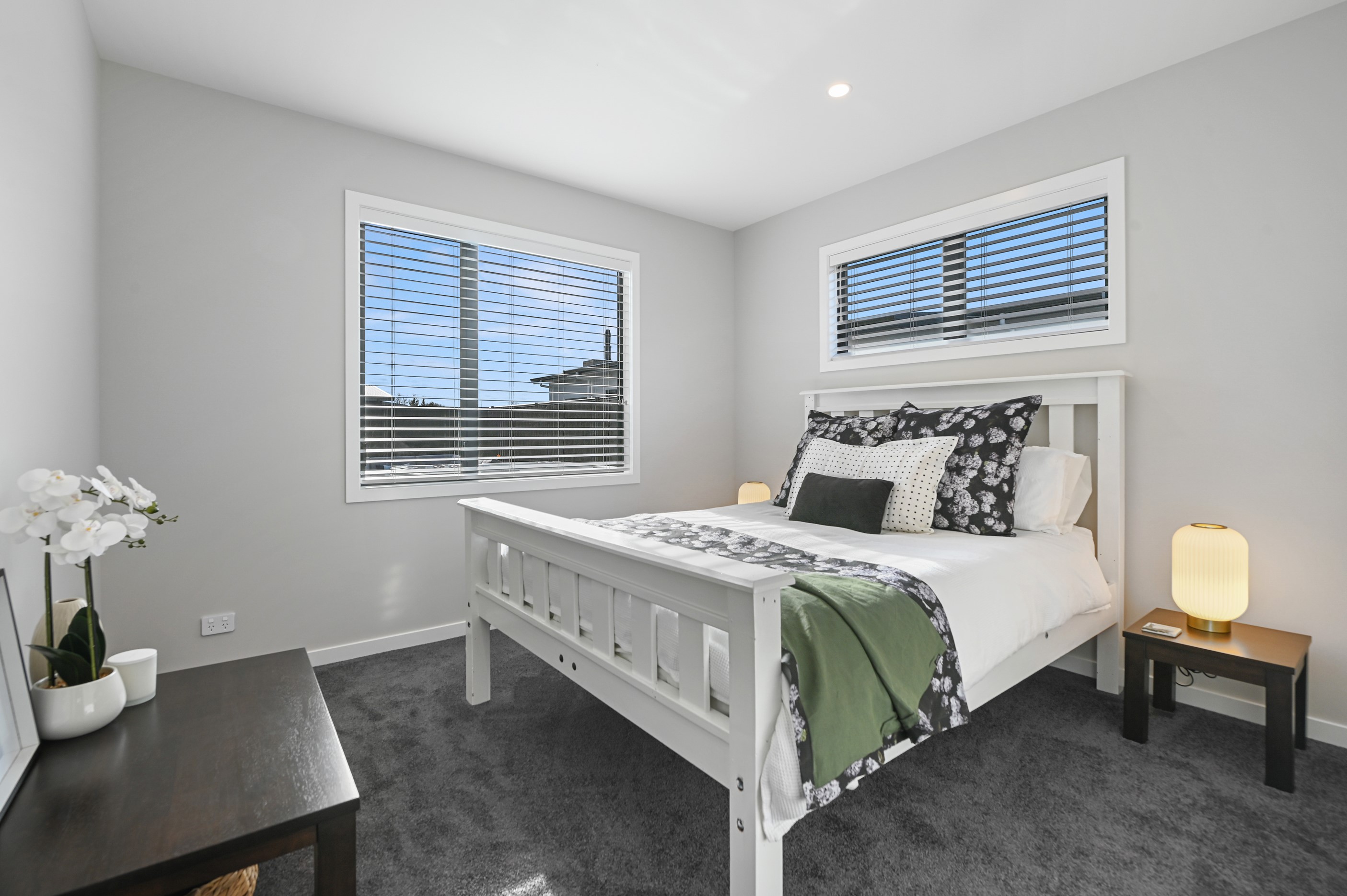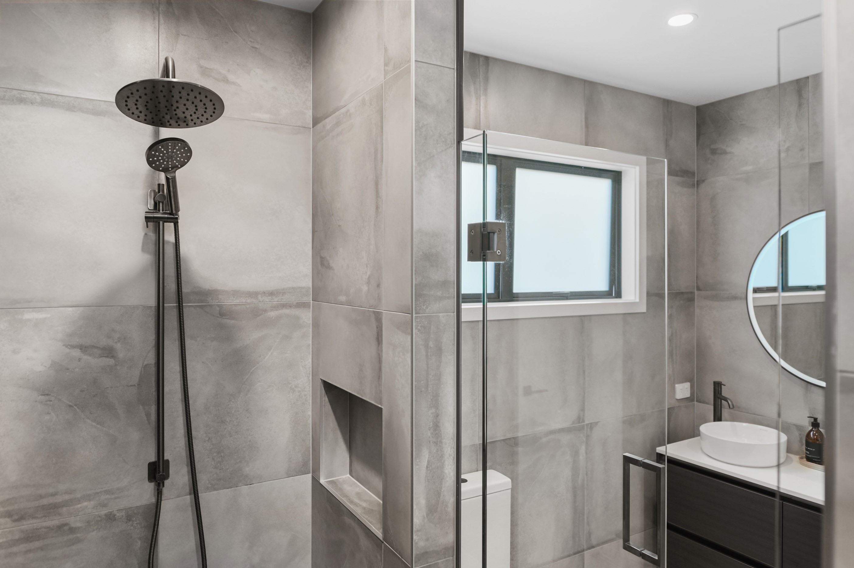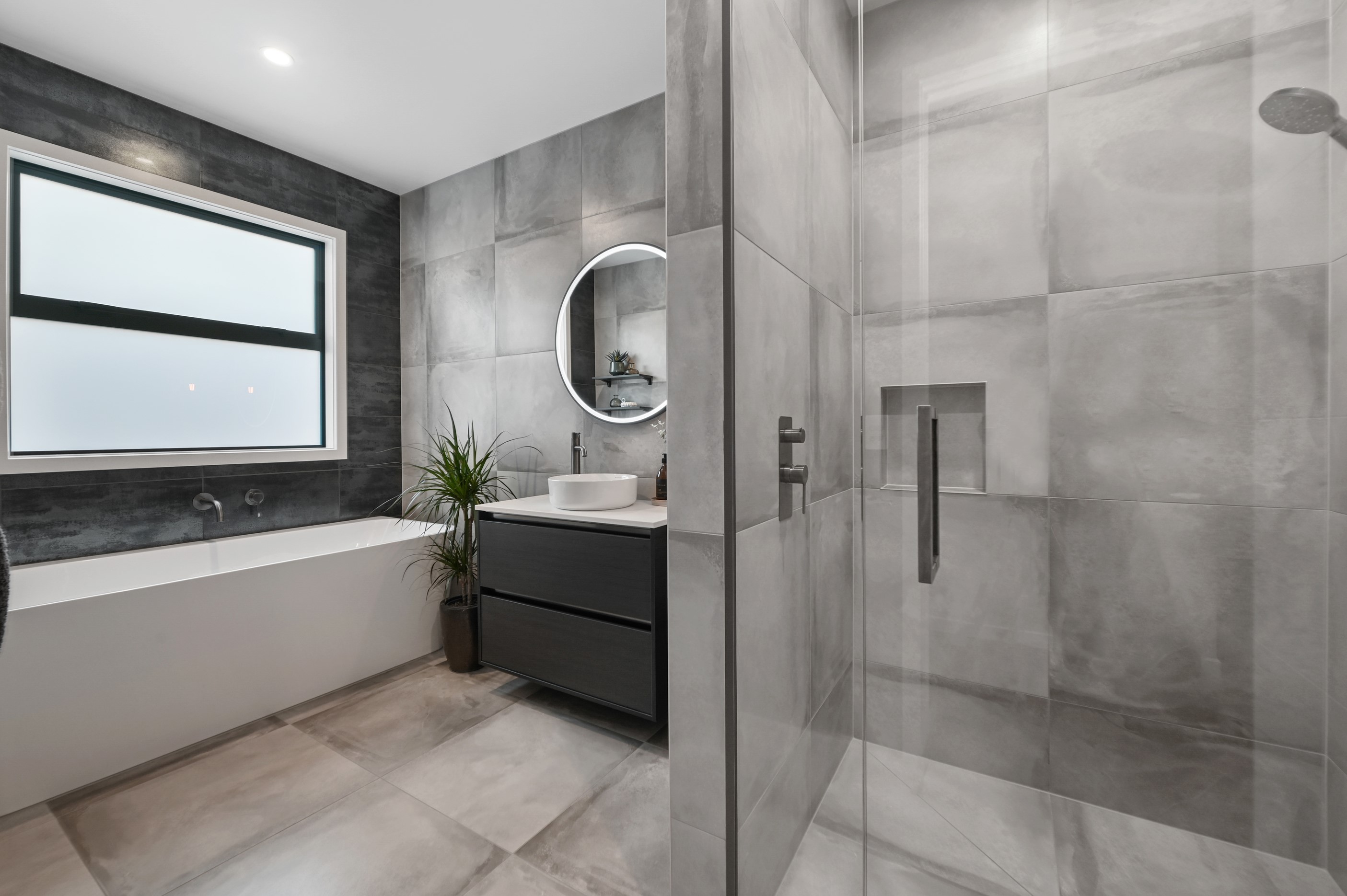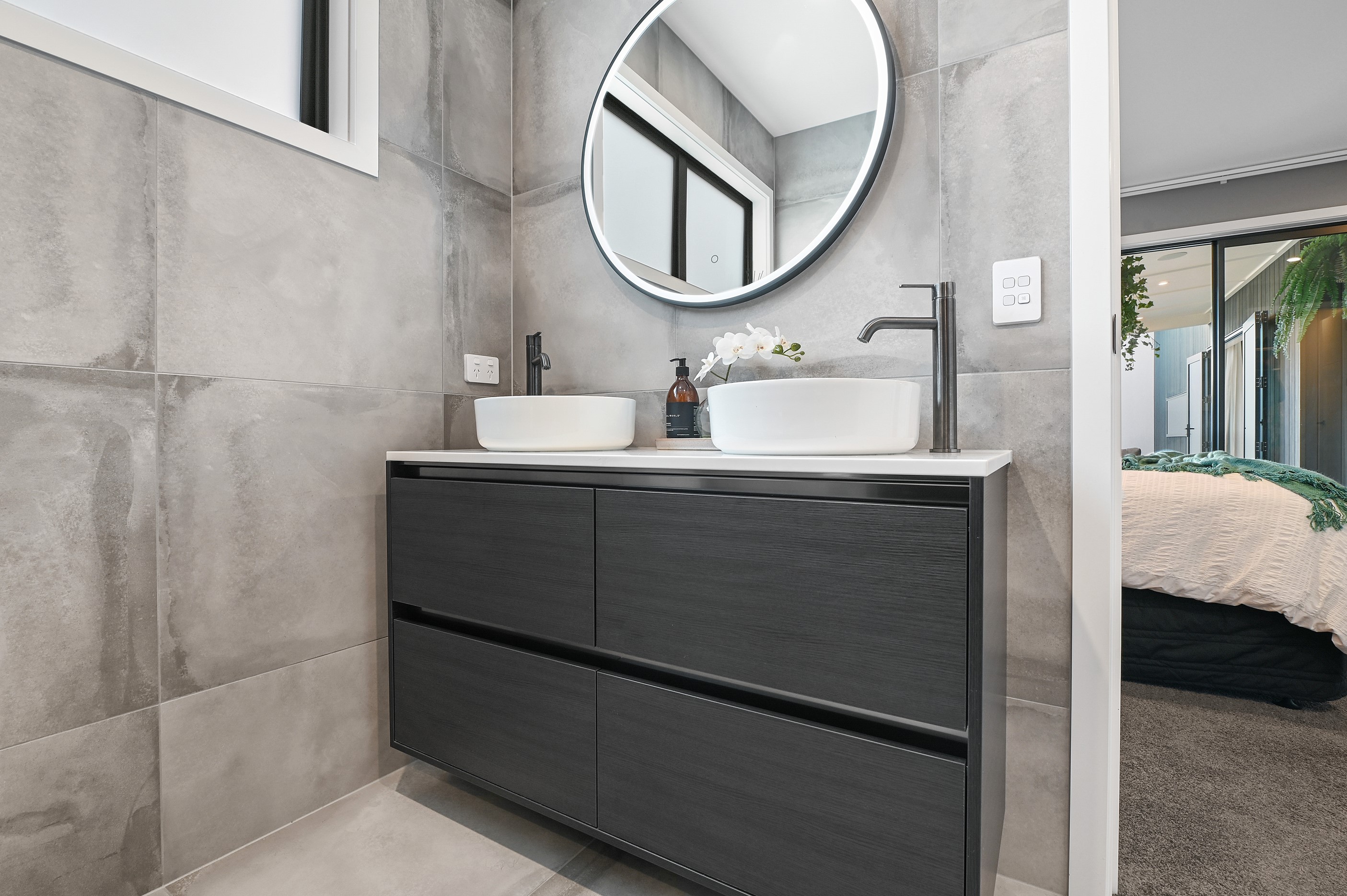 In this house, the lines between indoors and out have been blurred beautifully. The kitchen, dining and living areas open to decks on both sides of the 255sqm home. On one side there’s a patio with a spa pool; on the other, a portico with everything needed for alfresco dining and relaxing. It’s seamless. This is Gearey Homes’ second build for the owners, who are now empty nesters. They wanted open-plan living and indoor-outdoor flow radiating from a large kitchen. These spaces are beautifully presented with herringbone flooring, and are designed for entertaining. Four bedrooms and two bathrooms make this house ideal for visiting friends and family. You’ll also find a media lounge behind barn-style doors. This house is warm, too. With a ducted heat pump, air-conditioning and gas fire, temperatures are constant and comfortable. The clients enjoy travelling and wanted a place they could lock up and leave. What could be more easy-care than hardwood decking, and plaster and stained timber cladding with cavity systems? The building team is rightly proud of the quality and workmanship throughout the Hawke’s Bay residence, which provides the owners everything they need.