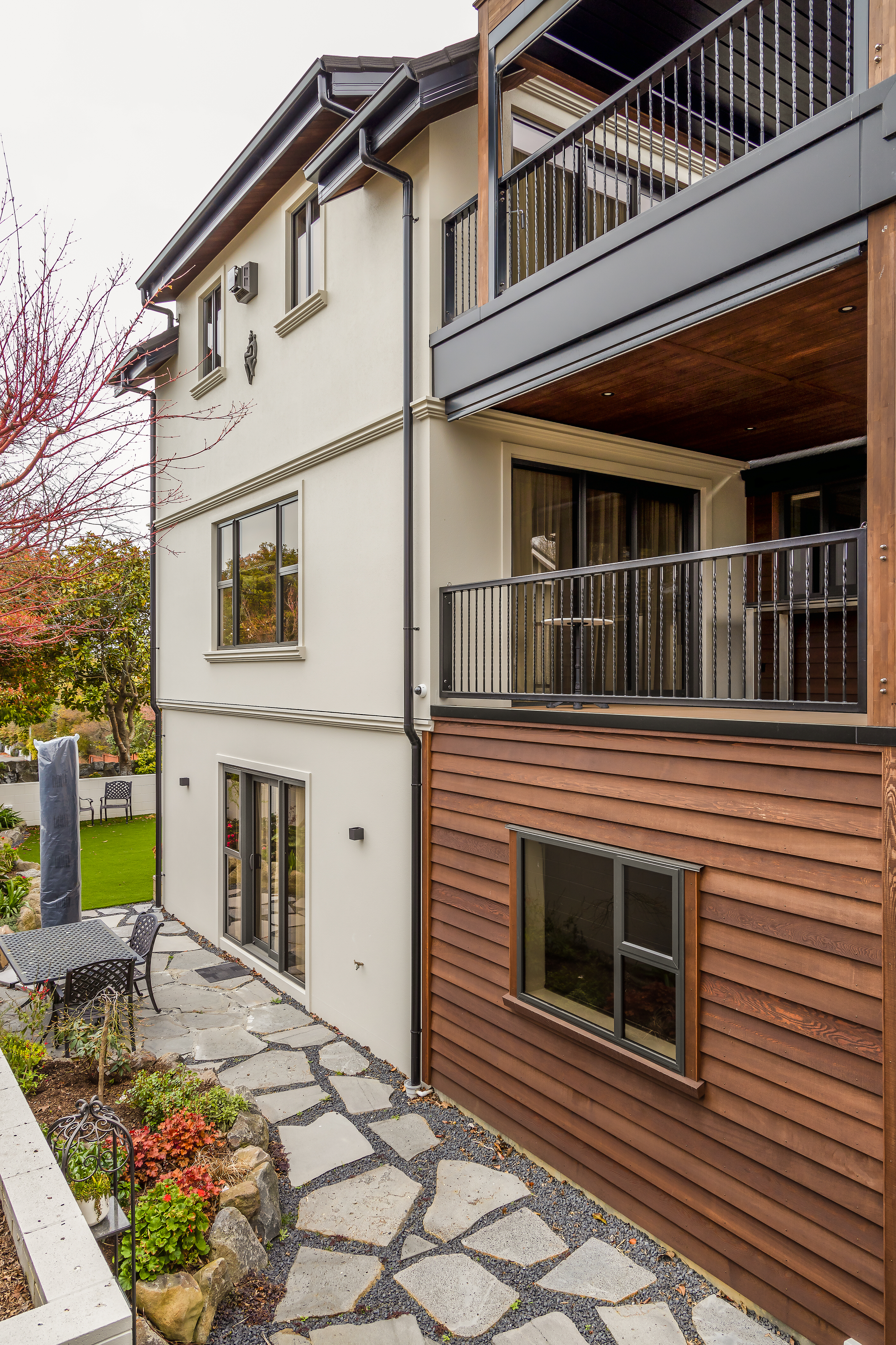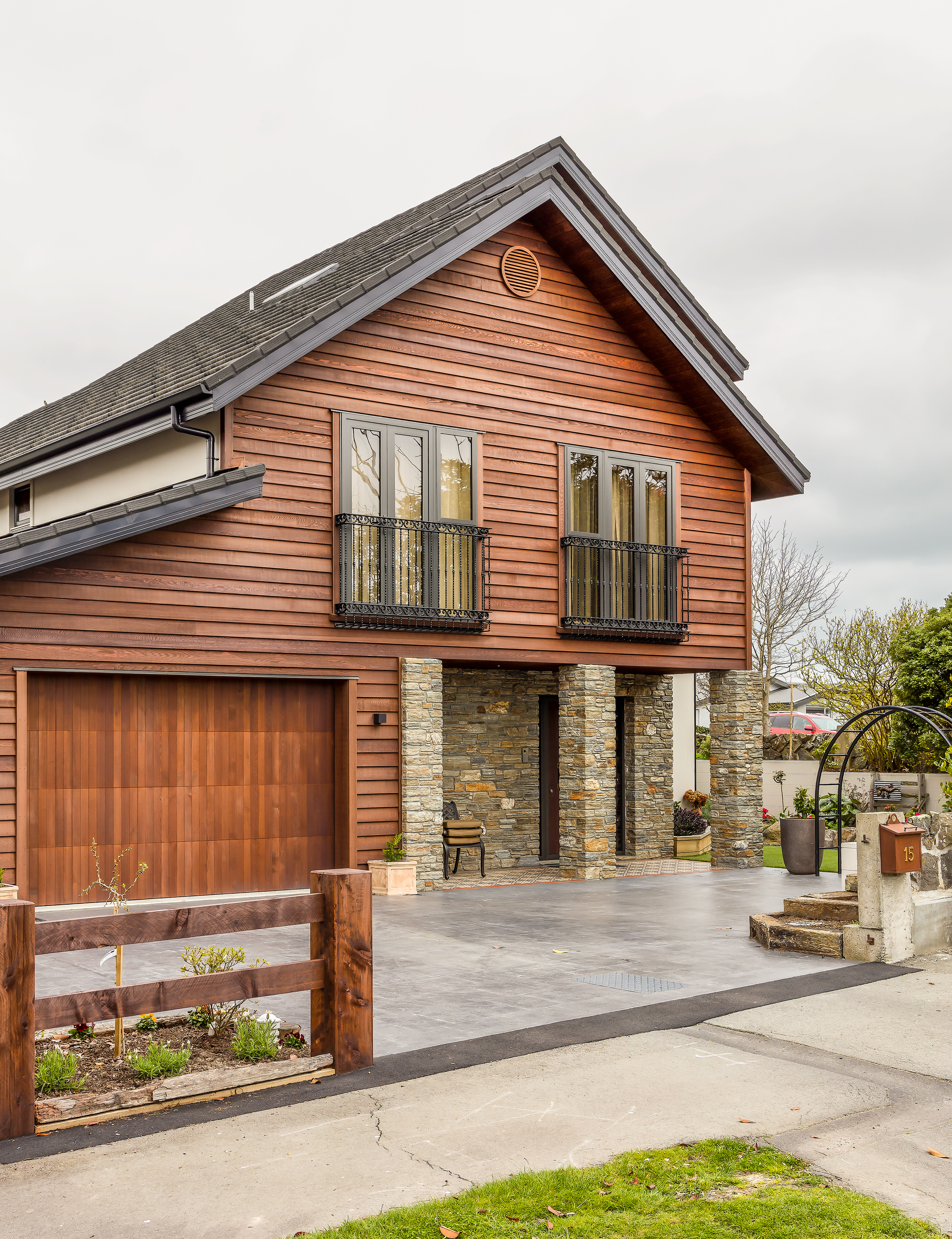 Add two cultures to two sets of life experiences and the sum is a home full of personality. The owners have Dutch and American backgrounds and their distinctive three-storey Timaru home reflects the breadth and wealth of their collective history. Every detail contains a story. Steel-plate steps reference the Dutch owner’s youth spent aboard defence-force ships. Quaint picture windows were chosen instead of expanses of glass to suit the character of the house and provide wall space for an extensive art collection. These windows still manage to frame the rural outlook and add to the visual treats here. The interior, in warm earthy tones, has a number of stars, including the charming timber staircase. In fact, character and features abound, from the Shaker-style kitchen detailing to the schist fireplace. From the outside, the house makes a striking statement in a combination of plaster and bevelled weatherboard offset with schist. Soaring gables give the three-storey, three-bedroom, three-bathroom house a sense of drama and history – fitting for a property designed to combine and reflect the full lives of its owners.