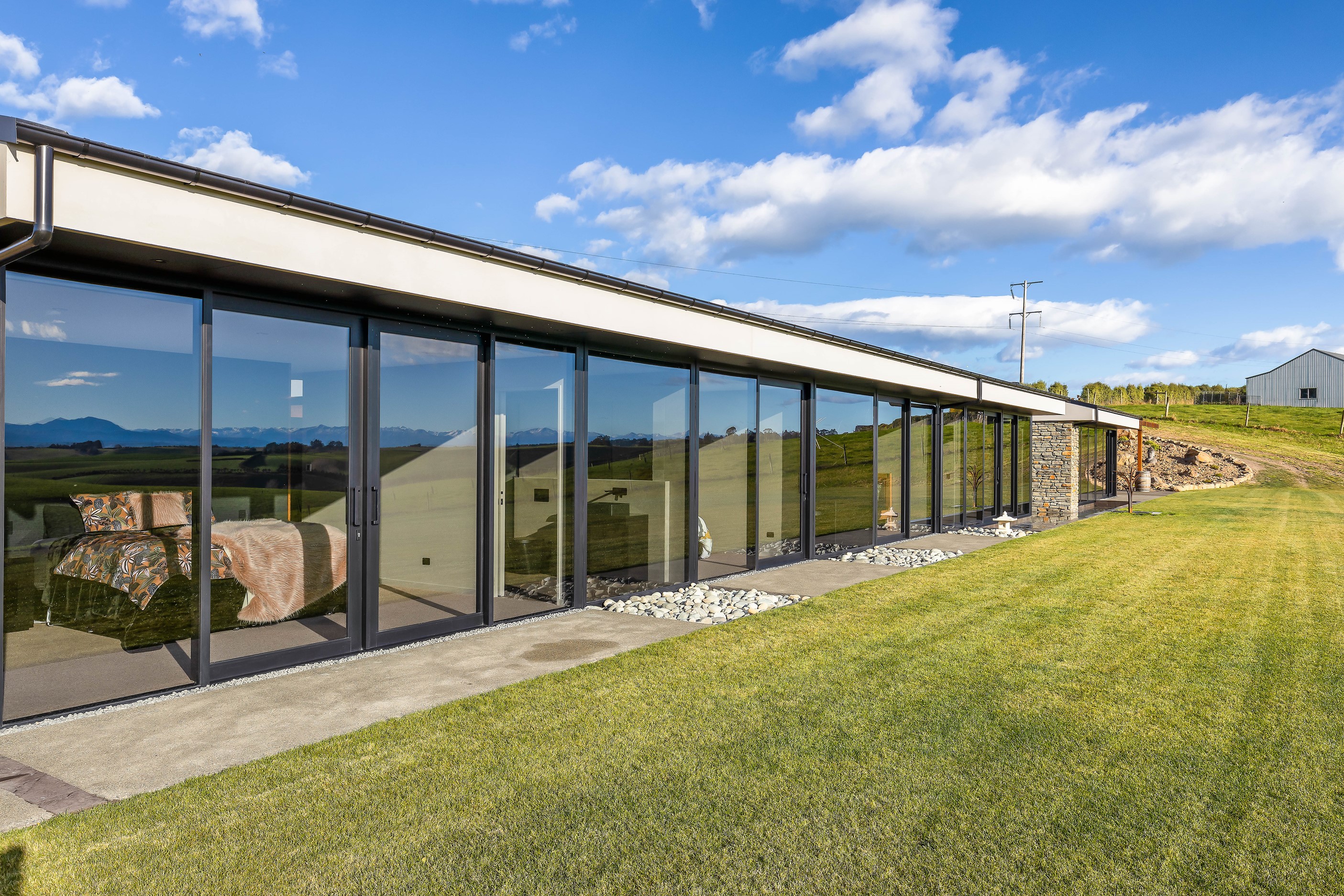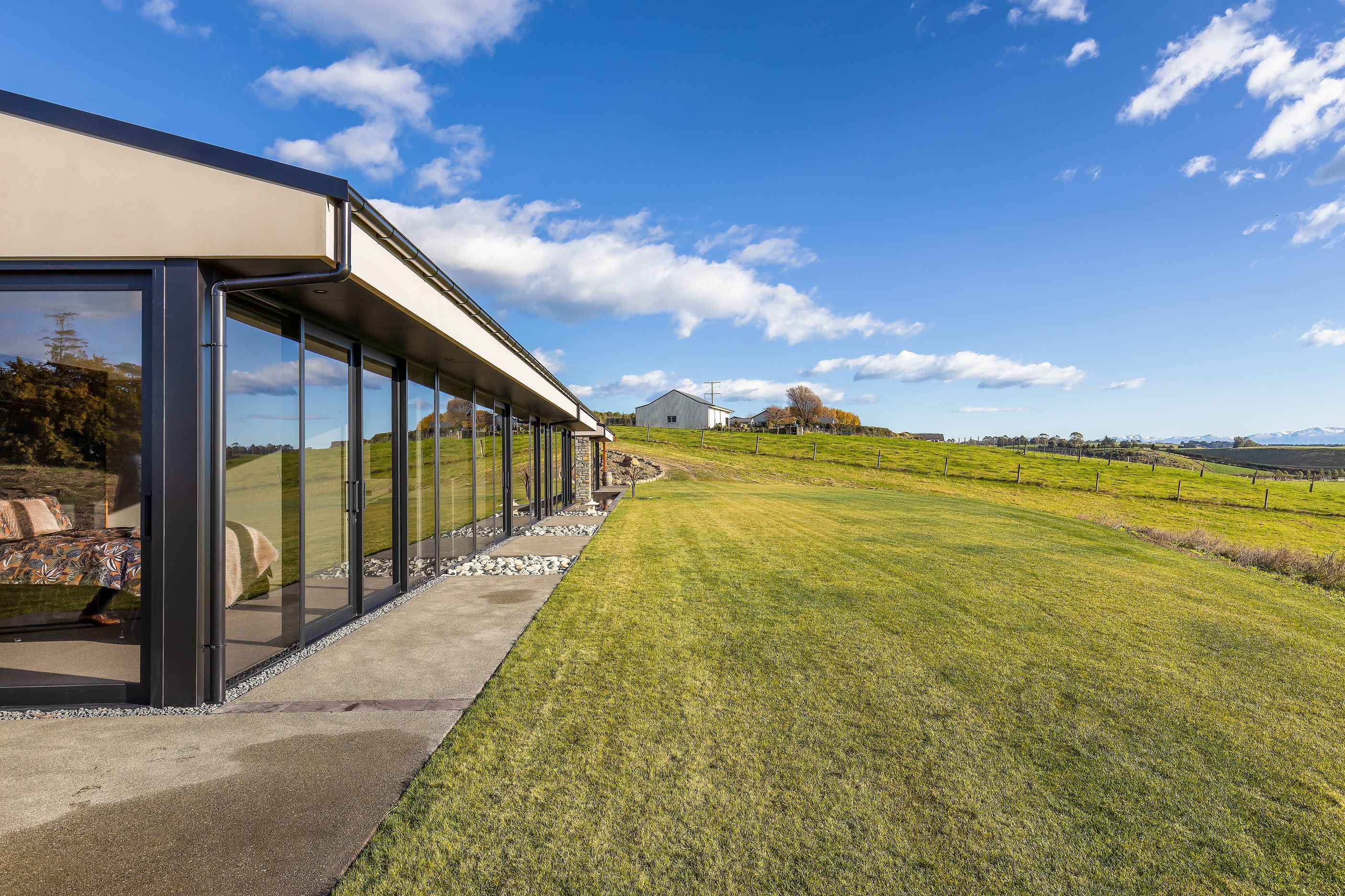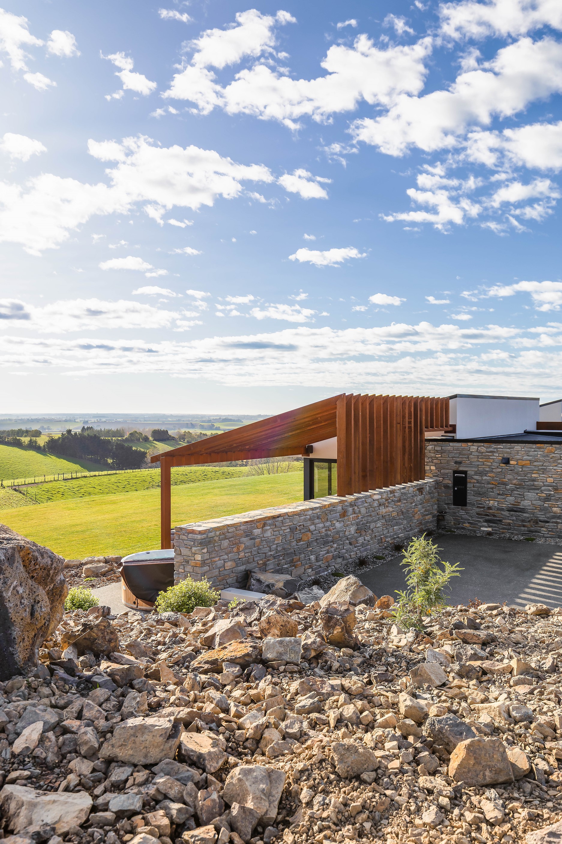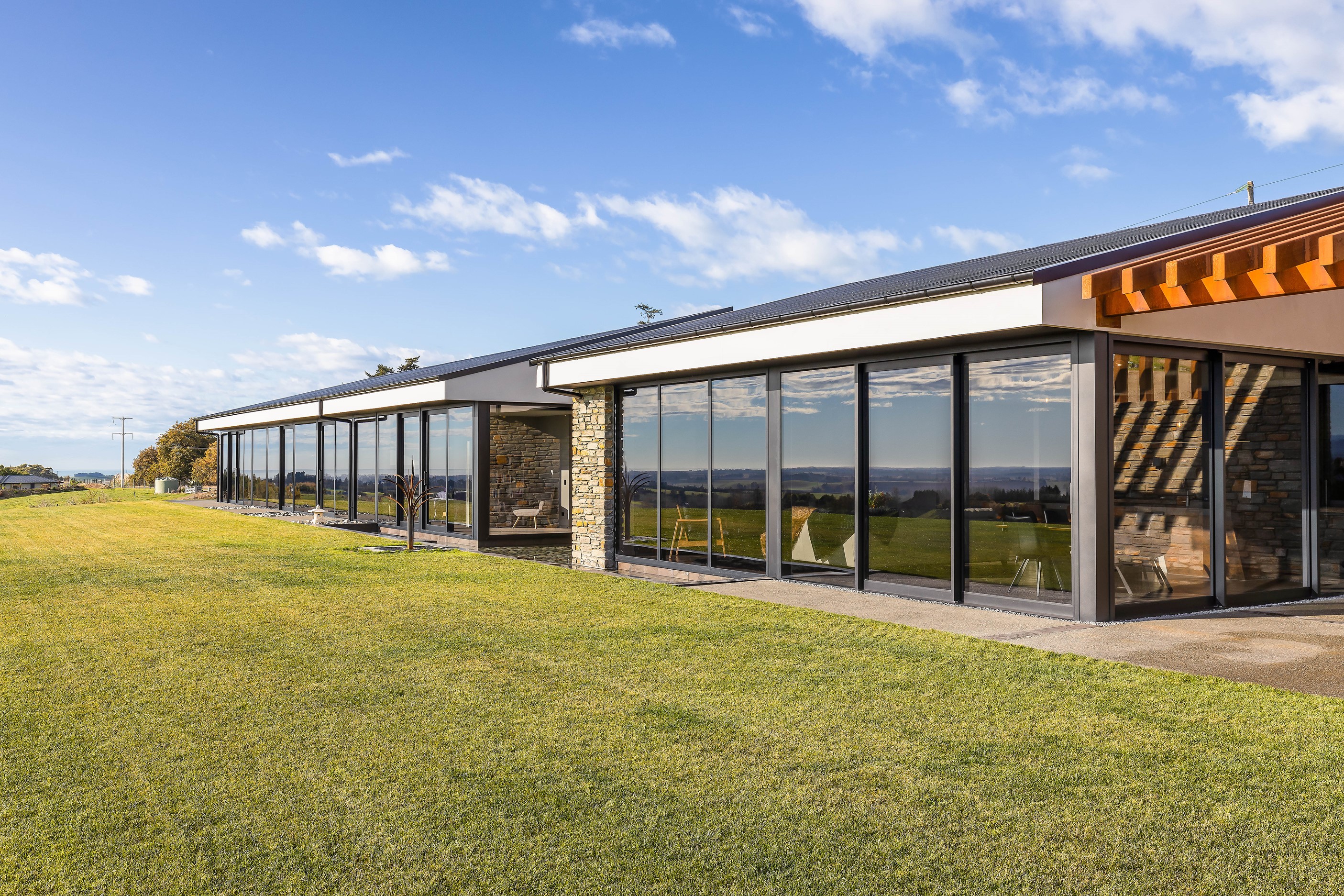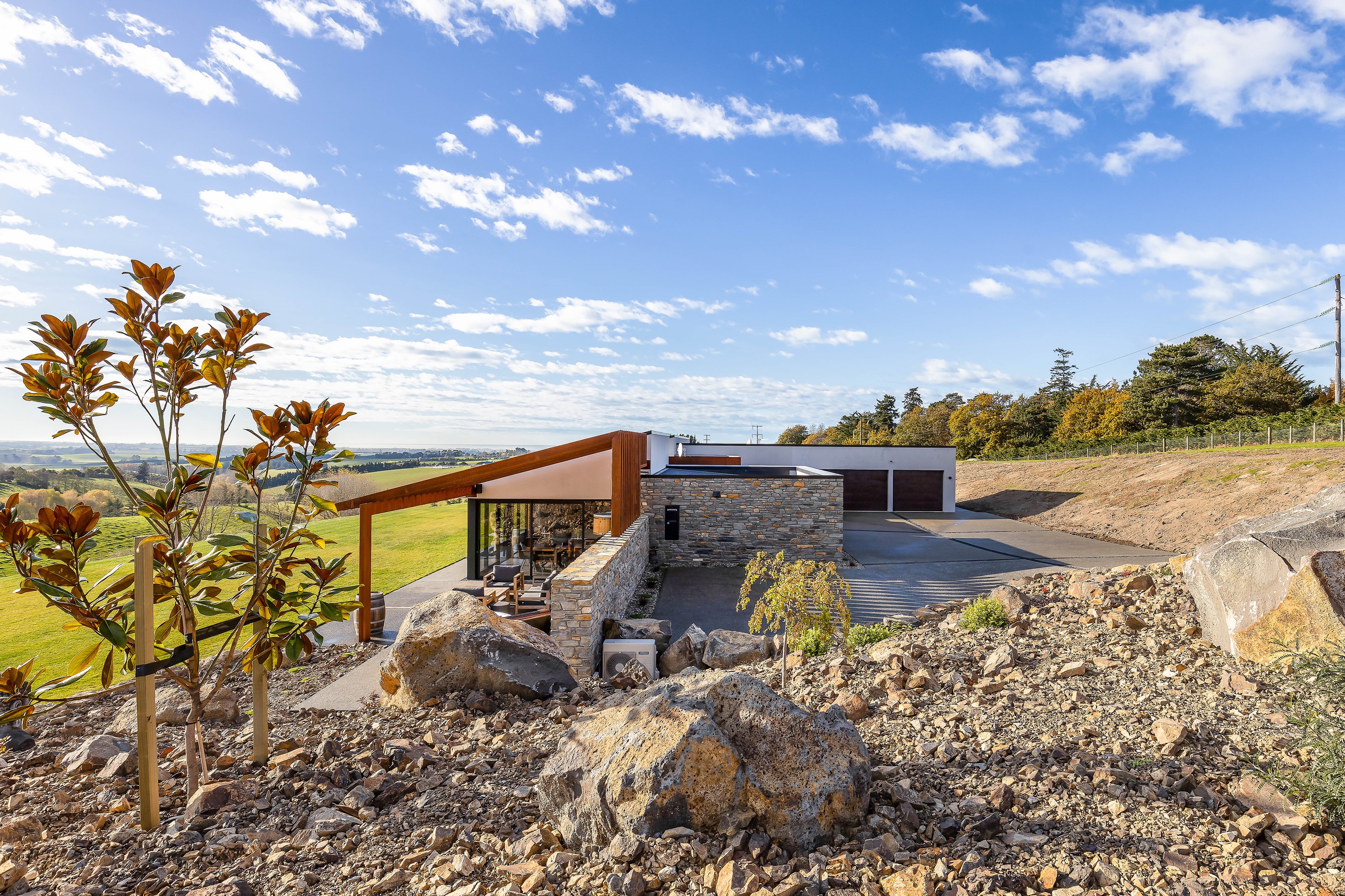 How does a home become part of its landscape? By nestling into the site it inhabits and blurring the lines between natural and built environments. This is such a house – the architecturally designed 384sqm beauty retreats into the Hunter Hills thanks to its long, low design and schist, concrete and steel cladding. The three-bedroom home was designed as a retreat for its owners, and it shows. The north-facing glass front captures views across the hills to the Pacific Ocean in the distance. Picture windows and glass sliders that lead to extensive outdoor areas make this an entertainer’s dream, but equally a quiet haven. With a massage room and a meandering water feature, you could be forgiven for thinking you are in a retreat in another part of the world. However, this is Timaru – albeit with a delightful design twist. You’ll find three spacious bedrooms, three bathrooms, a study, media room, three-car garage and bespoke fittings and fixtures throughout. With a hot tub, pergola, landscaping and every modern must-have imaginable, you have something quite special. This is a home that says luxury and sense of place, in an understated and enduring way.