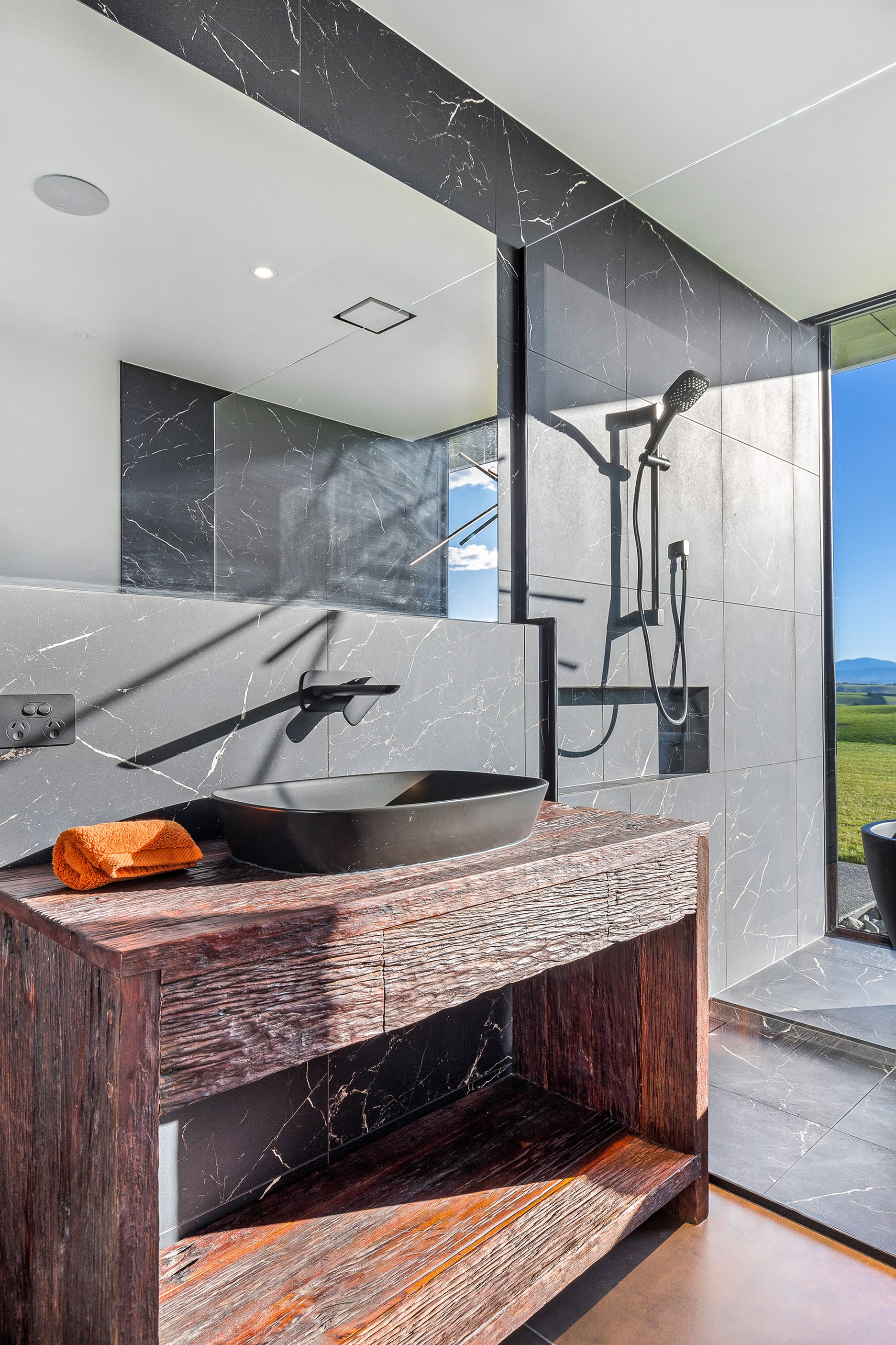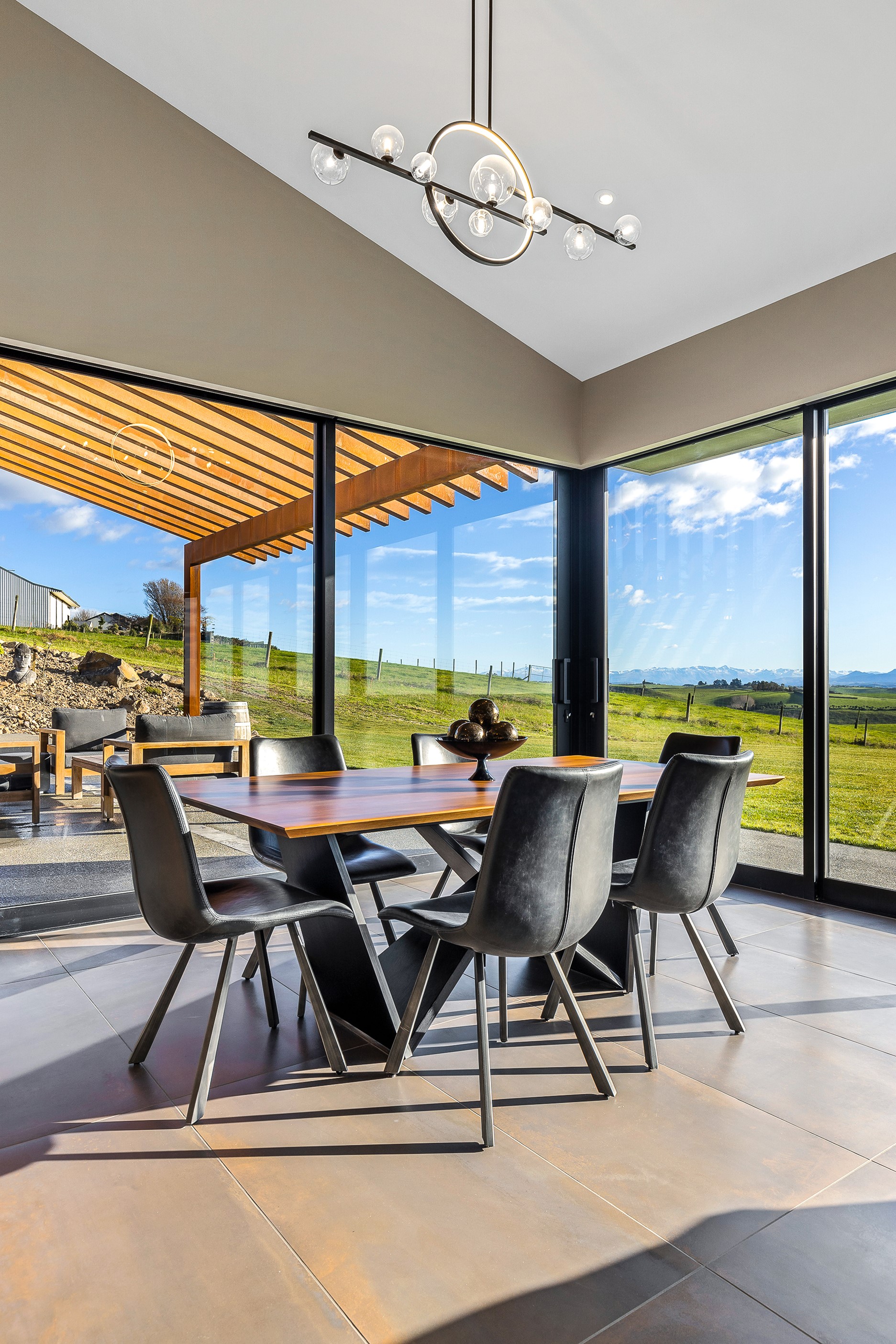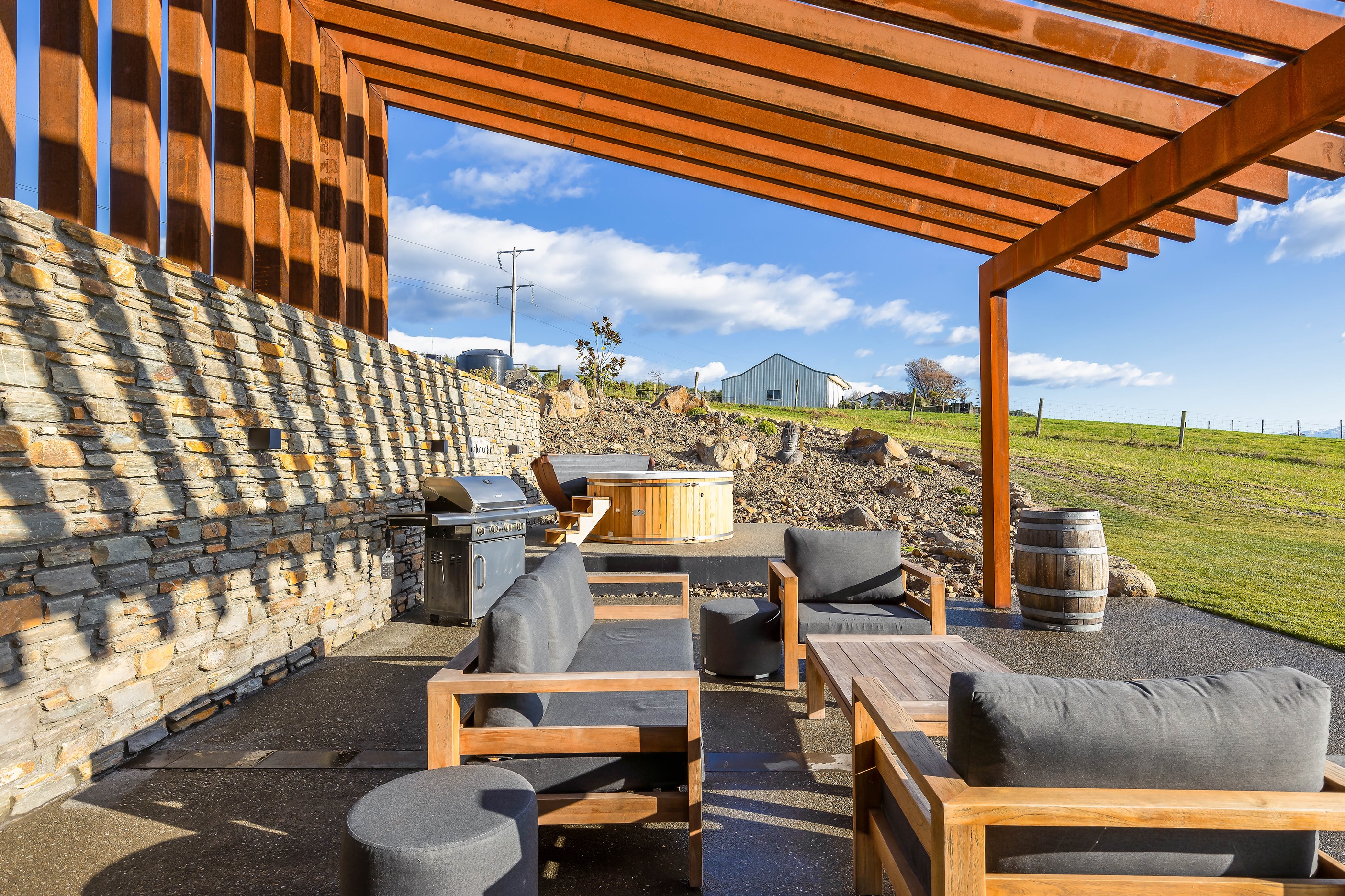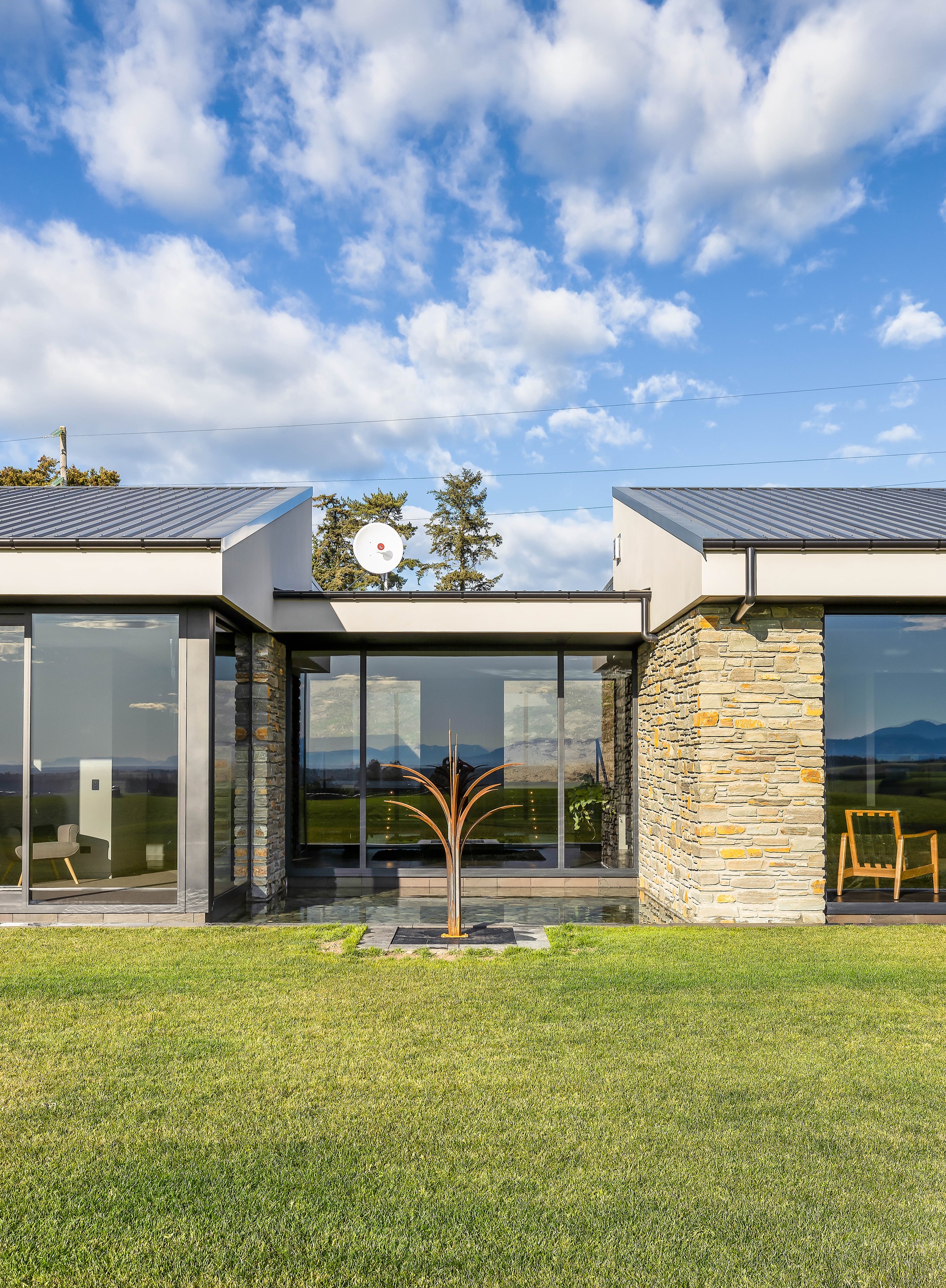 How does a home become part of its landscape? By nestling into the site it inhabits and blurring the lines between natural and built environments. This is such a house – the architecturally designed 384sqm beauty retreats into the Hunter Hills thanks to its long, low design and schist, concrete and steel cladding. The three-bedroom home was designed as a retreat for its owners, and it shows. The north-facing glass front captures views across the hills to the Pacific Ocean in the distance. Picture windows and glass sliders that lead to extensive outdoor areas make this an entertainer’s dream, but equally a quiet haven. With a massage room and a meandering water feature, you could be forgiven for thinking you are in a retreat in another part of the world. However, this is Timaru – albeit with a delightful design twist. You’ll find three spacious bedrooms, three bathrooms, a study, media room, three-car garage and bespoke fittings and fixtures throughout. With a hot tub, pergola, landscaping and every modern must-have imaginable, you have something quite special. This is a home that says luxury and sense of place, in an understated and enduring way.