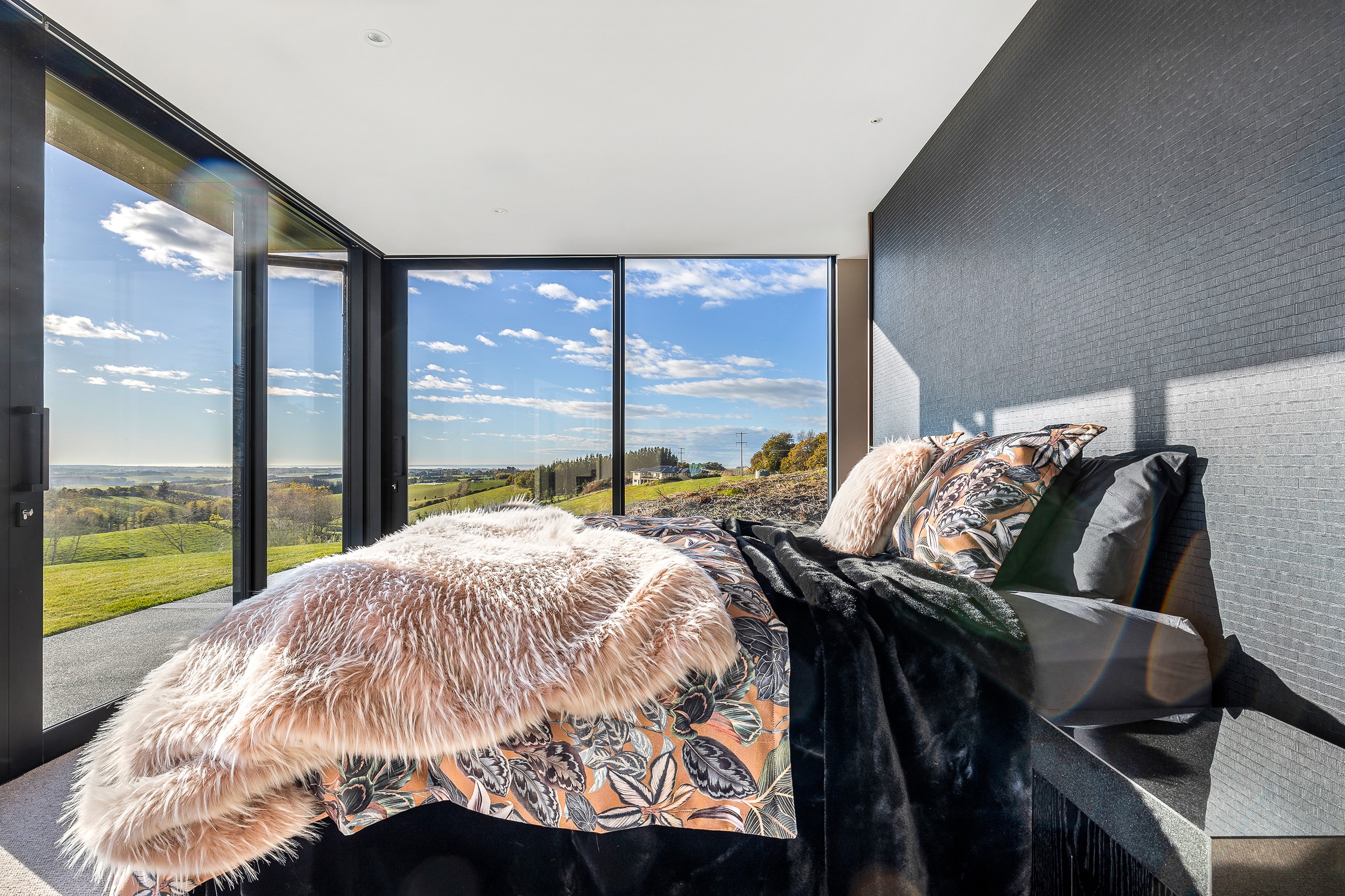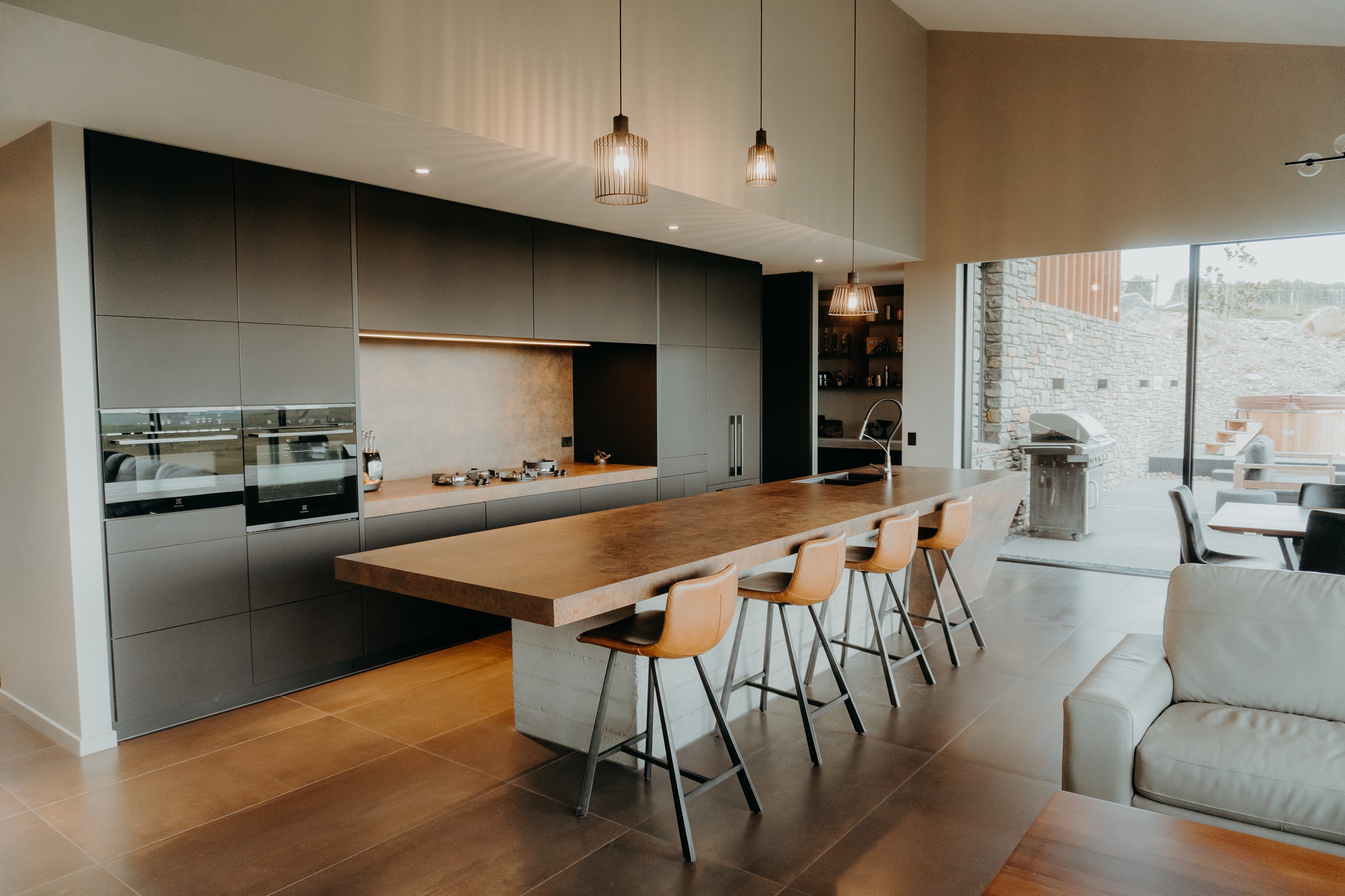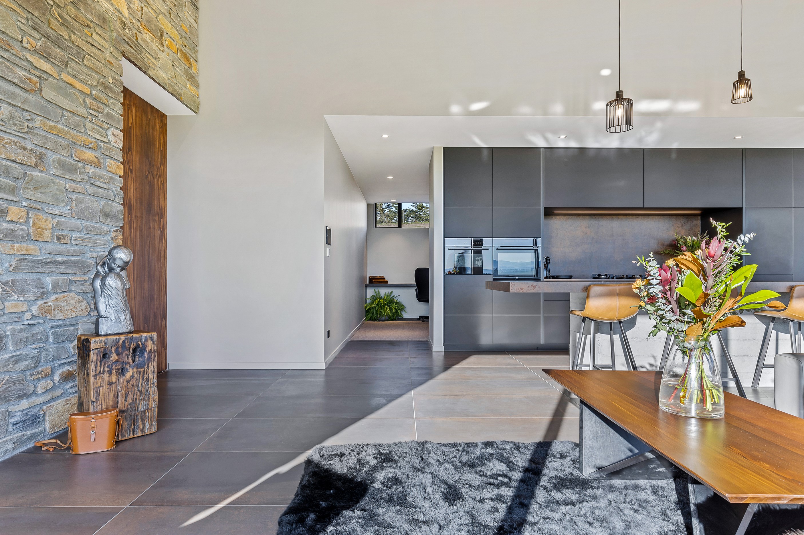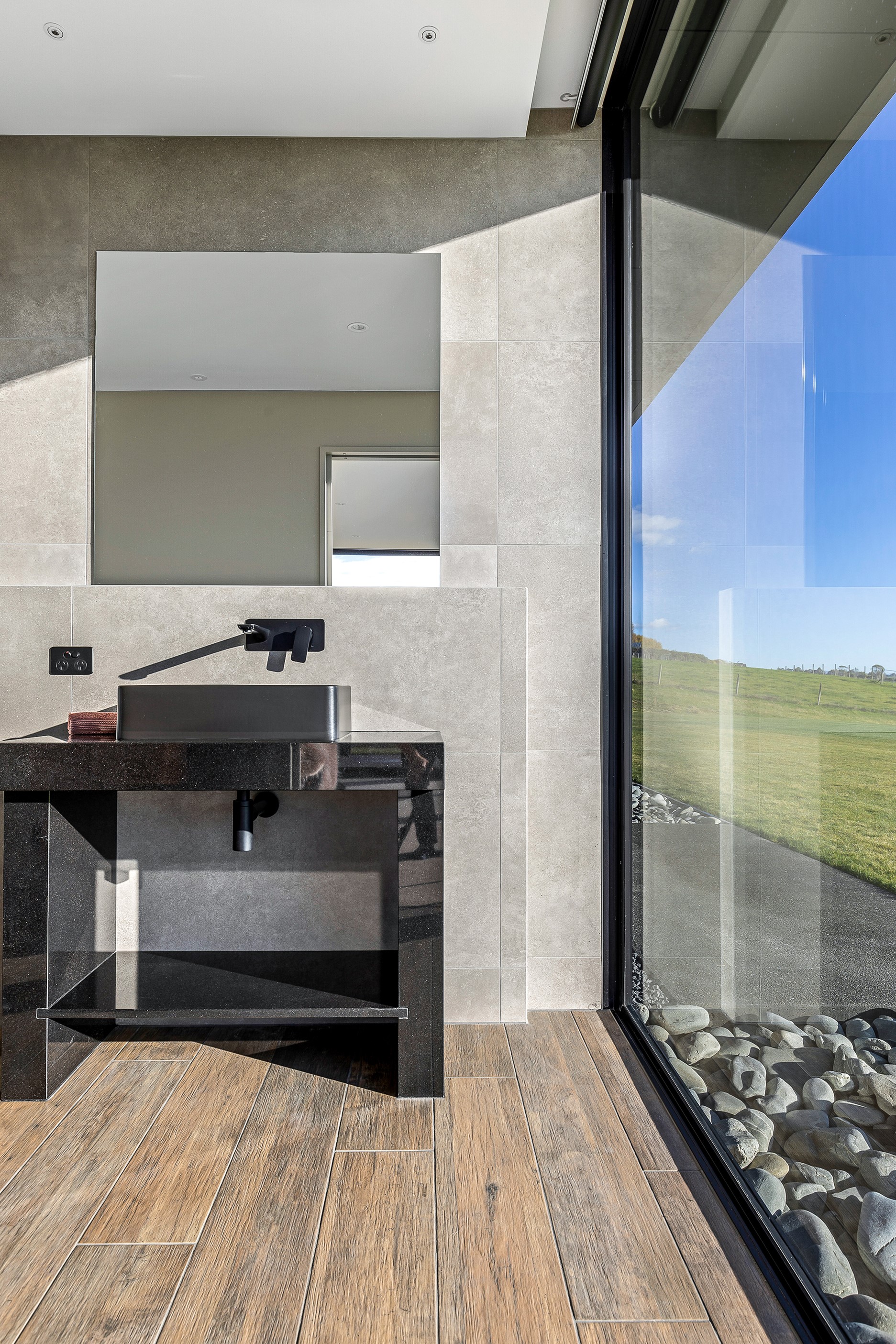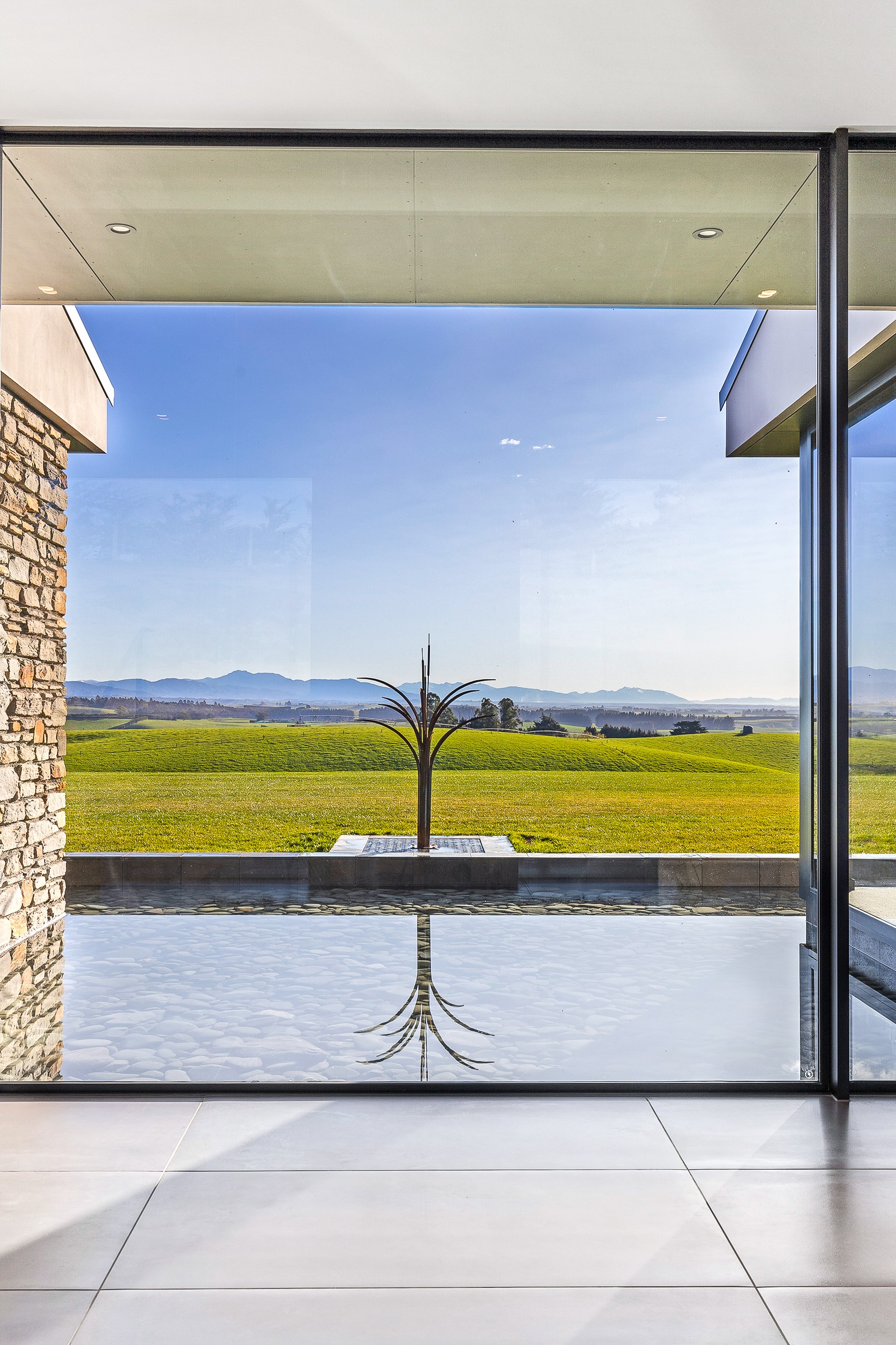 How does a home become part of its landscape? By nestling into the site it inhabits and blurring the lines between natural and built environments. This is such a house – the architecturally designed 384sqm beauty retreats into the Hunter Hills thanks to its long, low design and schist, concrete and steel cladding. The three-bedroom home was designed as a retreat for its owners, and it shows. The north-facing glass front captures views across the hills to the Pacific Ocean in the distance. Picture windows and glass sliders that lead to extensive outdoor areas make this an entertainer’s dream, but equally a quiet haven. With a massage room and a meandering water feature, you could be forgiven for thinking you are in a retreat in another part of the world. However, this is Timaru – albeit with a delightful design twist. You’ll find three spacious bedrooms, three bathrooms, a study, media room, three-car garage and bespoke fittings and fixtures throughout. With a hot tub, pergola, landscaping and every modern must-have imaginable, you have something quite special. This is a home that says luxury and sense of place, in an understated and enduring way.