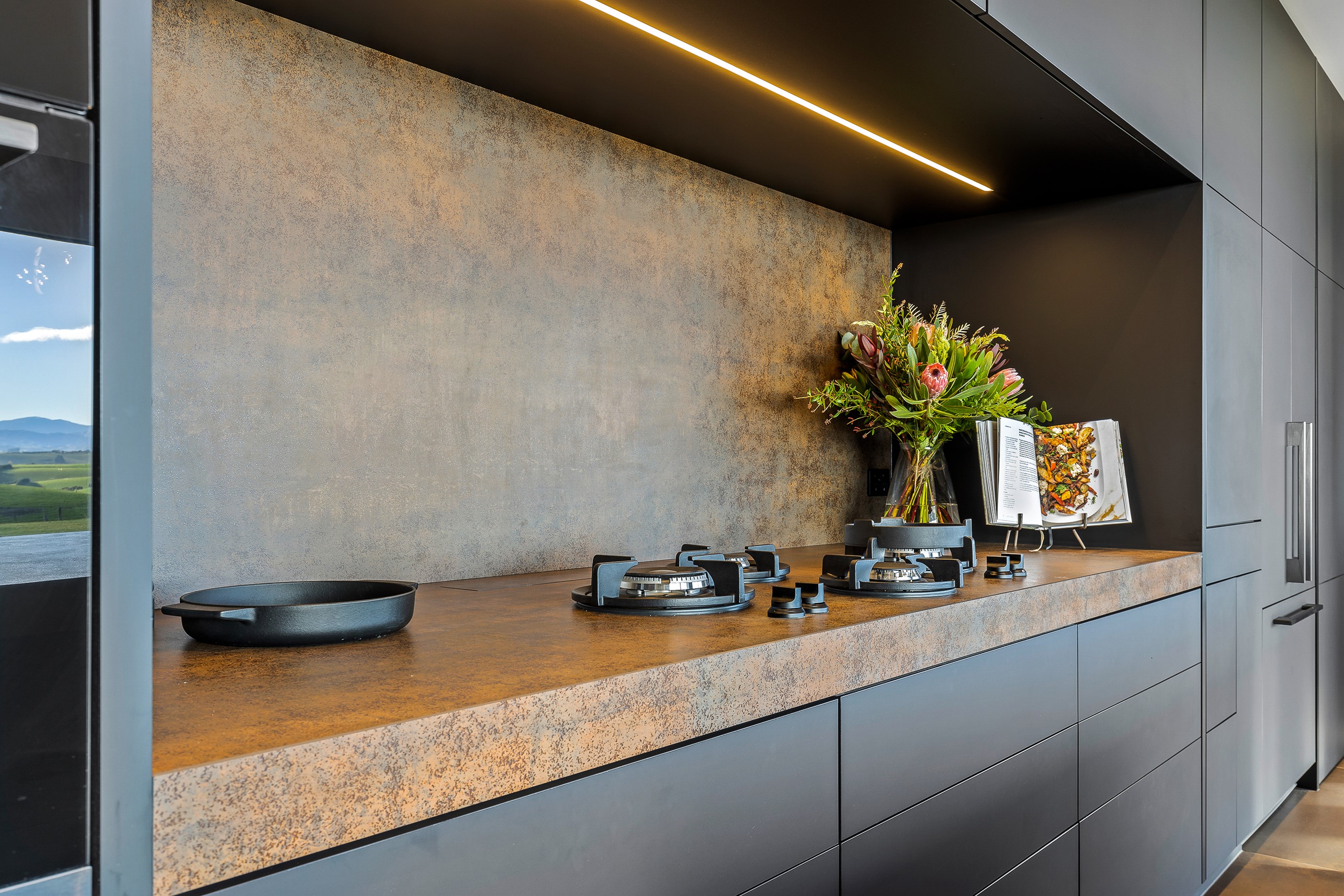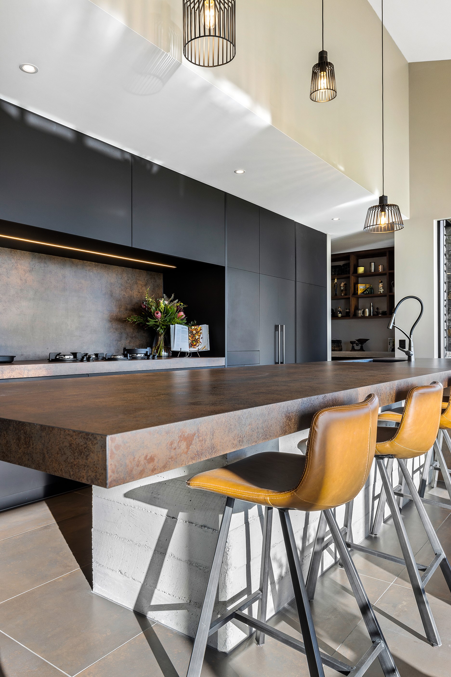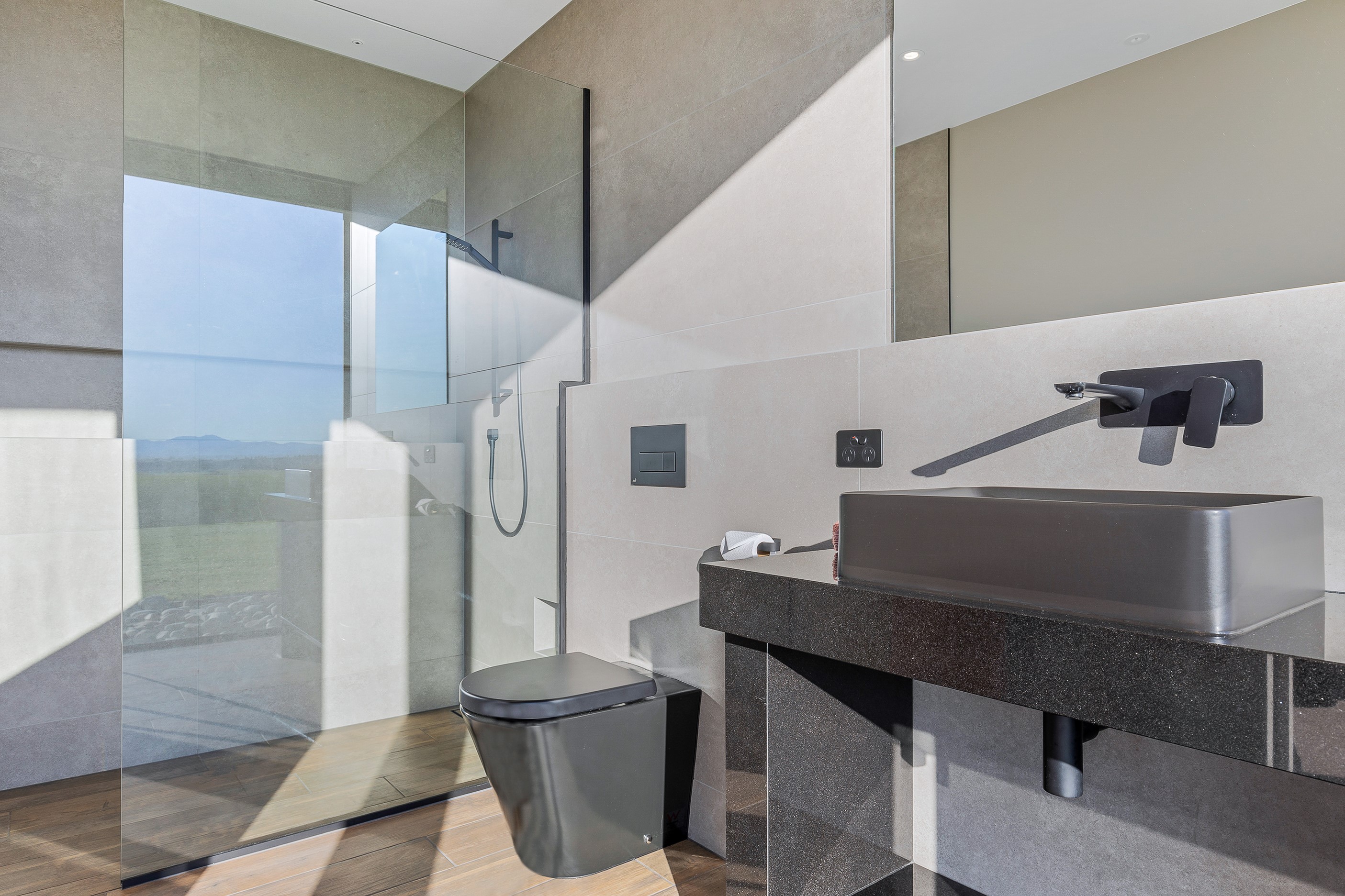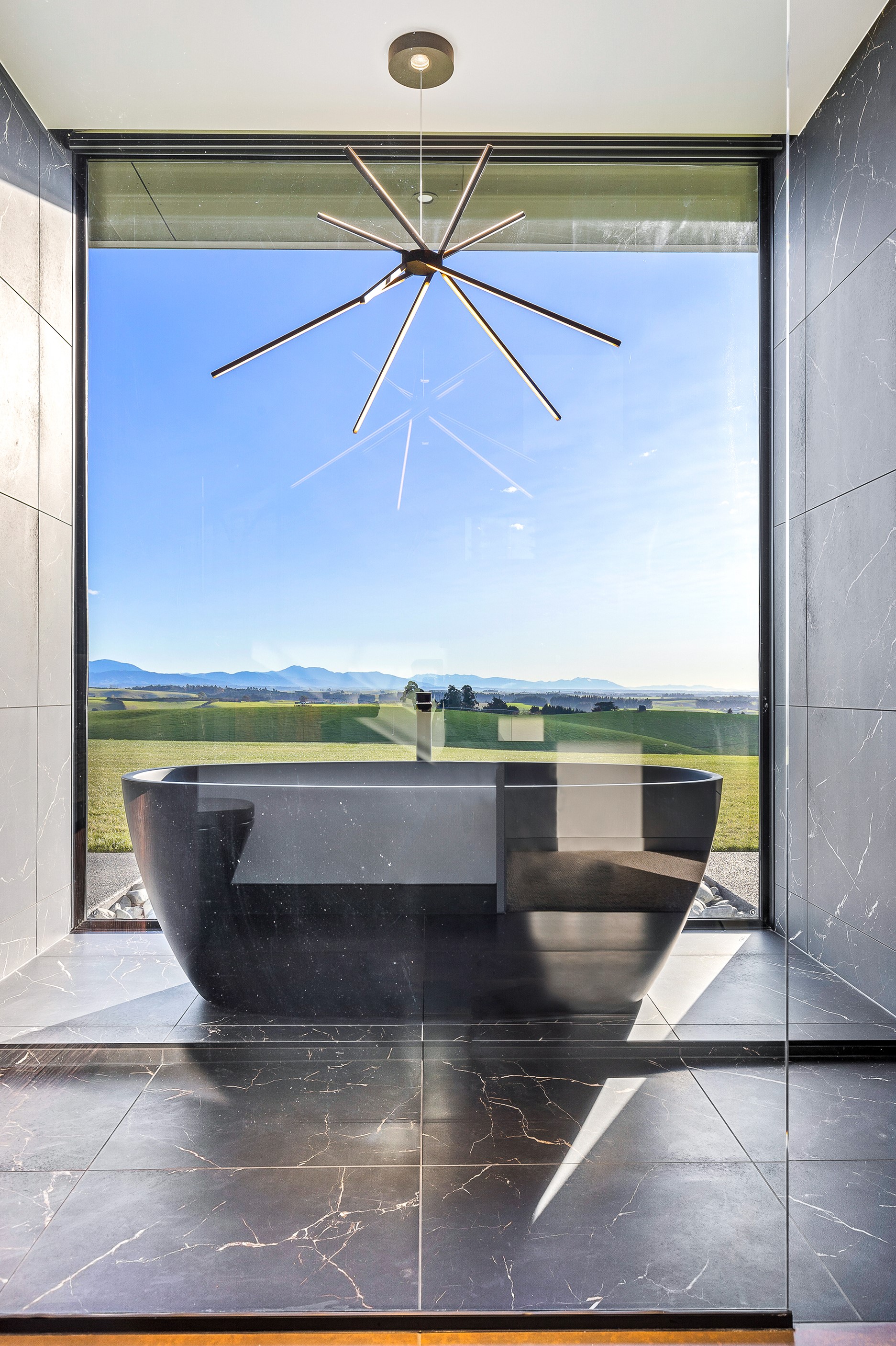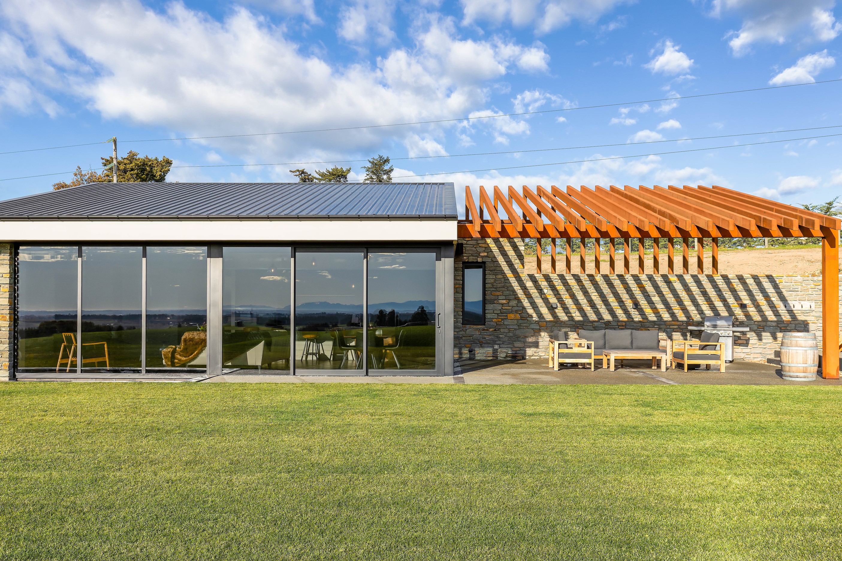How does a home become part of its landscape? By nestling into the site it inhabits and blurring the lines between natural and built environments. This is such a house – the architecturally designed 384sqm beauty retreats into the Hunter Hills thanks to its long, low design and schist, concrete and steel cladding. The three-bedroom home was designed as a retreat for its owners, and it shows. The north-facing glass front captures views across the hills to the Pacific Ocean in the distance. Picture windows and glass sliders that lead to extensive outdoor areas make this an entertainer’s dream, but equally a quiet haven. With a massage room and a meandering water feature, you could be forgiven for thinking you are in a retreat in another part of the world. However, this is Timaru – albeit with a delightful design twist. You’ll find three spacious bedrooms, three bathrooms, a study, media room, three-car garage and bespoke fittings and fixtures throughout. With a hot tub, pergola, landscaping and every modern must-have imaginable, you have something quite special. This is a home that says luxury and sense of place, in an understated and enduring way.