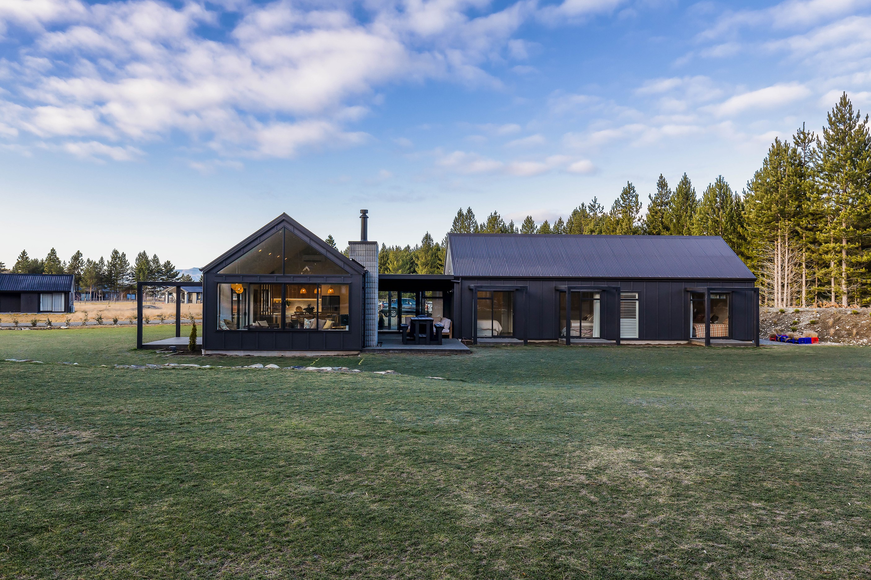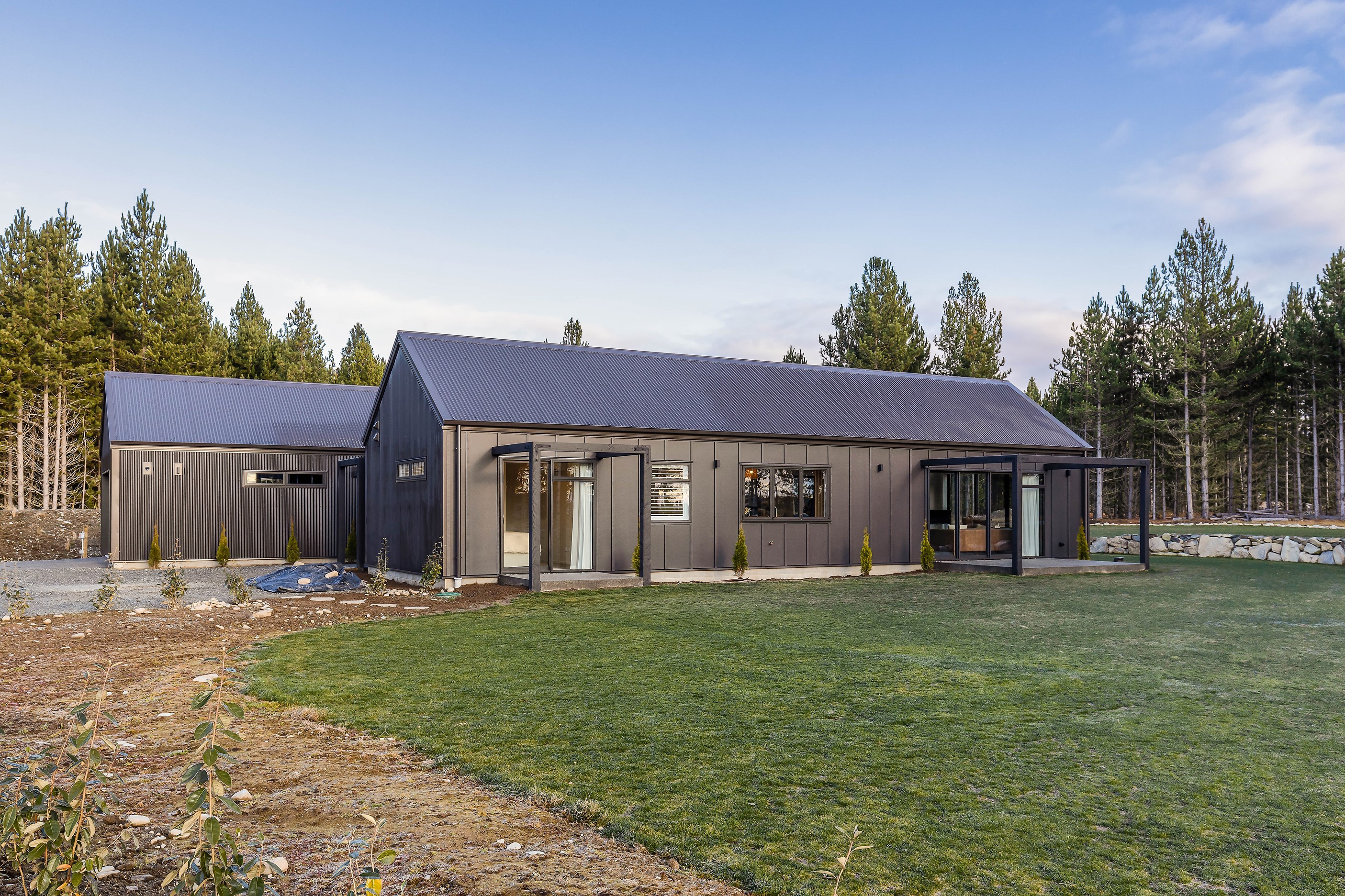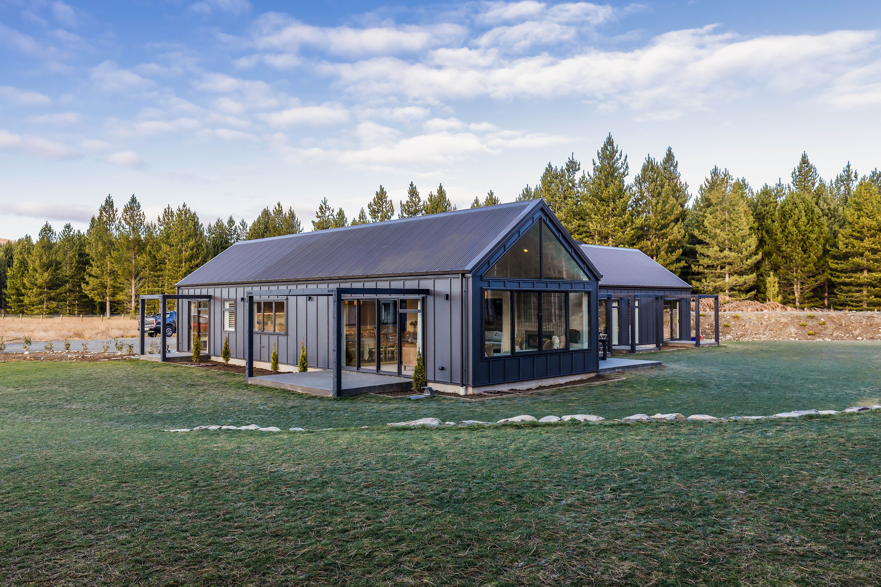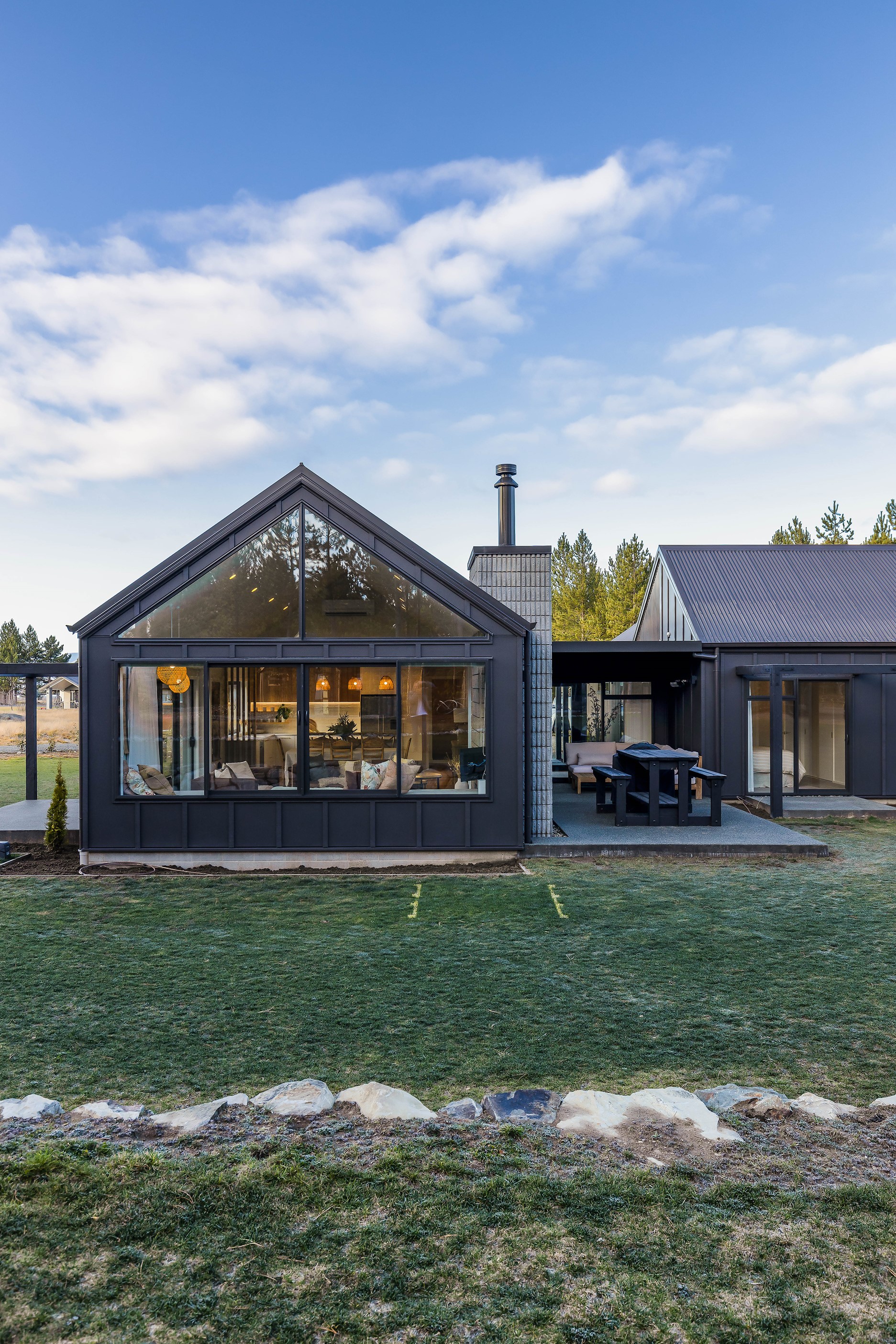 Bold yet understated, this pavilion-style home manages to achieve the tricky double with aplomb. It helps that the owners have an eye for detail and skill in complementing and contrasting materials and shades. Board-and-batten and steel cladding anchor the 233sqm holiday home to its Mackenzie Country site. Swathes of glass bring the light and stunning landscape inside. The moody exterior is contrasted by light, earthy tones inside and the natural palette ensures cohesion. Given this is a holiday home, the kitchen has been designed to be practical – no one wants to be labouring over meals when relaxation and adventures are on offer in this rugged and special part of the country. That’s not to say the food prep area is nondescript – it’s a chic space that flows into the living area and outside to a partially covered area. Three north-facing bedrooms and a bathroom accommodate the trio of teenagers in the family and the main-bedroom suite at the rear of the house is a private retreat away from the buzz of young adults. It’s clear that this bespoke home has been designed and built with thought, care and precision. Nothing has been left to chance, least of all craftsmanship.