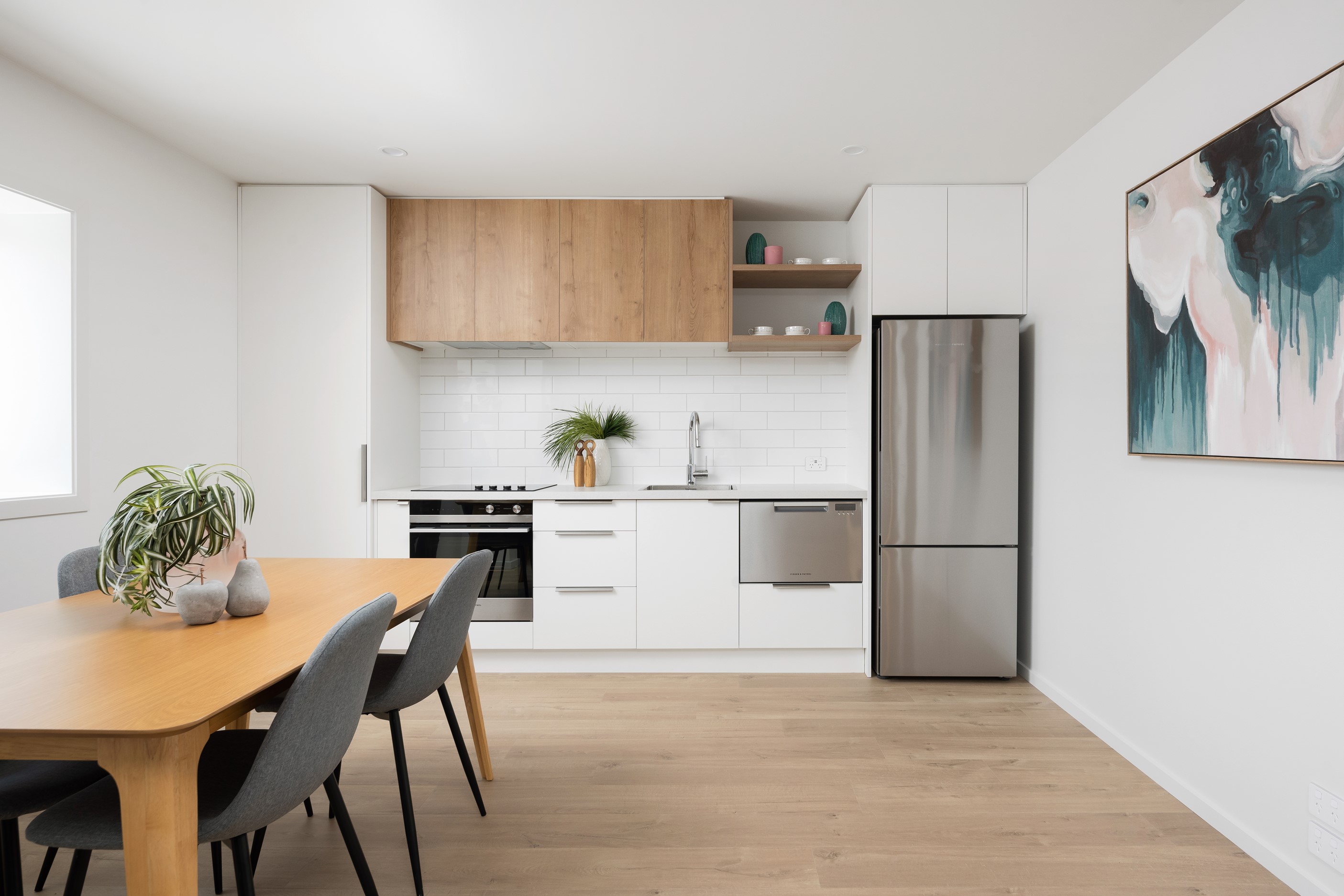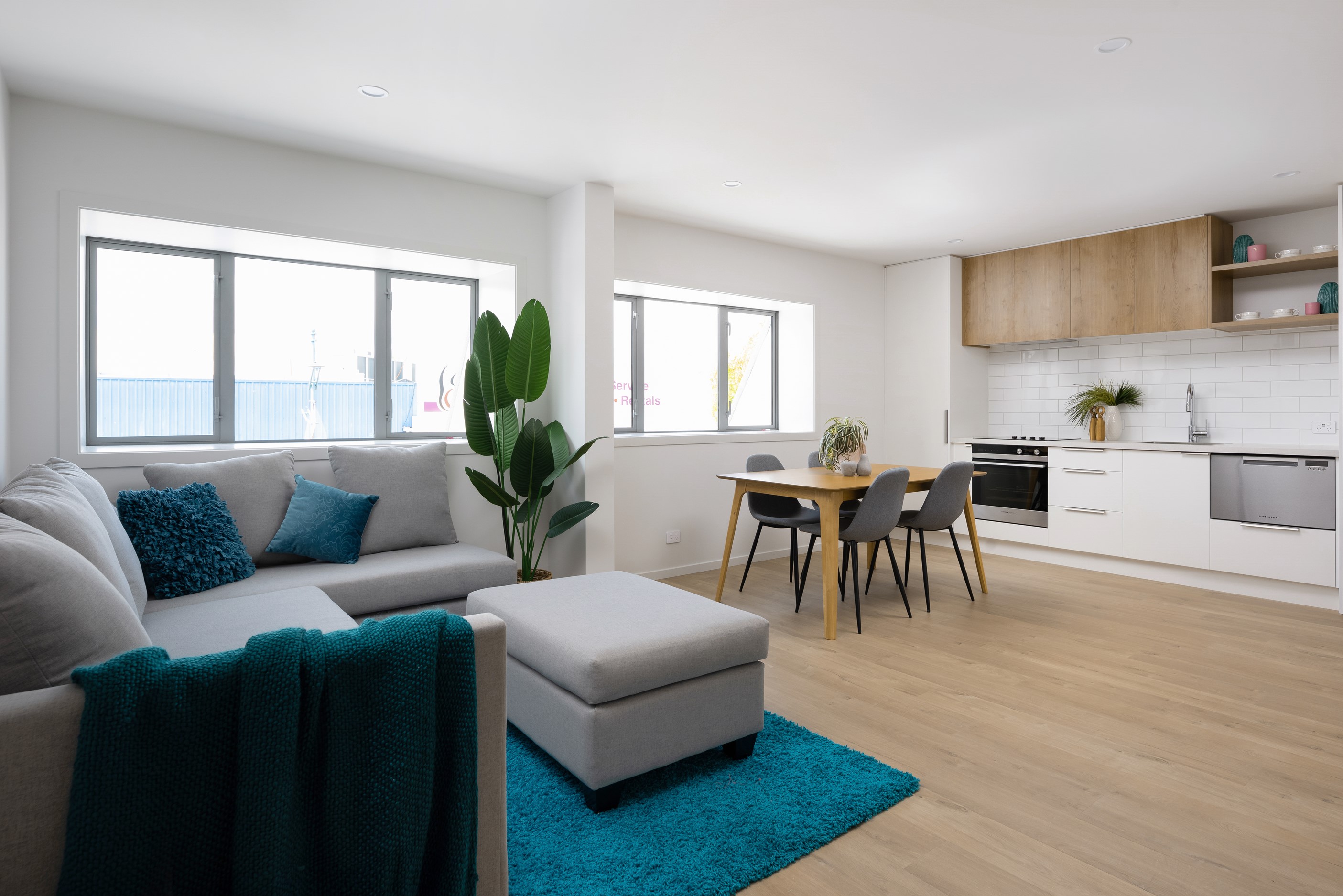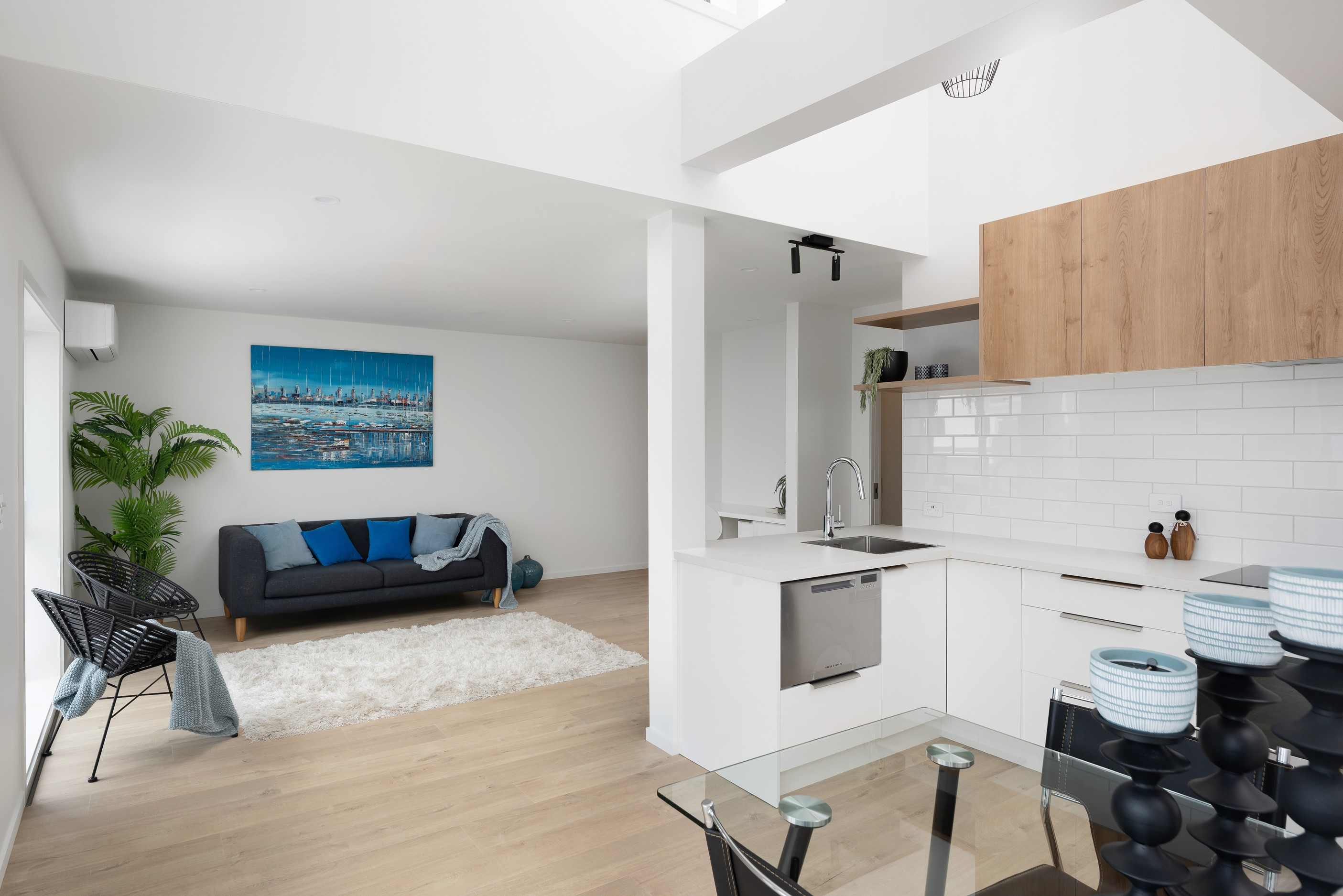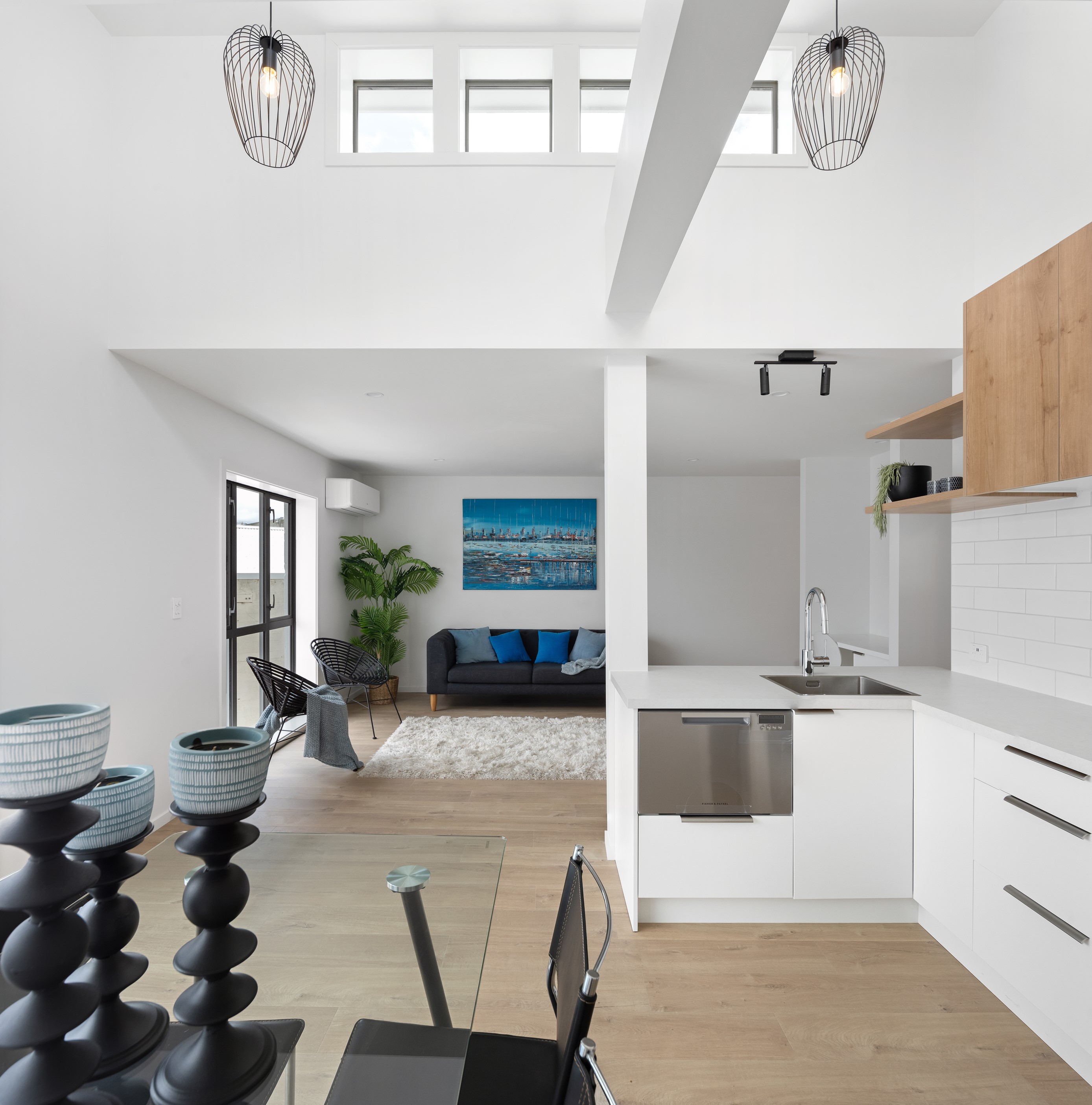 This Blenheim project posed more than the usual renovation challenges. More than seven years ago, the commercial property had failed its building warrant of fitness due to the unconsented removal of an internal stairwell, which doubled as a fire exit. The top floor was abandoned and nesting birds had taken a liking to it. The building was in “an absolute state”. Enter Smith and Sons, who bought the building with the idea of converting it into two apartments. The mammoth task involved making the most of the existing top windows, but removing and replacing everything else on the upper floor. The team worked with an architectural, engineering and resource consent firm to come up with a viable plan and then set to work. Adding to the challenge was a tight time frame for the turnaround, but the project went to plan and the team is delighted with the result. They should be. The birds and other problems are long gone and what remains are a pair of two-bedroom apartments that are bright, airy and comfortable, with crisp clean lines and sparkling kitchens. The windows that were retained invite light inside, but also throw a spotlight on just what has been achieved here.