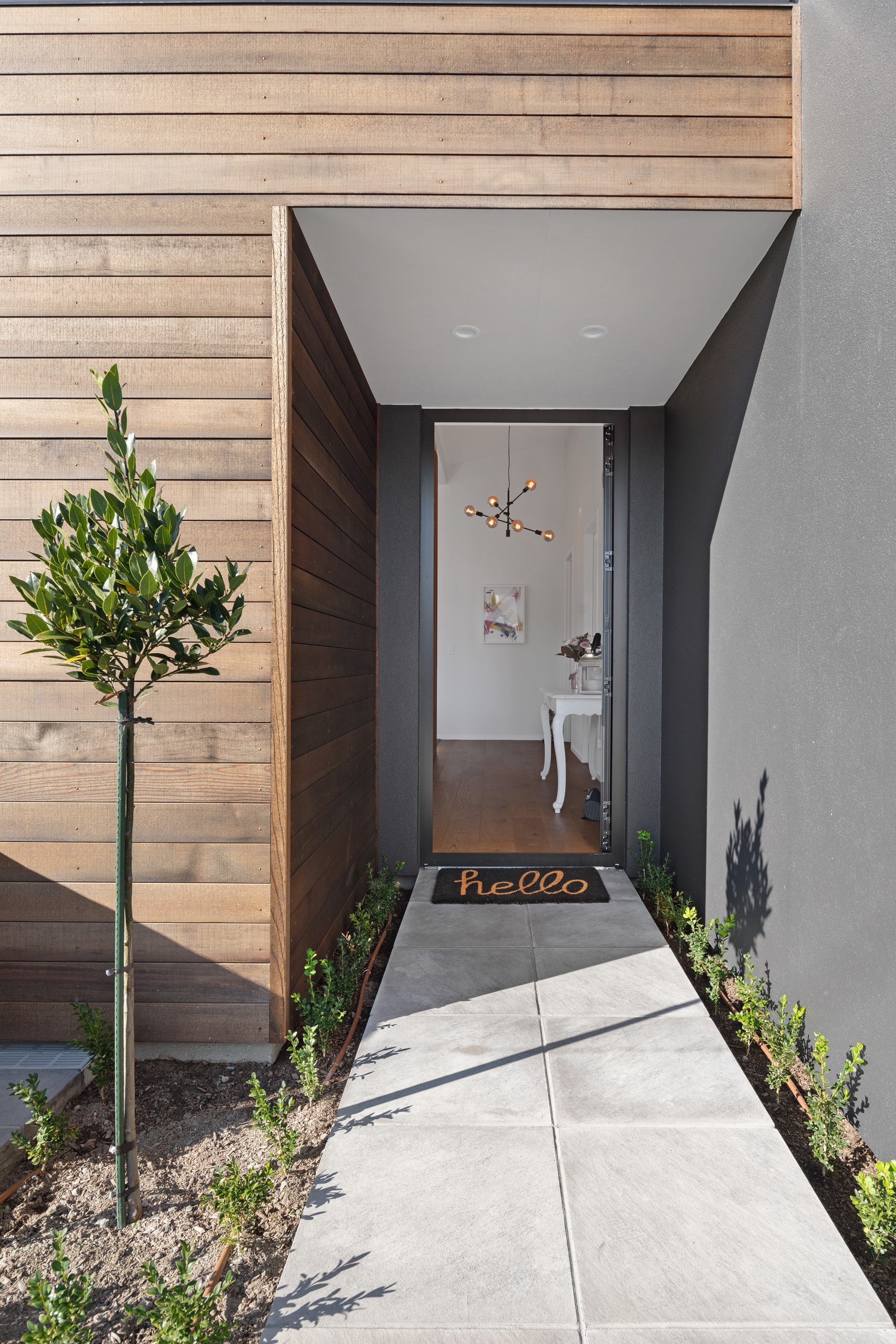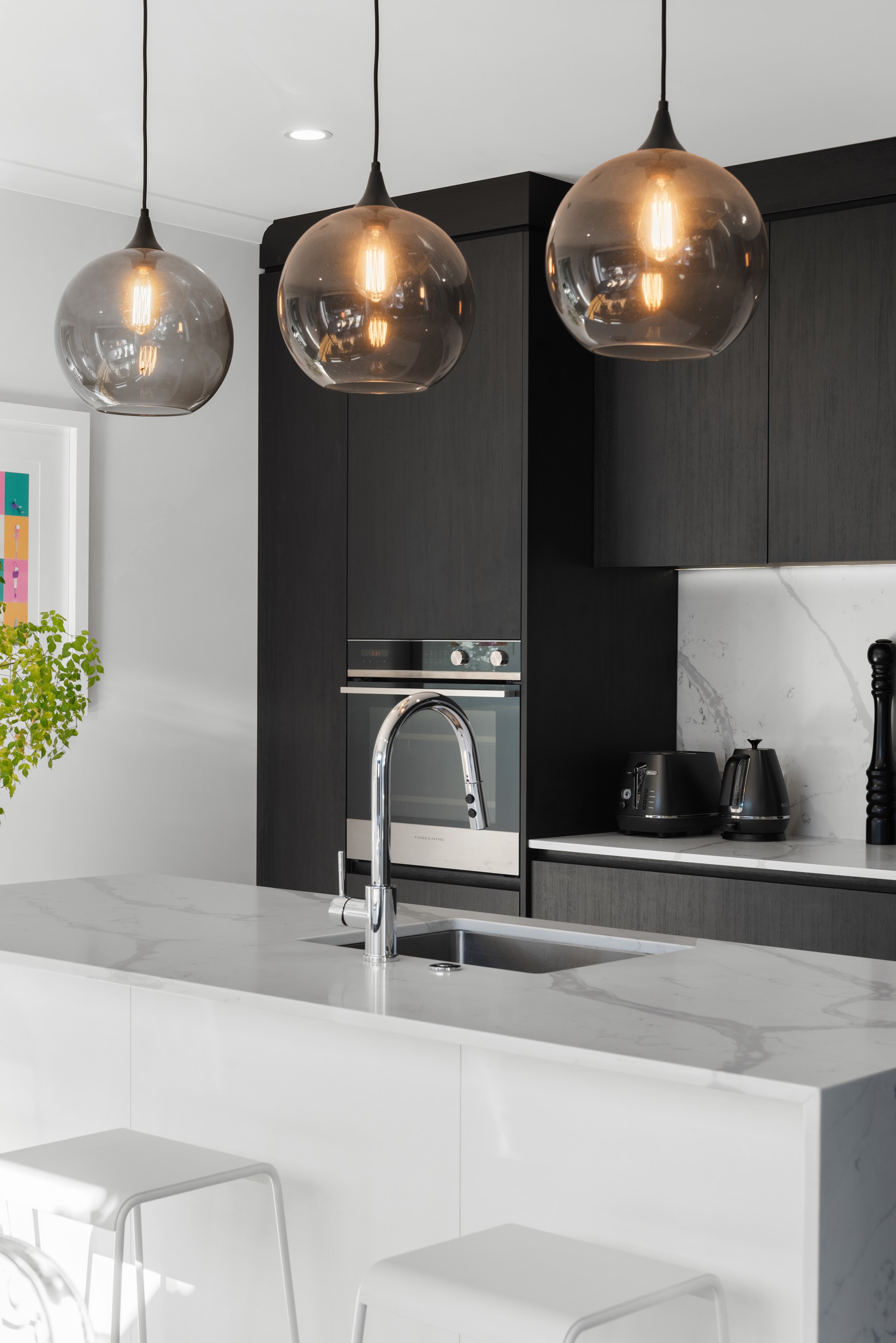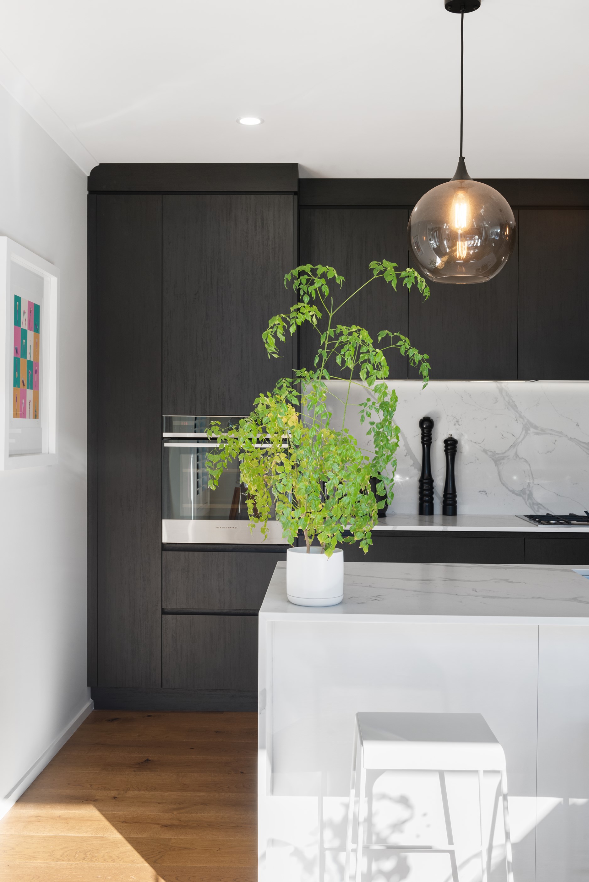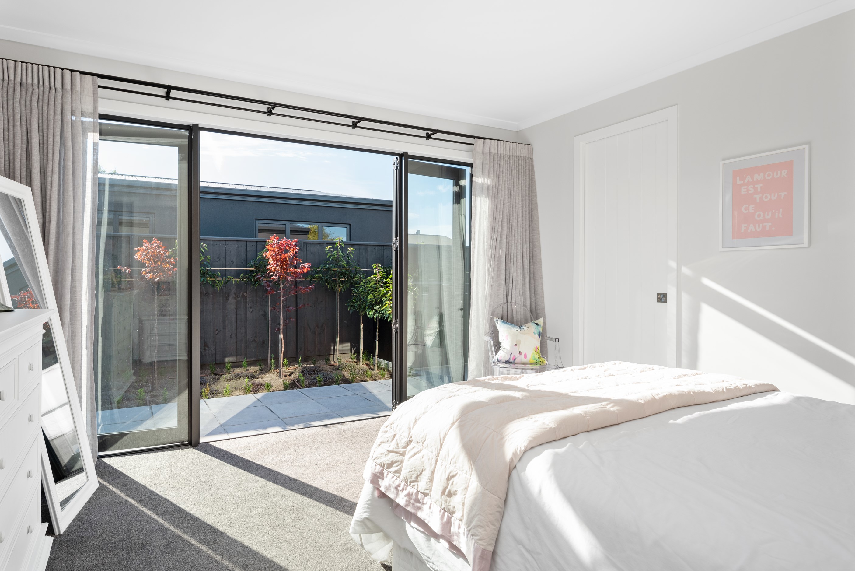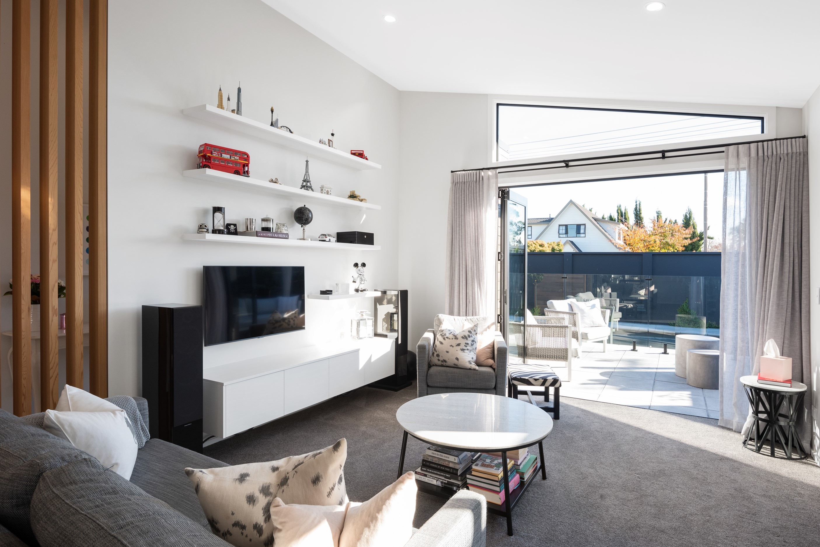 Sleek, ultra-modern and with a plunge pool, this three-bedroom house covers every base. From the outside, the 204sqm residence is all clean lines and handsome dark features punctuated with timber accents. Inside, the theme continues within light and airy spaces, thanks to raking ceilings, a pale wall palette and sliders that encourage the Marlborough sunshine inside. A decorative cedar screen separates the entry from the living space, which features a raking window. Stepping into the living area, the window seat offers just the spot to bask in the sun with a book in hand. The matching engineered stone benchtops and splashback set the scene in the kitchen, which has contrasting dark cabinetry, a gas cooktop, integrated dishwasher and engineered timber floors. A trio of pendant lights illuminates the island bench. Rooms are linked by a central hall, which is bathed in light thanks to two skylights. Two bathrooms, including an ensuite, have fully tiled showers. You’ll also find a snug/office, separate toilet, laundry and garage.