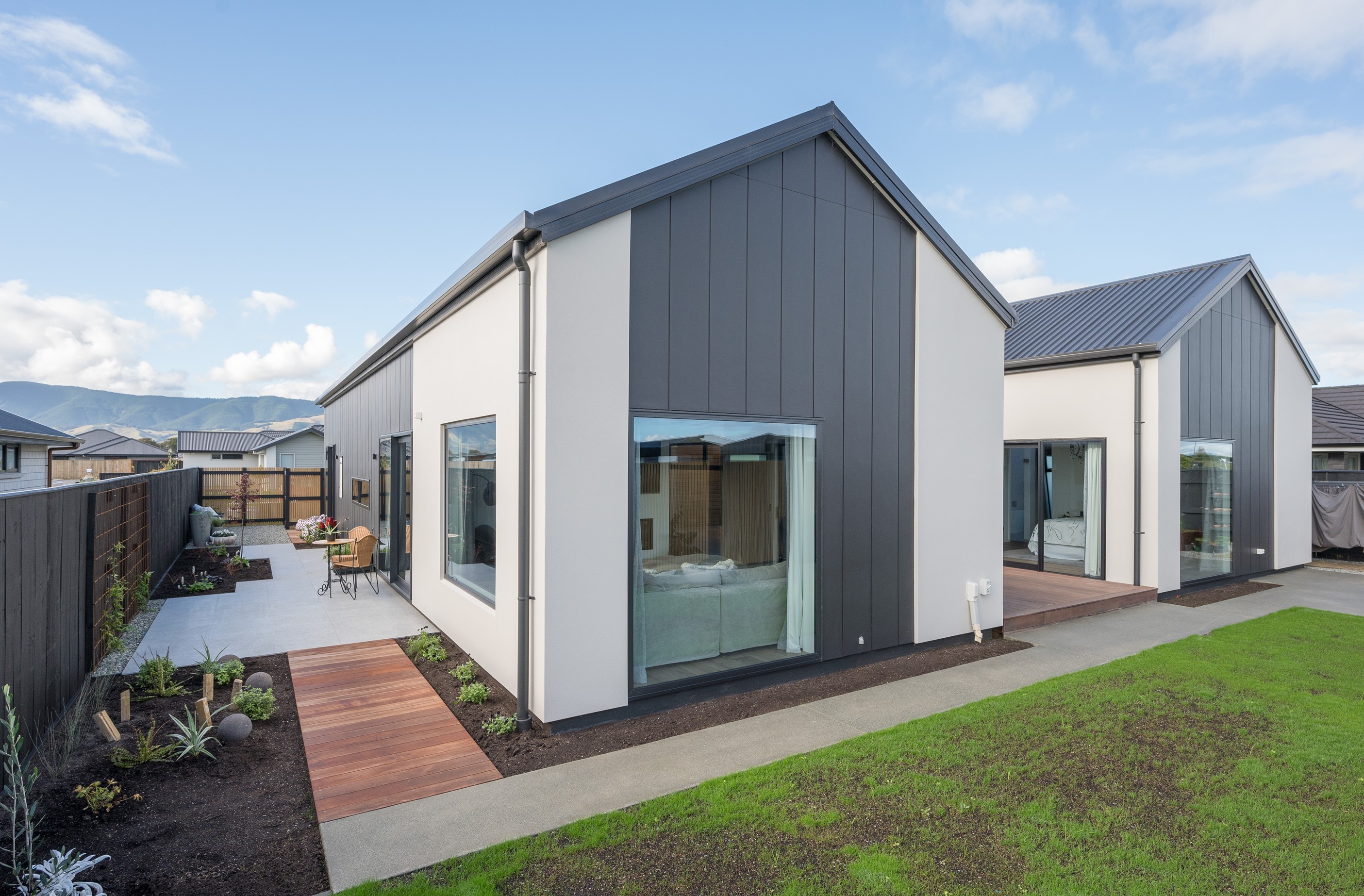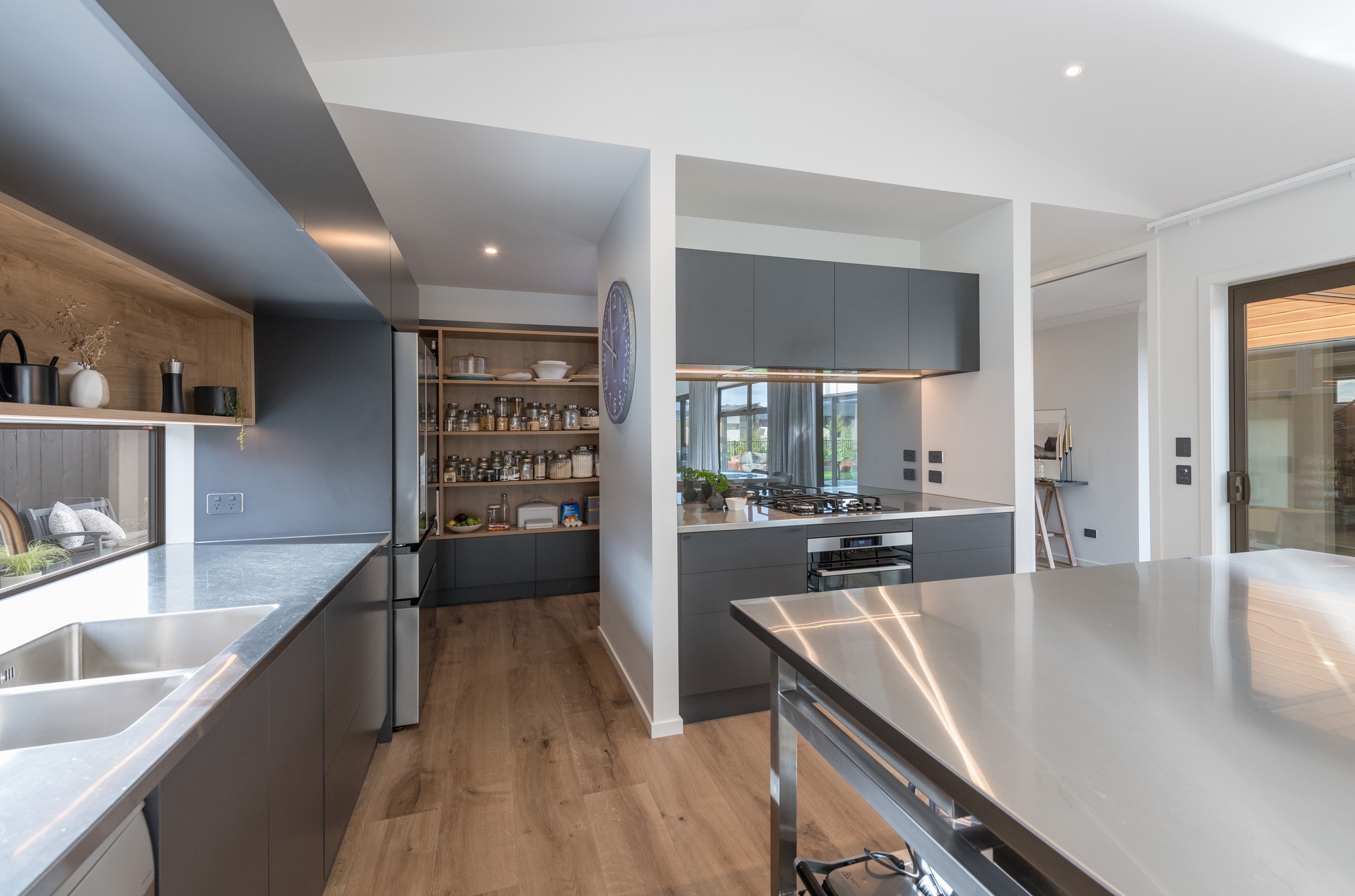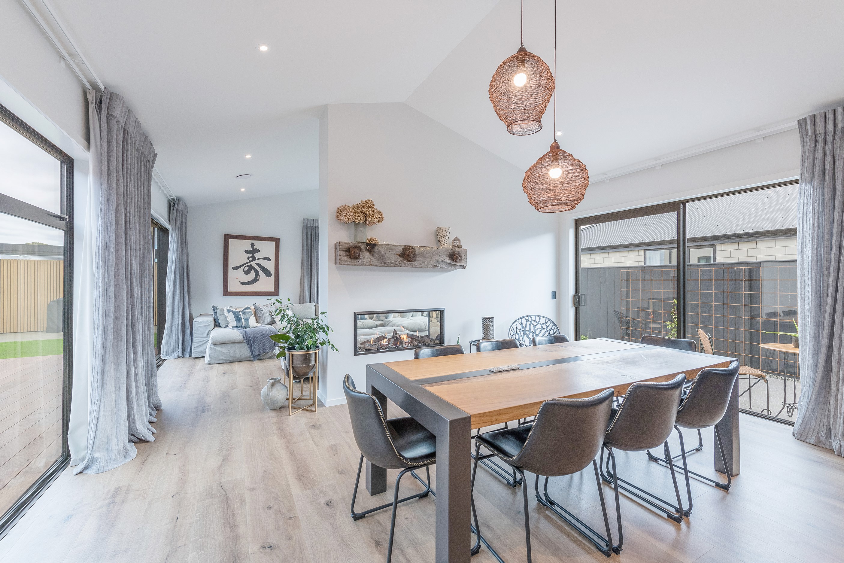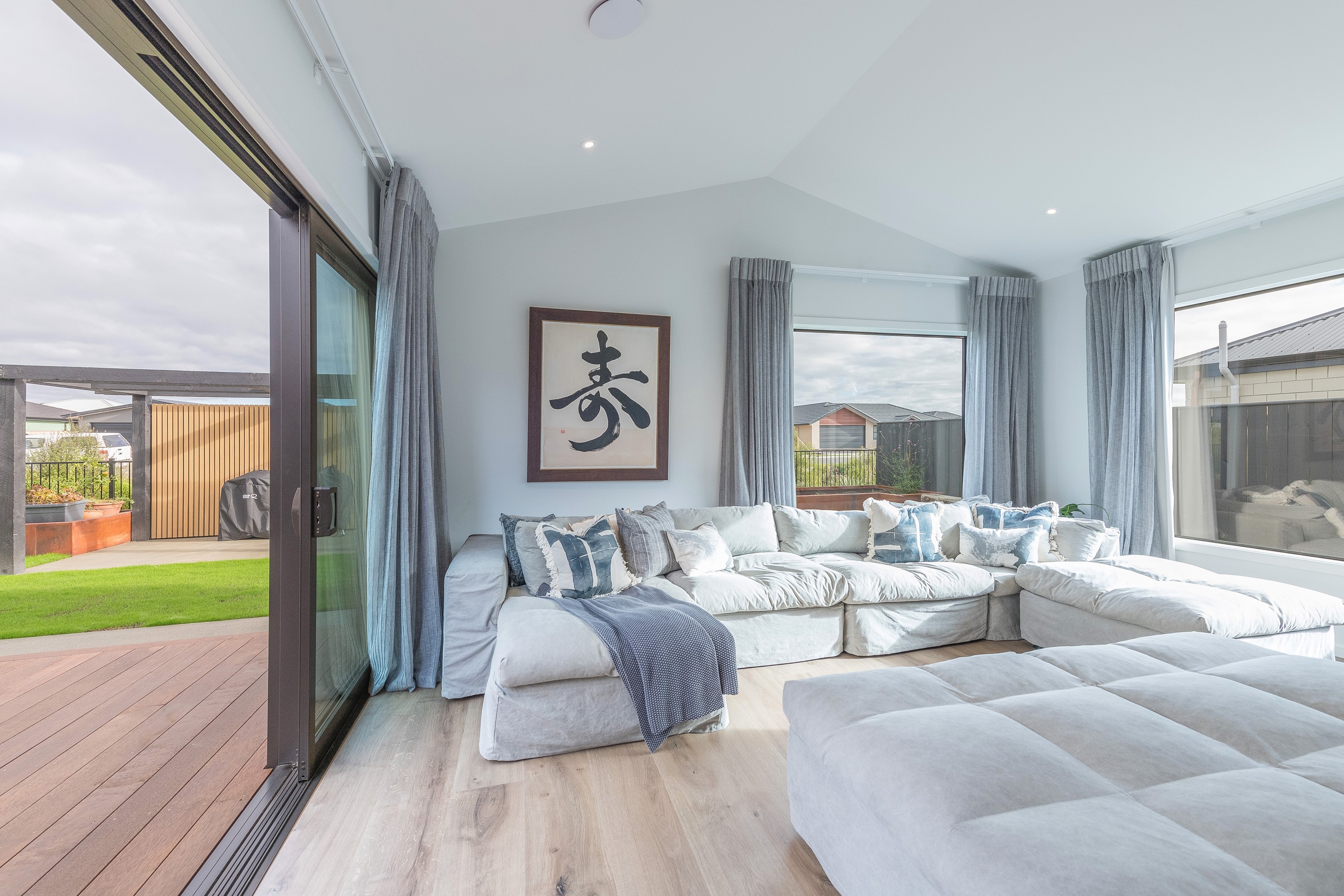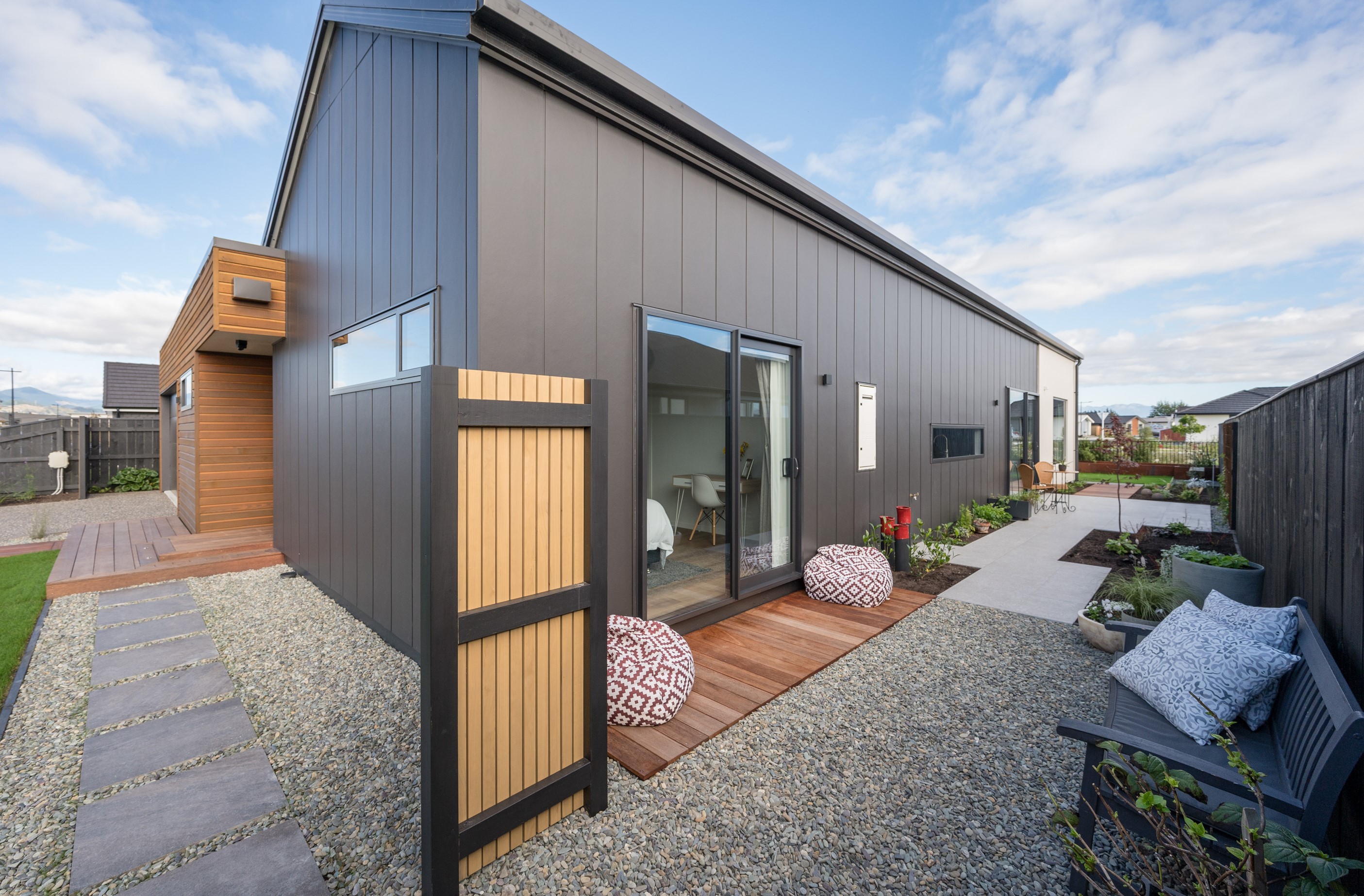 This stunning 221sqm home was architecturally designed for its discerning owners. Moving from a rural property, the couple wanted their home to deliver quality craftsmanship, privacy and multi-purpose spaces. Each has been achieved with style and skill. The exterior of the handsome home is the first hint of quality evident throughout. A sophisticated partnering of cedar and attractive black weatherboards sets the scene. As you step inside, the light-filled and luxurious living spaces are inviting. A double-sided gas fire contributes to the comfort factor. The main bedroom is equally impressive with an extra-large ensuite and walk-in wardrobe. The two other bedrooms are serviced by a bathroom that can also serve as an ensuite. One bedroom is set up for the owners to use as a hobby room and workspace, with shelving and a built-in desk. The main bedroom, kitchen, dining and living spaces all open out to a central decked area, which allows light to flood in and creates fantastic outdoor flow.