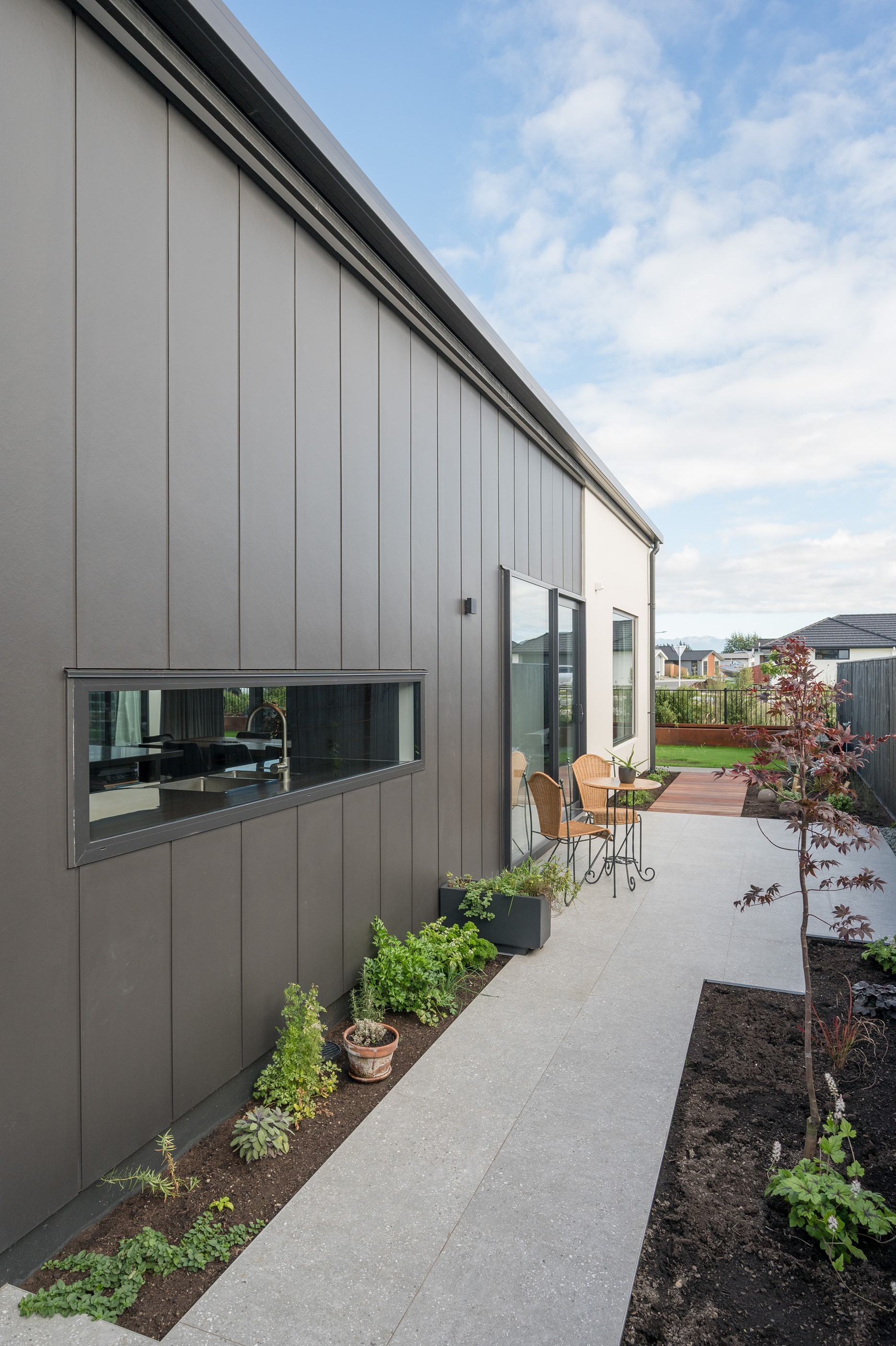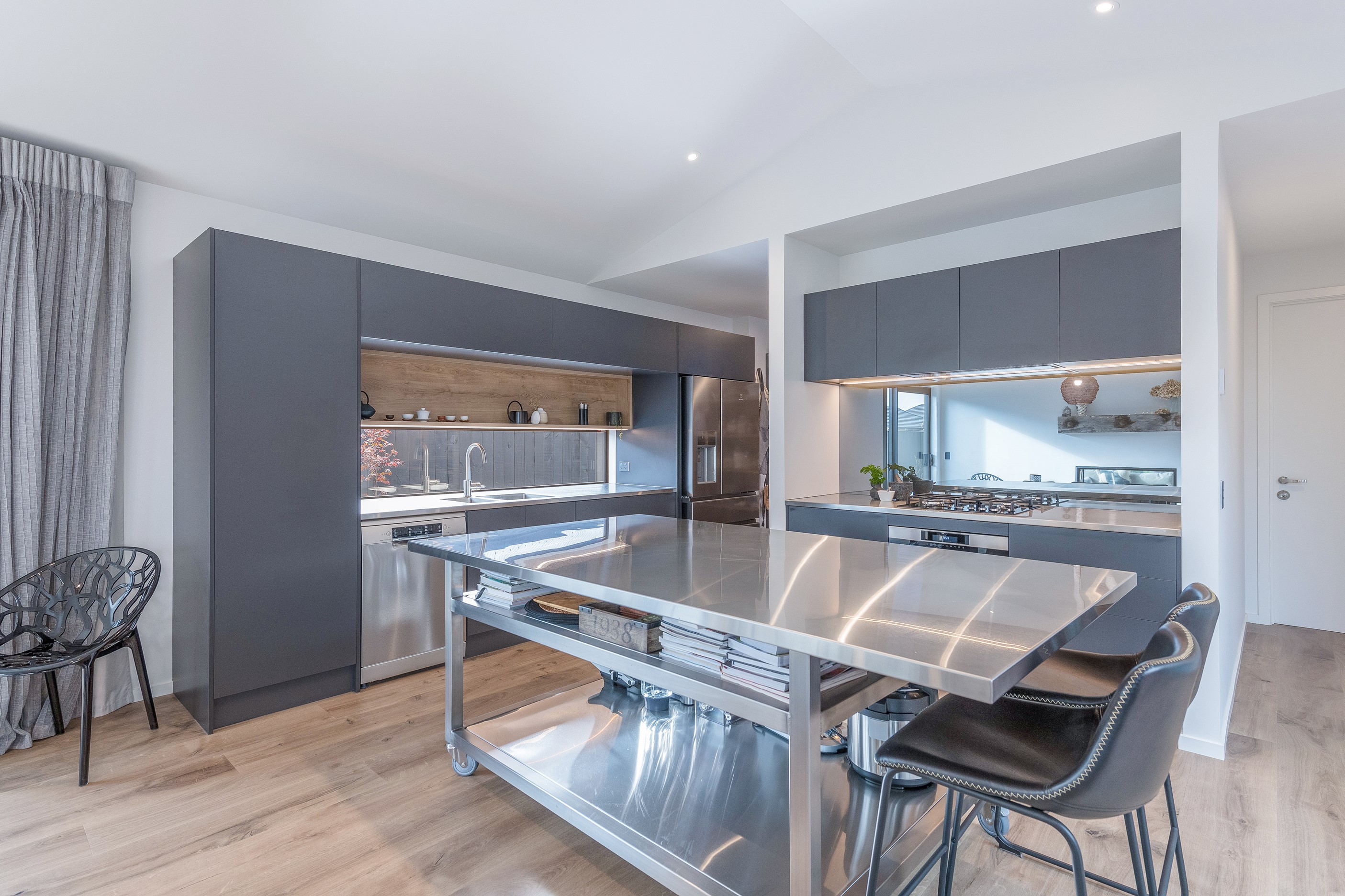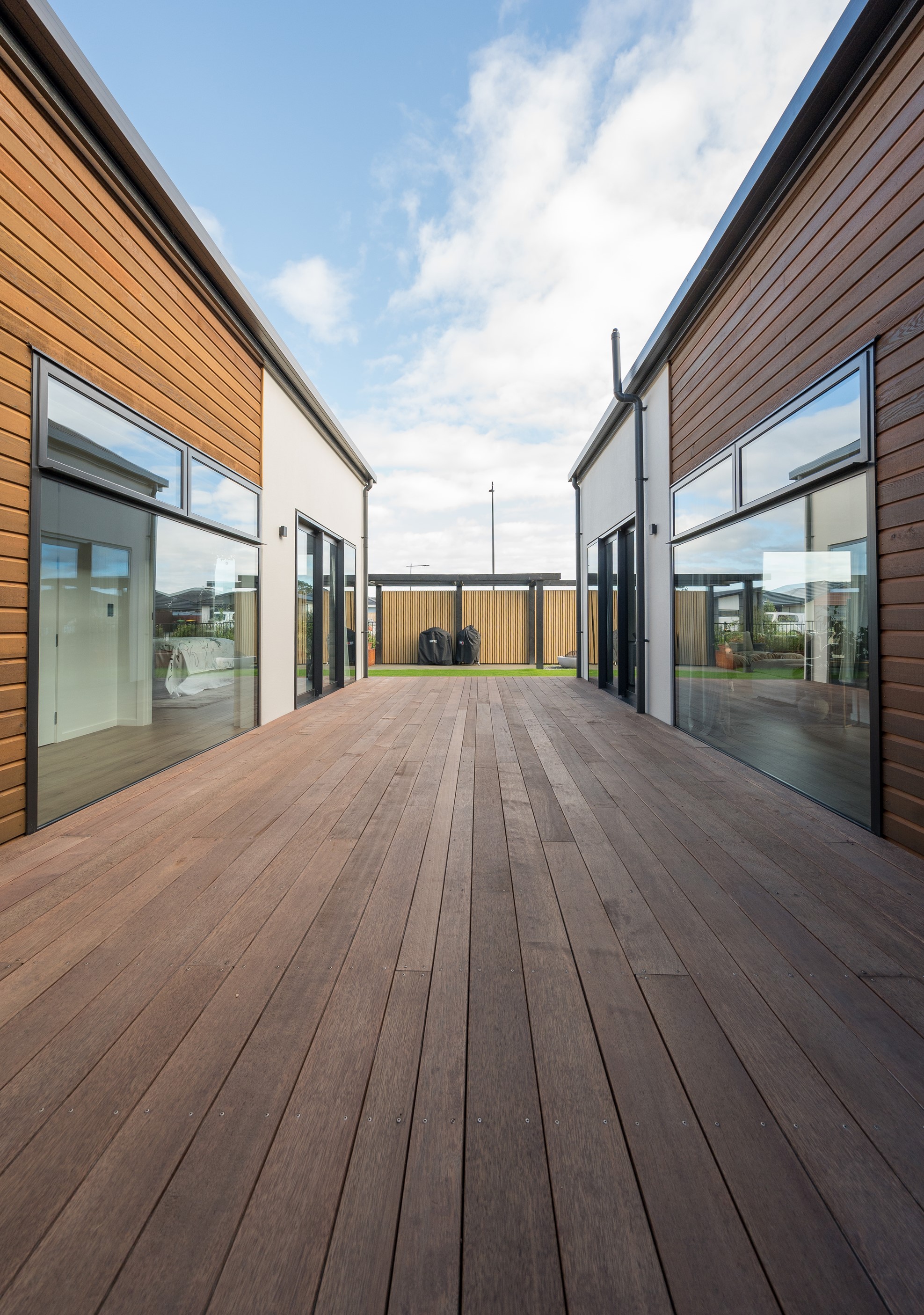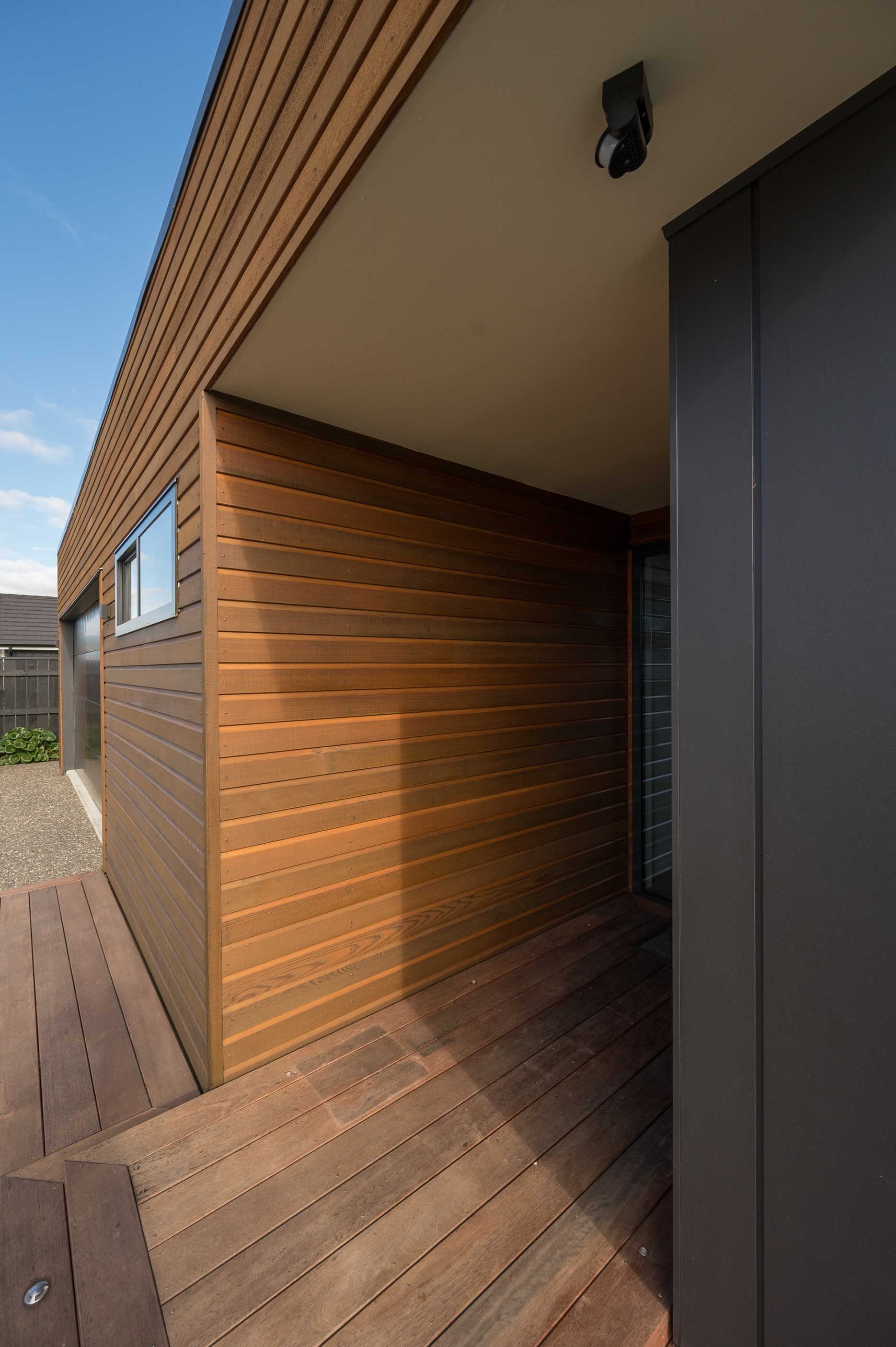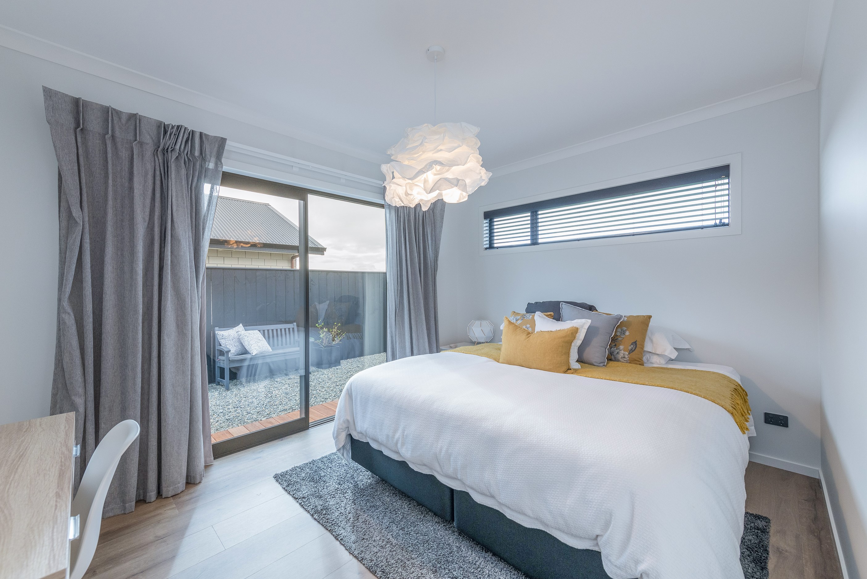 This stunning 221sqm home was architecturally designed for its discerning owners. Moving from a rural property, the couple wanted their home to deliver quality craftsmanship, privacy and multi-purpose spaces. Each has been achieved with style and skill. The exterior of the handsome home is the first hint of quality evident throughout. A sophisticated partnering of cedar and attractive black weatherboards sets the scene. As you step inside, the light-filled and luxurious living spaces are inviting. A double-sided gas fire contributes to the comfort factor. The main bedroom is equally impressive with an extra-large ensuite and walk-in wardrobe. The two other bedrooms are serviced by a bathroom that can also serve as an ensuite. One bedroom is set up for the owners to use as a hobby room and workspace, with shelving and a built-in desk. The main bedroom, kitchen, dining and living spaces all open out to a central decked area, which allows light to flood in and creates fantastic outdoor flow.