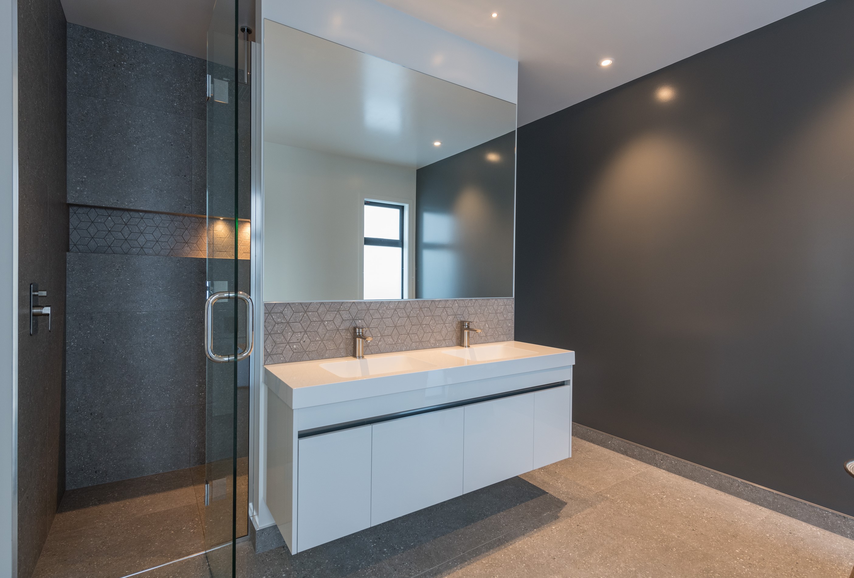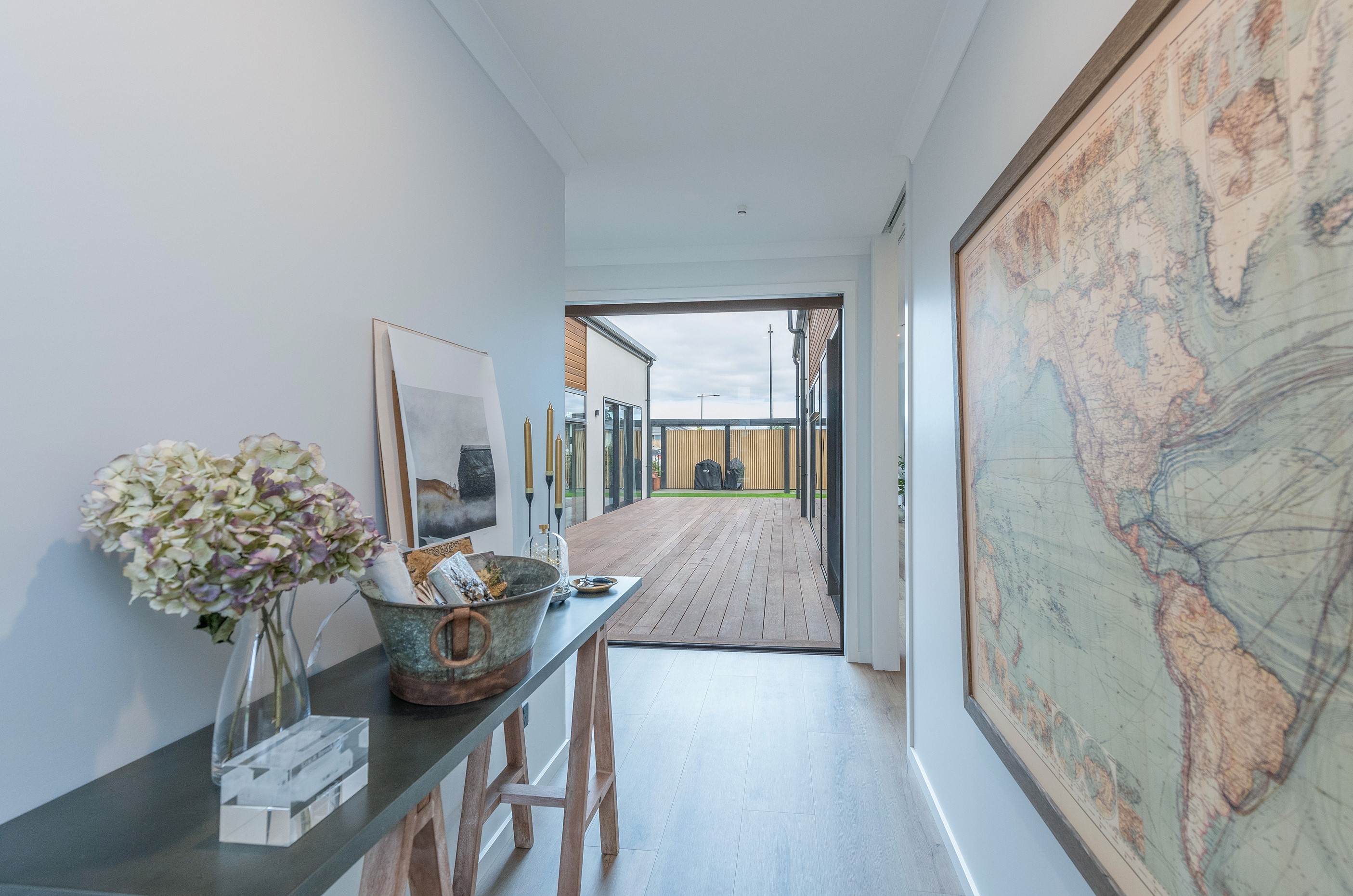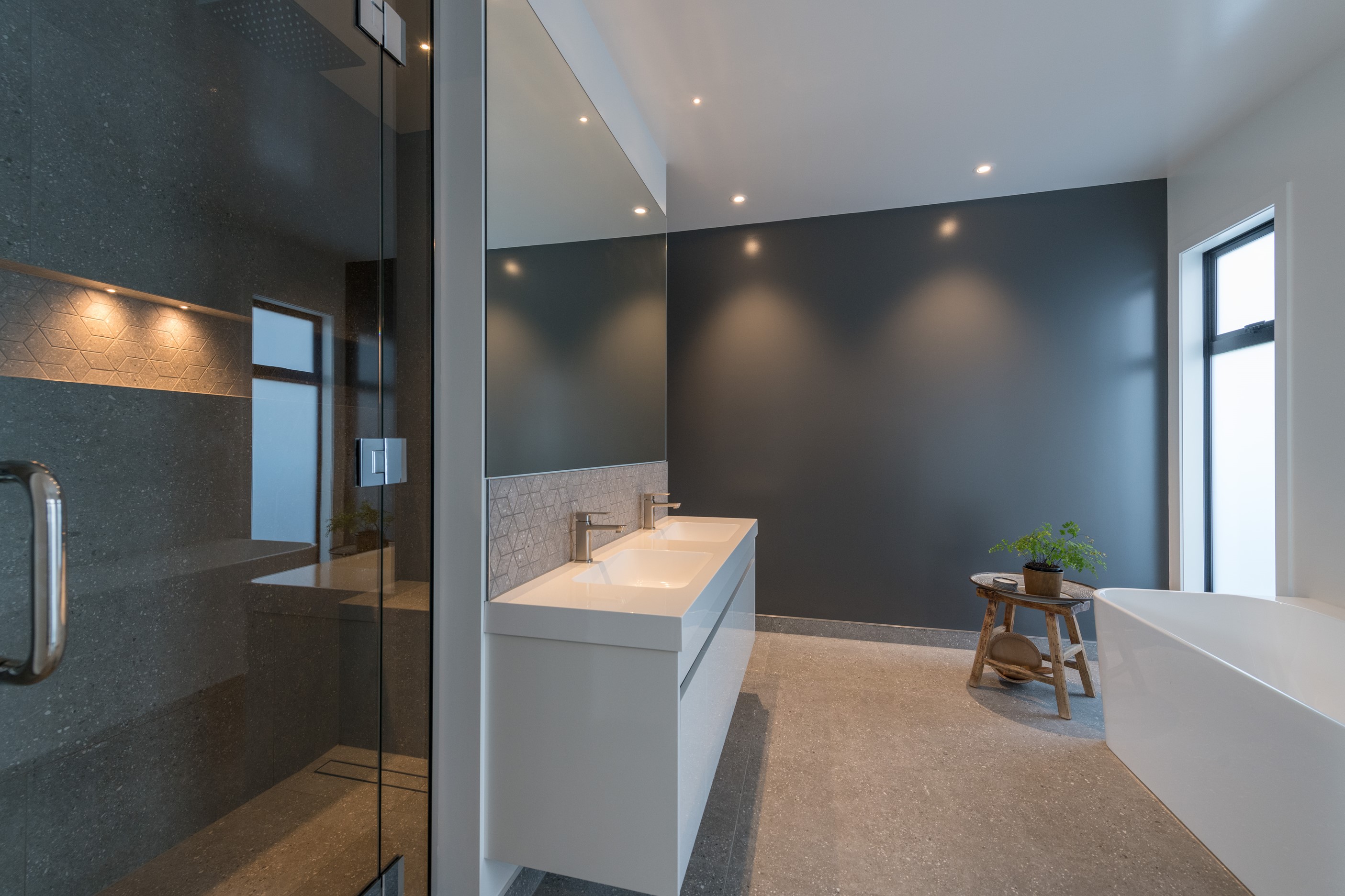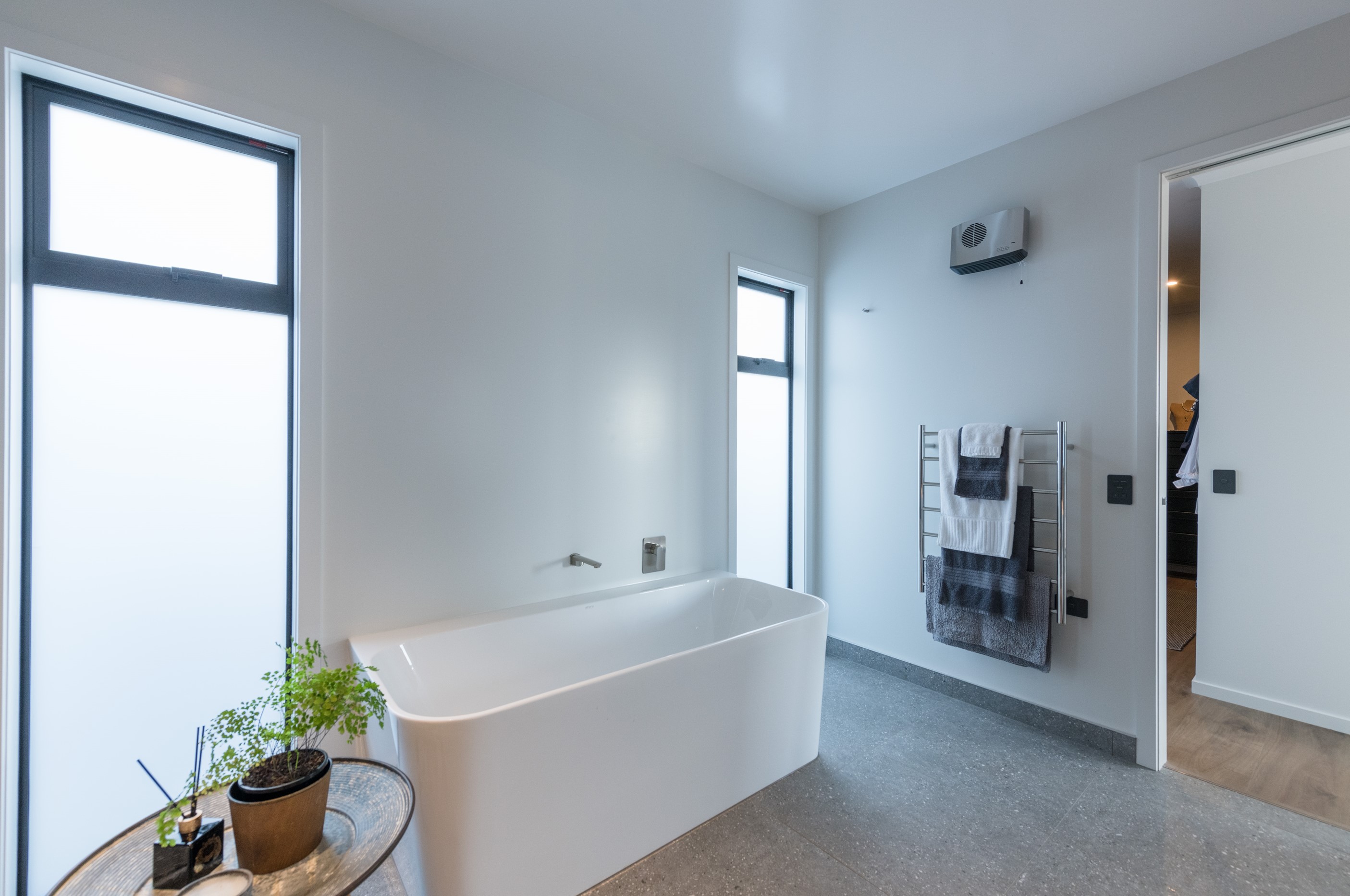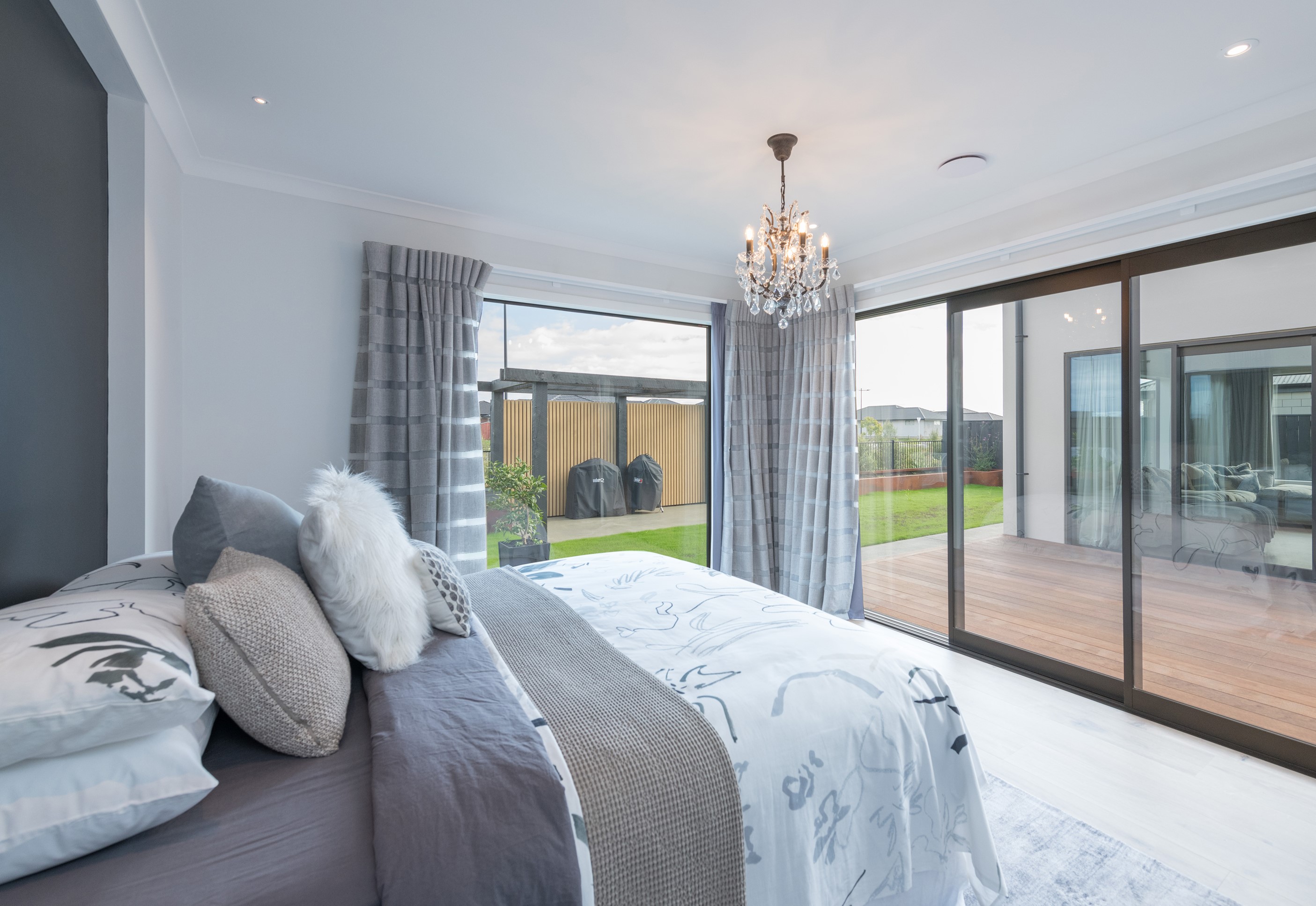 This stunning 221sqm home was architecturally designed for its discerning owners. Moving from a rural property, the couple wanted their home to deliver quality craftsmanship, privacy and multi-purpose spaces. Each has been achieved with style and skill. The exterior of the handsome home is the first hint of quality evident throughout. A sophisticated partnering of cedar and attractive black weatherboards sets the scene. As you step inside, the light-filled and luxurious living spaces are inviting. A double-sided gas fire contributes to the comfort factor. The main bedroom is equally impressive with an extra-large ensuite and walk-in wardrobe. The two other bedrooms are serviced by a bathroom that can also serve as an ensuite. One bedroom is set up for the owners to use as a hobby room and workspace, with shelving and a built-in desk. The main bedroom, kitchen, dining and living spaces all open out to a central decked area, which allows light to flood in and creates fantastic outdoor flow.