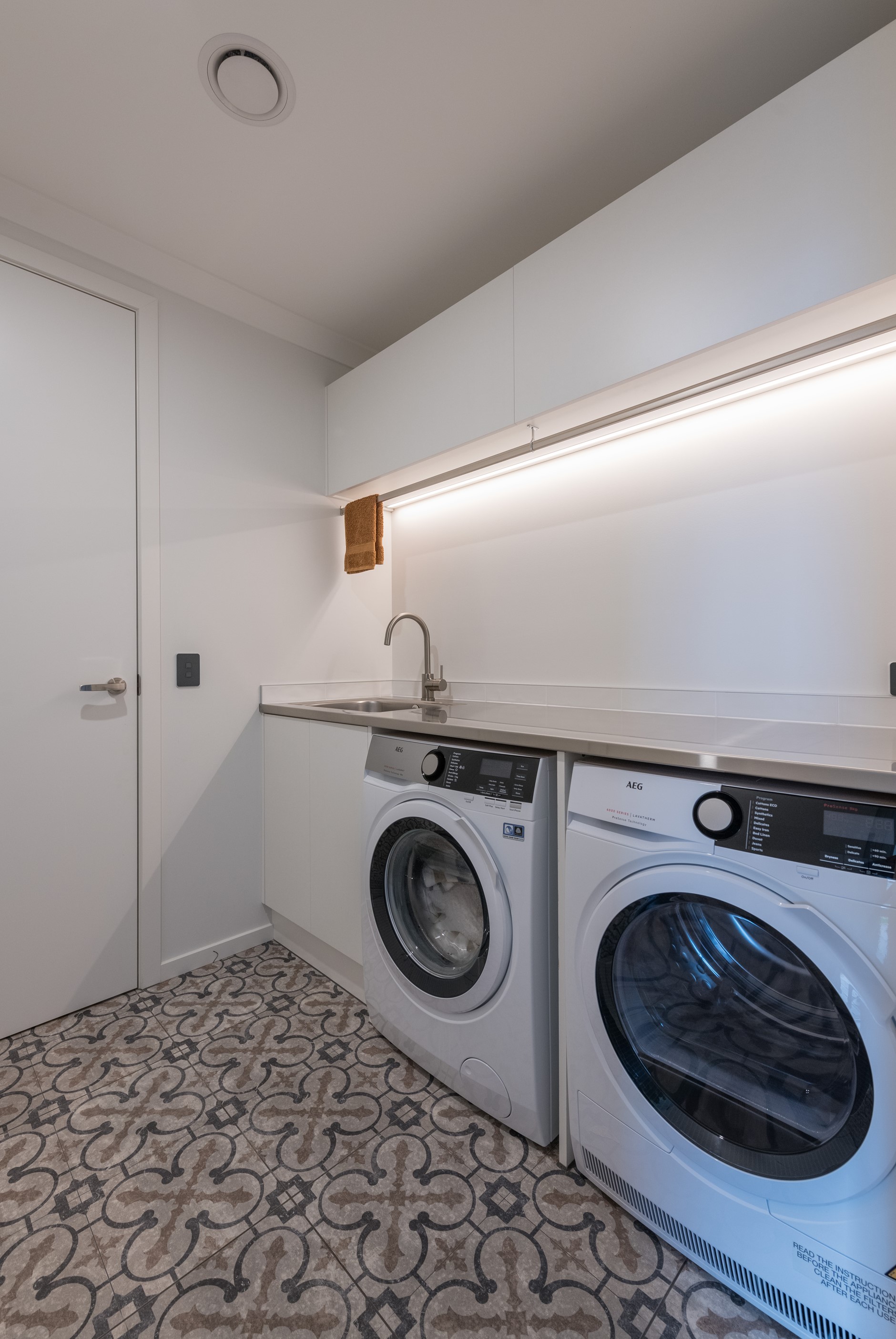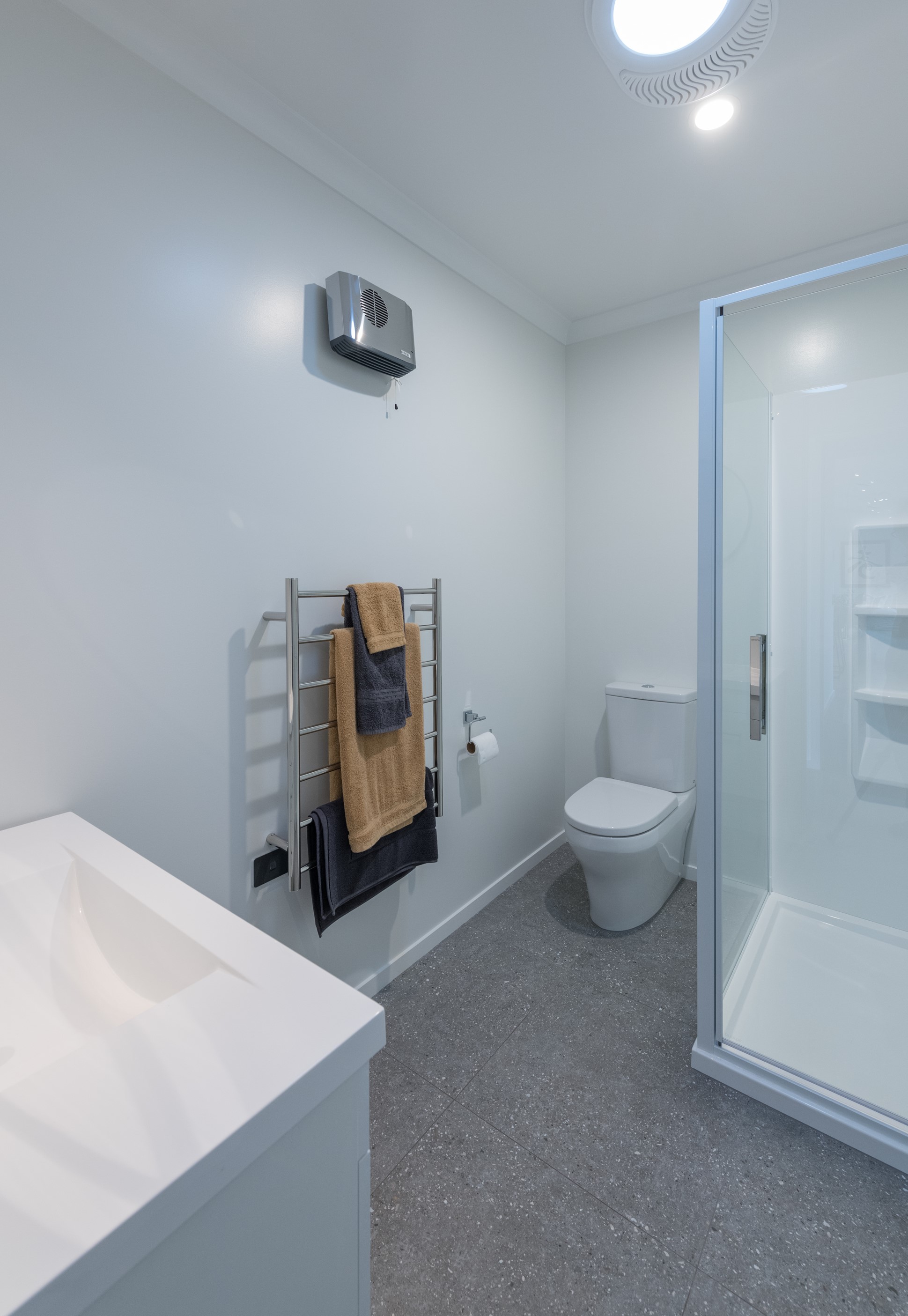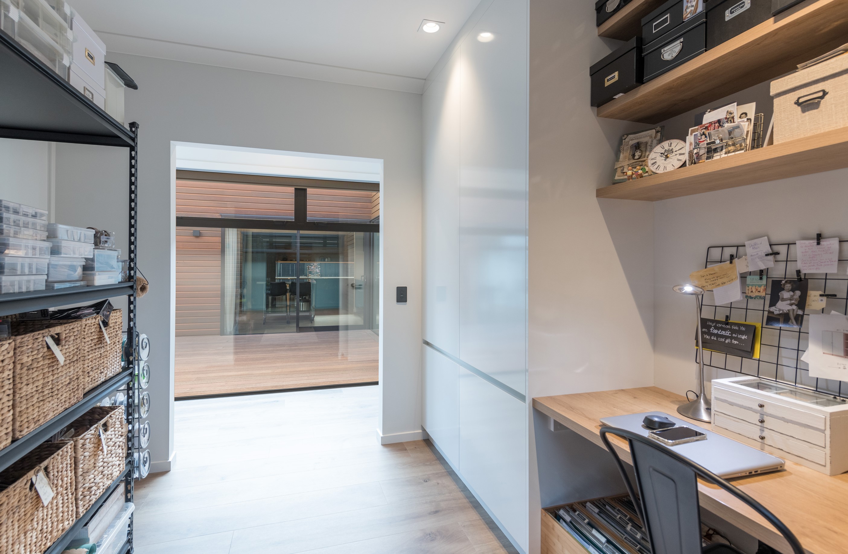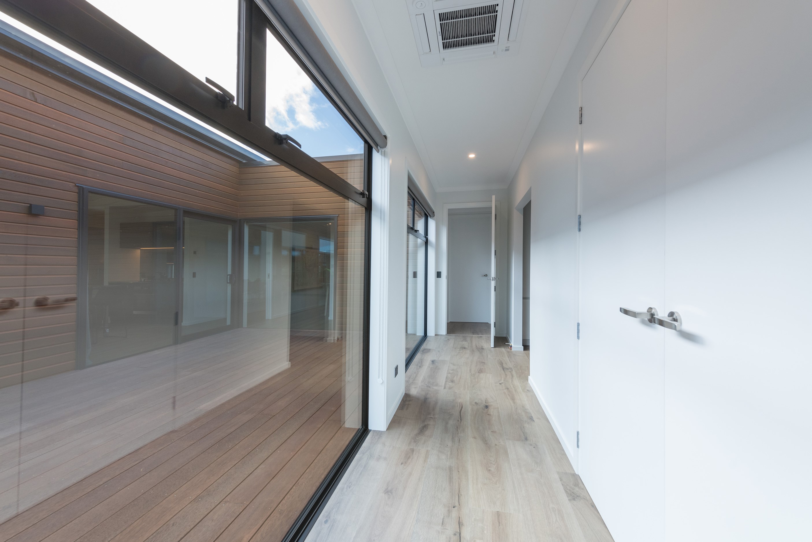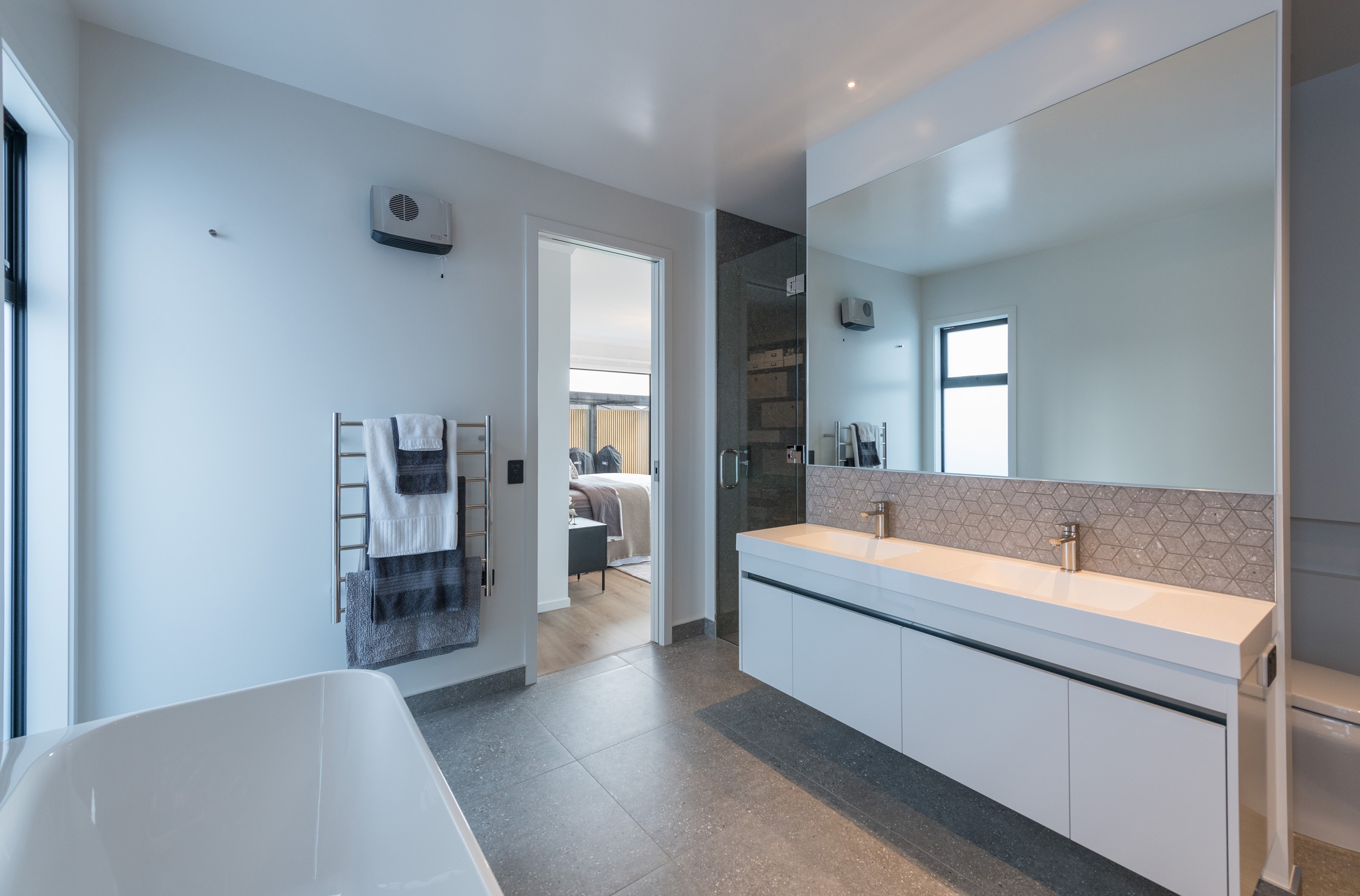 This stunning 221sqm home was architecturally designed for its discerning owners. Moving from a rural property, the couple wanted their home to deliver quality craftsmanship, privacy and multi-purpose spaces. Each has been achieved with style and skill. The exterior of the handsome home is the first hint of quality evident throughout. A sophisticated partnering of cedar and attractive black weatherboards sets the scene. As you step inside, the light-filled and luxurious living spaces are inviting. A double-sided gas fire contributes to the comfort factor. The main bedroom is equally impressive with an extra-large ensuite and walk-in wardrobe. The two other bedrooms are serviced by a bathroom that can also serve as an ensuite. One bedroom is set up for the owners to use as a hobby room and workspace, with shelving and a built-in desk. The main bedroom, kitchen, dining and living spaces all open out to a central decked area, which allows light to flood in and creates fantastic outdoor flow.