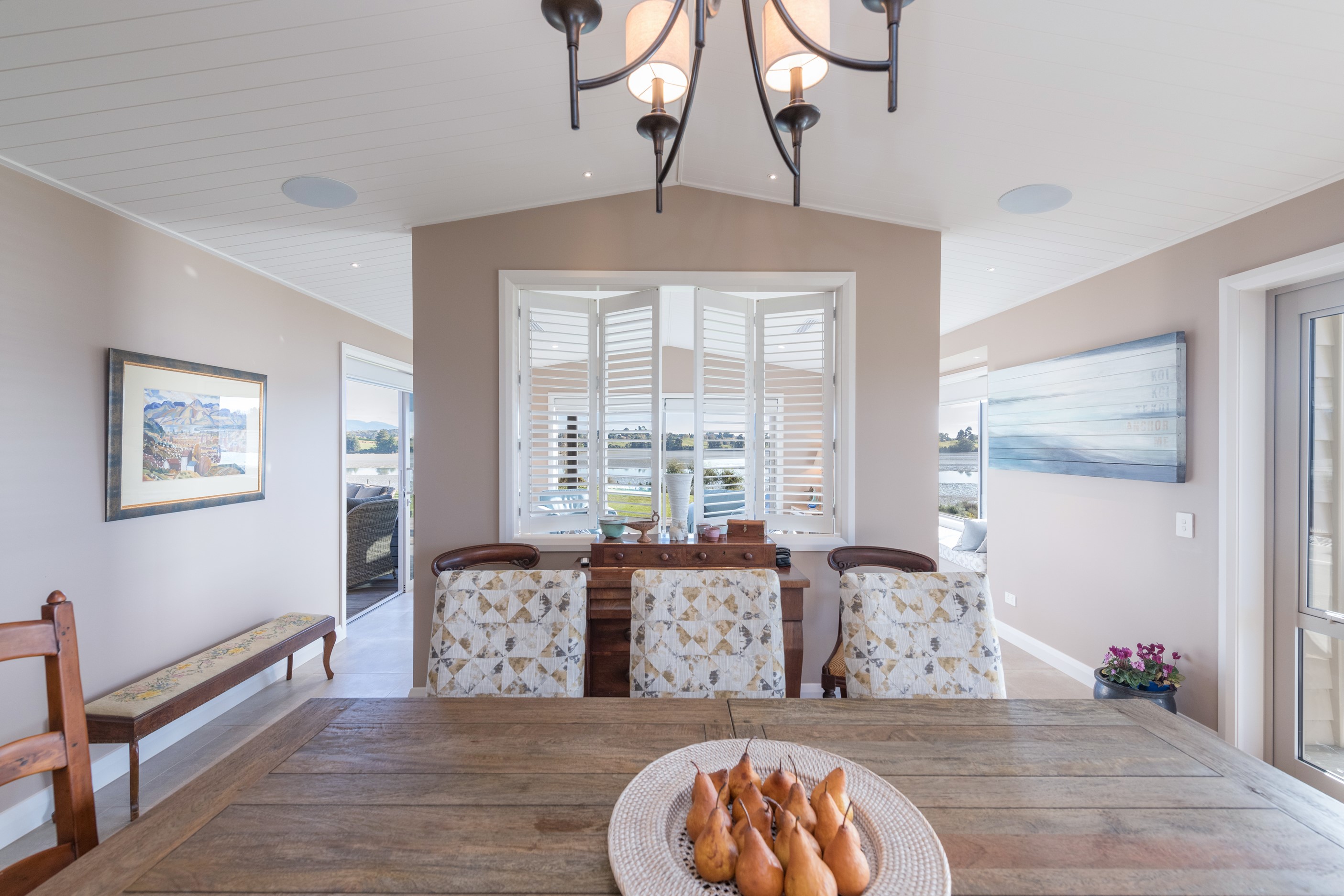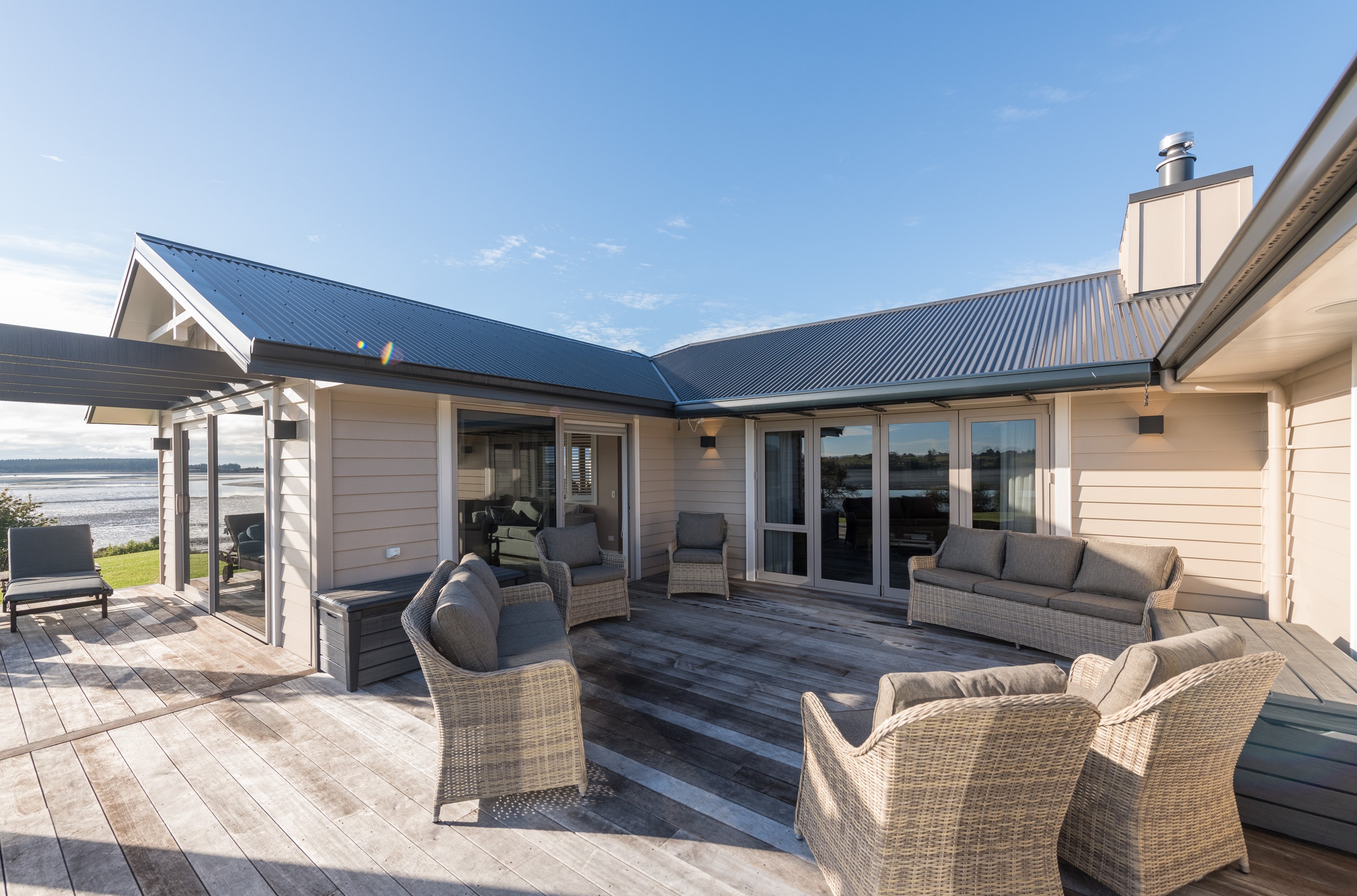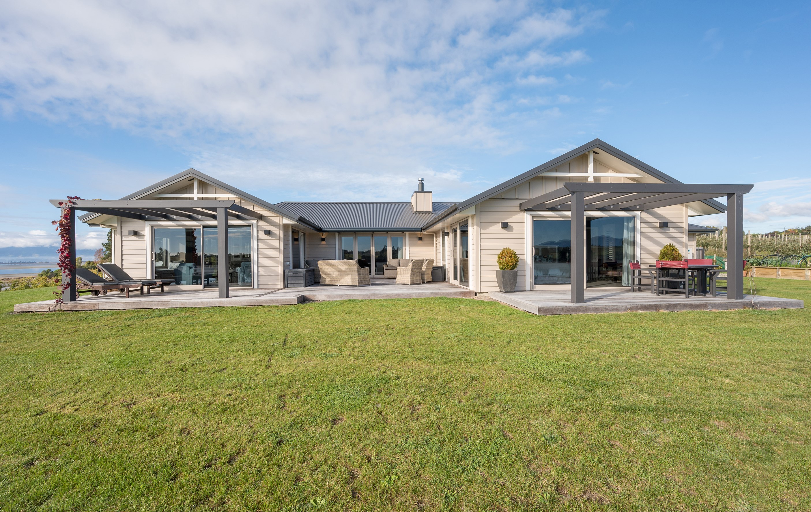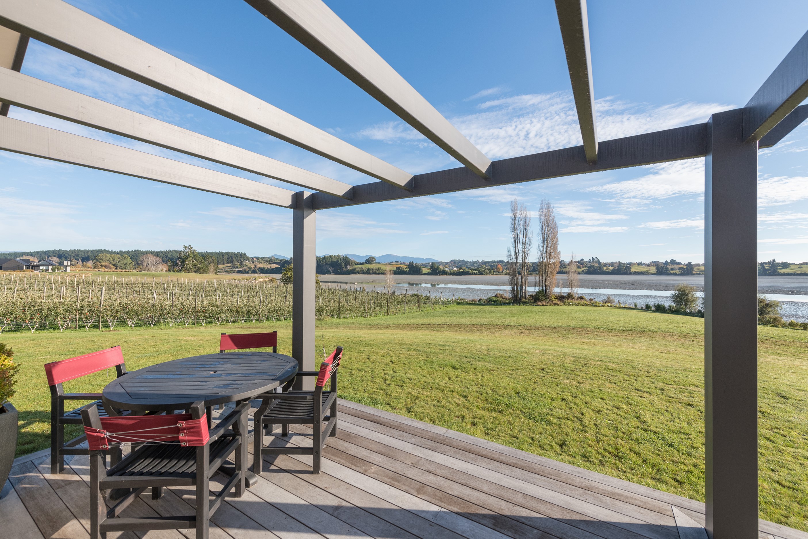 Set on an apple orchard in Mapua, this three-bedroom home is a showcase of refined rural living. Clad in Linea weatherboard with board-and-batten features, the exterior is in harmony with the lovely farmland and Waimea Inlet setting. Stepping inside, the modern farmhouse design unfolds and the layout ensures the water views are on show. The kitchen, at the heart of the home, is positioned for the chef to enjoy those captivating water views. From here, taking meals outdoors is just a few easy steps. The large scullery includes a wine fridge and ample storage. The interior aesthetic is enhanced with features such as the schist fireplace surround in the main lounge. A shuttered dividing wall in the dining area can be closed to provide intimacy or kept open to connect with the living space and views beyond. The three large bedrooms, two bathrooms, and two living areas all enjoy privacy, while also providing unrivalled views. The scenery is on show from various outdoor spaces, including a portico that’s set up for all-weather entertaining. The kwila decks are a pleasure underfoot and on the eye. Warmth, comfort and style are all accommodated.