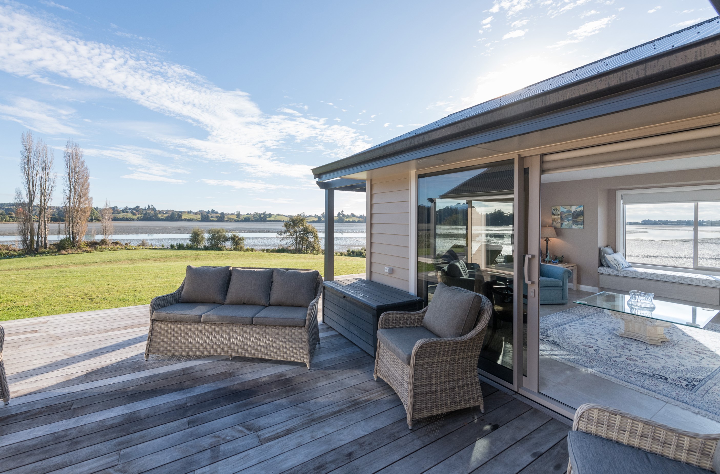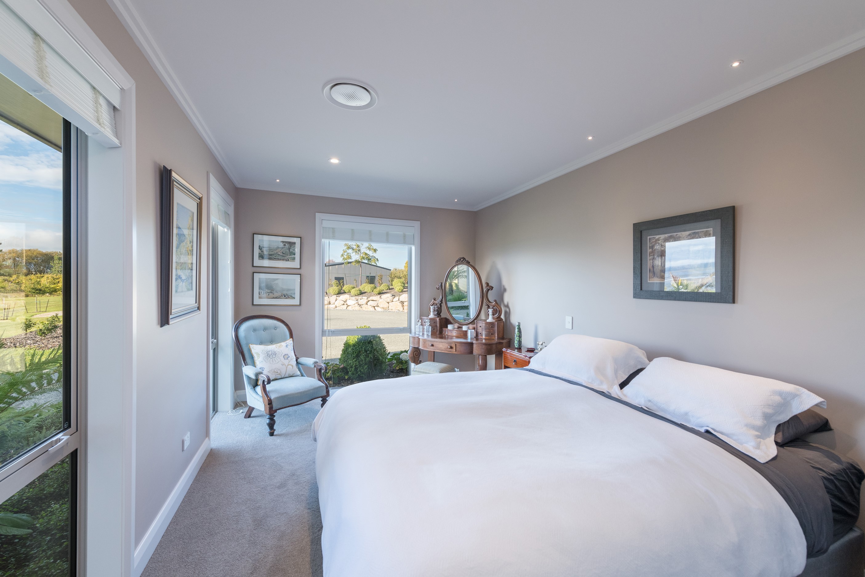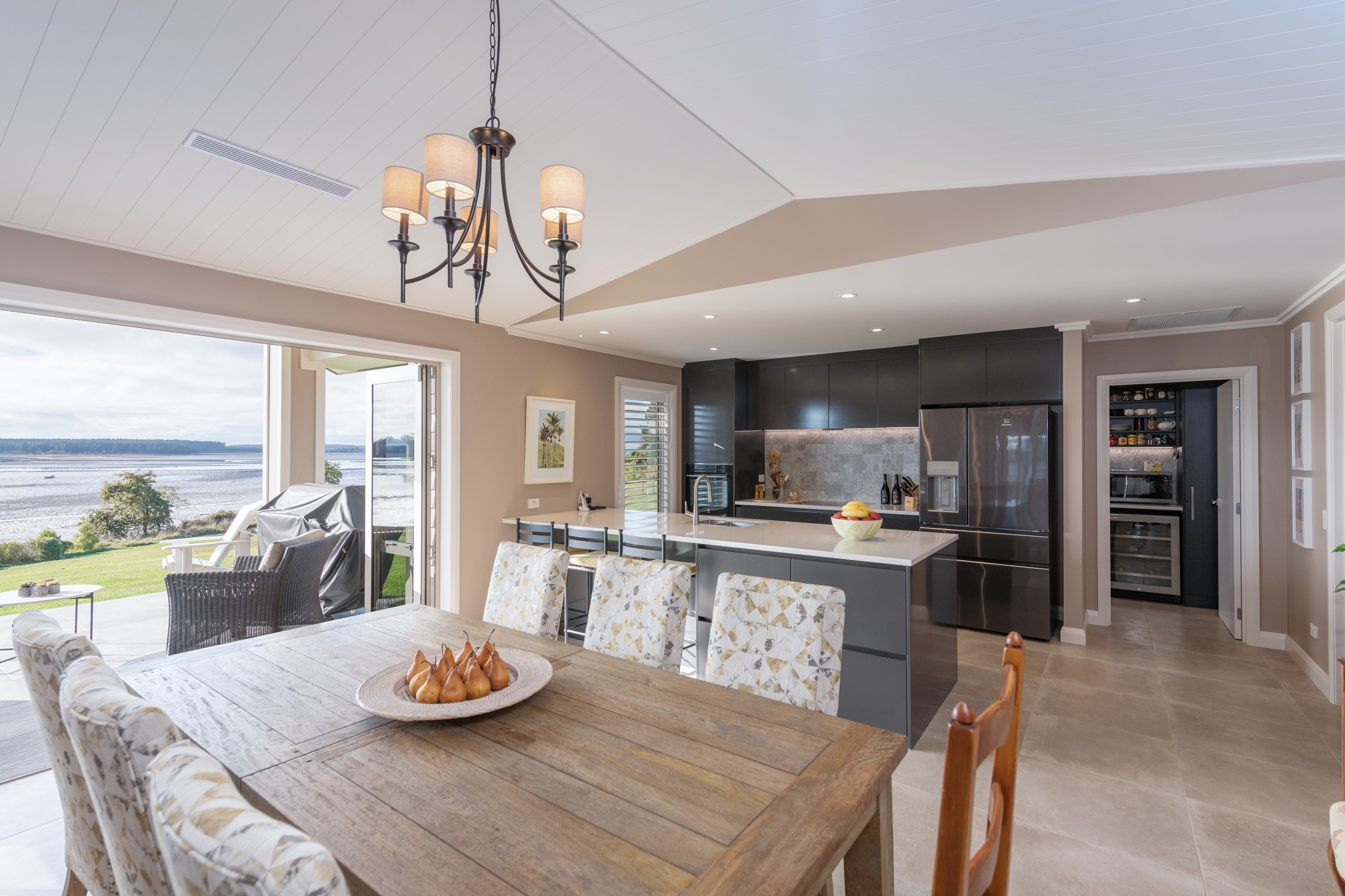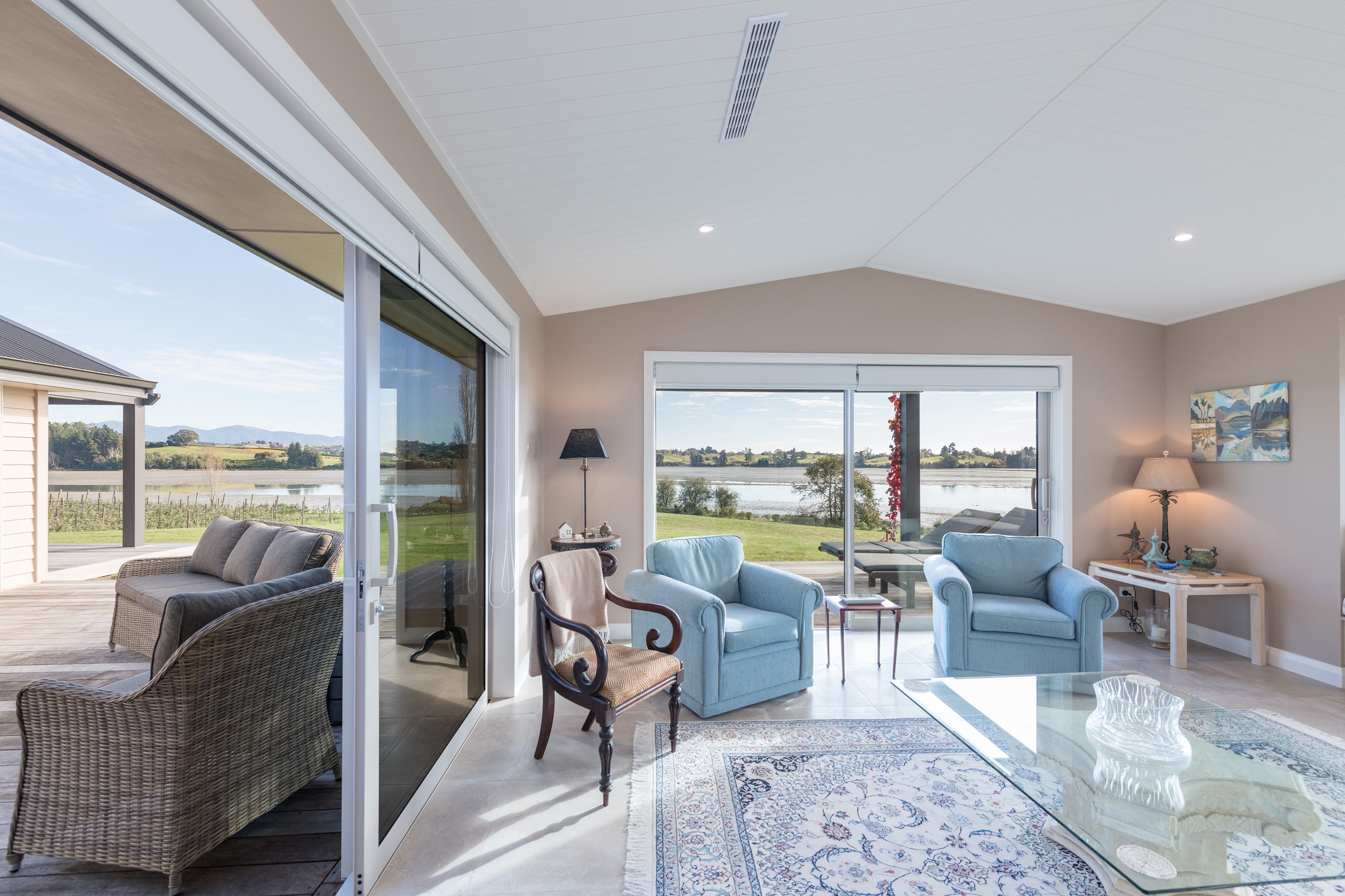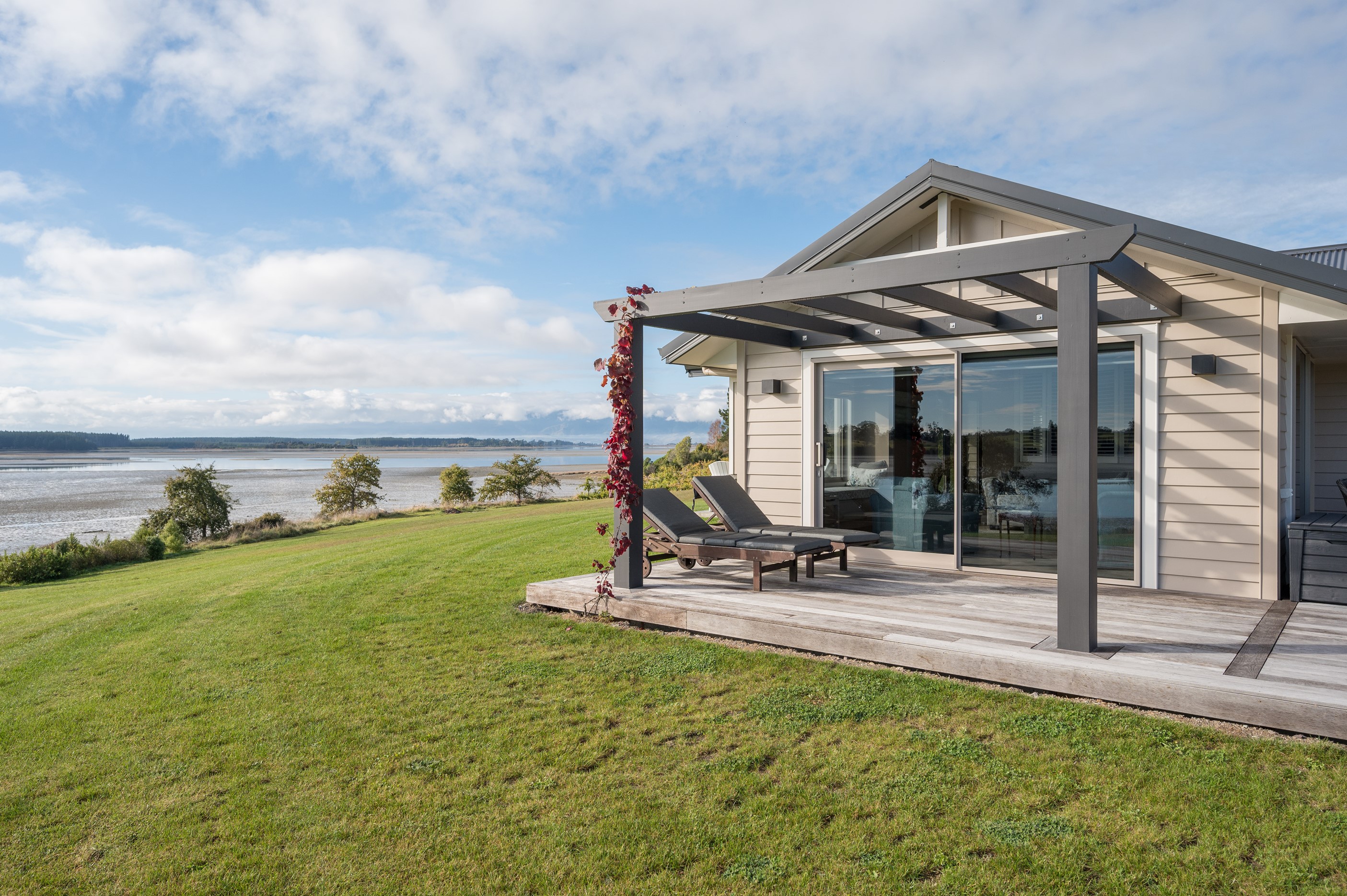 Set on an apple orchard in Mapua, this three-bedroom home is a showcase of refined rural living. Clad in Linea weatherboard with board-and-batten features, the exterior is in harmony with the lovely farmland and Waimea Inlet setting. Stepping inside, the modern farmhouse design unfolds and the layout ensures the water views are on show. The kitchen, at the heart of the home, is positioned for the chef to enjoy those captivating water views. From here, taking meals outdoors is just a few easy steps. The large scullery includes a wine fridge and ample storage. The interior aesthetic is enhanced with features such as the schist fireplace surround in the main lounge. A shuttered dividing wall in the dining area can be closed to provide intimacy or kept open to connect with the living space and views beyond. The three large bedrooms, two bathrooms, and two living areas all enjoy privacy, while also providing unrivalled views. The scenery is on show from various outdoor spaces, including a portico that’s set up for all-weather entertaining. The kwila decks are a pleasure underfoot and on the eye. Warmth, comfort and style are all accommodated.