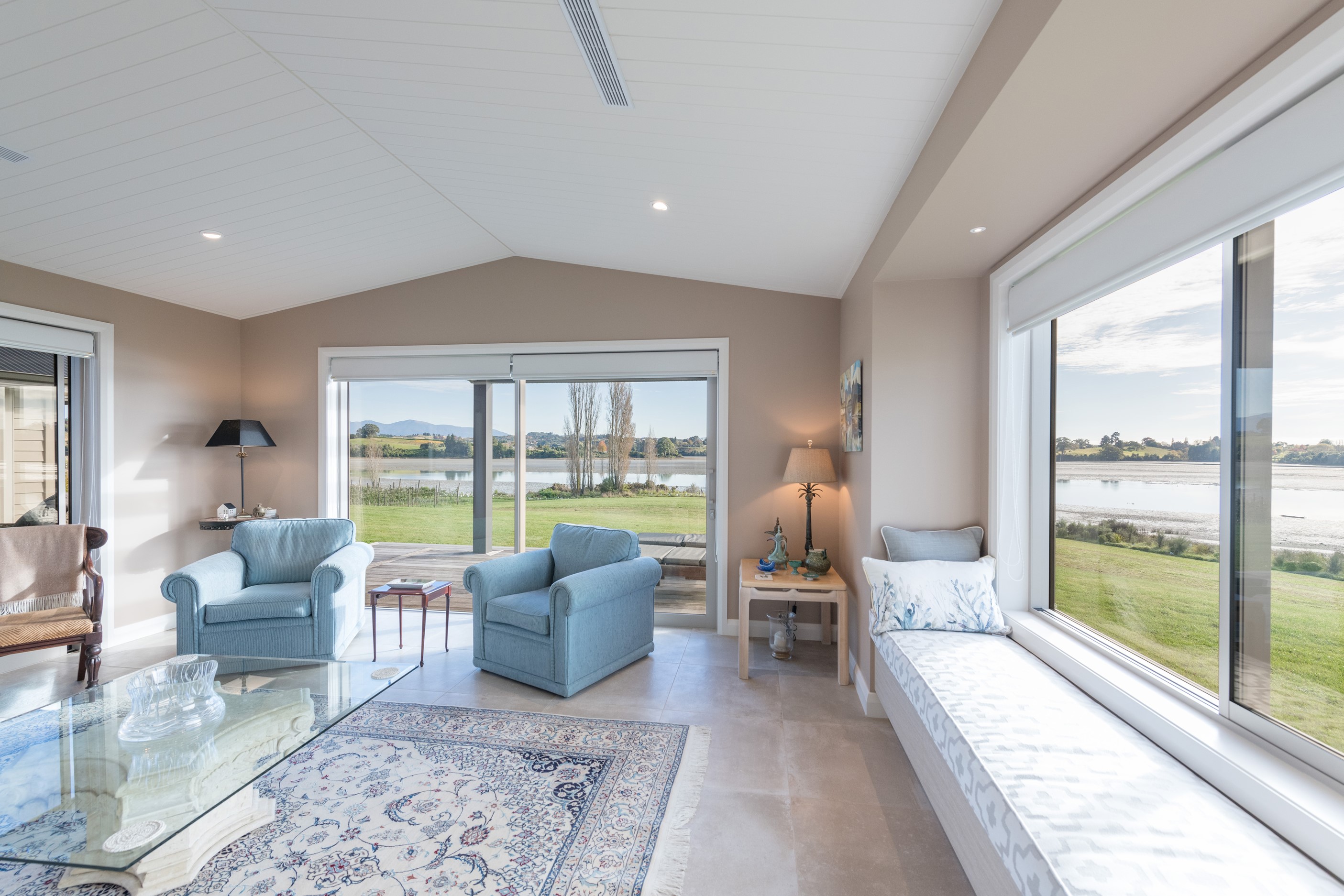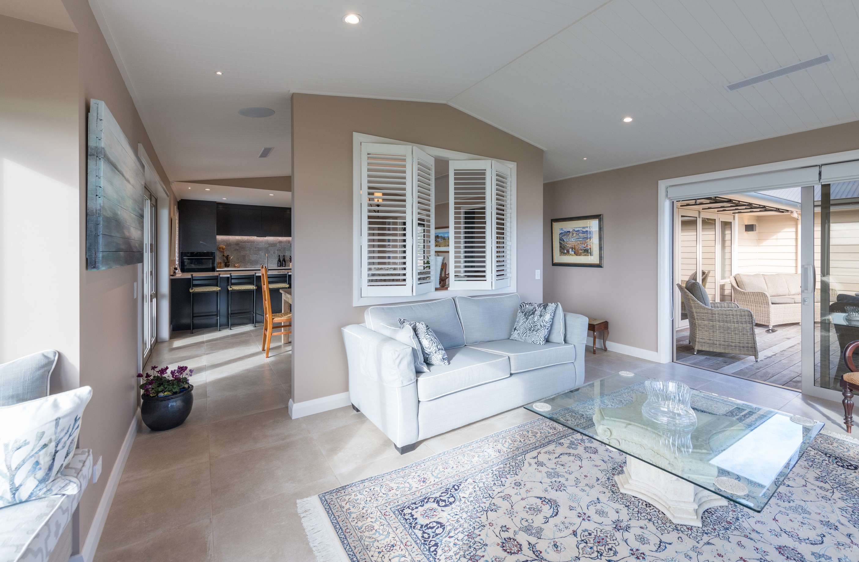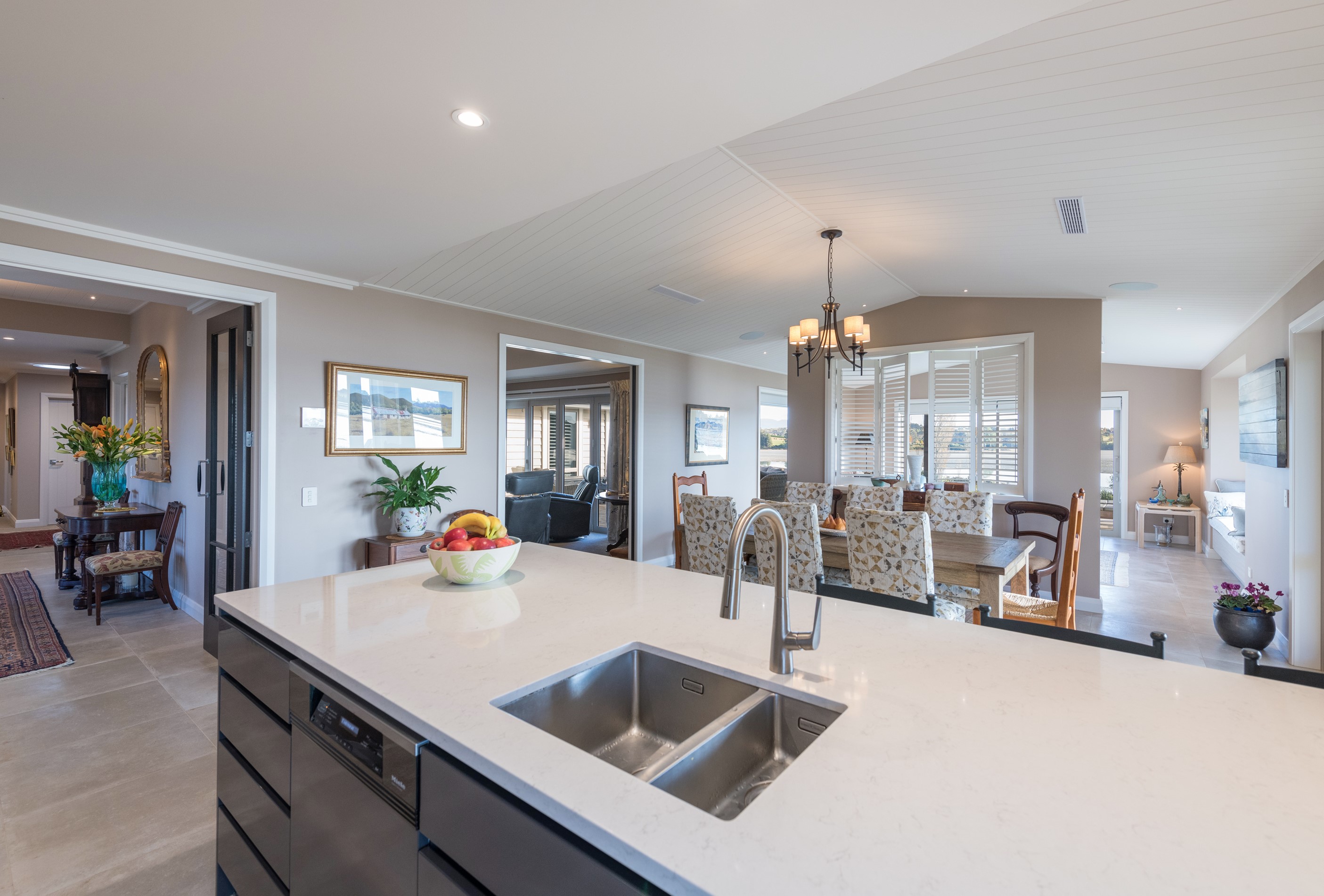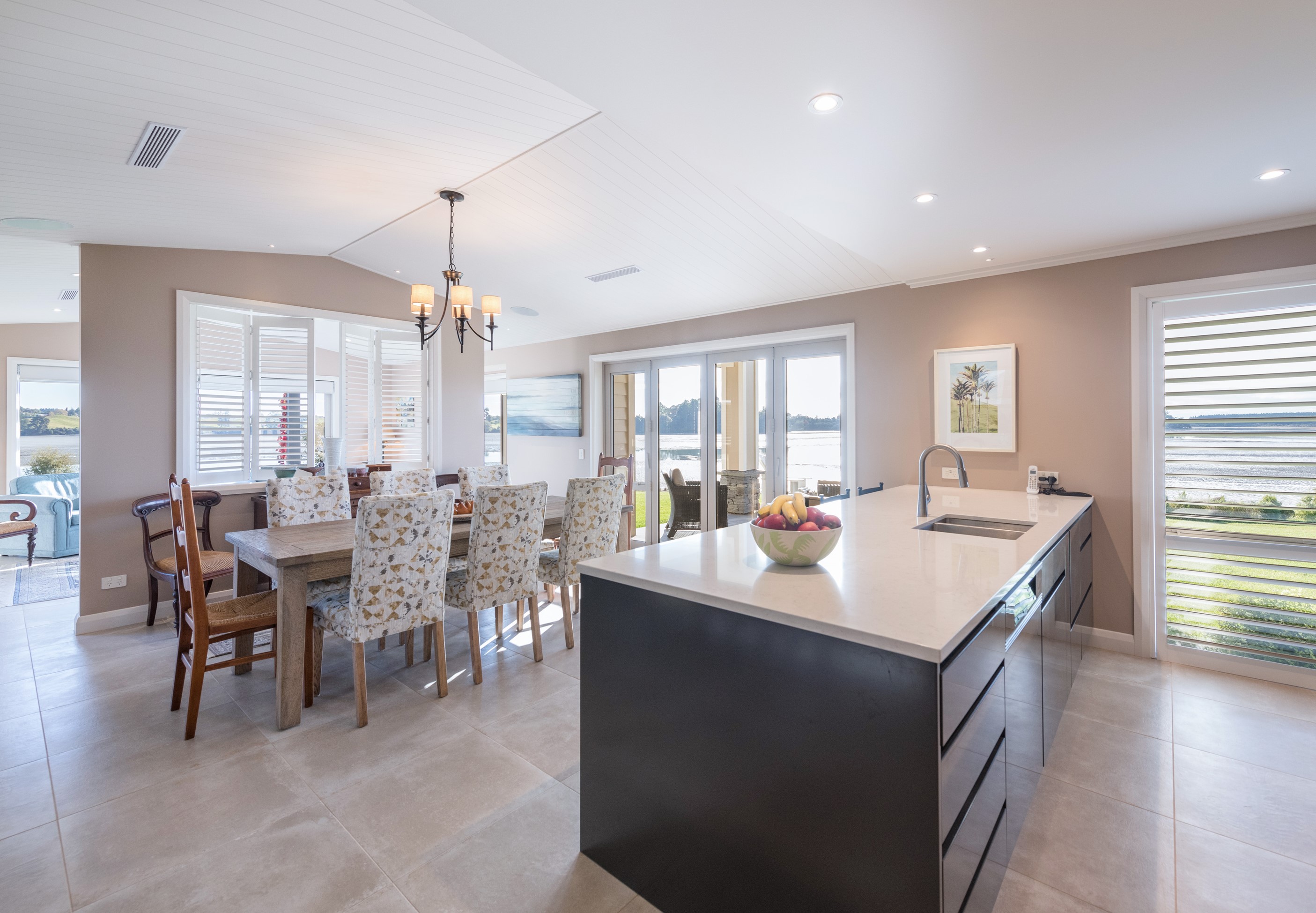 Set on an apple orchard in Mapua, this three-bedroom home is a showcase of refined rural living. Clad in Linea weatherboard with board-and-batten features, the exterior is in harmony with the lovely farmland and Waimea Inlet setting. Stepping inside, the modern farmhouse design unfolds and the layout ensures the water views are on show. The kitchen, at the heart of the home, is positioned for the chef to enjoy those captivating water views. From here, taking meals outdoors is just a few easy steps. The large scullery includes a wine fridge and ample storage. The interior aesthetic is enhanced with features such as the schist fireplace surround in the main lounge. A shuttered dividing wall in the dining area can be closed to provide intimacy or kept open to connect with the living space and views beyond. The three large bedrooms, two bathrooms, and two living areas all enjoy privacy, while also providing unrivalled views. The scenery is on show from various outdoor spaces, including a portico that’s set up for all-weather entertaining. The kwila decks are a pleasure underfoot and on the eye. Warmth, comfort and style are all accommodated.