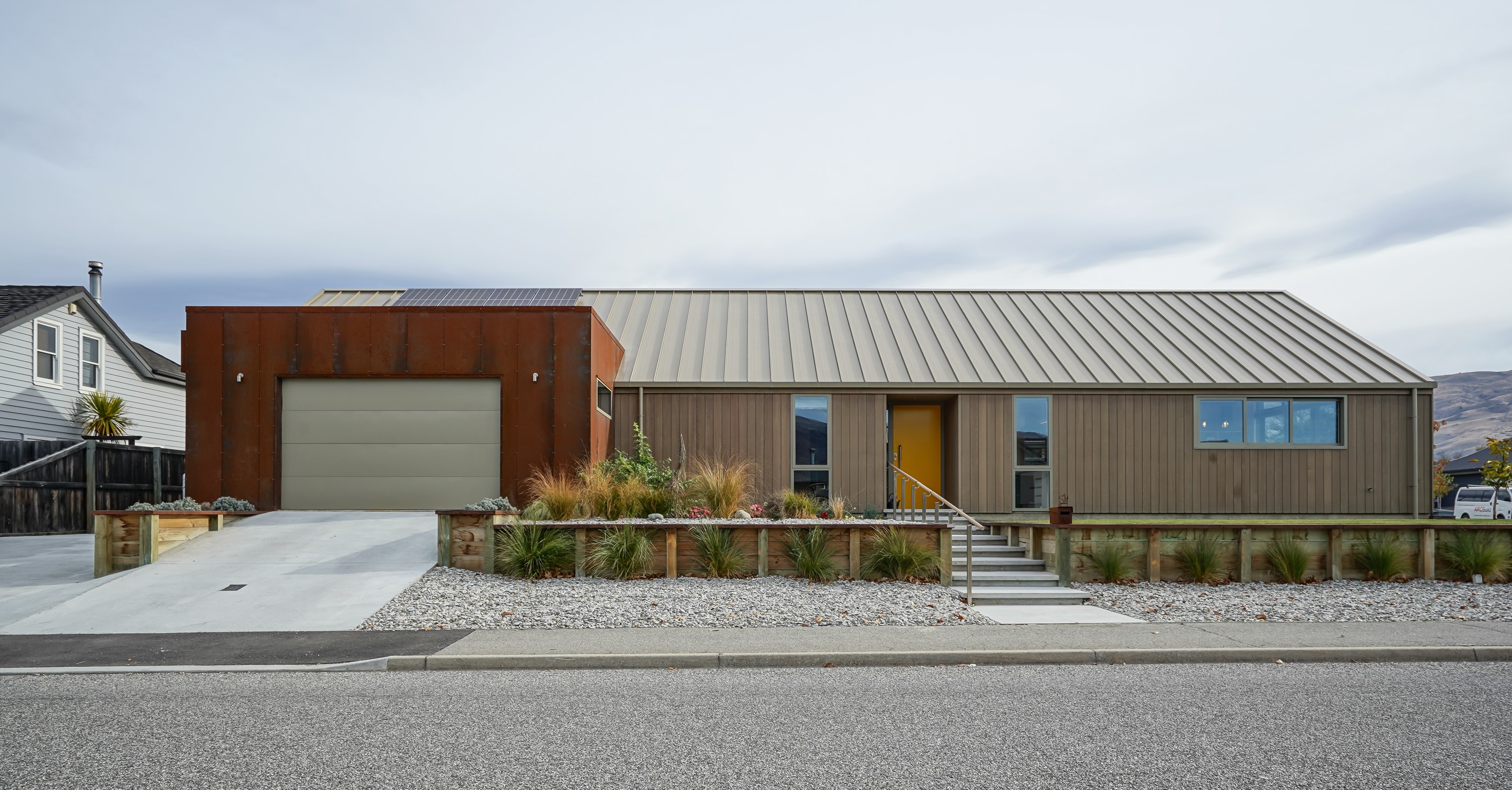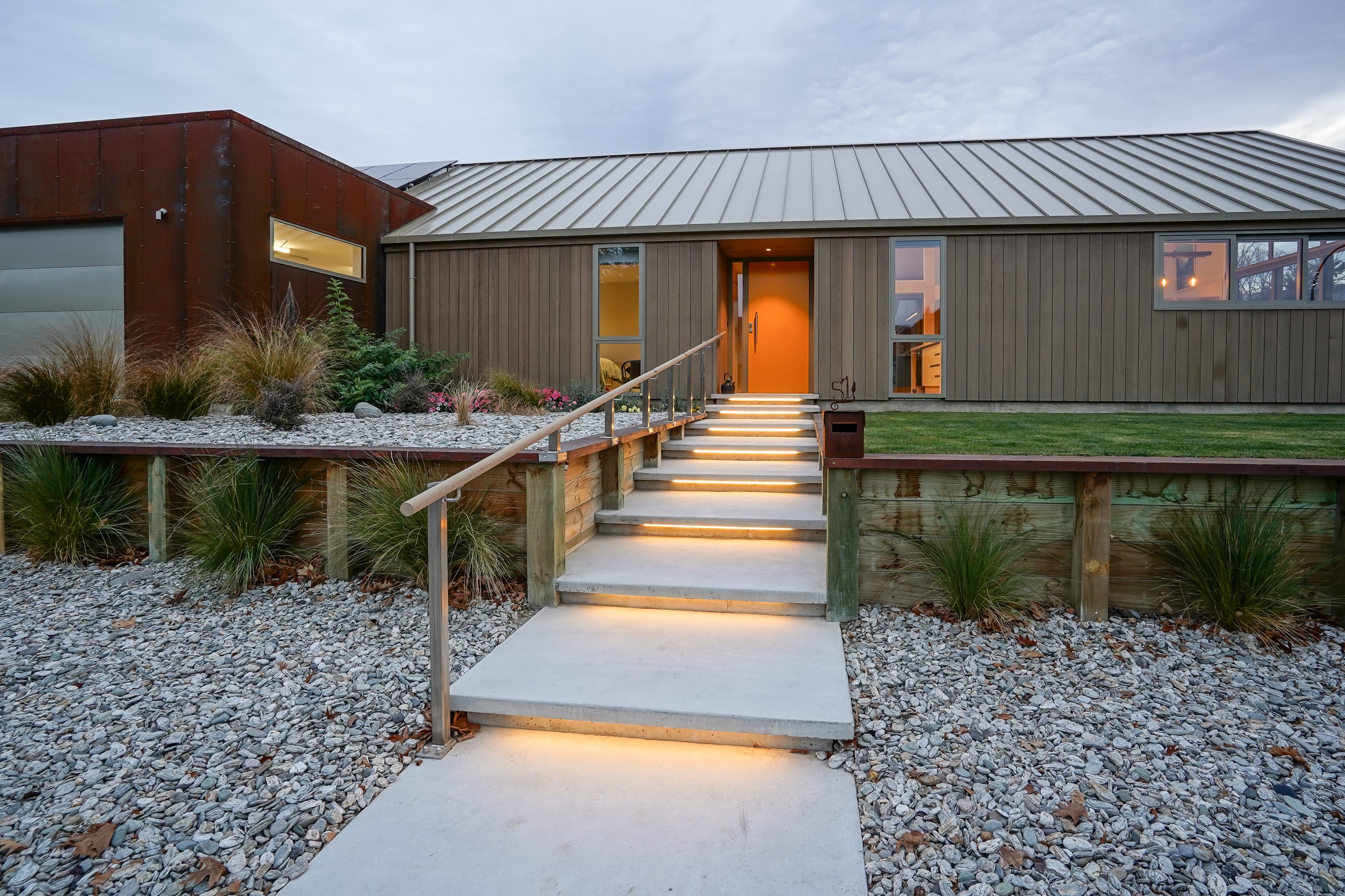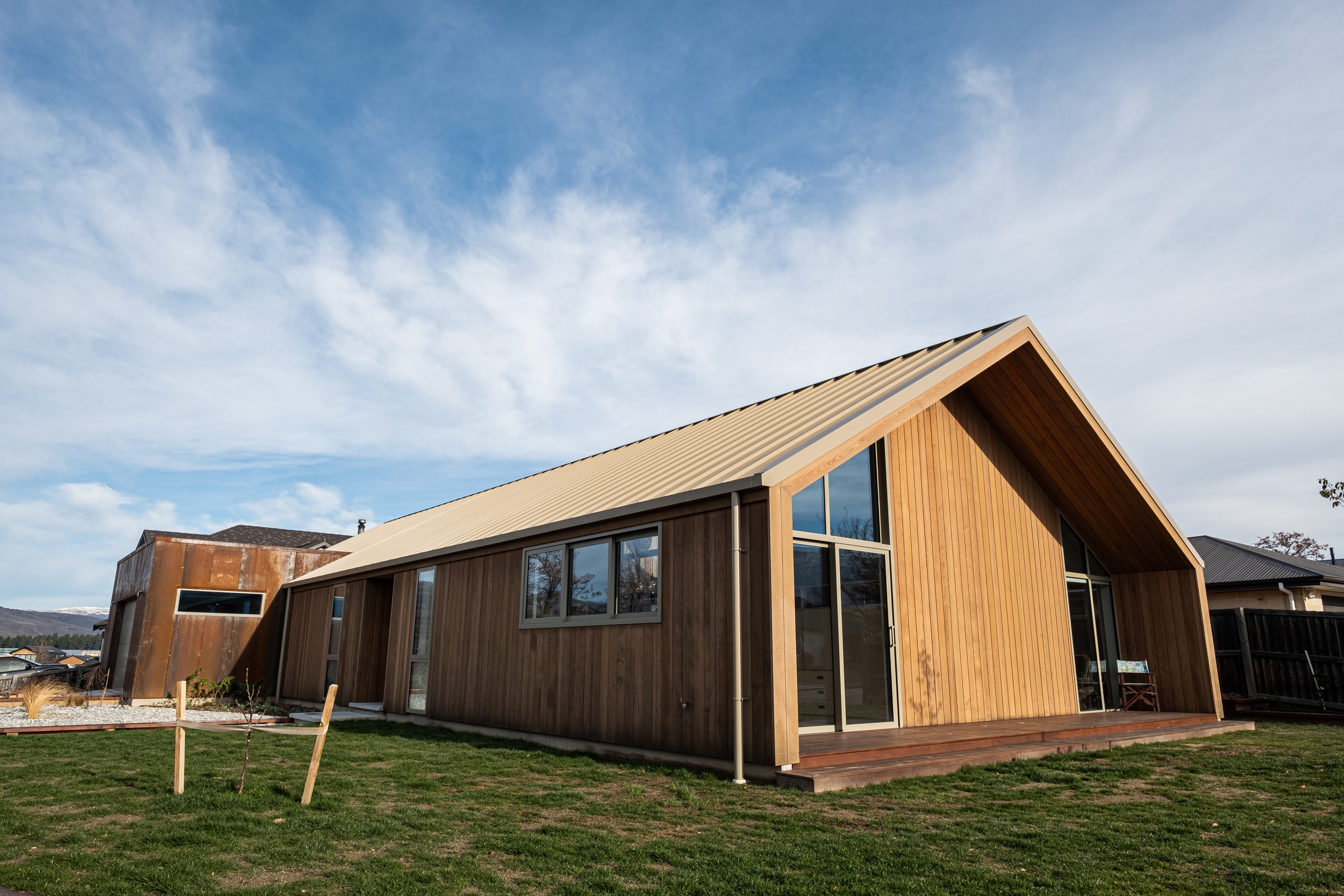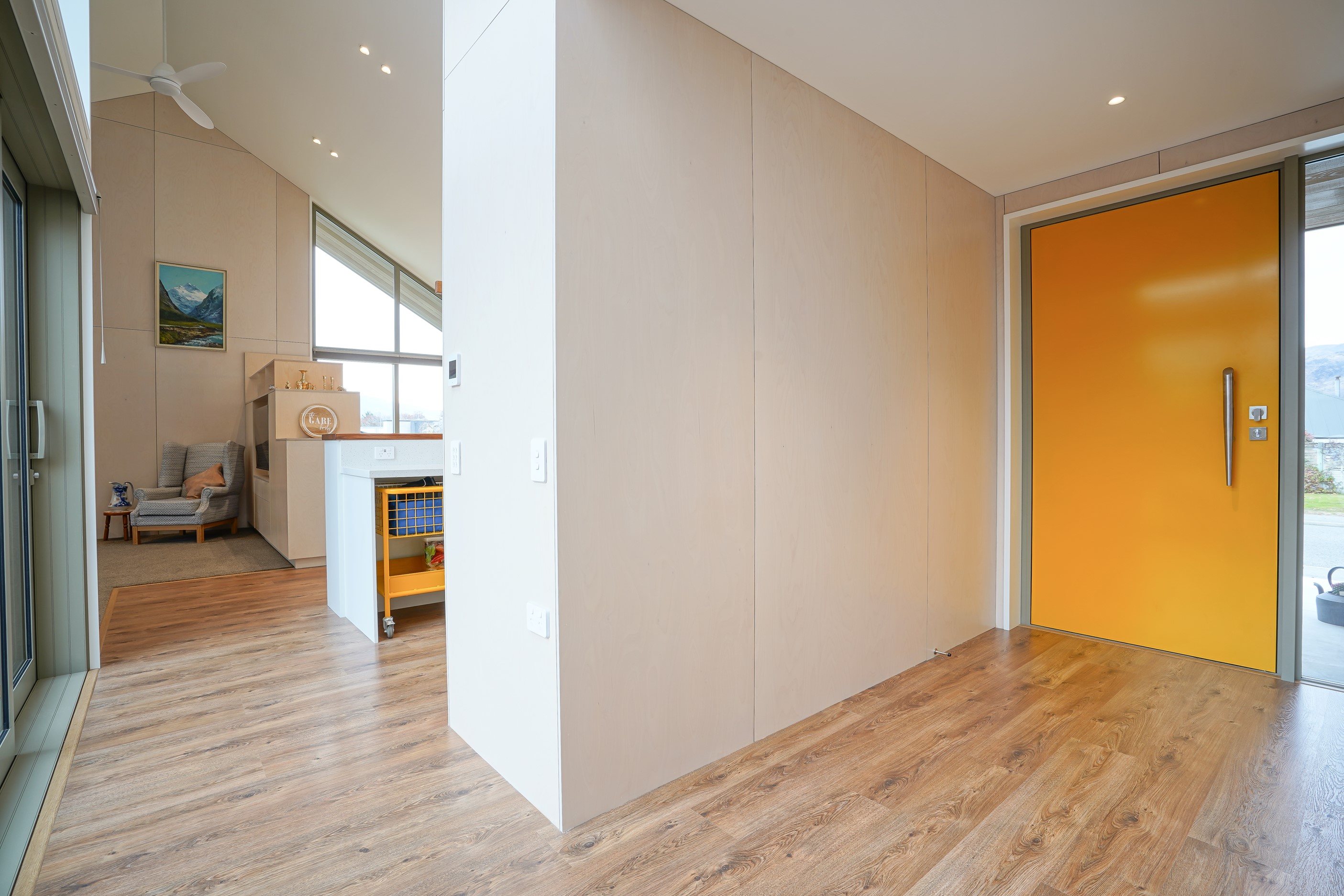 This is a special project for the qualified architect and builder who designed and crafted this property – it is a retirement home for his parents. His mum and dad wanted a single-level house that reflected the Central Otago landscape and was suited to the climate, and that’s exactly what they’ve got with this lovely three-bedroom, three bathroom home that captures the sun and views to the Pisa and Dunstan ranges. Natural materials feature throughout. The exterior is clad in western red cedar, with the garage in corten steel. Inside, birch plywood has been extensively used to provide continuity with the timber cladding. Rimu features in the kitchen benchtop, pendant light and bespoke vanity tops in the bathrooms. The carefully selected quality materials and the house design cut down maintenance – ideal for Mum and Dad. The vaulted open-plan L-shaped living area features extensive glazing, a woodfire and connects to a sheltered courtyard created by a recess in the rectangular 225sqm floorplan. There are places to cosy up, inside and out. Landscaping takes cues from its Central Otago location, and the flair – there’s a yellow front door – is courtesy of the architect and craftsman behind this labour of love.