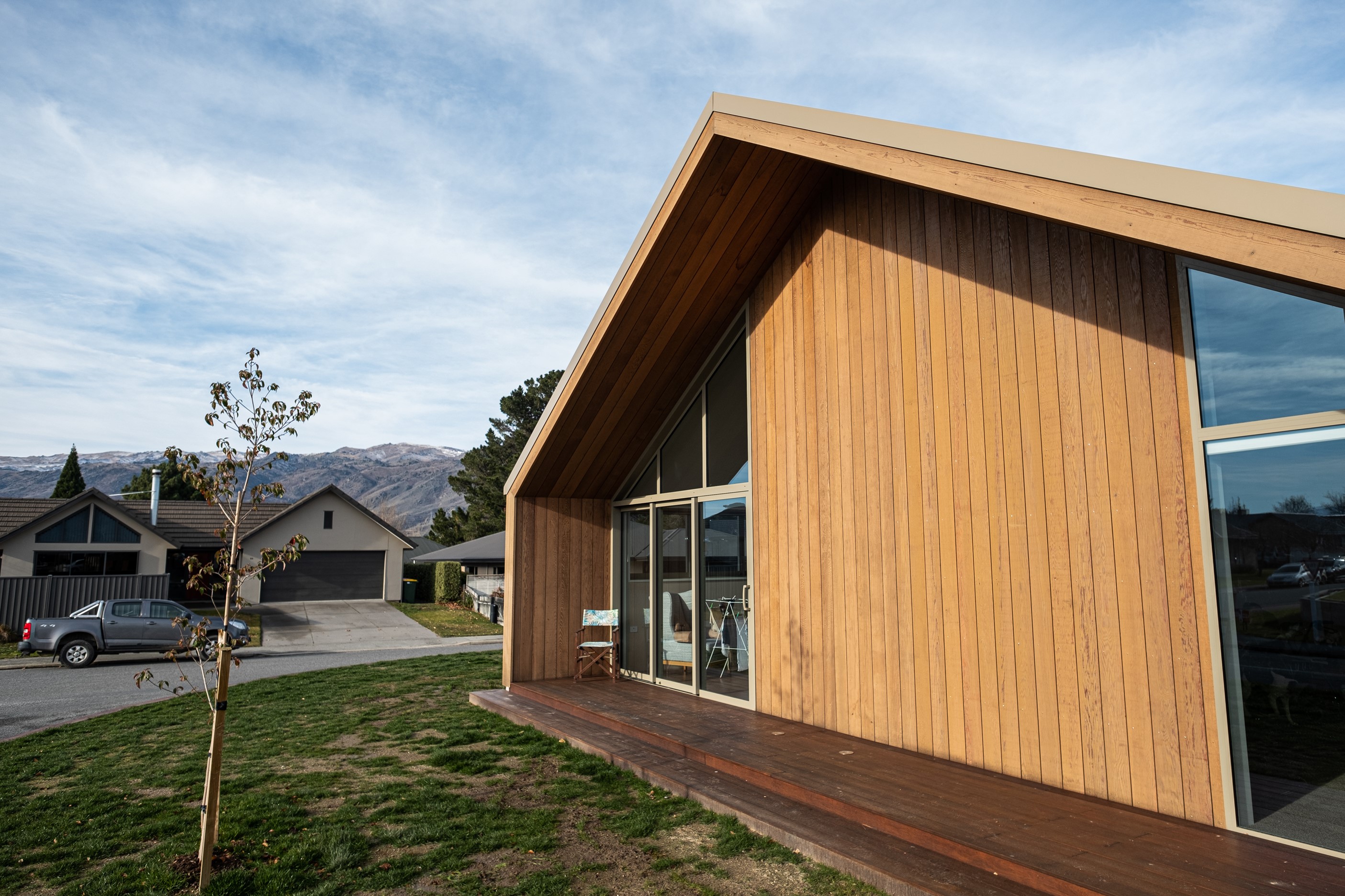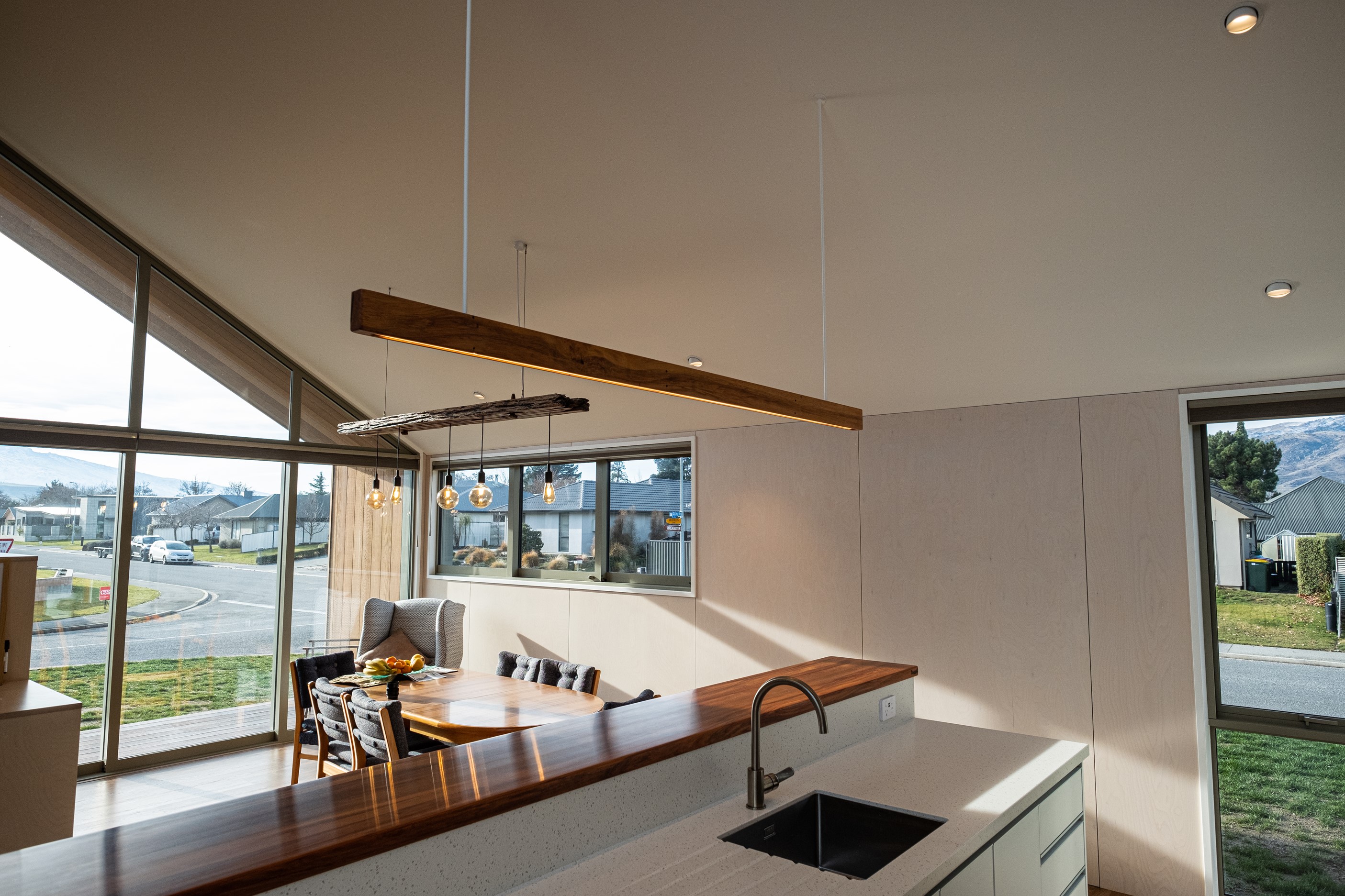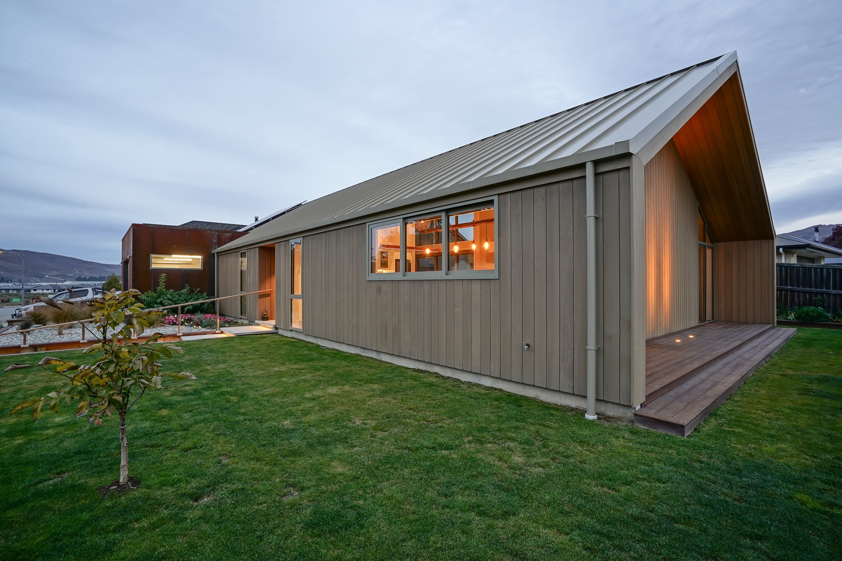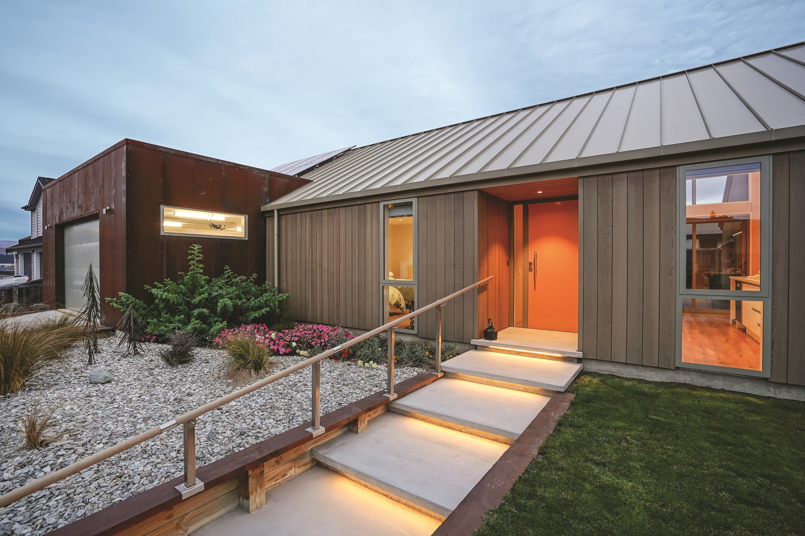 This is a special project for the qualified architect and builder who designed and crafted this property – it is a retirement home for his parents. His mum and dad wanted a single-level house that reflected the Central Otago landscape and was suited to the climate, and that’s exactly what they’ve got with this lovely three-bedroom, three bathroom home that captures the sun and views to the Pisa and Dunstan ranges. Natural materials feature throughout. The exterior is clad in western red cedar, with the garage in corten steel. Inside, birch plywood has been extensively used to provide continuity with the timber cladding. Rimu features in the kitchen benchtop, pendant light and bespoke vanity tops in the bathrooms. The carefully selected quality materials and the house design cut down maintenance – ideal for Mum and Dad. The vaulted open-plan L-shaped living area features extensive glazing, a woodfire and connects to a sheltered courtyard created by a recess in the rectangular 225sqm floorplan. There are places to cosy up, inside and out. Landscaping takes cues from its Central Otago location, and the flair – there’s a yellow front door – is courtesy of the architect and craftsman behind this labour of love.