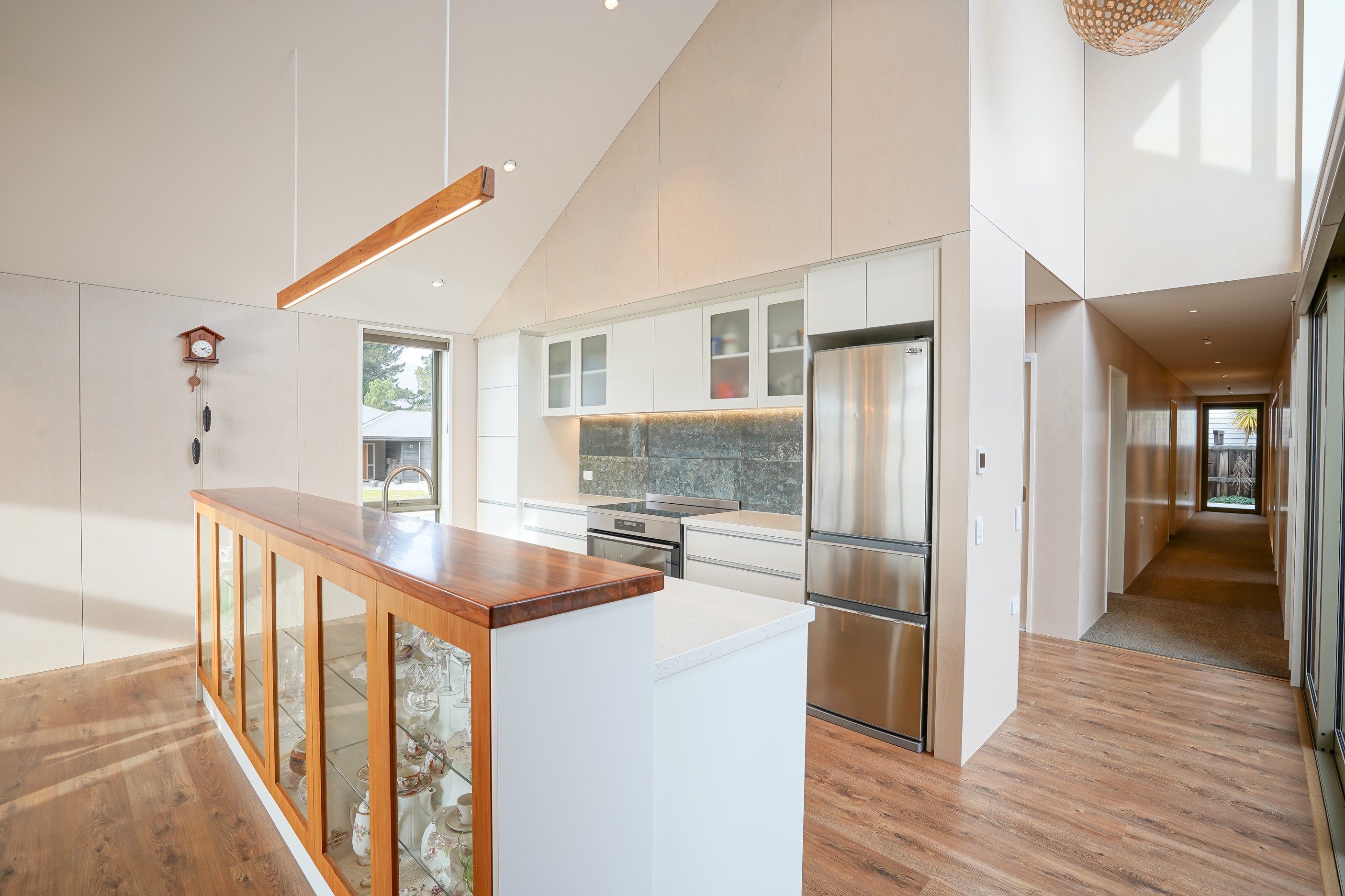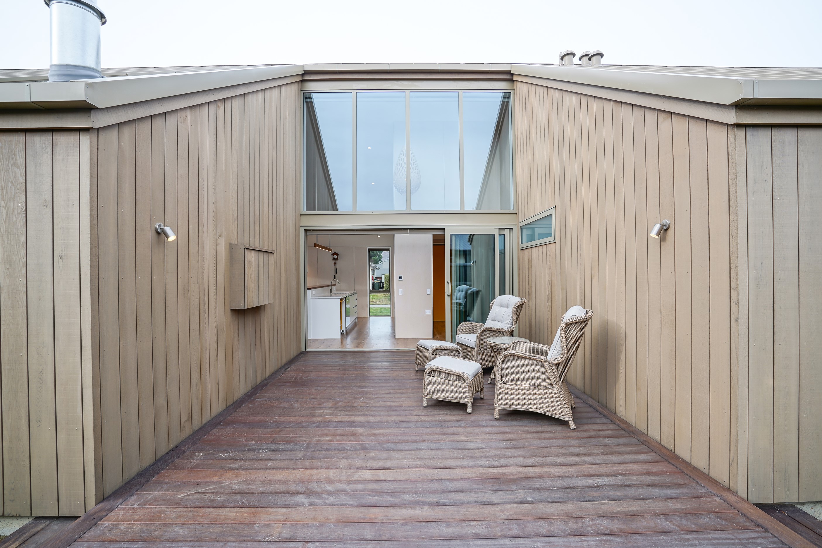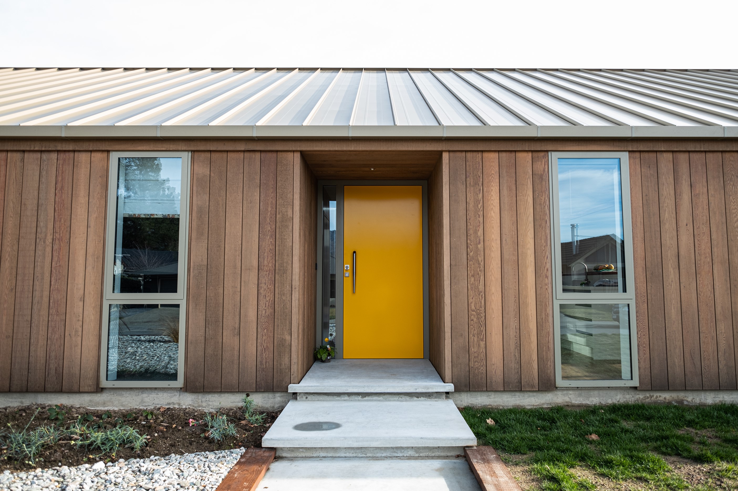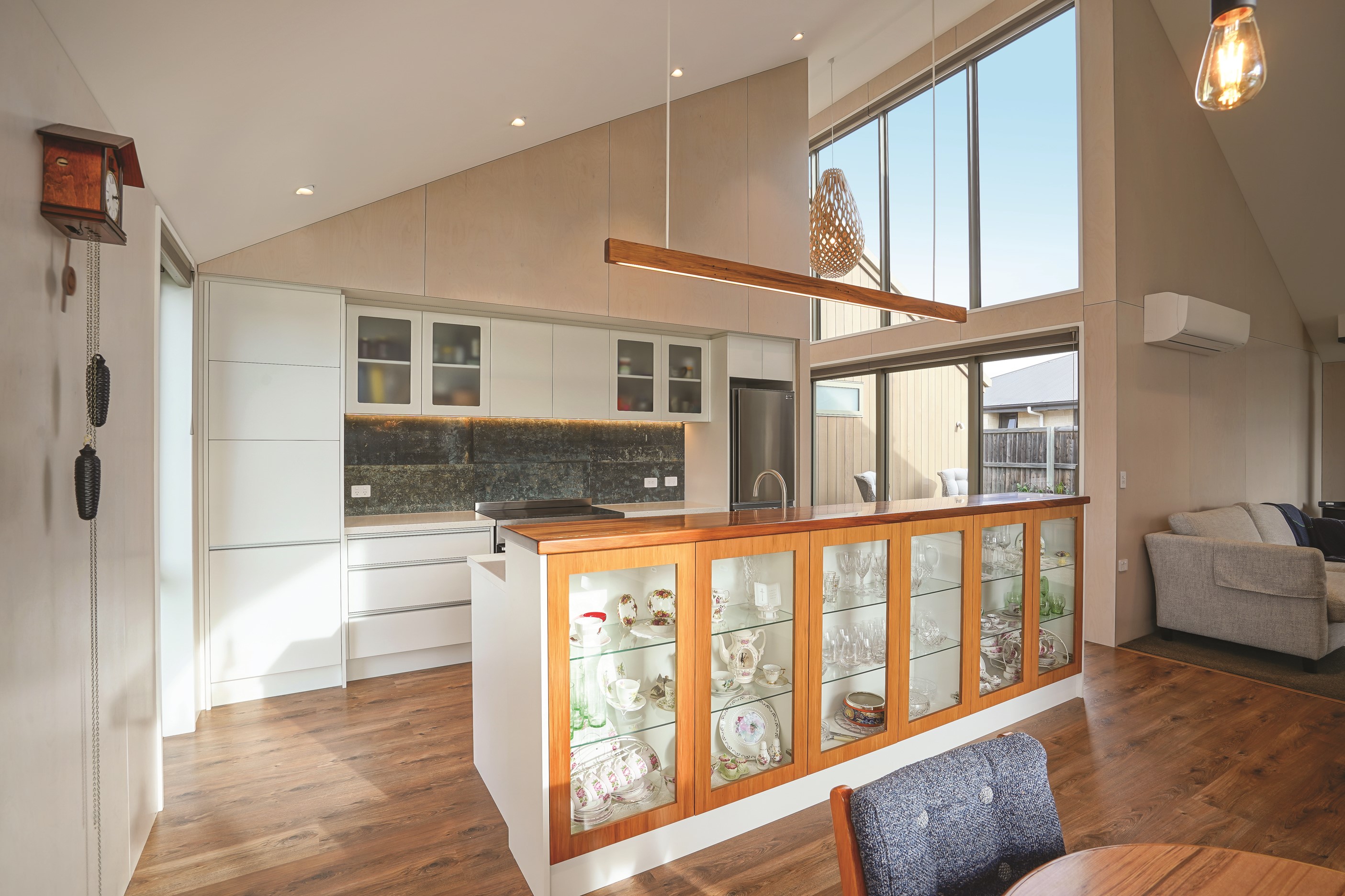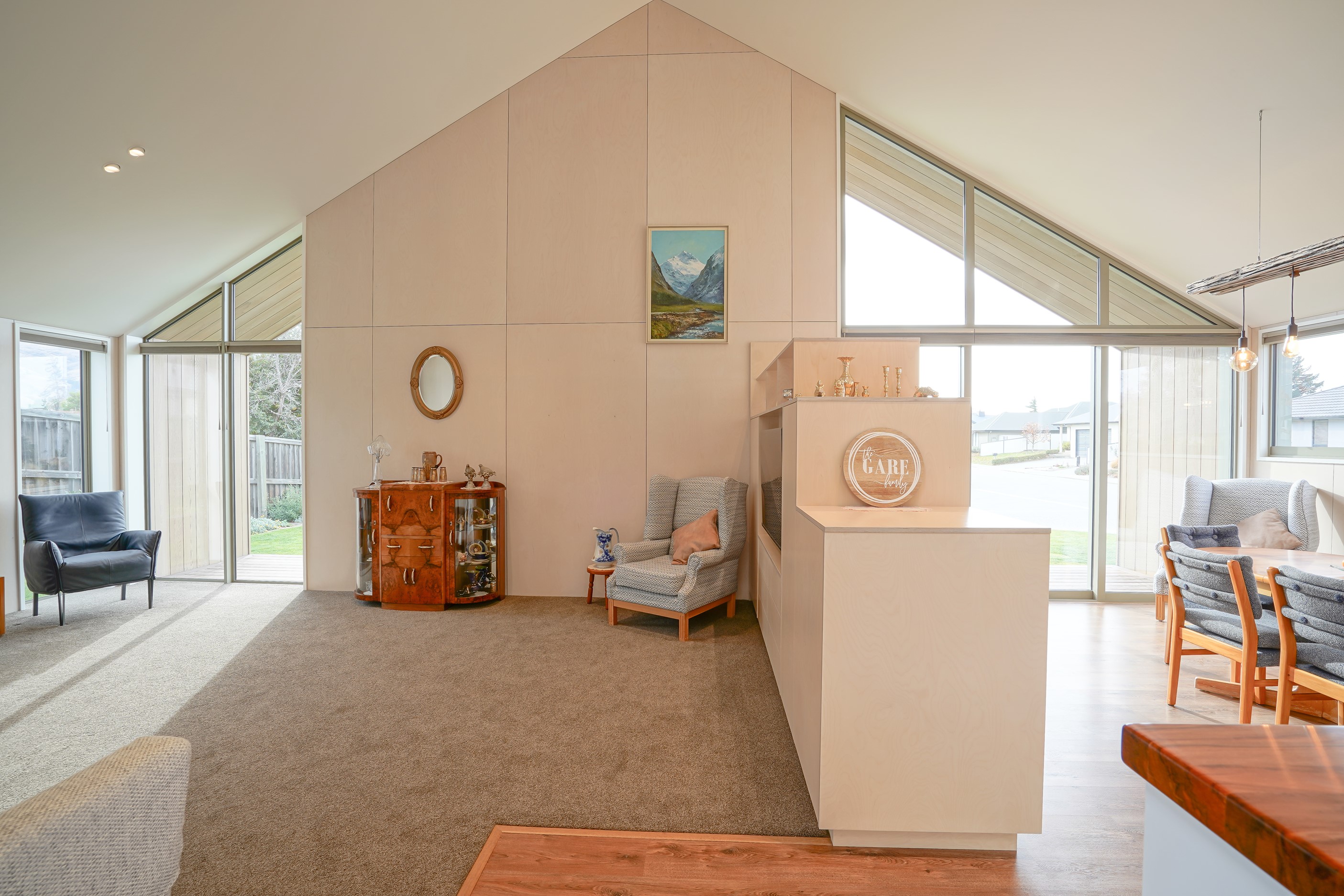 This is a special project for the qualified architect and builder who designed and crafted this property – it is a retirement home for his parents. His mum and dad wanted a single-level house that reflected the Central Otago landscape and was suited to the climate, and that’s exactly what they’ve got with this lovely three-bedroom, three bathroom home that captures the sun and views to the Pisa and Dunstan ranges. Natural materials feature throughout. The exterior is clad in western red cedar, with the garage in corten steel. Inside, birch plywood has been extensively used to provide continuity with the timber cladding. Rimu features in the kitchen benchtop, pendant light and bespoke vanity tops in the bathrooms. The carefully selected quality materials and the house design cut down maintenance – ideal for Mum and Dad. The vaulted open-plan L-shaped living area features extensive glazing, a woodfire and connects to a sheltered courtyard created by a recess in the rectangular 225sqm floorplan. There are places to cosy up, inside and out. Landscaping takes cues from its Central Otago location, and the flair – there’s a yellow front door – is courtesy of the architect and craftsman behind this labour of love.