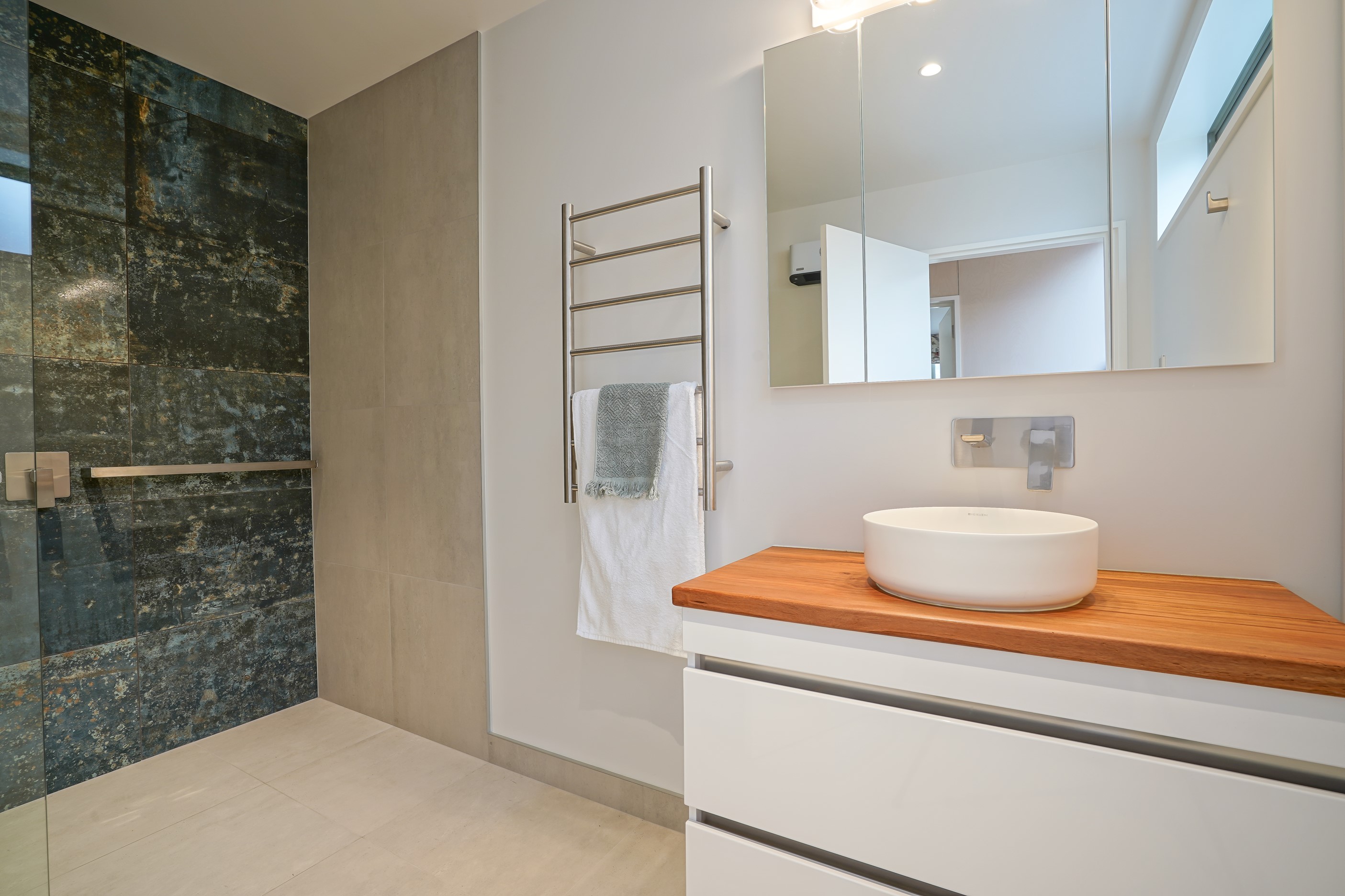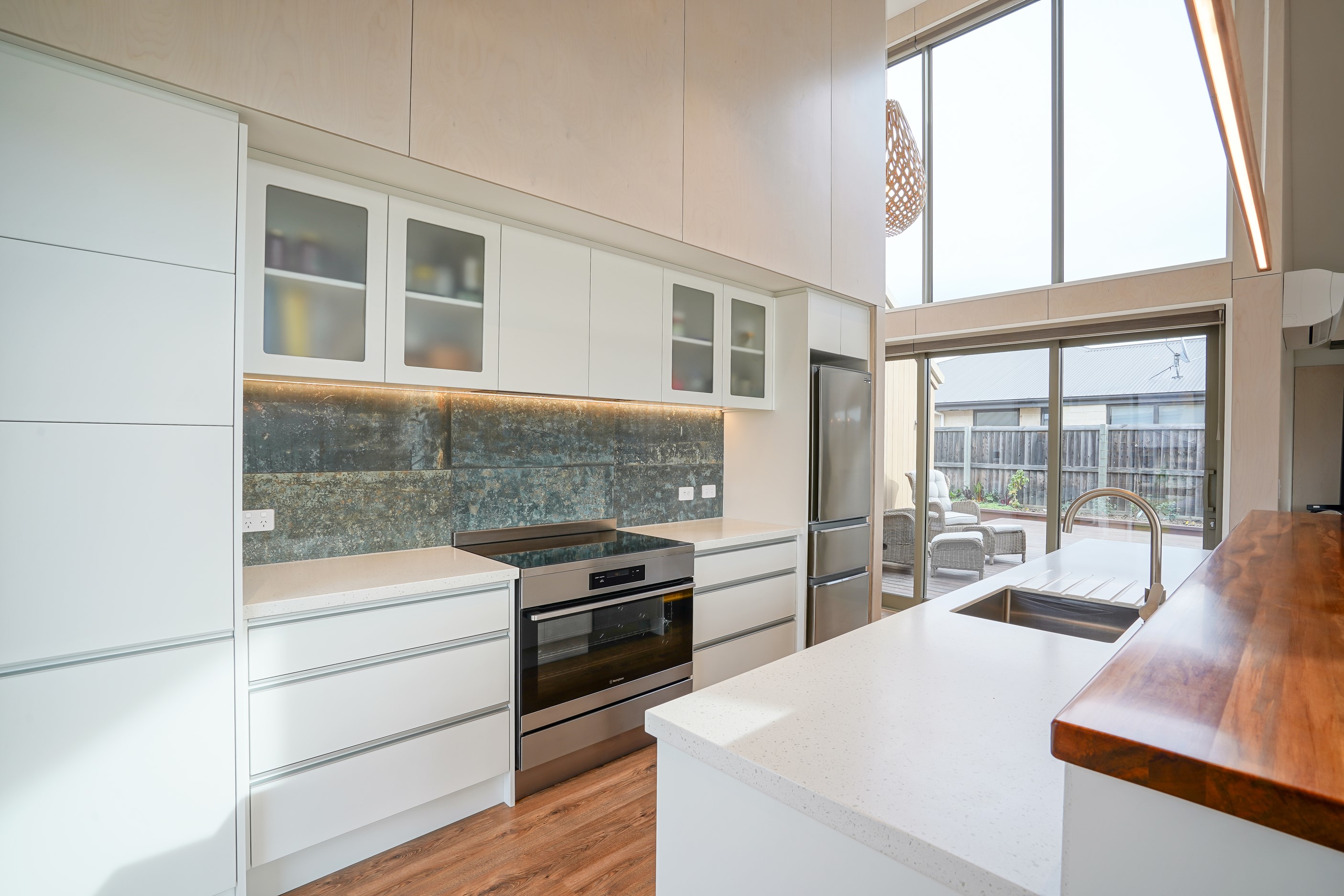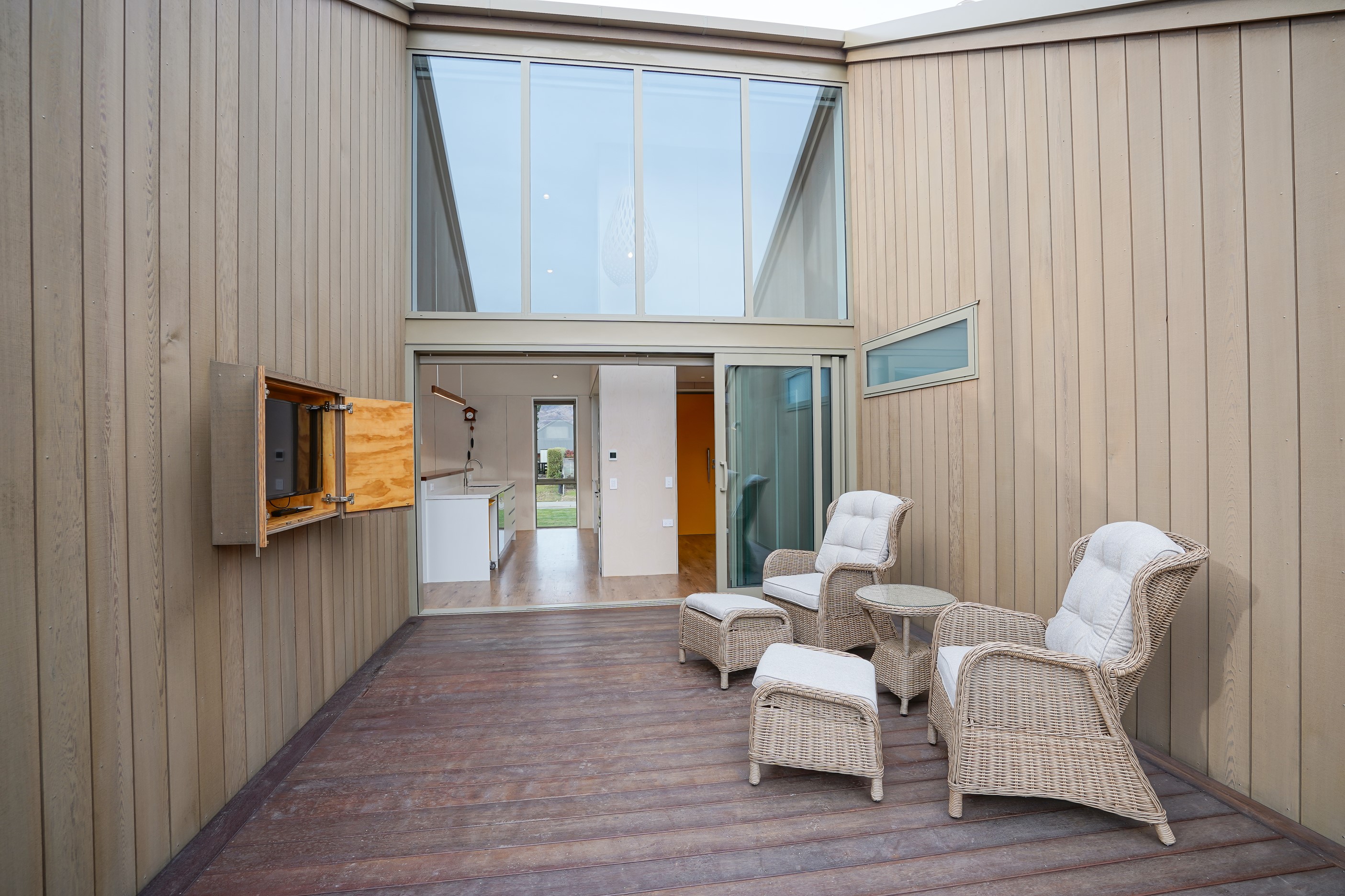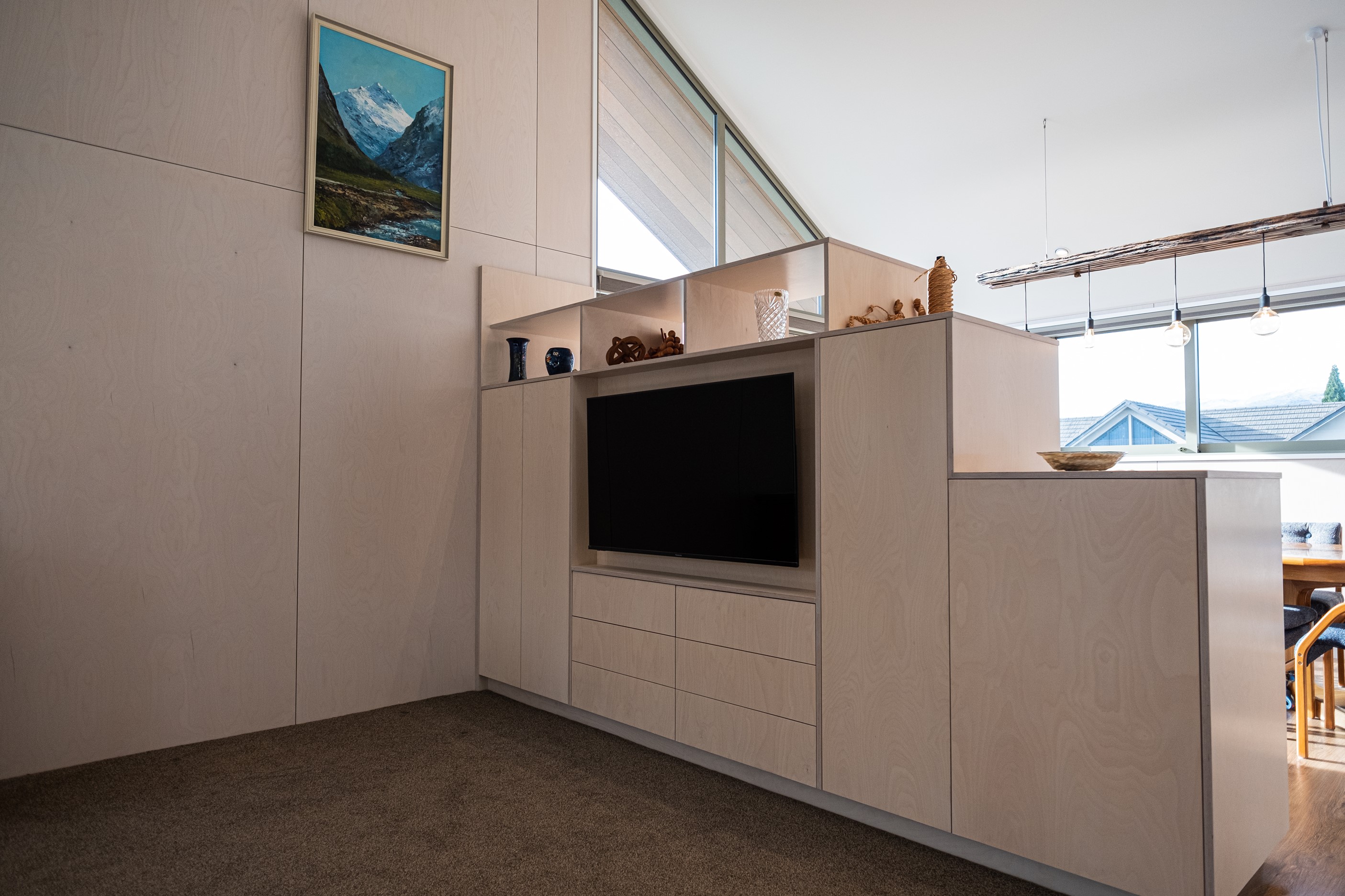 This is a special project for the qualified architect and builder who designed and crafted this property – it is a retirement home for his parents. His mum and dad wanted a single-level house that reflected the Central Otago landscape and was suited to the climate, and that’s exactly what they’ve got with this lovely three-bedroom, three bathroom home that captures the sun and views to the Pisa and Dunstan ranges. Natural materials feature throughout. The exterior is clad in western red cedar, with the garage in corten steel. Inside, birch plywood has been extensively used to provide continuity with the timber cladding. Rimu features in the kitchen benchtop, pendant light and bespoke vanity tops in the bathrooms. The carefully selected quality materials and the house design cut down maintenance – ideal for Mum and Dad. The vaulted open-plan L-shaped living area features extensive glazing, a woodfire and connects to a sheltered courtyard created by a recess in the rectangular 225sqm floorplan. There are places to cosy up, inside and out. Landscaping takes cues from its Central Otago location, and the flair – there’s a yellow front door – is courtesy of the architect and craftsman behind this labour of love.