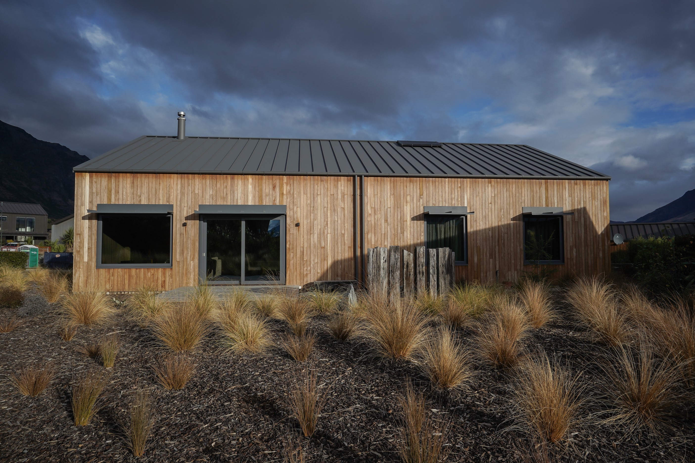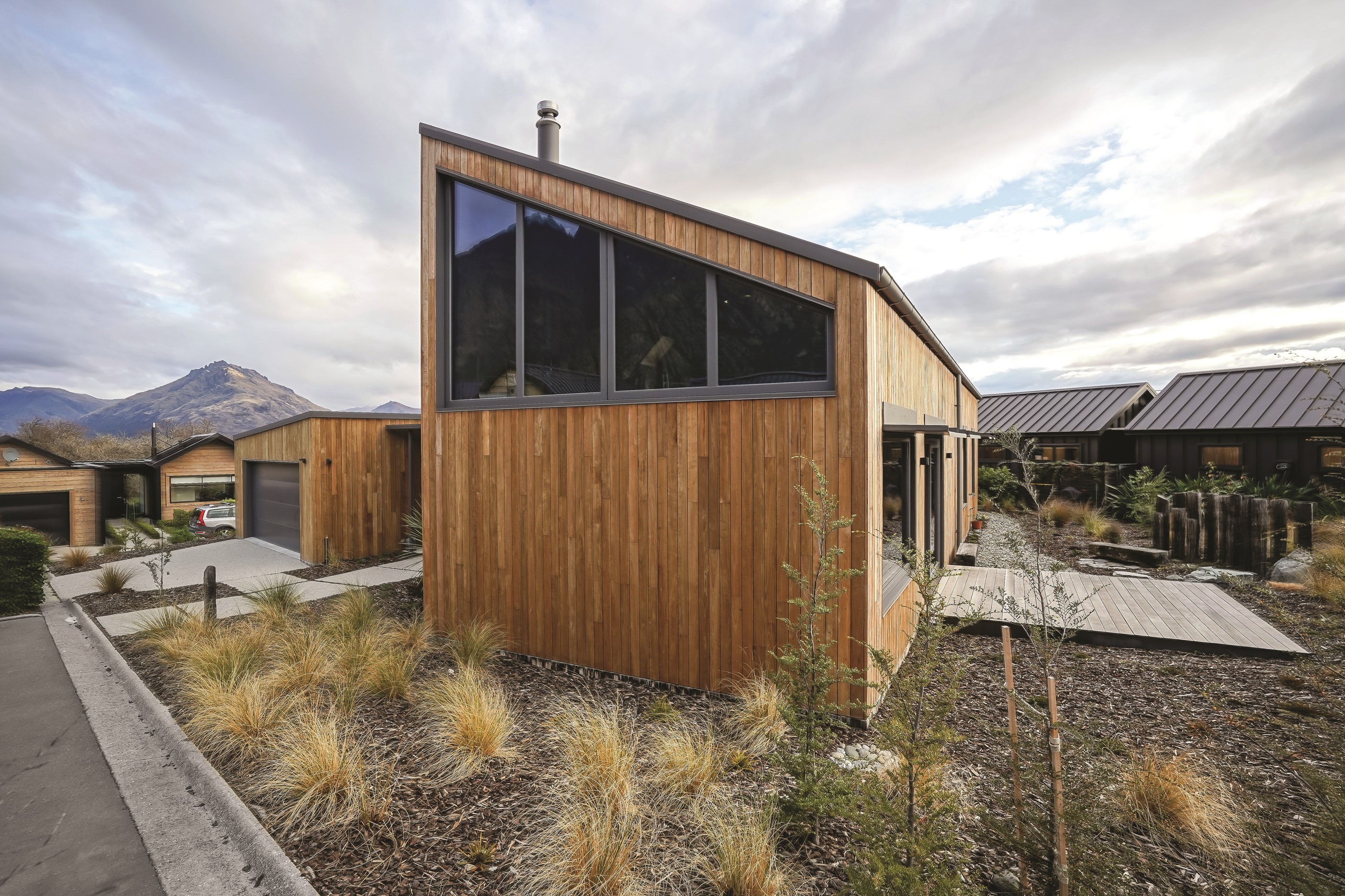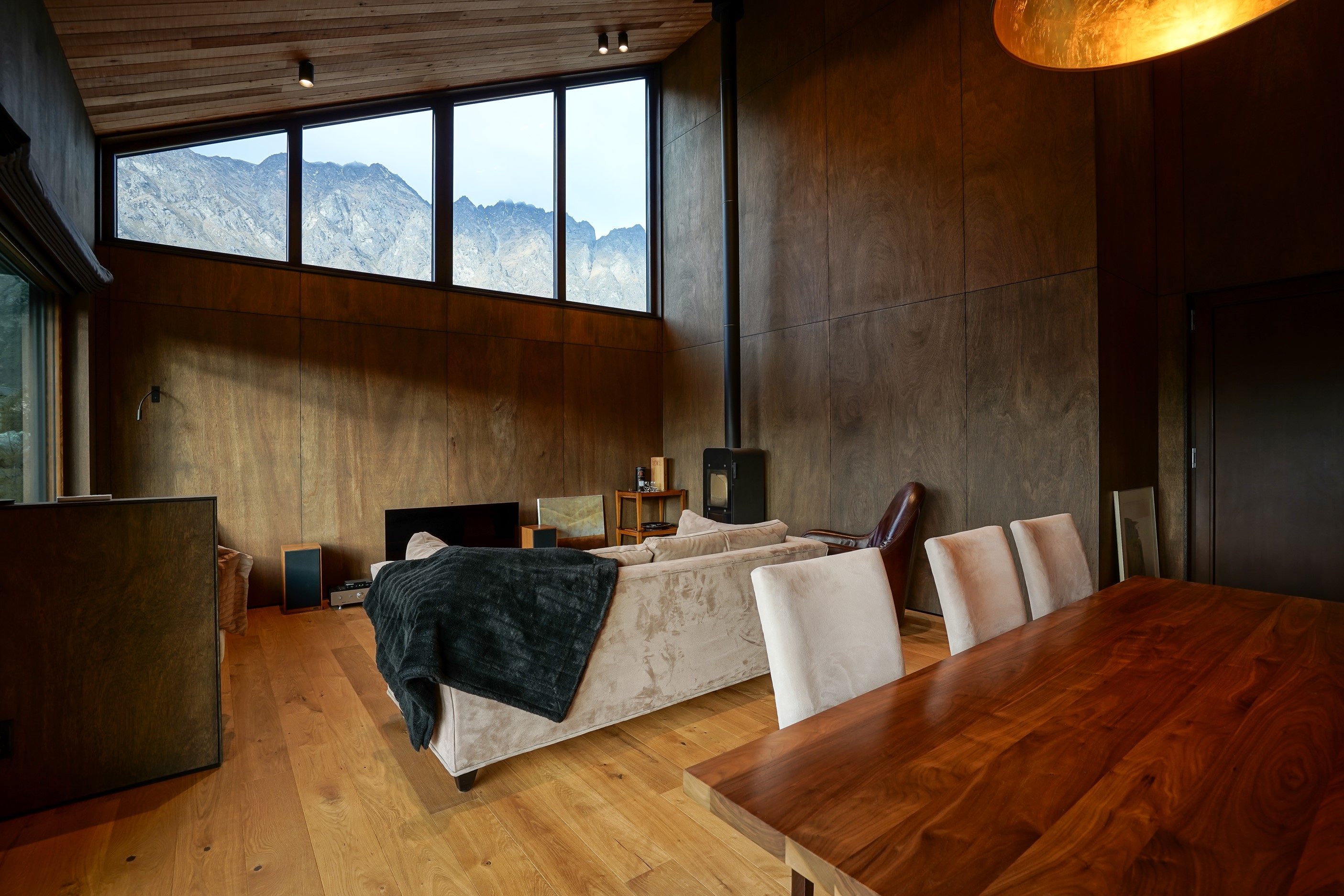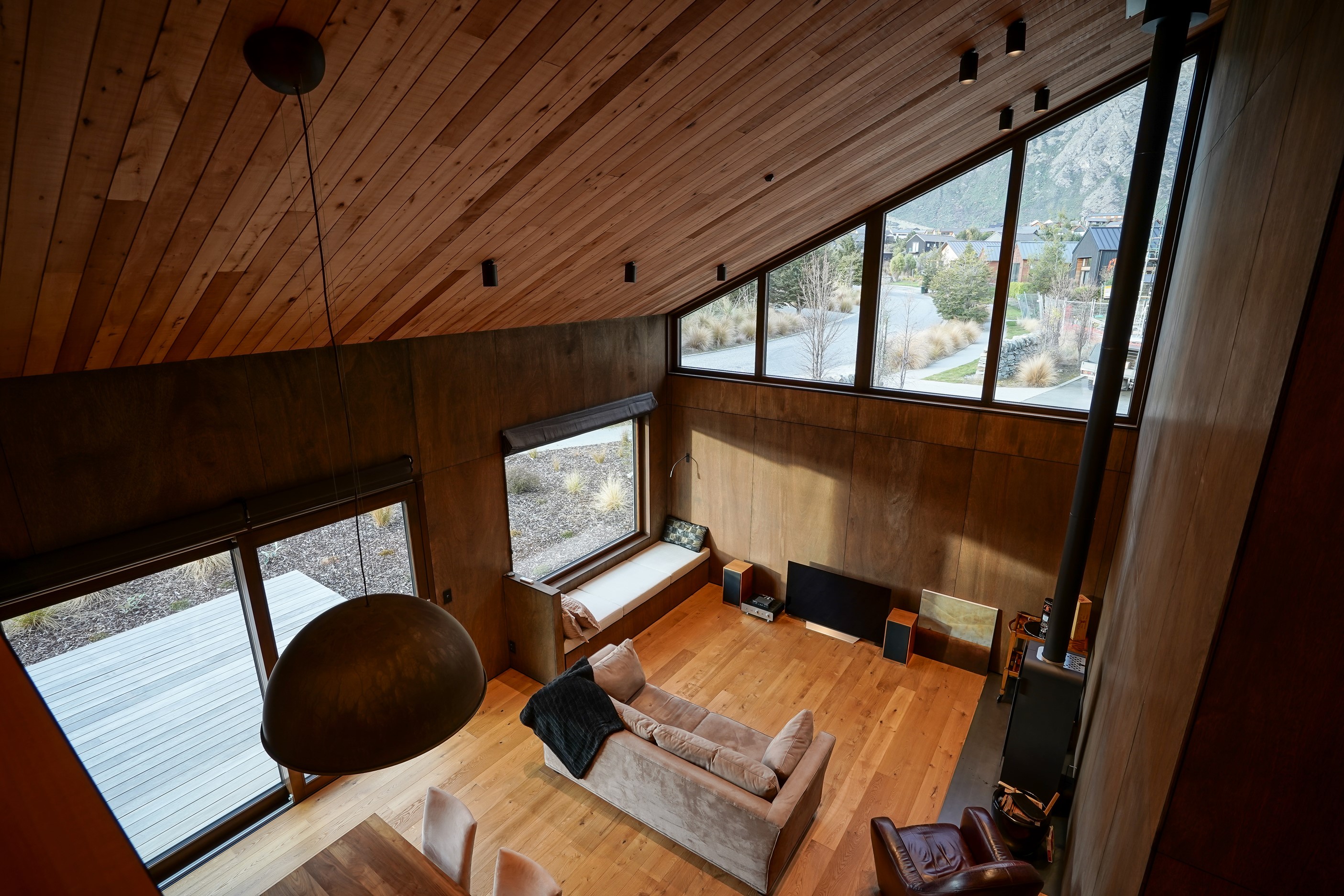 This house does much more than look lovely in its Queenstown locale. It’s also a healthy home, designed with energy-efficient principles and built with thermally broken joinery; a ventilation system and smart panels in the roof, floor and walls. It’s airtight too, so the owners enjoy comfy, healthy temperatures year round. The two-bedroom 210sqm house is clad in reclaimed hardwood, a sustainably sourced product, that is durable, low-maintenance, attractive and ideal for alpine climates. In the living area, a grand monopitch ceiling is lined with Southland beech, while a mezzanine enjoys uninterrupted views of The Remarkables. Interior walls are lined in ply with negative detailing, and you’ll see custom joinery and European oak flooring throughout. The aesthetic is cosy and natural, but also one of bespoke low-key luxury. You’ll find two bathrooms, and the main-bedroom ensuite serves up opulence that wouldn’t look out of place in a luxury resort. Dark wood and sage-coloured tiles are a match made in heaven. Beautifully designed and constructed, this is a home that is both luxurious and thermally efficient. It’s where high performance meets high-level style.