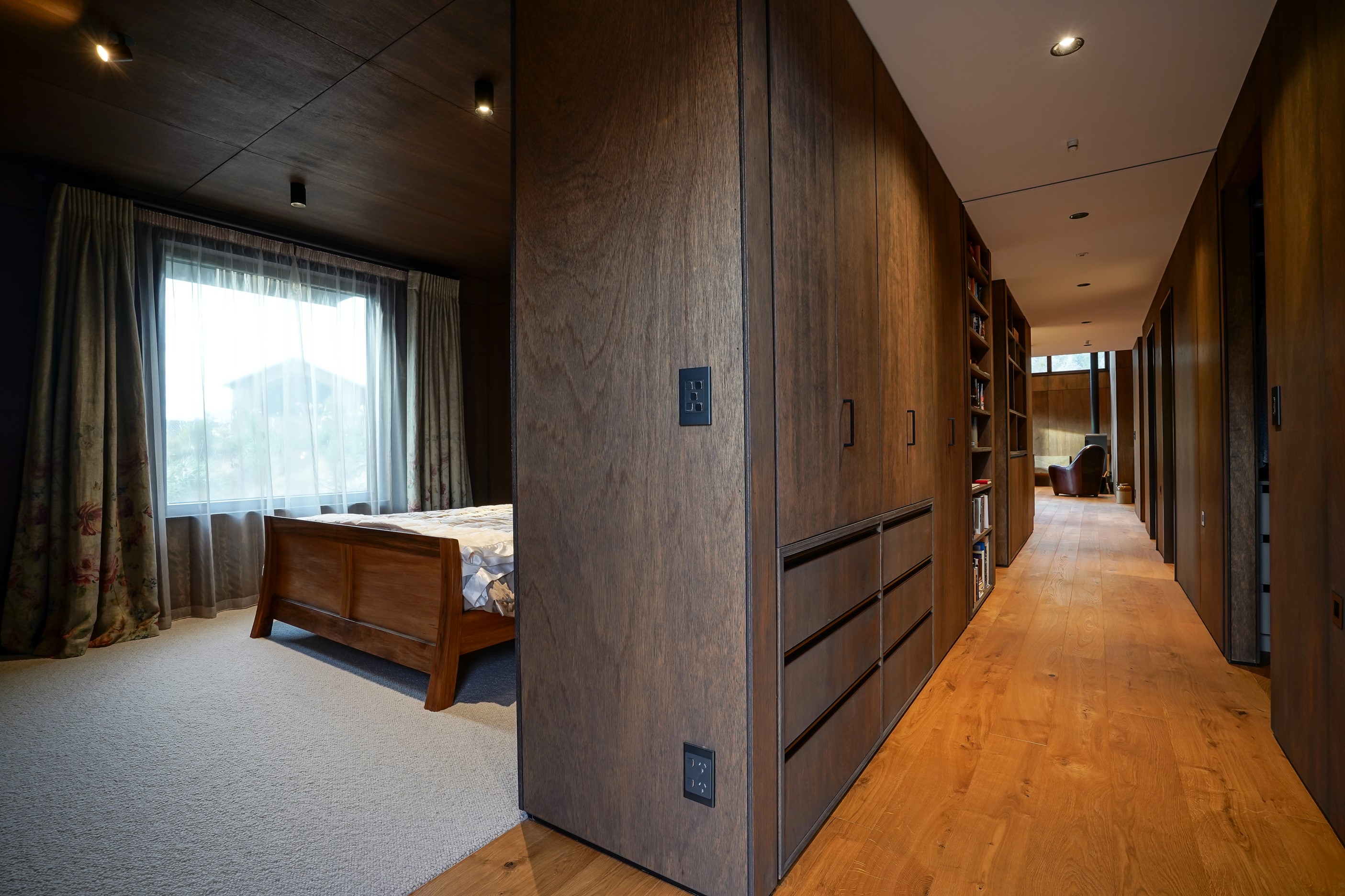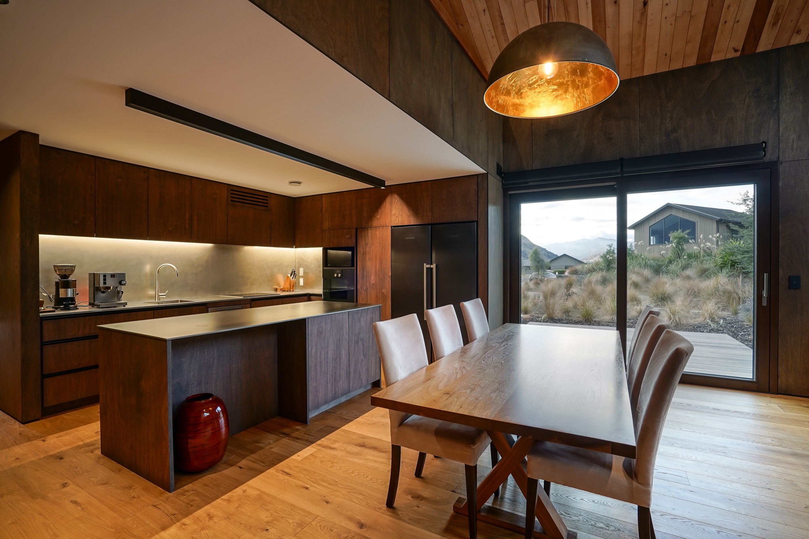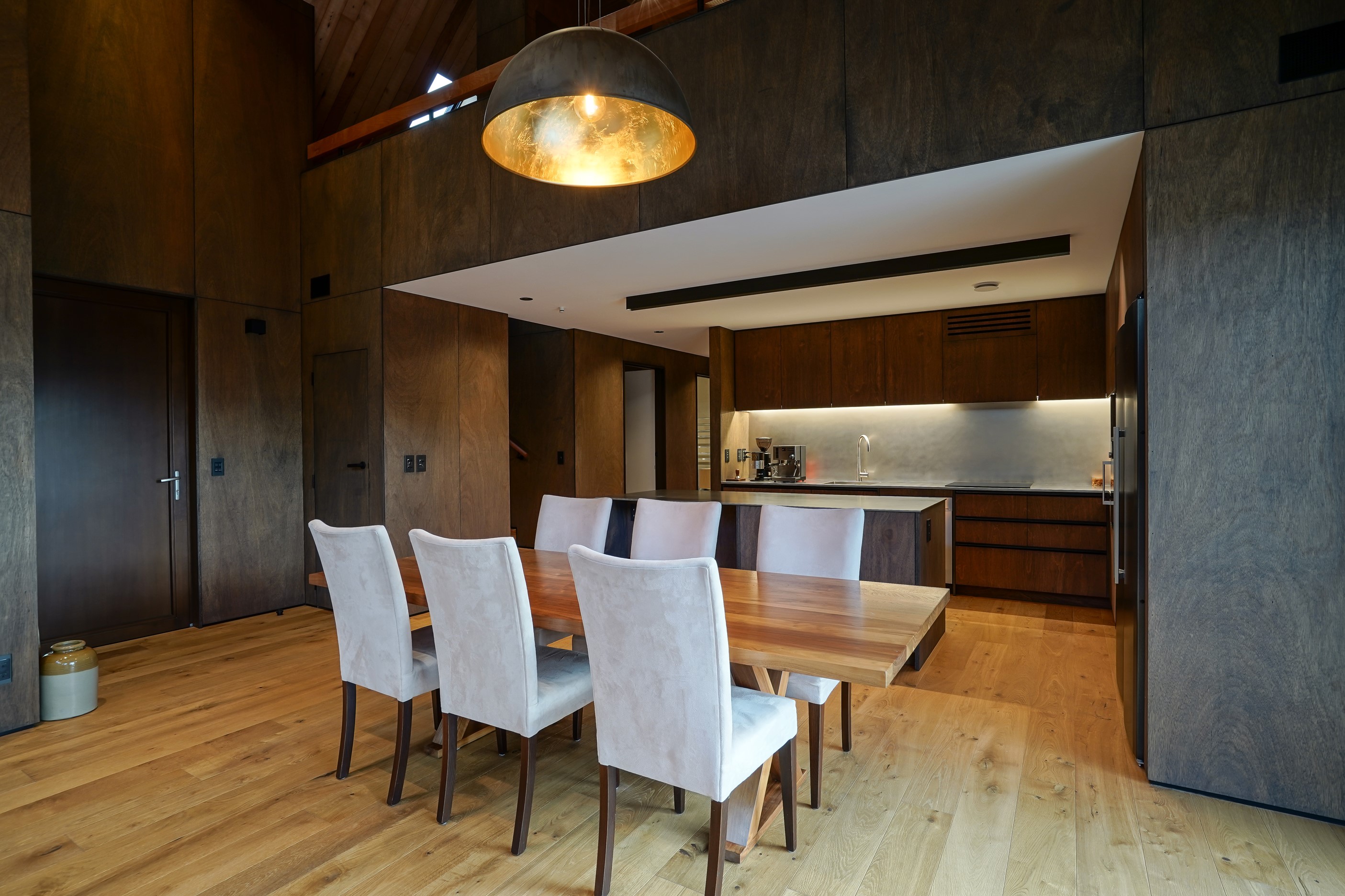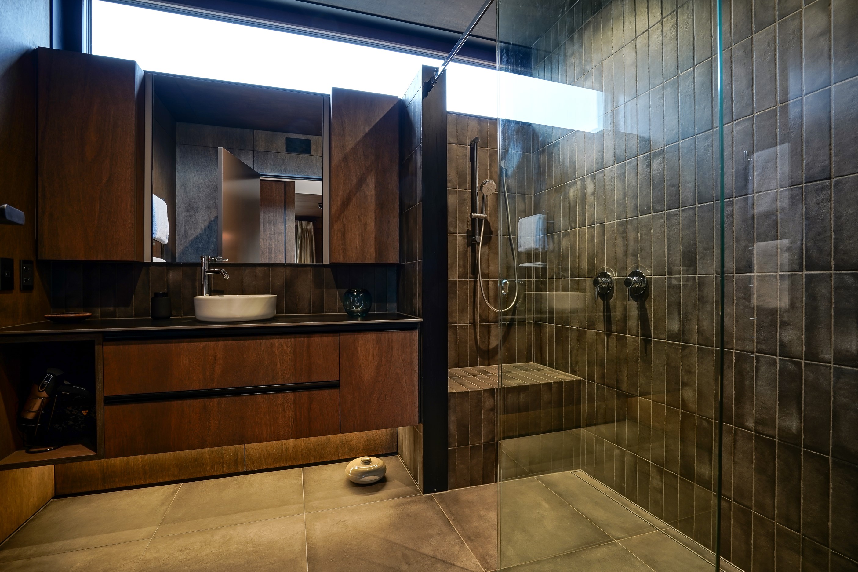 This house does much more than look lovely in its Queenstown locale. It’s also a healthy home, designed with energy-efficient principles and built with thermally broken joinery; a ventilation system and smart panels in the roof, floor and walls. It’s airtight too, so the owners enjoy comfy, healthy temperatures year round. The two-bedroom 210sqm house is clad in reclaimed hardwood, a sustainably sourced product, that is durable, low-maintenance, attractive and ideal for alpine climates. In the living area, a grand monopitch ceiling is lined with Southland beech, while a mezzanine enjoys uninterrupted views of The Remarkables. Interior walls are lined in ply with negative detailing, and you’ll see custom joinery and European oak flooring throughout. The aesthetic is cosy and natural, but also one of bespoke low-key luxury. You’ll find two bathrooms, and the main-bedroom ensuite serves up opulence that wouldn’t look out of place in a luxury resort. Dark wood and sage-coloured tiles are a match made in heaven. Beautifully designed and constructed, this is a home that is both luxurious and thermally efficient. It’s where high performance meets high-level style.