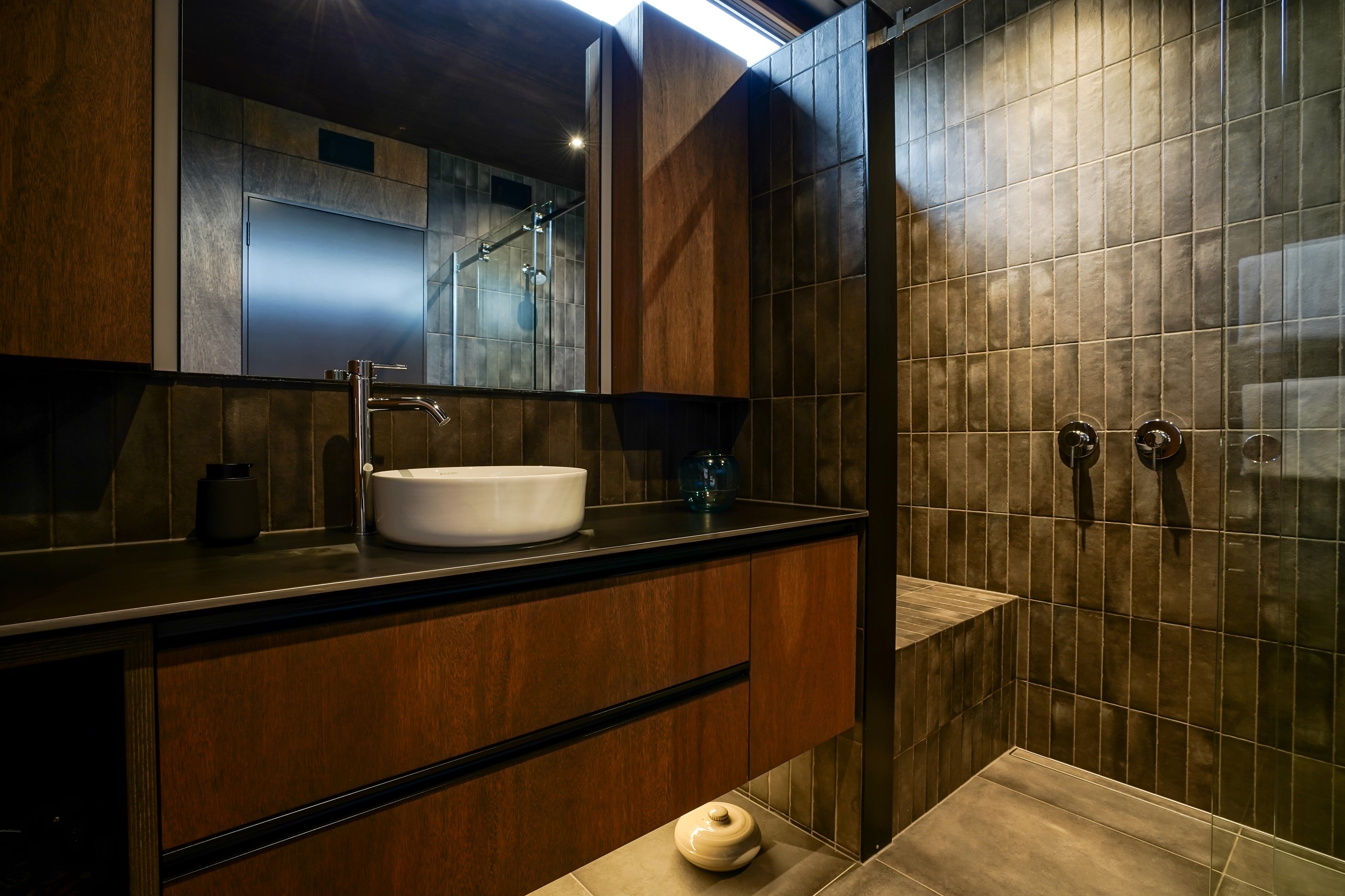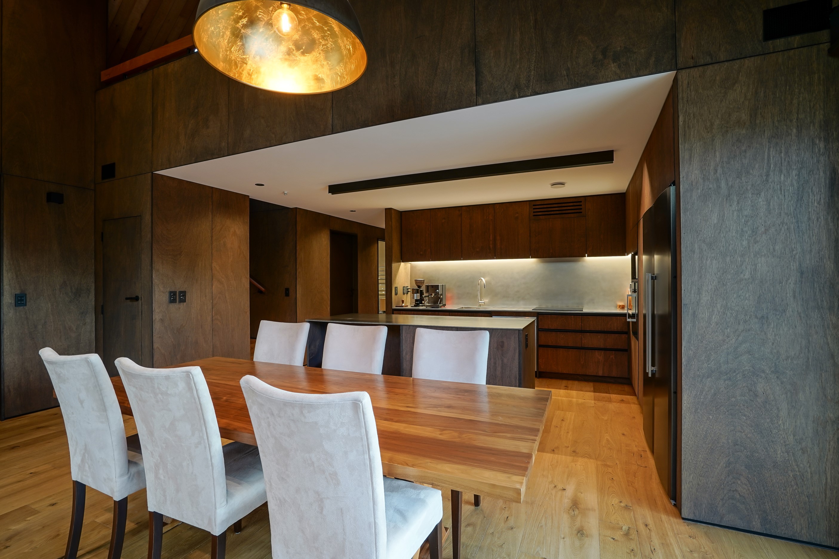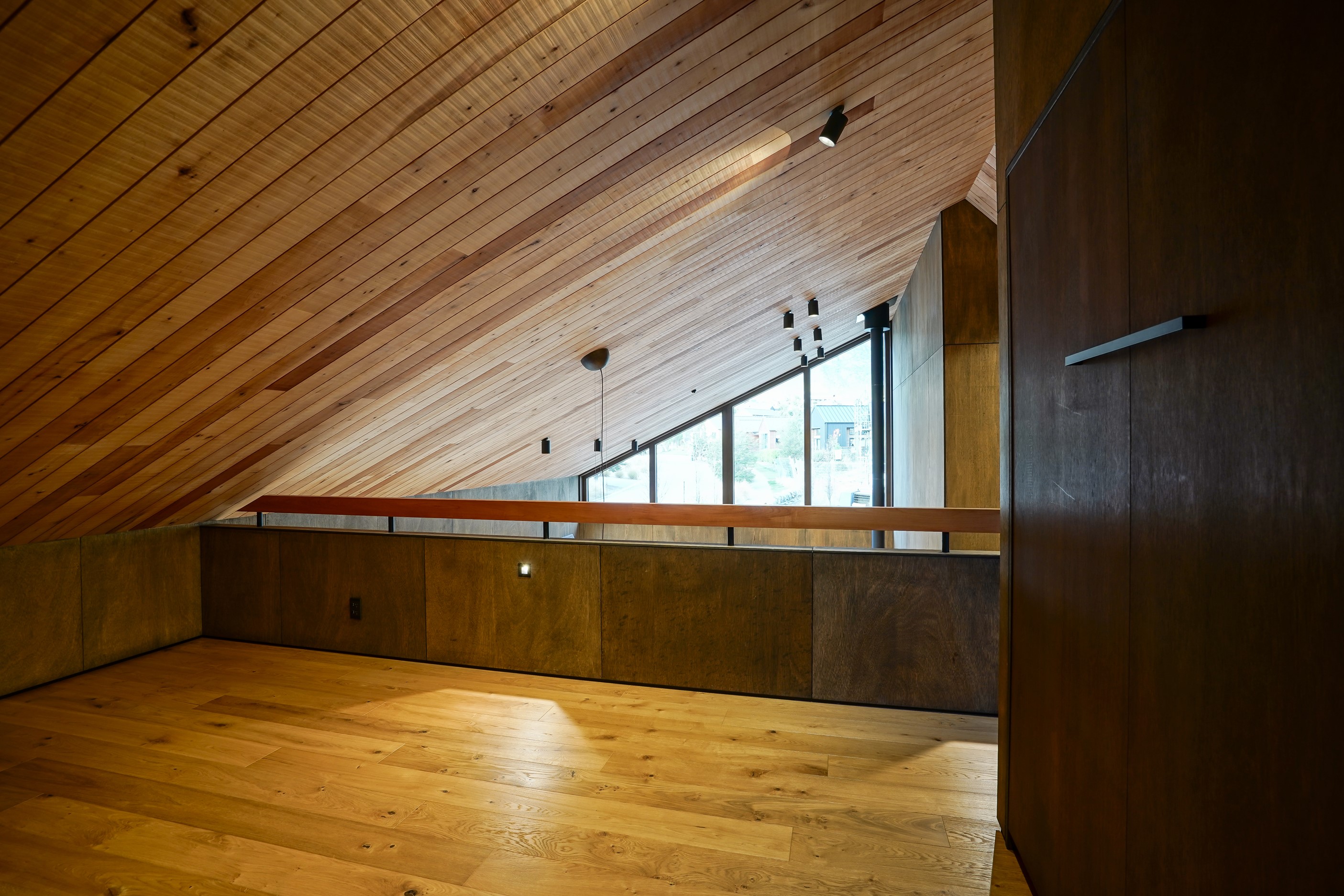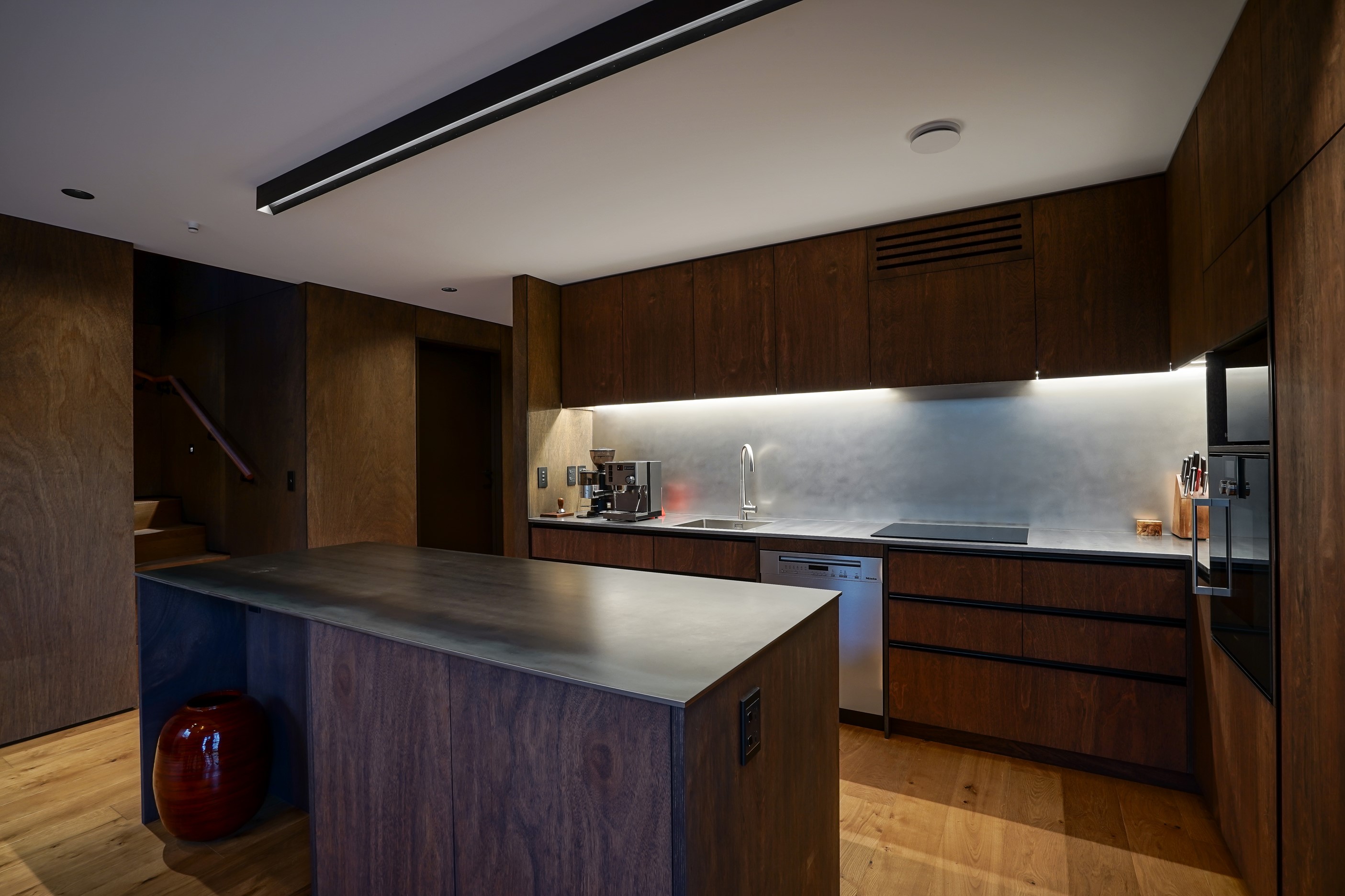 This house does much more than look lovely in its Queenstown locale. It’s also a healthy home, designed with energy-efficient principles and built with thermally broken joinery; a ventilation system and smart panels in the roof, floor and walls. It’s airtight too, so the owners enjoy comfy, healthy temperatures year round. The two-bedroom 210sqm house is clad in reclaimed hardwood, a sustainably sourced product, that is durable, low-maintenance, attractive and ideal for alpine climates. In the living area, a grand monopitch ceiling is lined with Southland beech, while a mezzanine enjoys uninterrupted views of The Remarkables. Interior walls are lined in ply with negative detailing, and you’ll see custom joinery and European oak flooring throughout. The aesthetic is cosy and natural, but also one of bespoke low-key luxury. You’ll find two bathrooms, and the main-bedroom ensuite serves up opulence that wouldn’t look out of place in a luxury resort. Dark wood and sage-coloured tiles are a match made in heaven. Beautifully designed and constructed, this is a home that is both luxurious and thermally efficient. It’s where high performance meets high-level style.