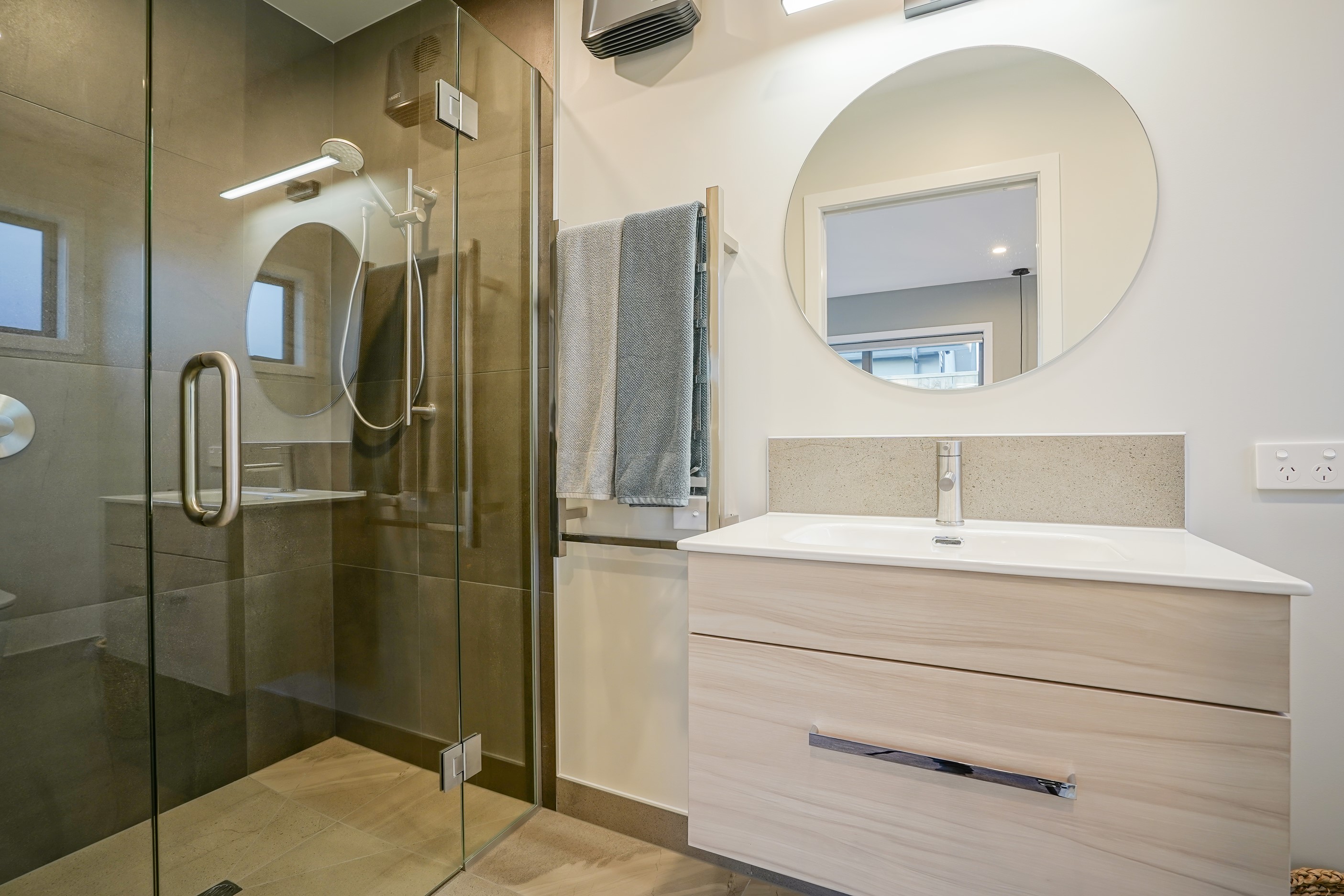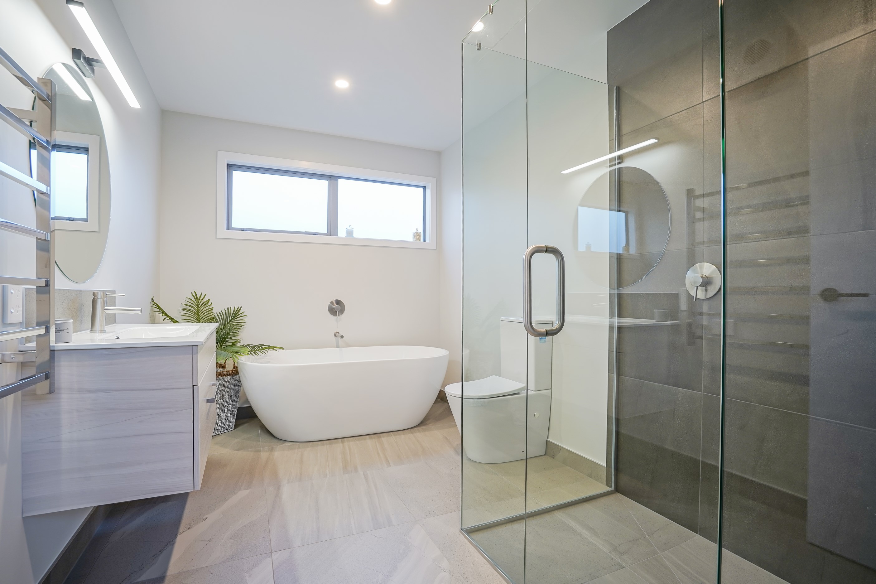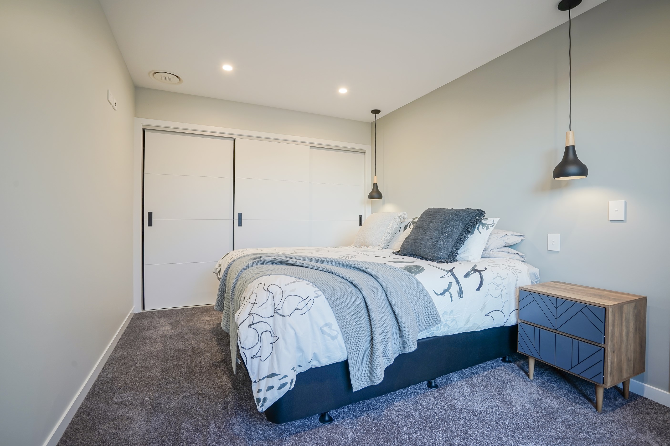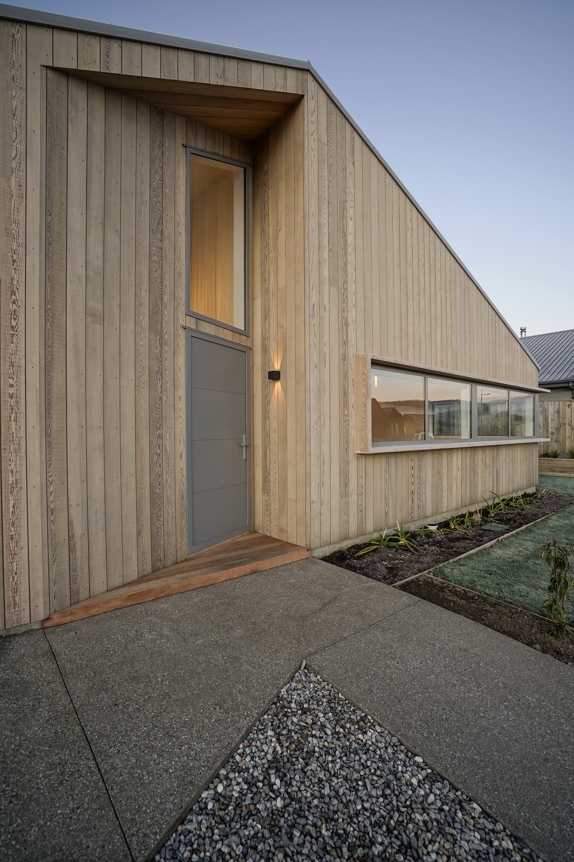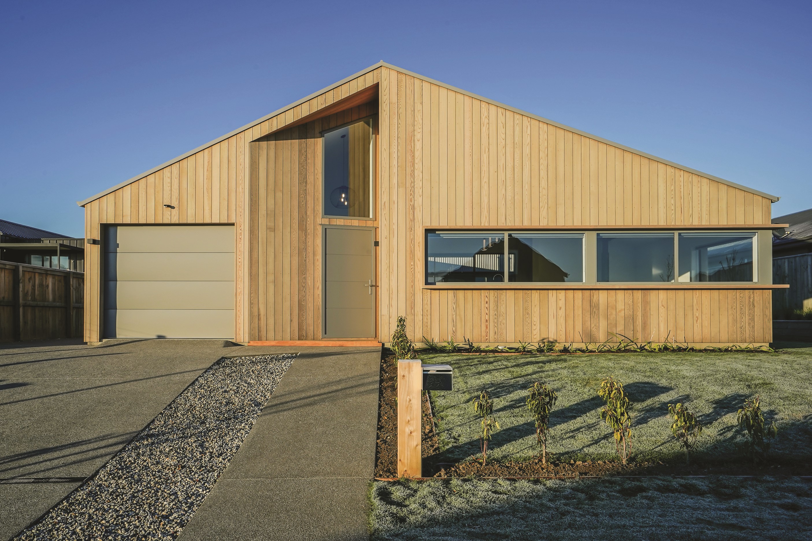 Here’s a stellar example of a familiar architectural form that has been executed to perfection. Looking from the street, you’re immediately drawn to the strong lines and angled soffit in western red cedar. And that’s only part of the story. The back portion of the 168sqm H-shaped Wānaka property is clad in vertical corrugated metal. Timber and metal – it’s all part of the Kiwi vernacular. Step inside and you’ll find soaring ceilings and light-filled spaces – the kitchen-dining area has three picture windows that capture the outlook. Connecting this part of the house with the bedroom wing is a sunny link with two large flush stacker doors that take you out to a sheltered hardwood deck. Too chilly? No worries. A log-burner pizza oven is mounted on a polished concrete pedestal. It’s here the combination of cedar and corrugate comes to the fore. Craftsmanship is evident everywhere, especially in the detailed flashings. Head through the link, which has a study nook, and a sliding barn door leads to the wing containing three bedrooms. The main suite, with ensuite, has direct access to the deck and courtyard. Other bonuses in this beauty include a freestanding bath and underfloor heating in the main bathroom.