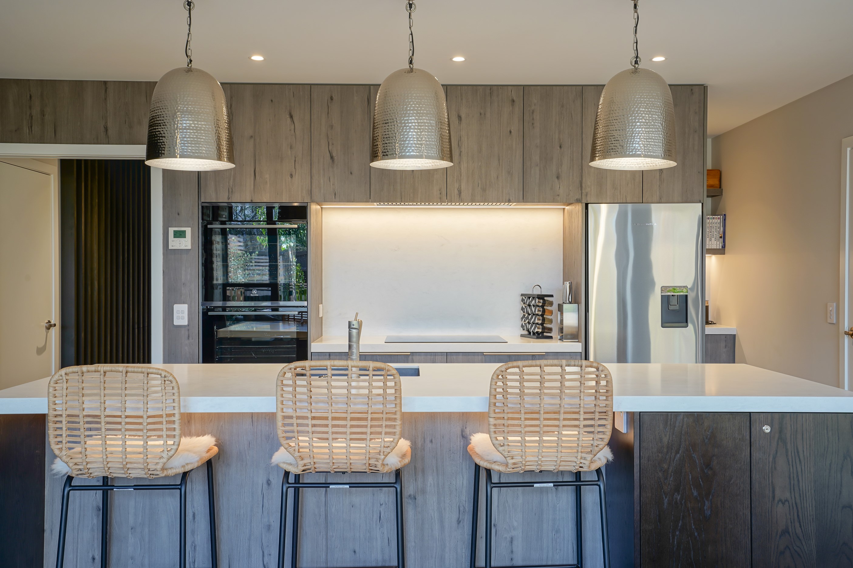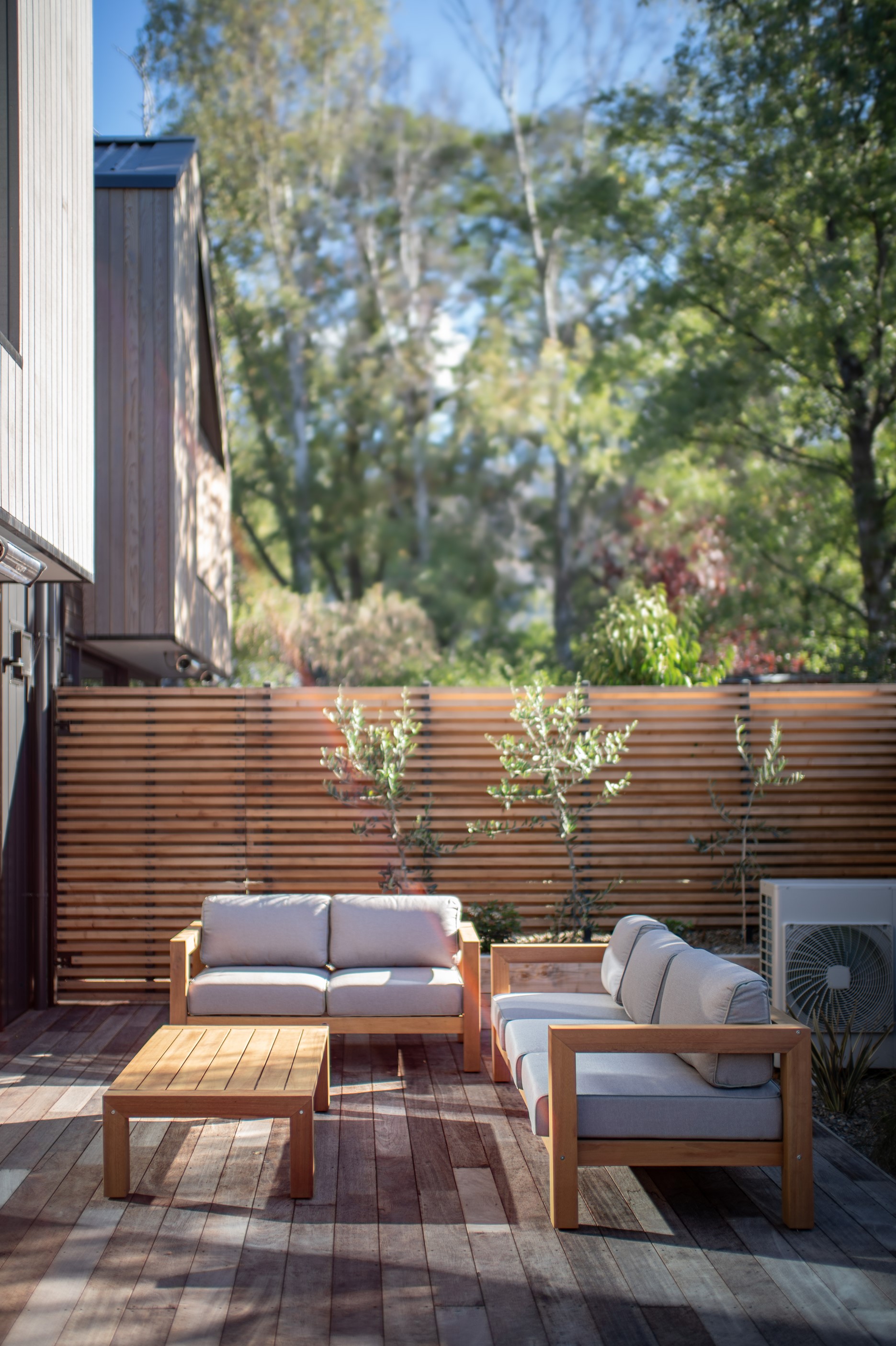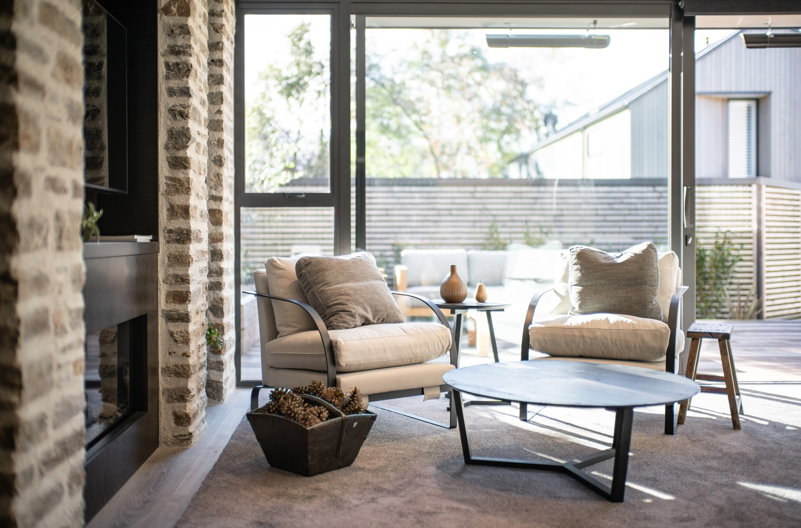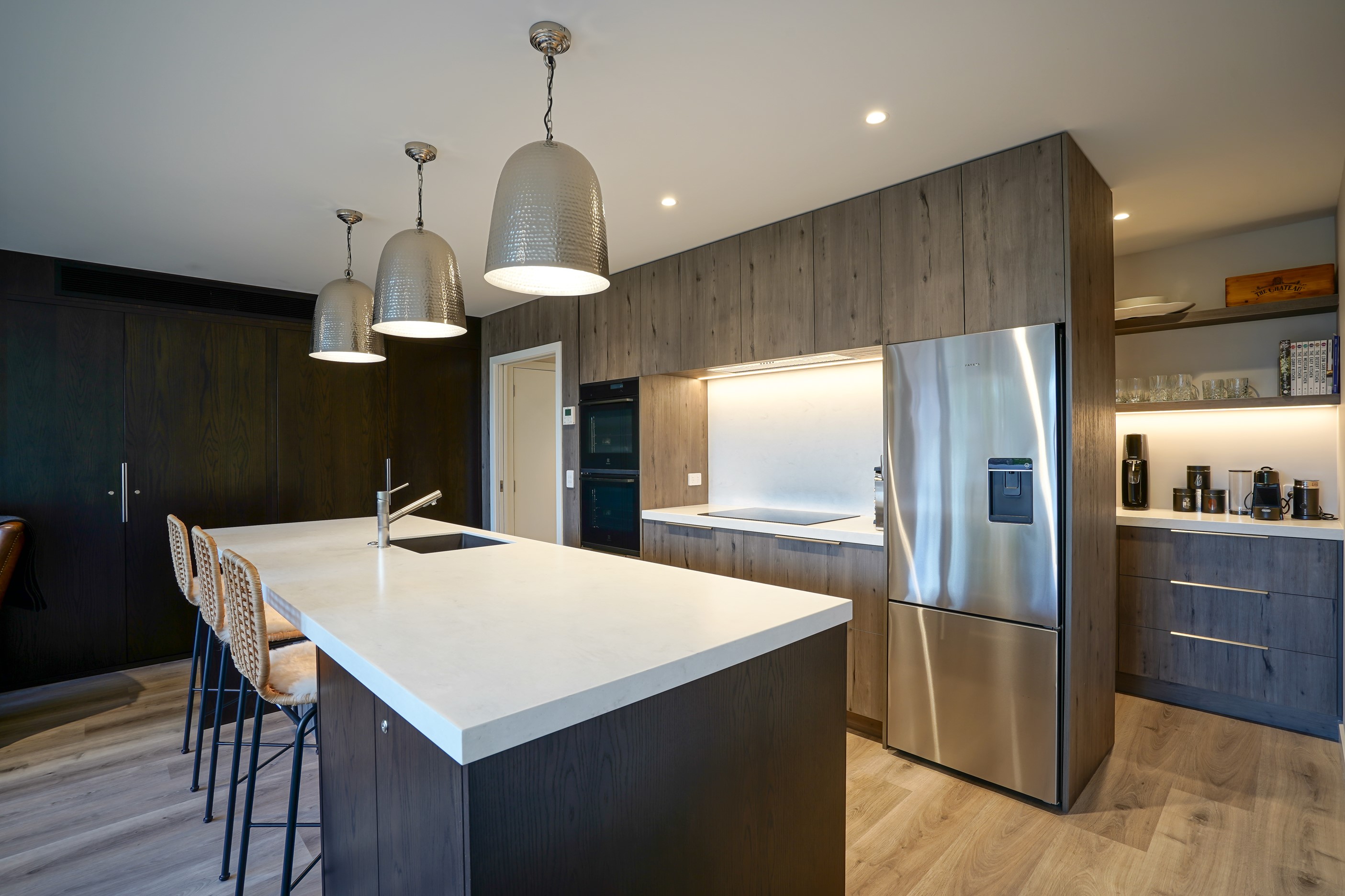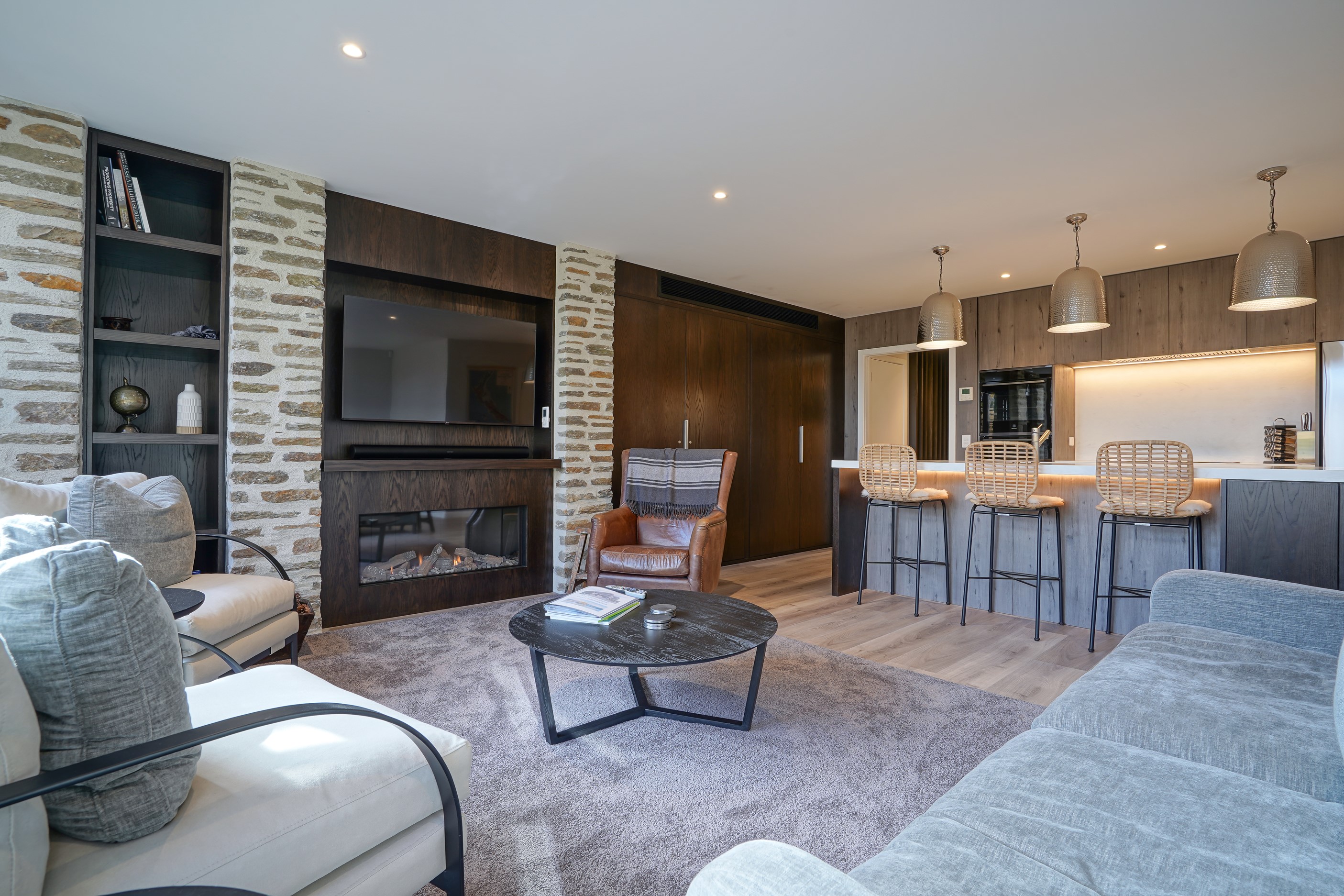 Think of apartments or duplex homes, and your mind doesn’t automatically spring to expansive living areas and multiple bedrooms with their own exquisitely tiled bathrooms. But these 300sqm mirror-image luxury homes have all the bells and whistles, and because of top-notch design, they also have space to burn. Architecturally designed and part of an upscale village, each is kitted out with butler’s pantry, open-plan living and dining area, internal-access garage, and the first of three bedrooms with their own ensuites on the ground floor. Upstairs are two more bedrooms, each with pitched ceilings and walk-in wardrobes, and a study. Yes, there’s plenty here in terms of space and must-haves, but there is also a focus on elegance and style. The exterior of the homes, in vertical timber and black steel, displays angles and recesses that require, time, skill and creativity. The same can be said of the interiors. Schist features pop in the downstairs living area, dark floor-to-ceiling timber balusters separate the entrance from the stairwell, and almost the entire lower-level can be opened up to a private courtyard. Which is precisely where you want to be on warm Central Otago summer evenings.