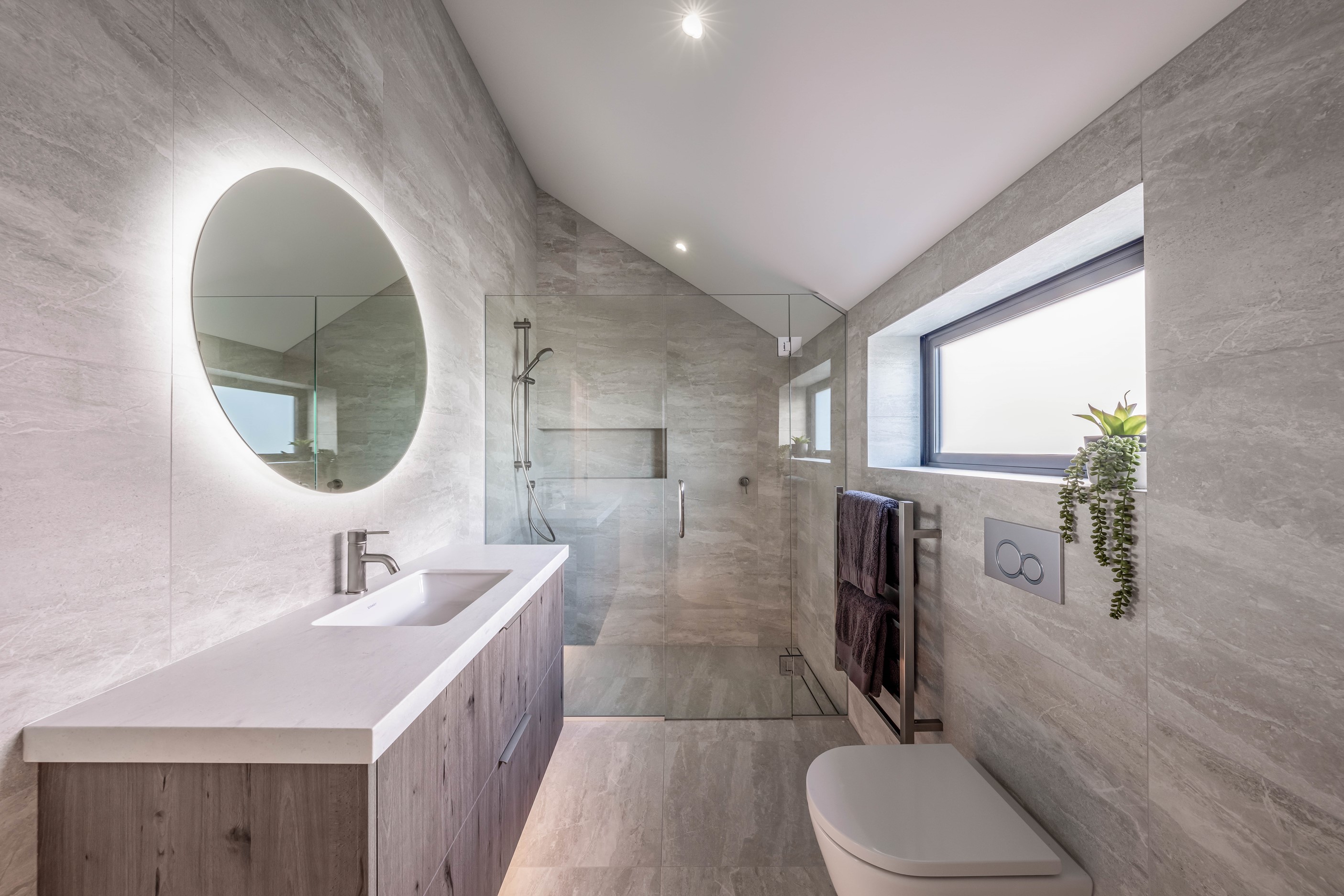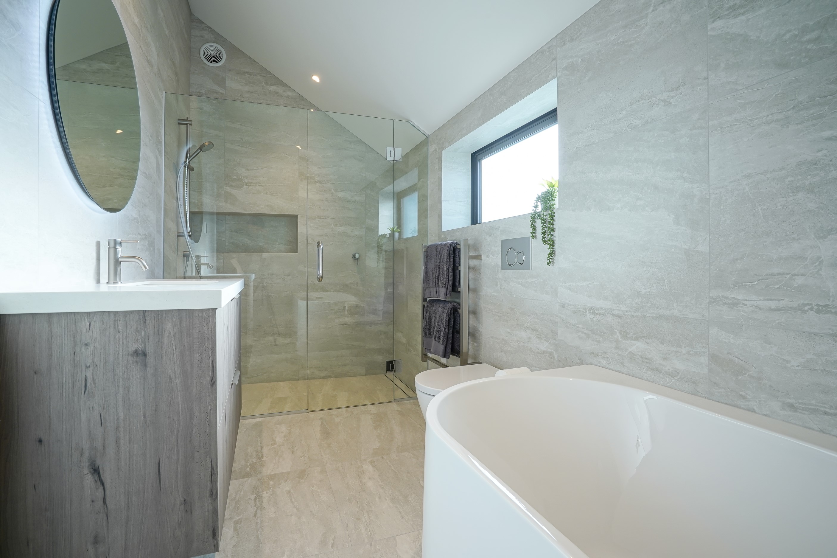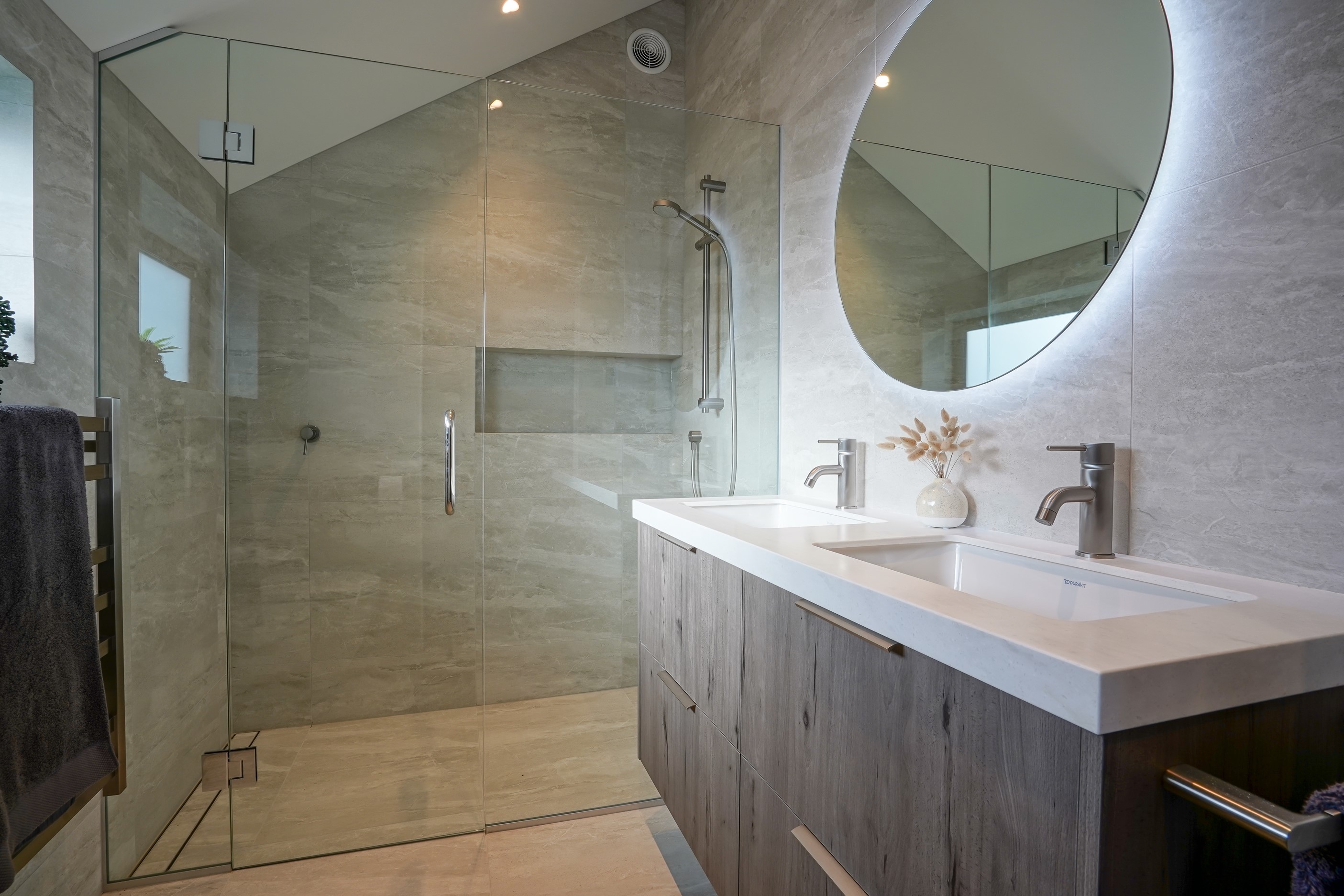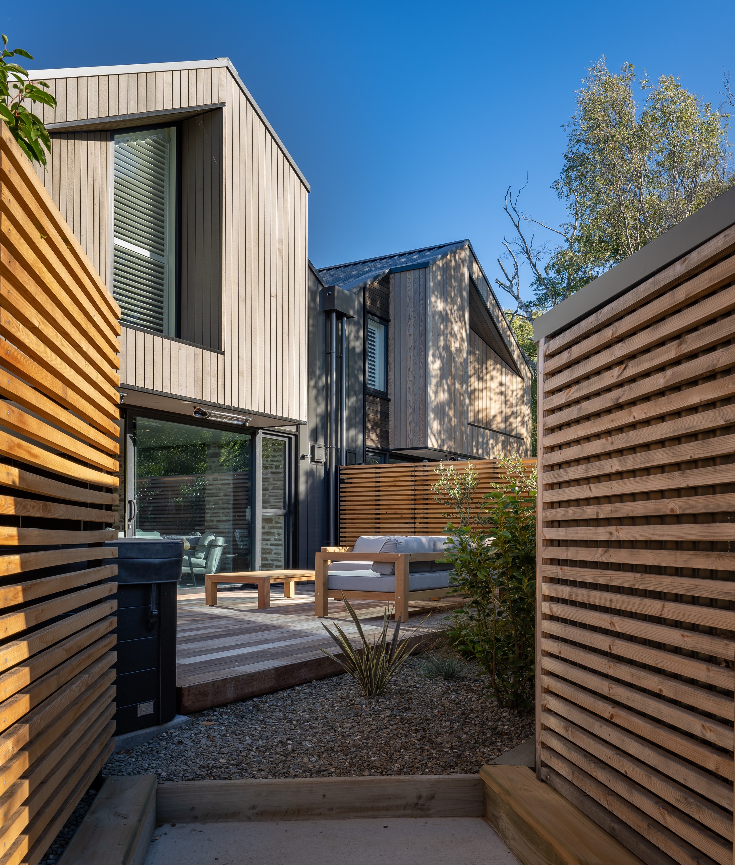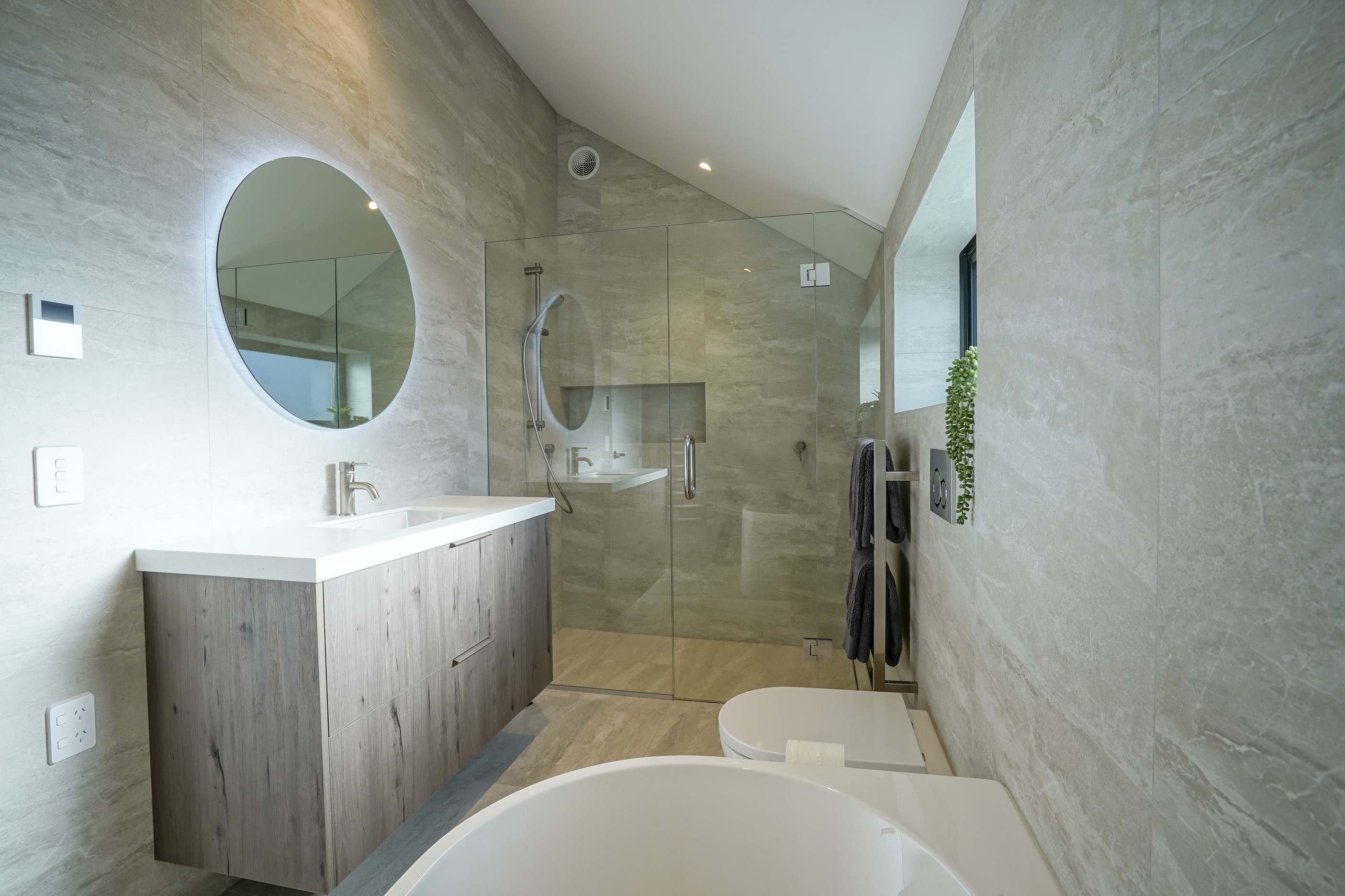 Think of apartments or duplex homes, and your mind doesn’t automatically spring to expansive living areas and multiple bedrooms with their own exquisitely tiled bathrooms. But these 300sqm mirror-image luxury homes have all the bells and whistles, and because of top-notch design, they also have space to burn. Architecturally designed and part of an upscale village, each is kitted out with butler’s pantry, open-plan living and dining area, internal-access garage, and the first of three bedrooms with their own ensuites on the ground floor. Upstairs are two more bedrooms, each with pitched ceilings and walk-in wardrobes, and a study. Yes, there’s plenty here in terms of space and must-haves, but there is also a focus on elegance and style. The exterior of the homes, in vertical timber and black steel, displays angles and recesses that require, time, skill and creativity. The same can be said of the interiors. Schist features pop in the downstairs living area, dark floor-to-ceiling timber balusters separate the entrance from the stairwell, and almost the entire lower-level can be opened up to a private courtyard. Which is precisely where you want to be on warm Central Otago summer evenings.