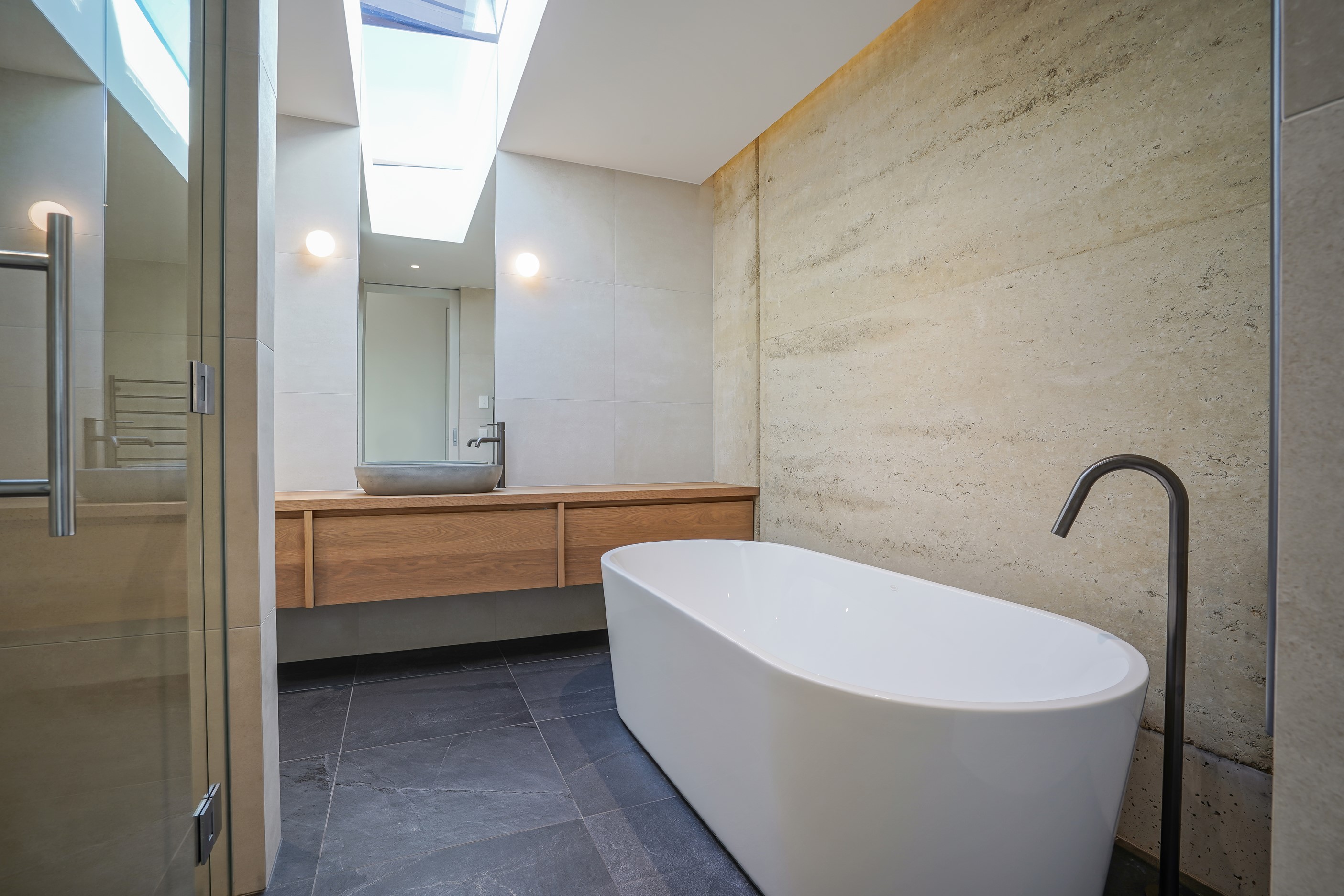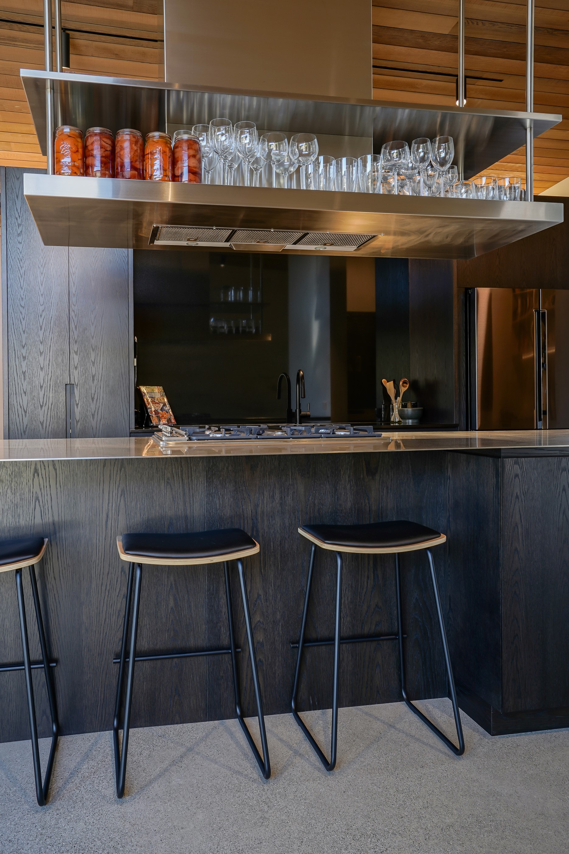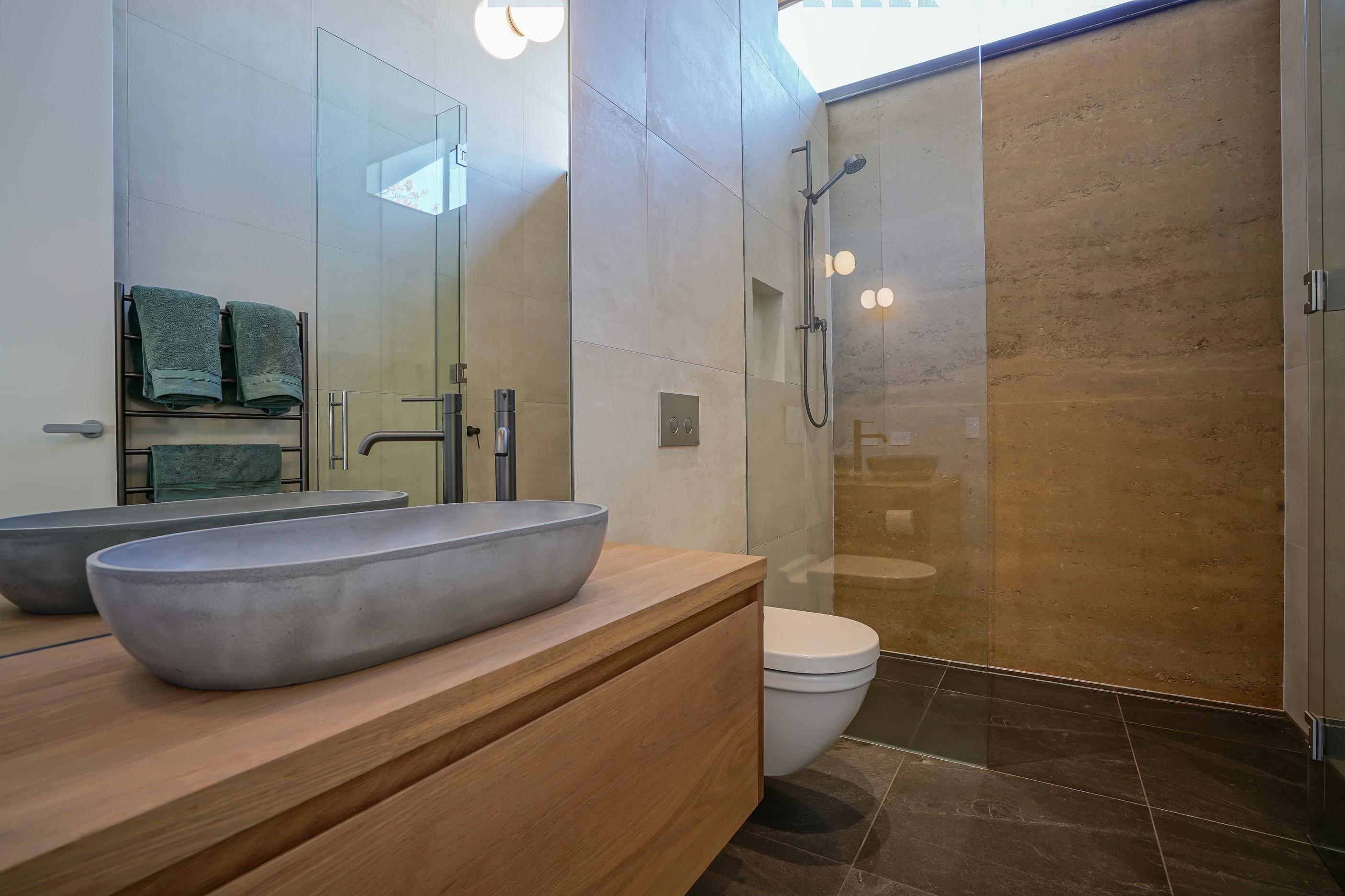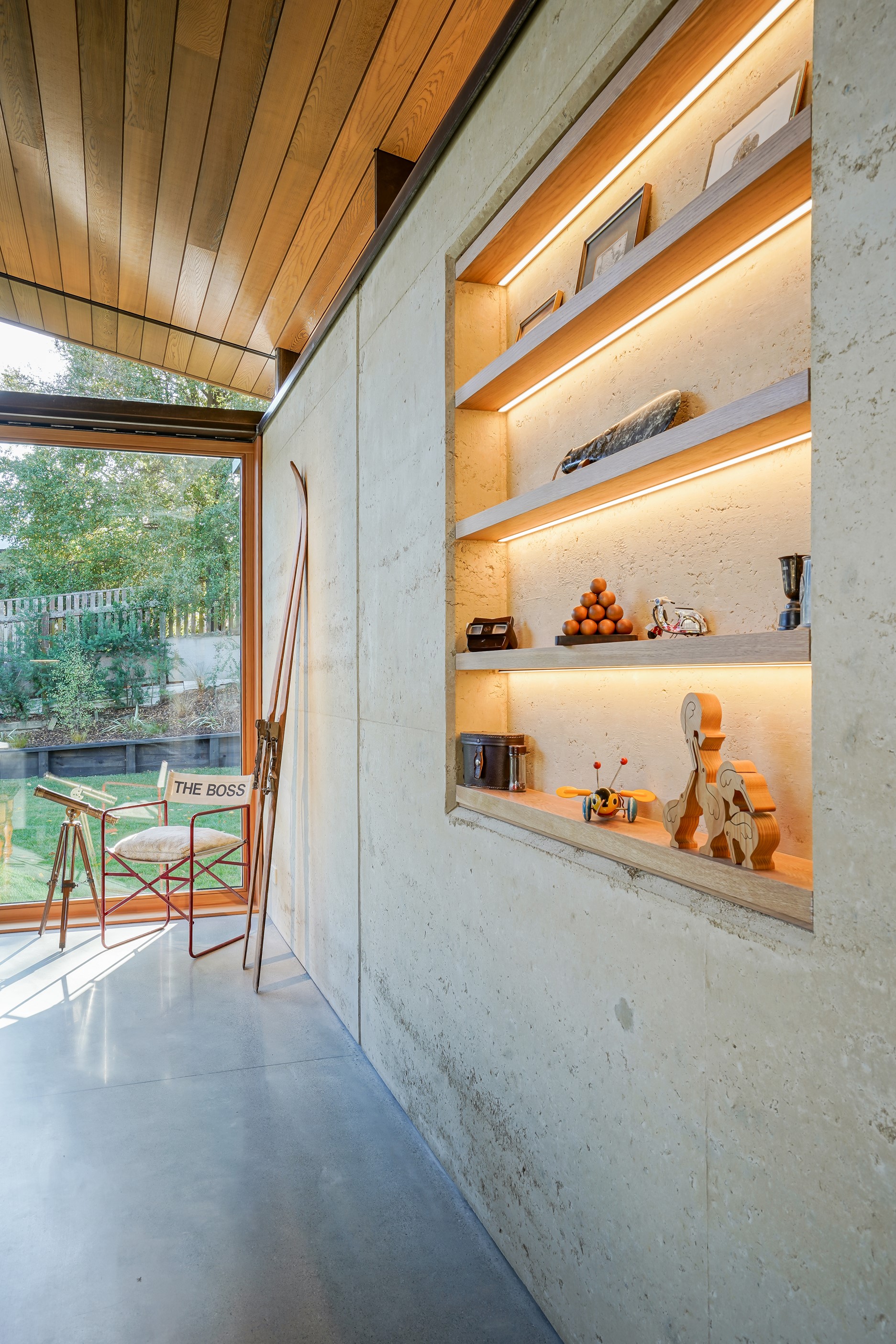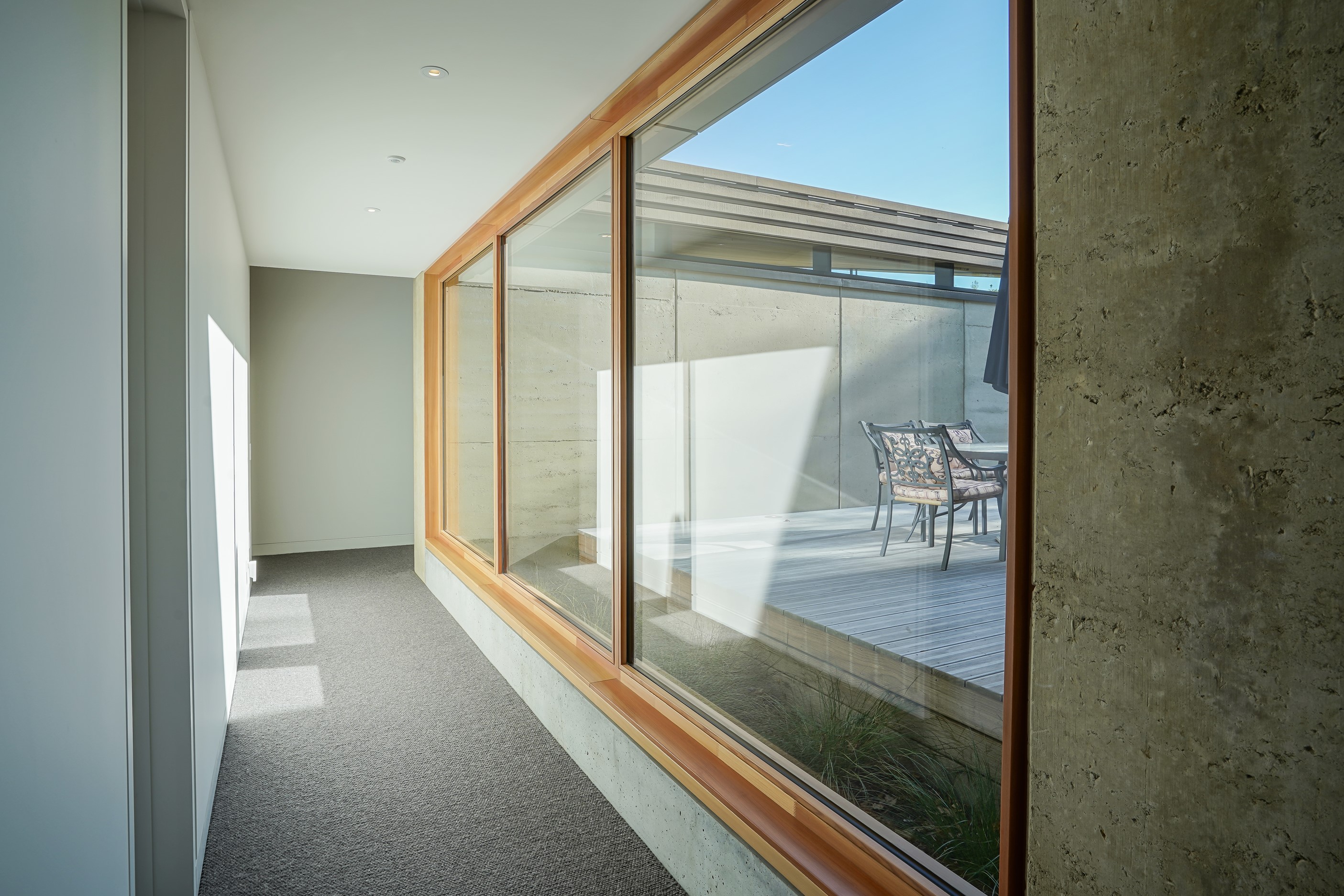 The phrase ‘shining example’ can be overused, but not in this instance. This 289sqm home is the result of a singular vision, a collaborative approach and a building team overcoming hurdles thrown up during the tumult of Covid lockdowns. Despite the owner and project manager being unable to visit from overseas, the team successfully delivered this complex three-bedroom build. Replacing an old family crib, the new house needed to be a place in which future generations would make memories. The owners also wanted to leave a positive legacy in the lakeside town. Their beautifully crafted, cutting-edge residence has monolithic rammed-earth walls and ‘twisted’ pavilion roofs as the undisputed stars. The sheer mass of the earth walls evoke a primal sense of shelter. The roof, which is supported on steel fins, required a high degree of technical skill. Inside, cedar ceilings and negative detailing with seamless wall joins belie the complexity of the work, which is precise and meticulous. Sustainability also influenced many key decisions, including using passive-house principles, local earth in the rammed walls, warm-roof technology and carbon-positive timber.