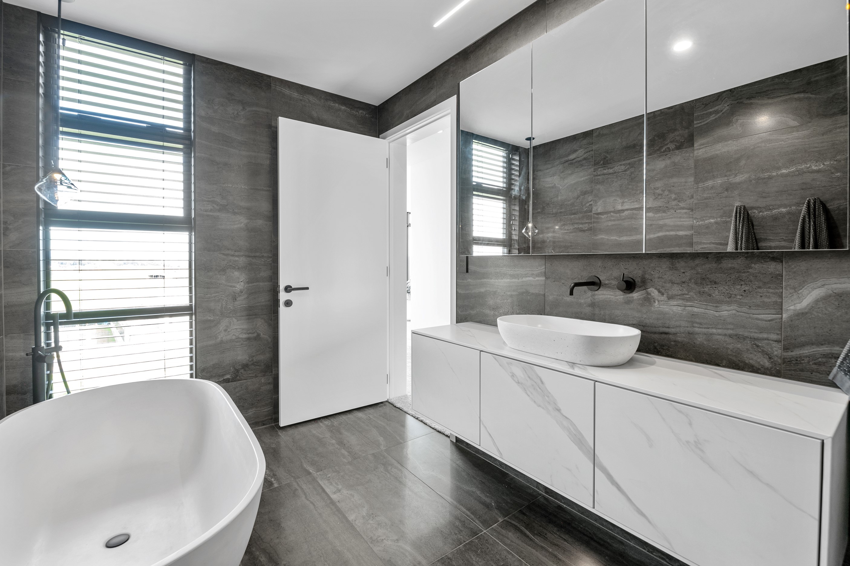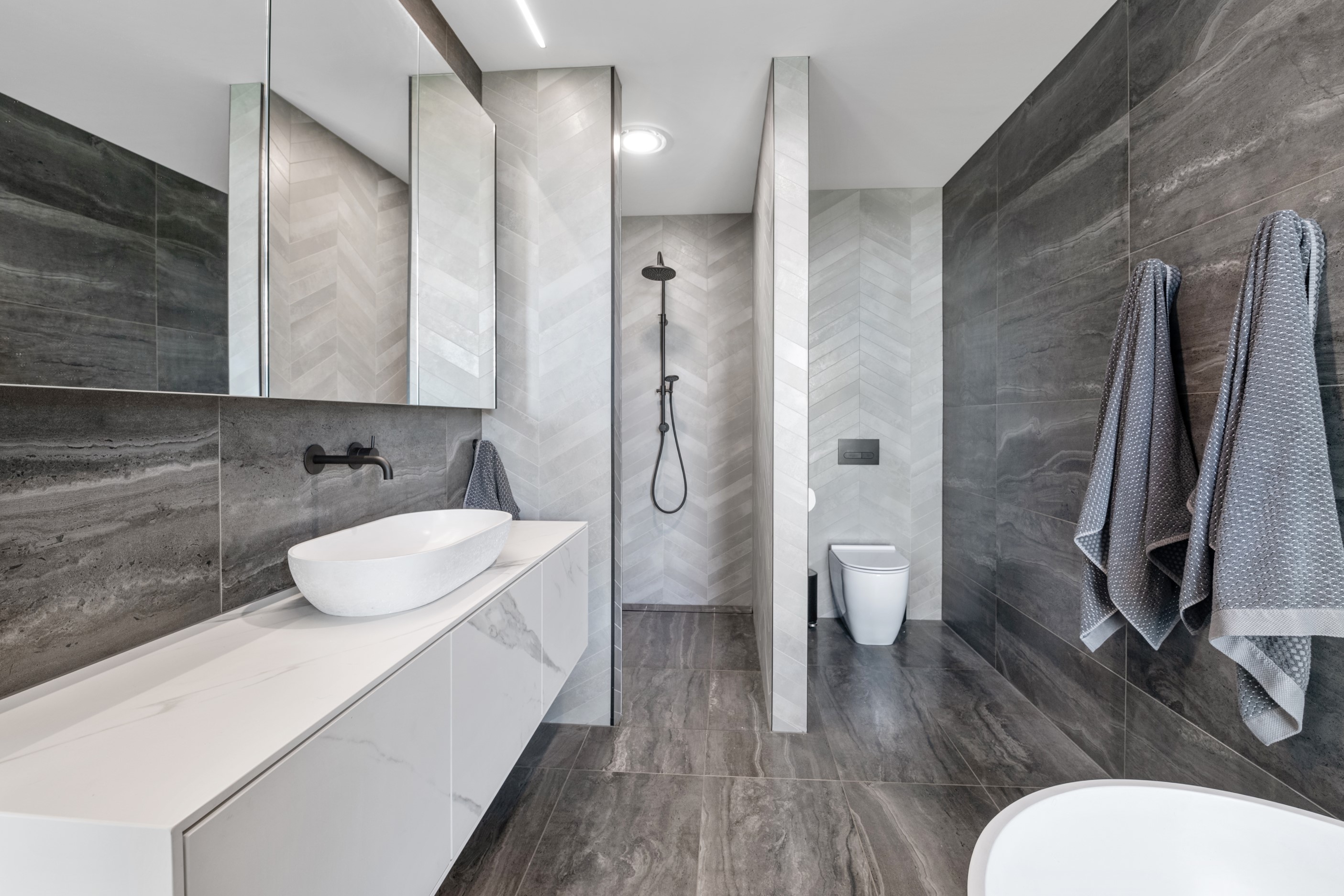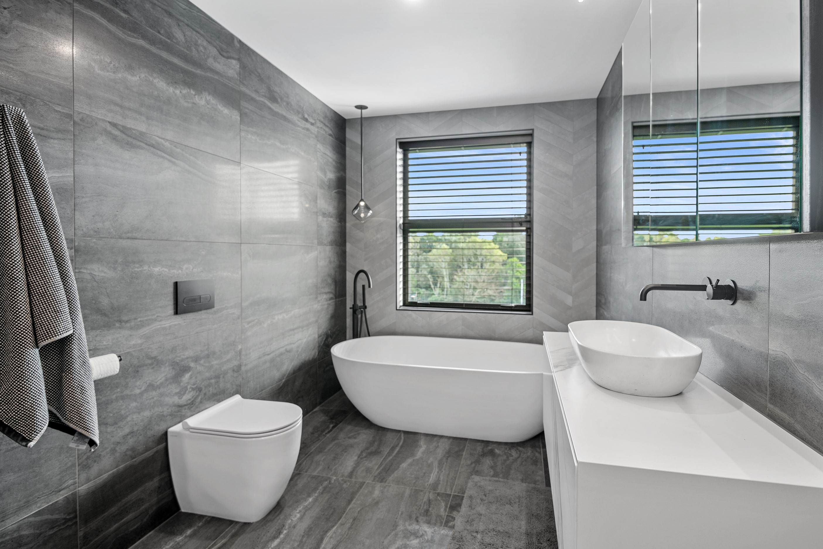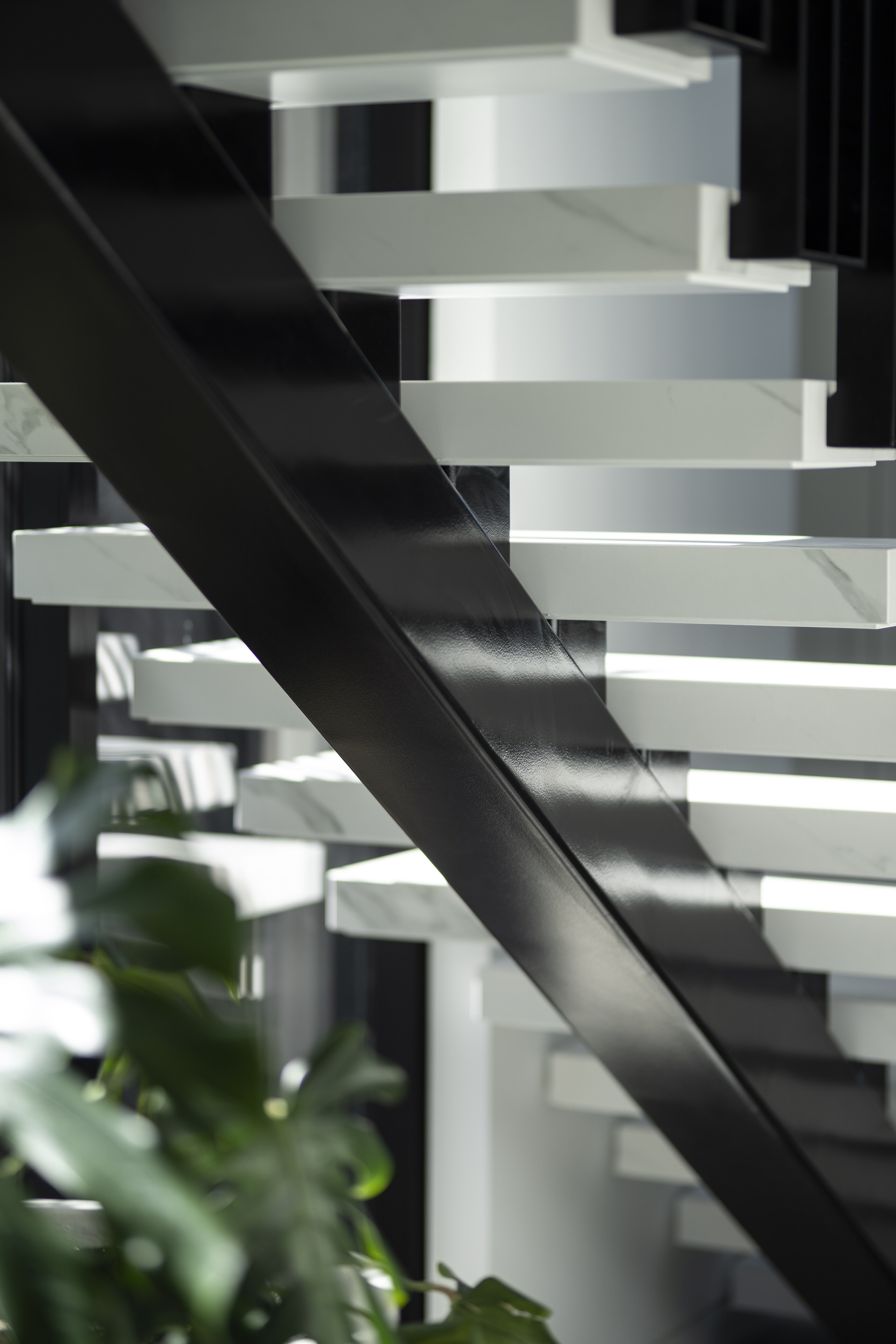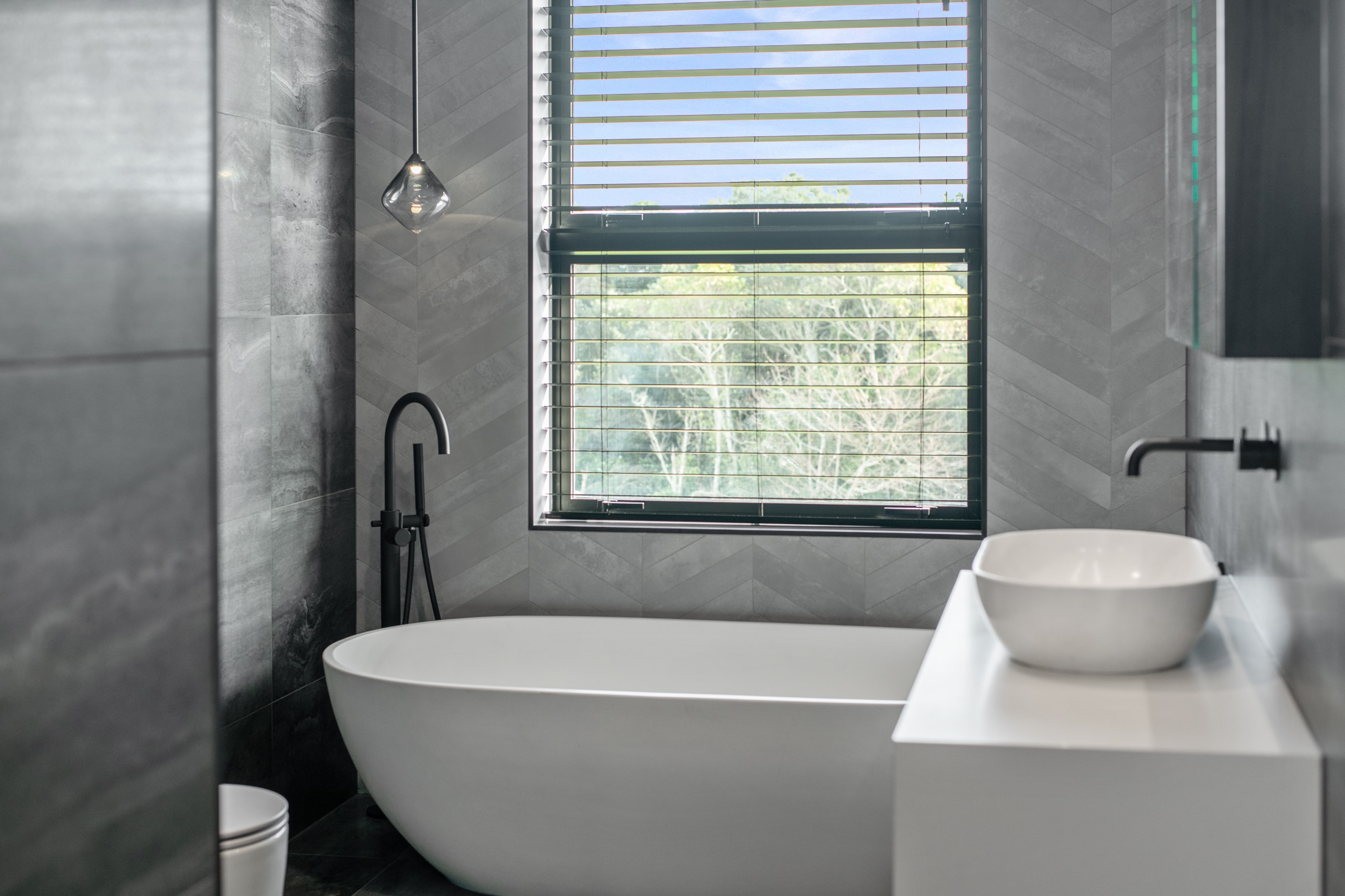 The clients asked for their dream home to be large and luxurious and they certainly got what they asked for – with stellar craftsmanship as well. Beautiful vertical cedar cladding sets the tone here. Step into the double-height entry and you’ll see a voluminous space with an exquisite floating staircase and steel screen through which morning sunlight shines. Floor-to-ceiling and carefully placed windows in the living areas provide panoramic views of the beautiful Taranaki landscape, including the mountain. These rooms merge seamlessly with the outdoor living zone and pool deck. Sliding doors partition off areas for warmth and privacy, when required. Three bedrooms in meticulously detailed cedar- clad boxes appear to float over the public spaces. The timber’s warmth softens the monochromatic interior palette in the sleek kitchen and living areas. You’ll find another family room and a convenient second bathroom upstairs, too. The main bedroom has a walk-in wardrobe, opulent ensuite and a balcony that enjoys glimpses of the Tasman Sea. This 425sqm house on the semi-rural outskirts of New Plymouth exudes style at every turn
