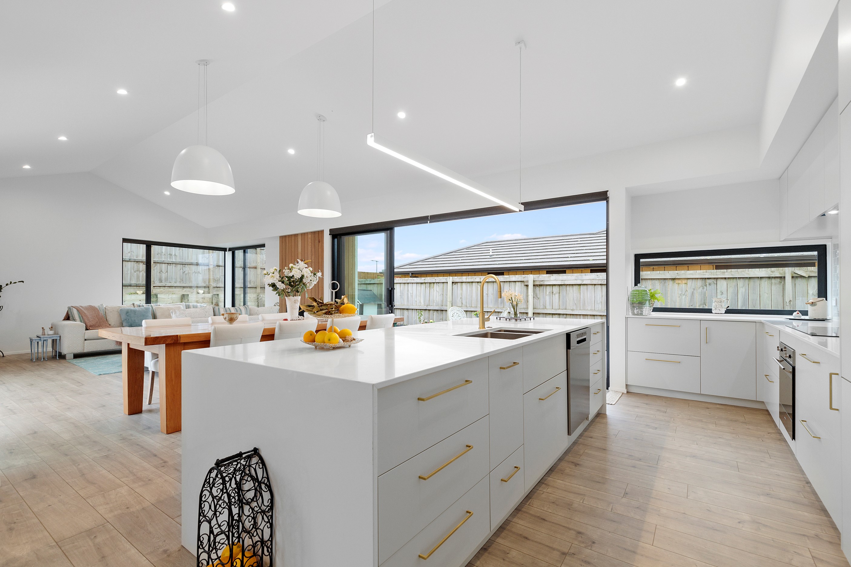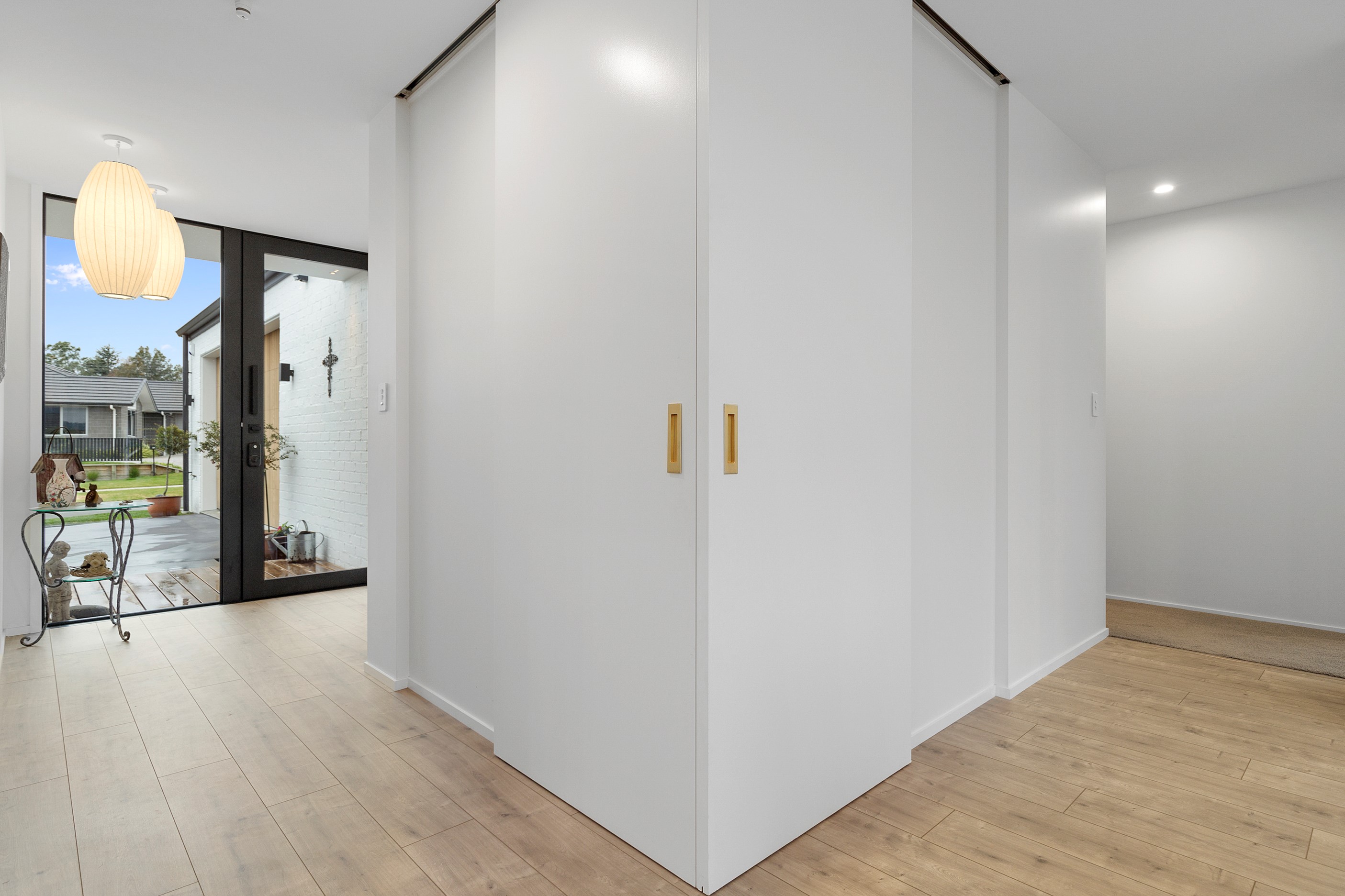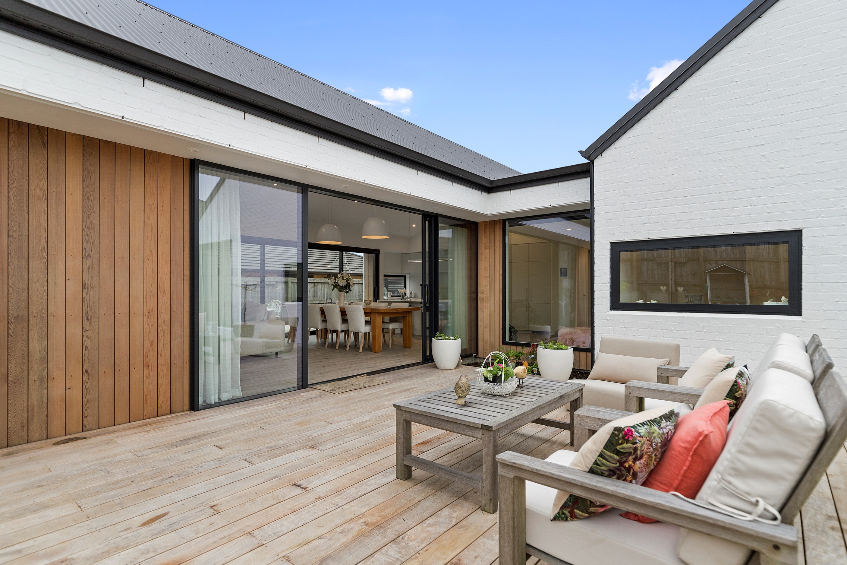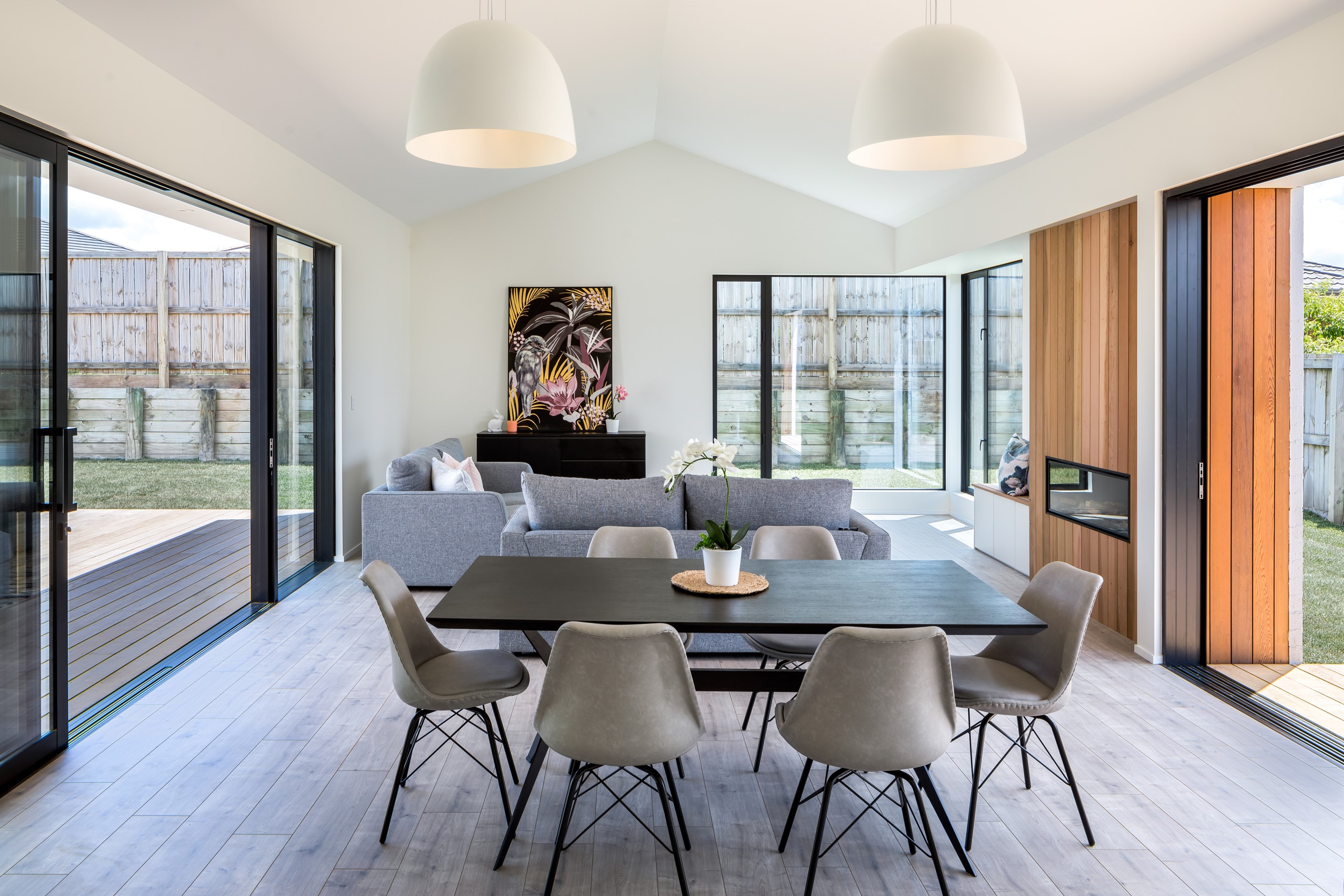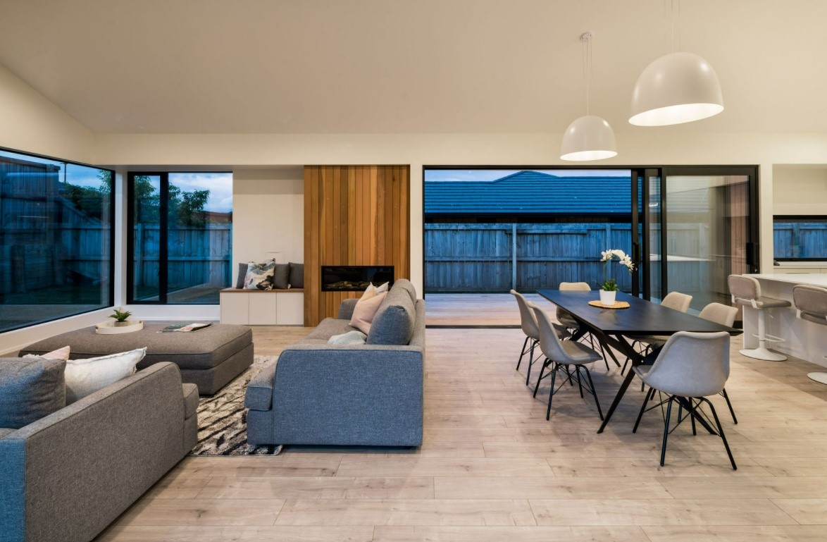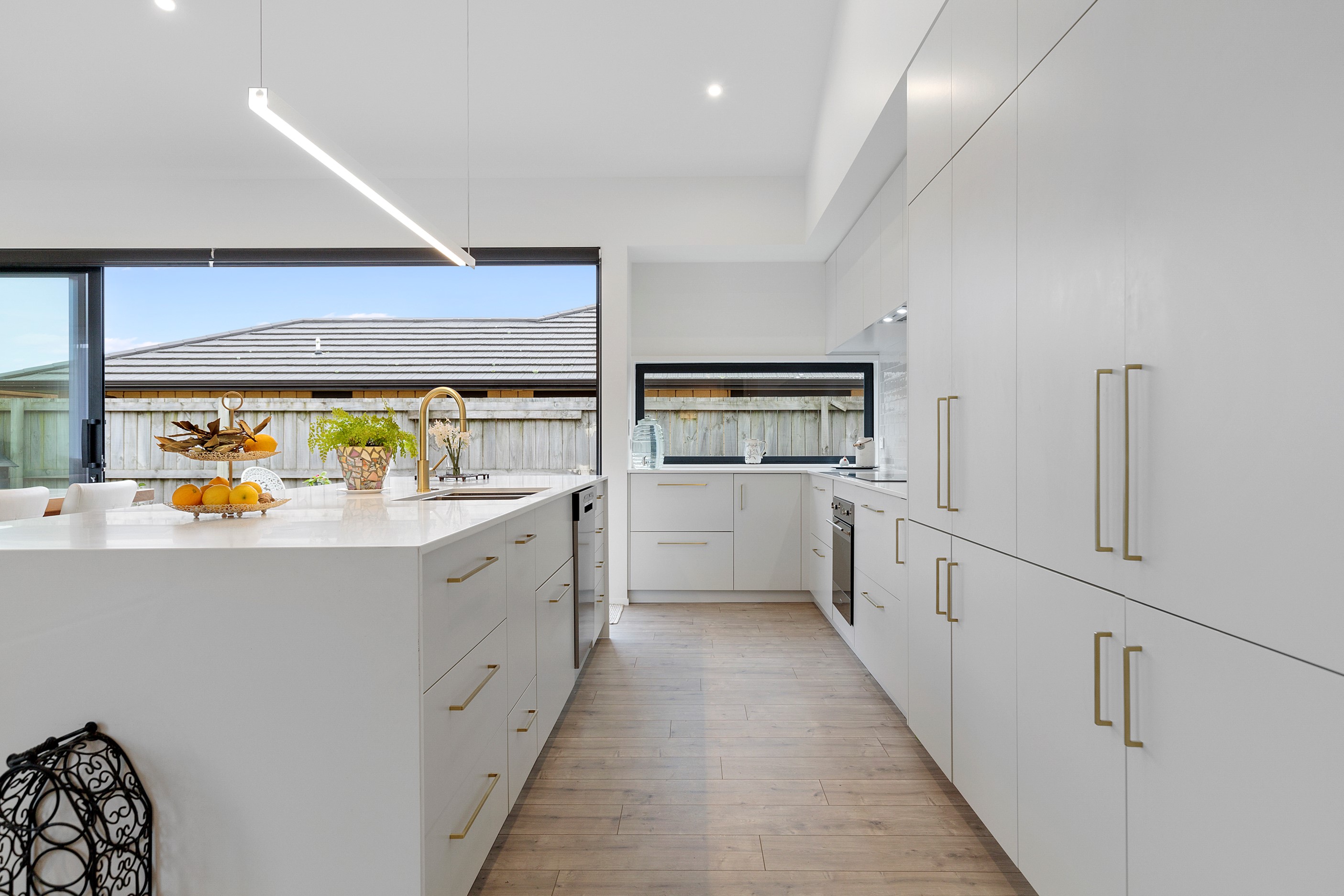 With elevated properties on two of the three sides, the challenge was to design a house that would make best use of a private area at the rear of the section. Living areas needed to be tucked away from the road and flow to outdoor areas. The house also needed to include three bedrooms, display pared-back lines and create street appeal. It’s clear the objectives have been met, and then some. Edwards White Architects took the client’s requests on board and designed a beautiful home with timeless appeal. The 211sqm residence is clad in bagged brick, has timber shiplap features, and delivers delightful details within – all of which are gradually revealed as you progress throughout the home. A feature that has become increasingly important in recent times is an office to accommodate working from home. This one has been designed to be closed off, ensuring it almost disappears, which helps with the all-important work-life separation and balance. Air flow, natural light and efficient heating are achieved with automated solar-powered skylights and a ducted fireplace. Meanwhile, low-e glass mitigates heat loss and sun damage.