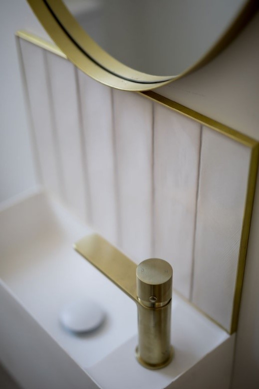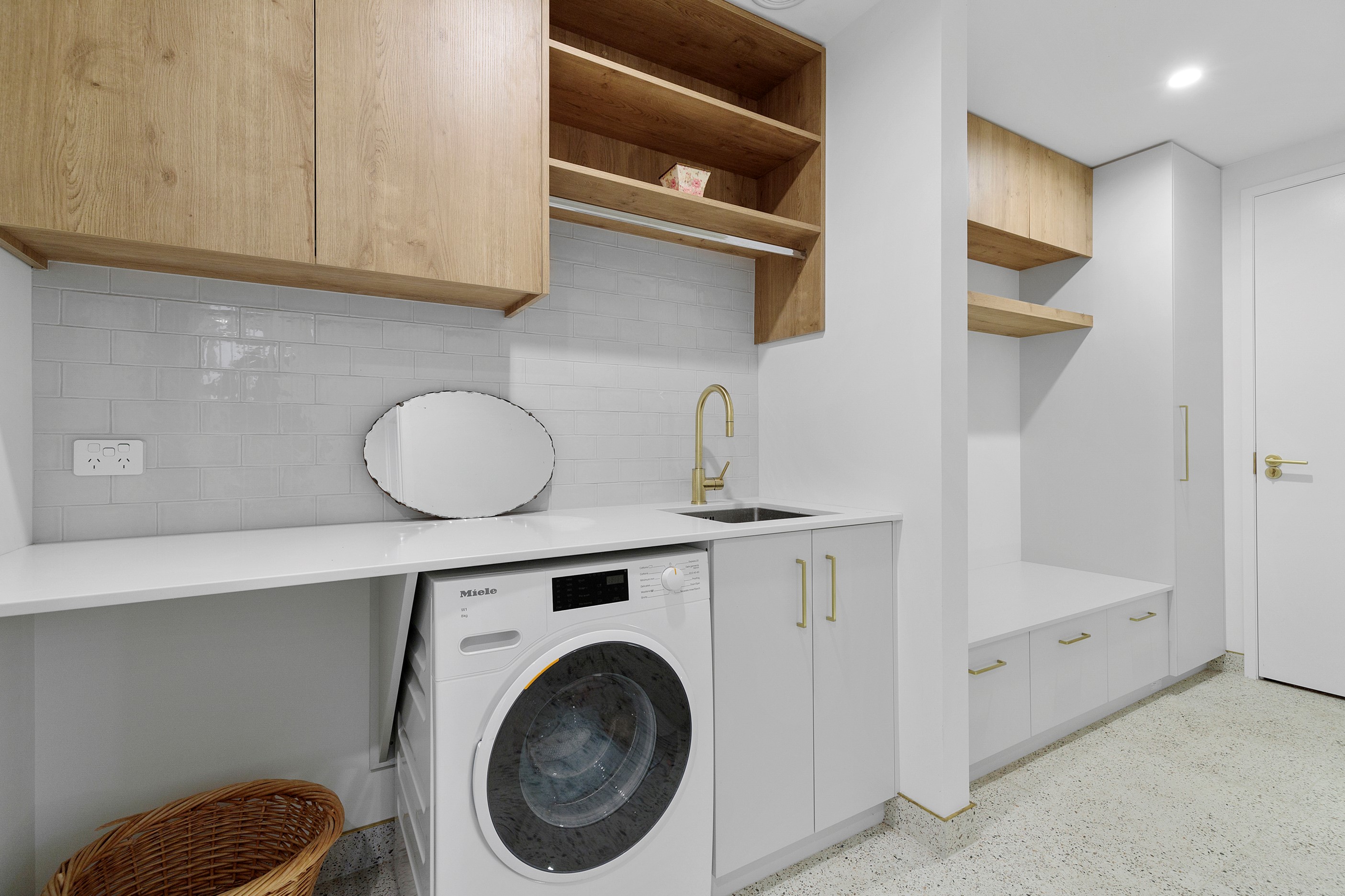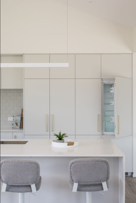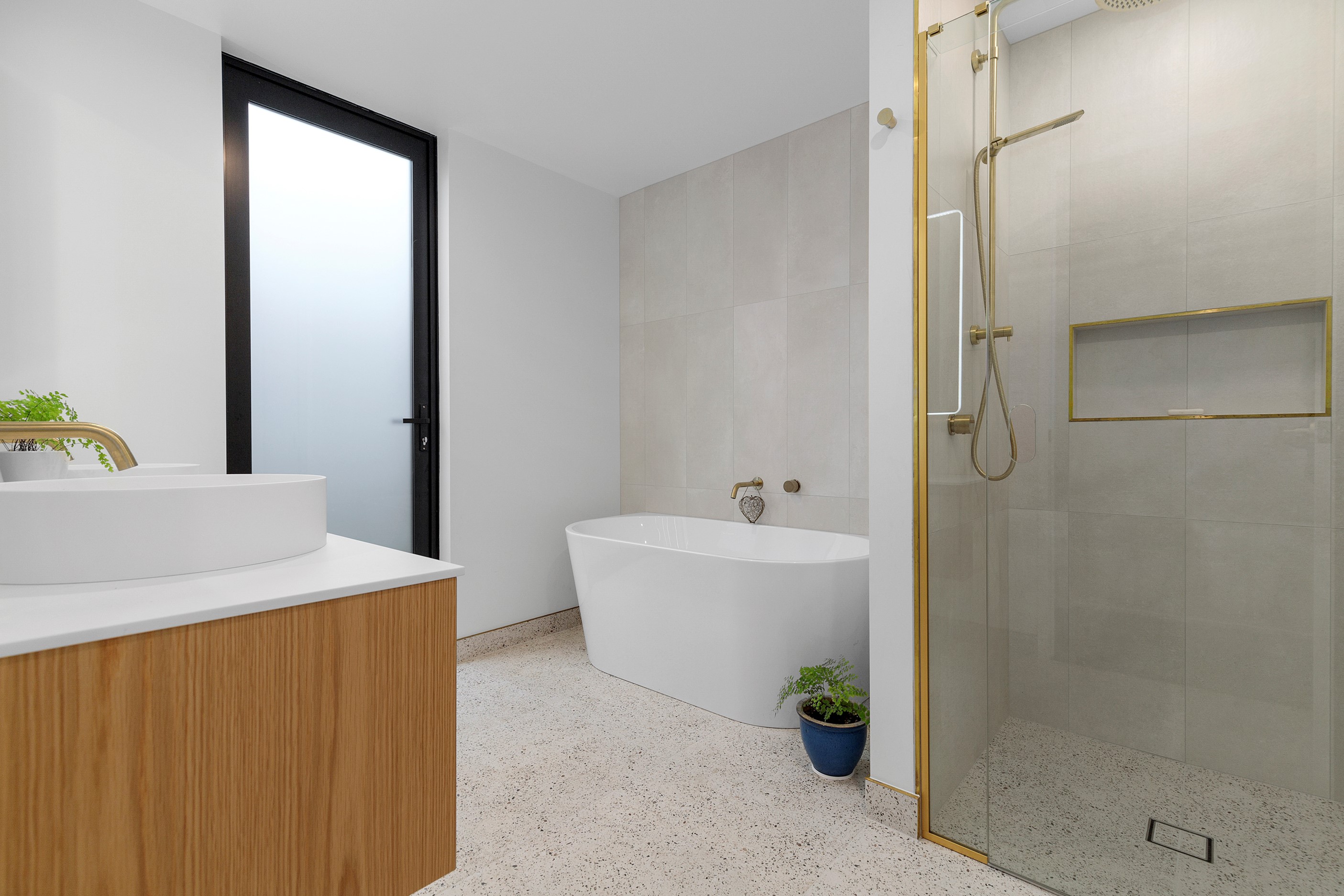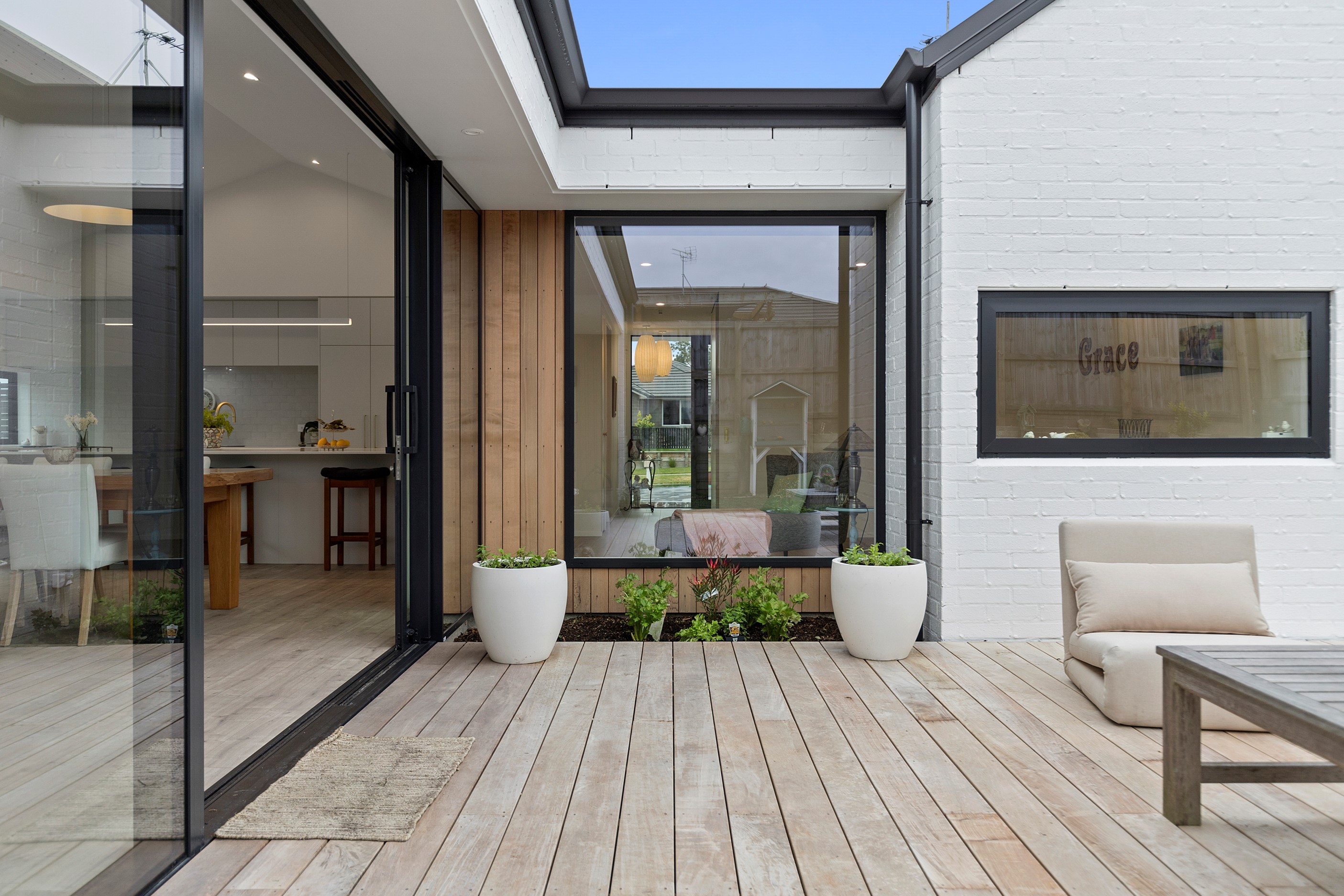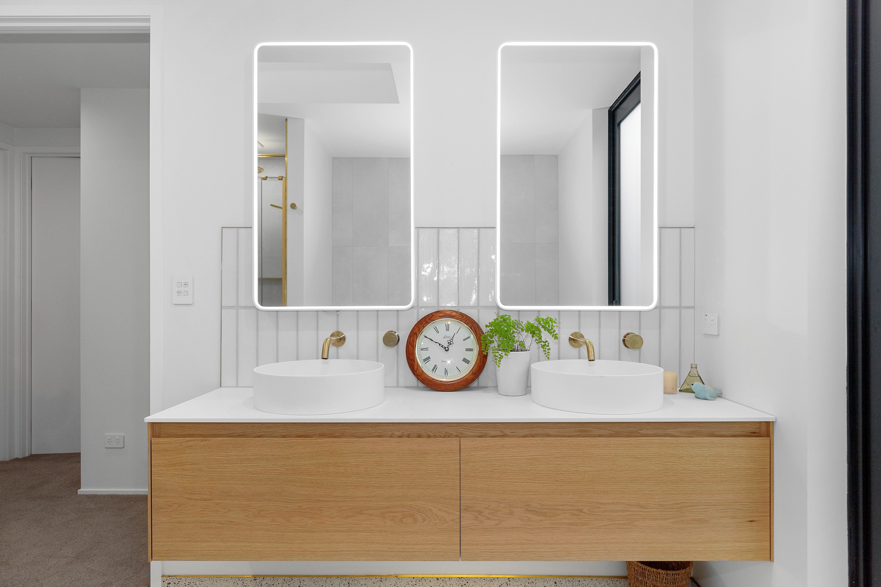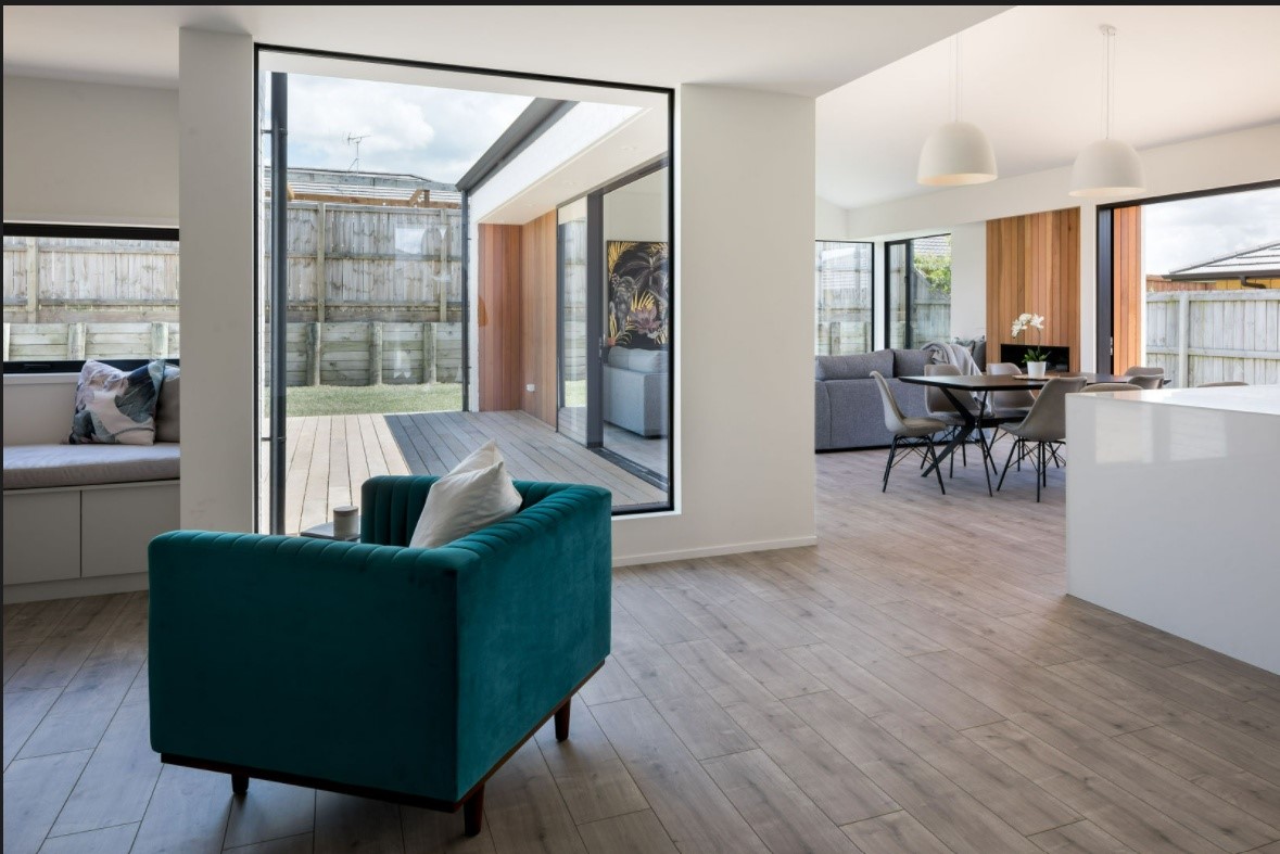 With elevated properties on two of the three sides, the challenge was to design a house that would make best use of a private area at the rear of the section. Living areas needed to be tucked away from the road and flow to outdoor areas. The house also needed to include three bedrooms, display pared-back lines and create street appeal. It’s clear the objectives have been met, and then some. Edwards White Architects took the client’s requests on board and designed a beautiful home with timeless appeal. The 211sqm residence is clad in bagged brick, has timber shiplap features, and delivers delightful details within – all of which are gradually revealed as you progress throughout the home. A feature that has become increasingly important in recent times is an office to accommodate working from home. This one has been designed to be closed off, ensuring it almost disappears, which helps with the all-important work-life separation and balance. Air flow, natural light and efficient heating are achieved with automated solar-powered skylights and a ducted fireplace. Meanwhile, low-e glass mitigates heat loss and sun damage.