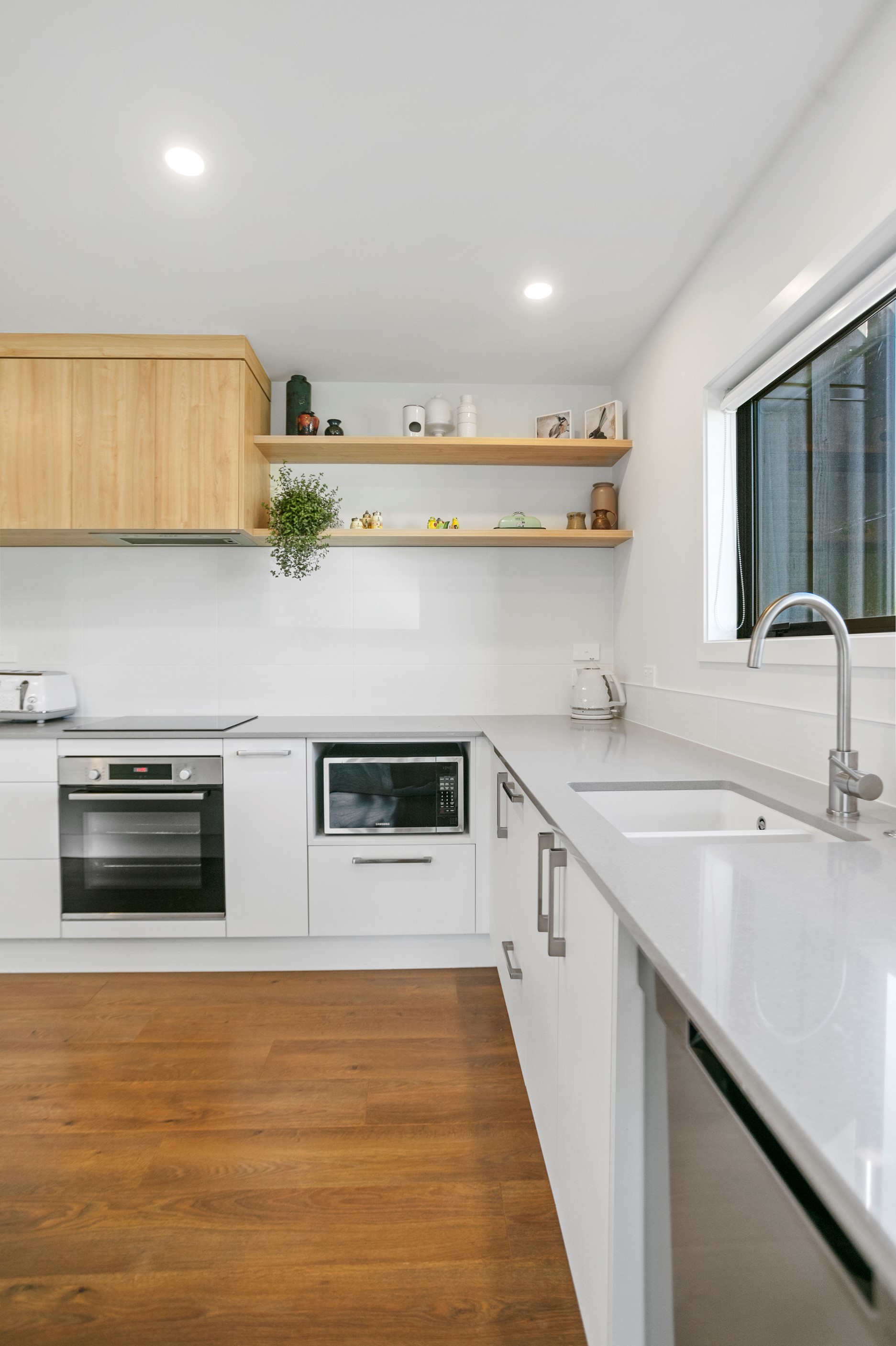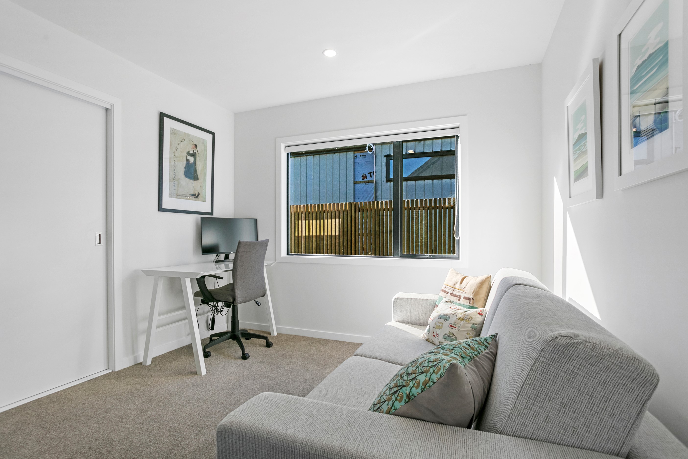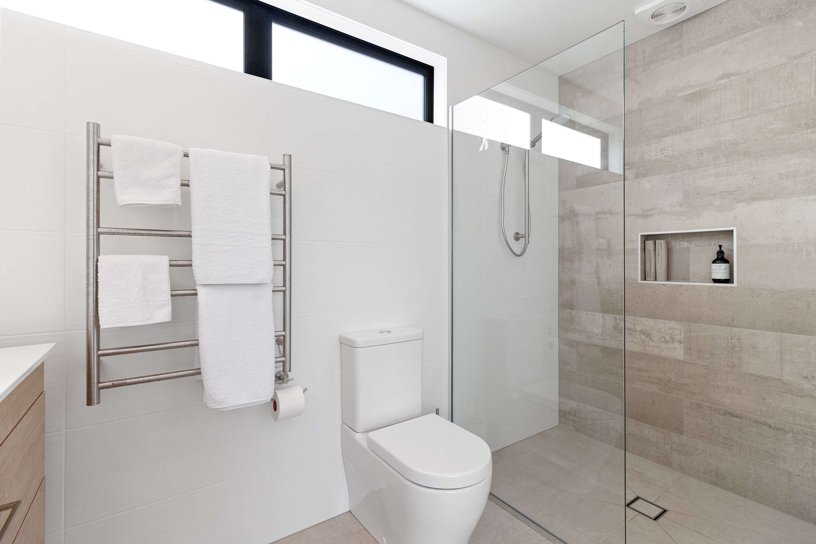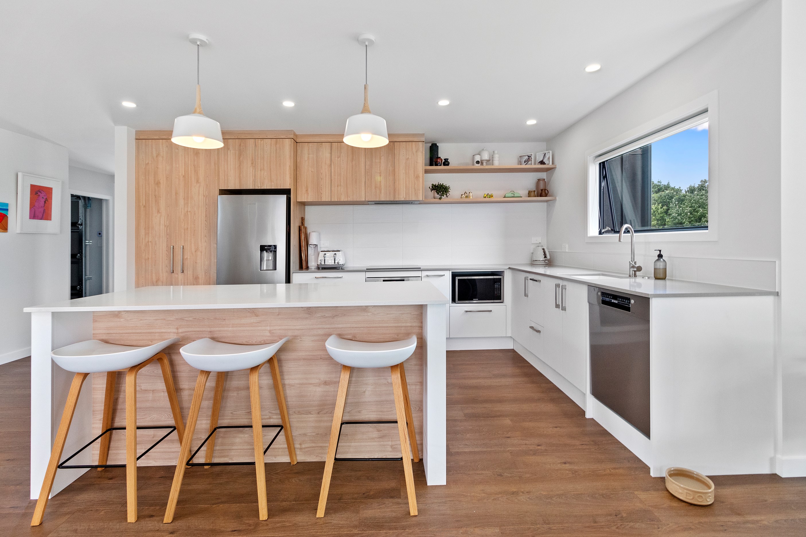 Dark exteriors are a bold choice. When well executed, the result can be striking, and this three-bedroom home is a prime example. Offset by warm vertical cedar features, black board-and-batten cladding and black iron roofing create moody sophistication. Step inside and dark becomes light in a crisp white palette paired with timber flooring and cabinetry. Although modest in size, every inch of this 140sqm home has been designed to enhance its sense of spaciousness. In the living area, large sliding doors take advantage of the north-facing aspect and lead to an outdoor area beneath a stylish timber pergola. With versatile spaces, it’s clear that this home is all about family flexibility. A well-considered floorplan allows for two double bedrooms and an additional room has been designed to serve as a third bedroom, office or second living area. The internally accessible carpeted garage will no doubt become a hobby haven or weekend hangout space for kids and teens. Clever use of space continues into both of the fully tiled bathrooms, which feature large walk-in showers. As a bonus, an outdoor shower can be used to wash off sand and salt from the nearby beach.