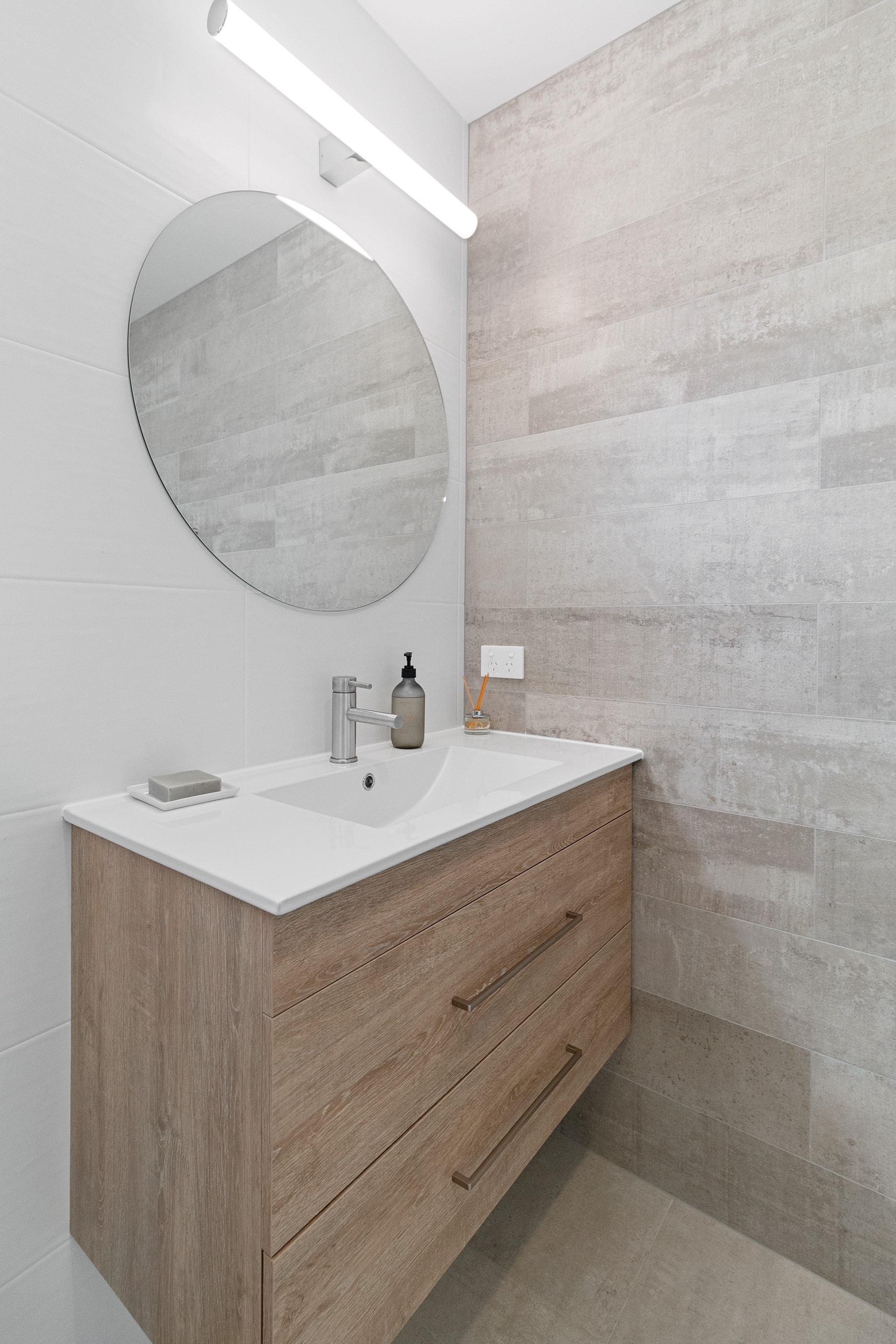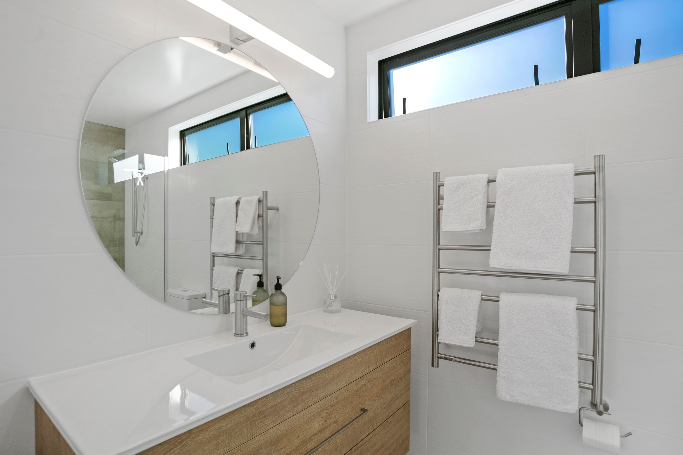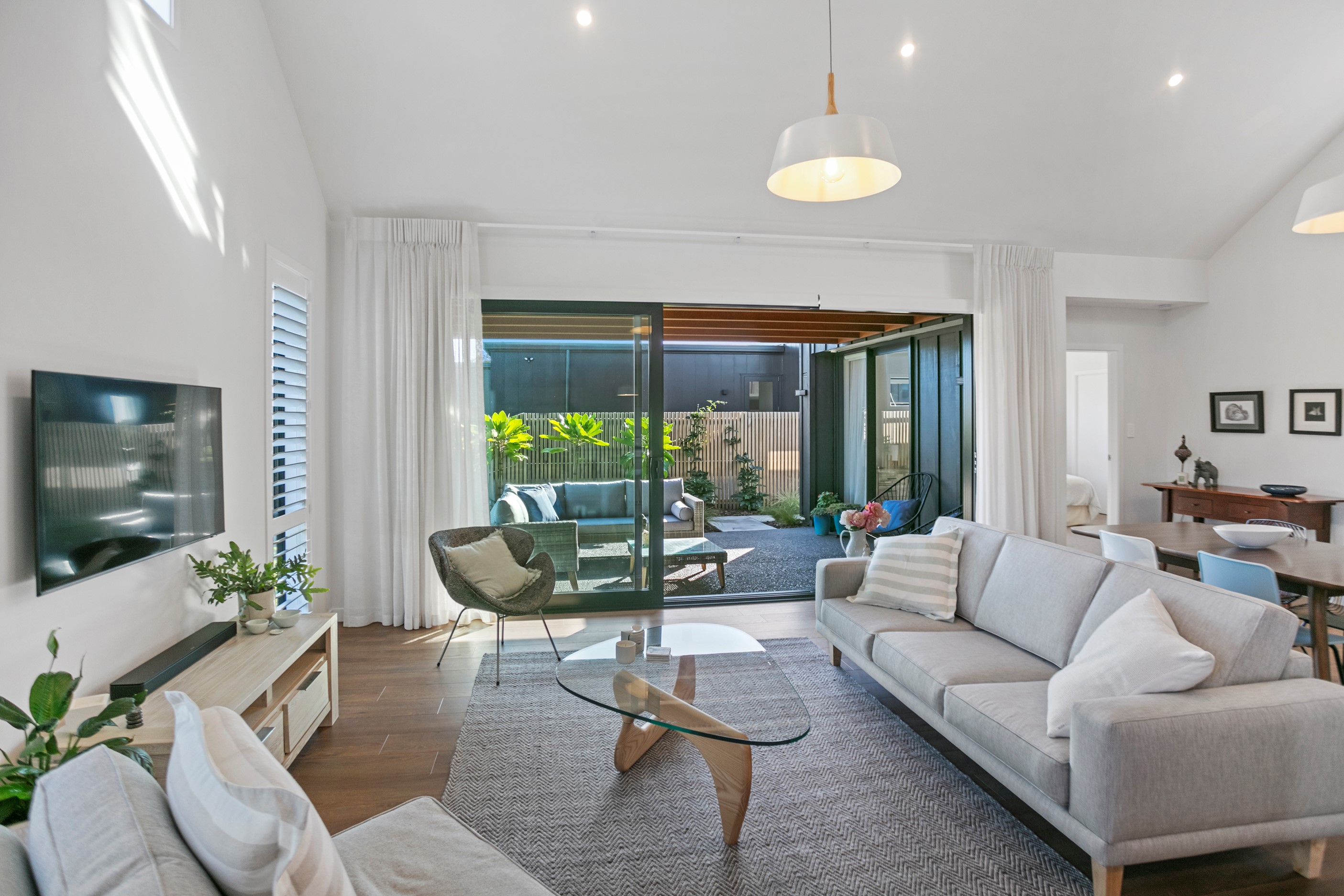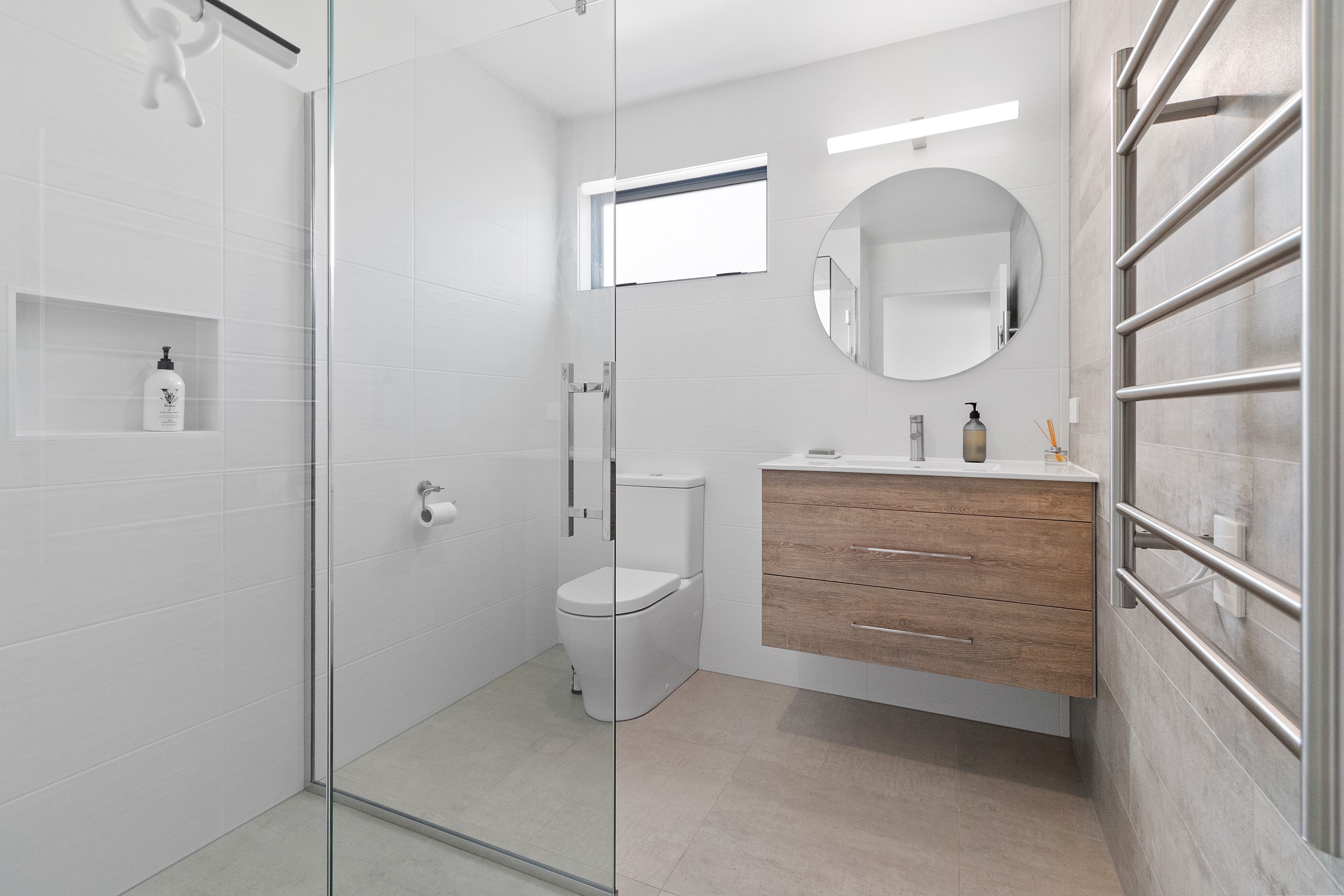 Dark exteriors are a bold choice. When well executed, the result can be striking, and this three-bedroom home is a prime example. Offset by warm vertical cedar features, black board-and-batten cladding and black iron roofing create moody sophistication. Step inside and dark becomes light in a crisp white palette paired with timber flooring and cabinetry. Although modest in size, every inch of this 140sqm home has been designed to enhance its sense of spaciousness. In the living area, large sliding doors take advantage of the north-facing aspect and lead to an outdoor area beneath a stylish timber pergola. With versatile spaces, it’s clear that this home is all about family flexibility. A well-considered floorplan allows for two double bedrooms and an additional room has been designed to serve as a third bedroom, office or second living area. The internally accessible carpeted garage will no doubt become a hobby haven or weekend hangout space for kids and teens. Clever use of space continues into both of the fully tiled bathrooms, which feature large walk-in showers. As a bonus, an outdoor shower can be used to wash off sand and salt from the nearby beach.