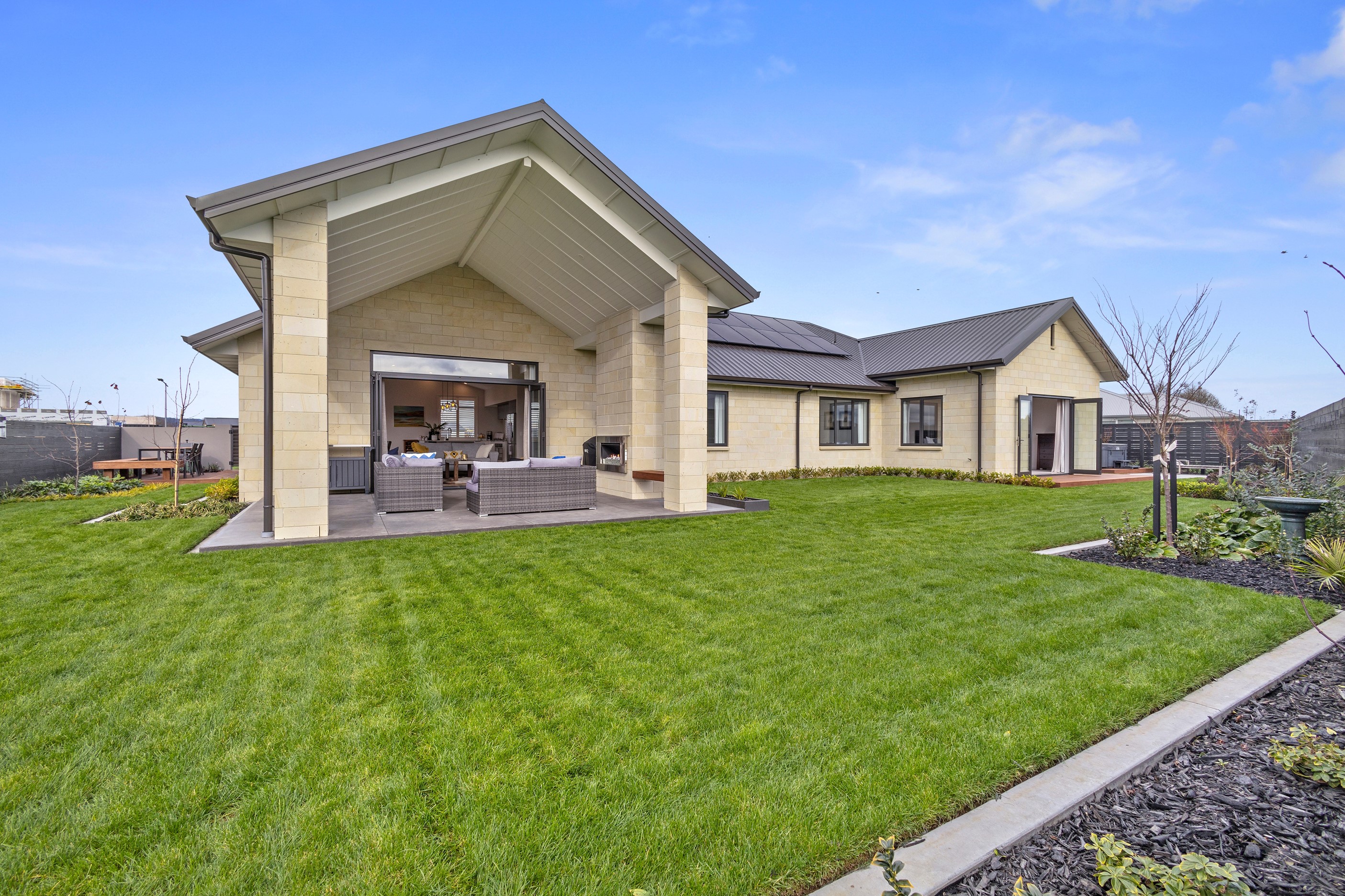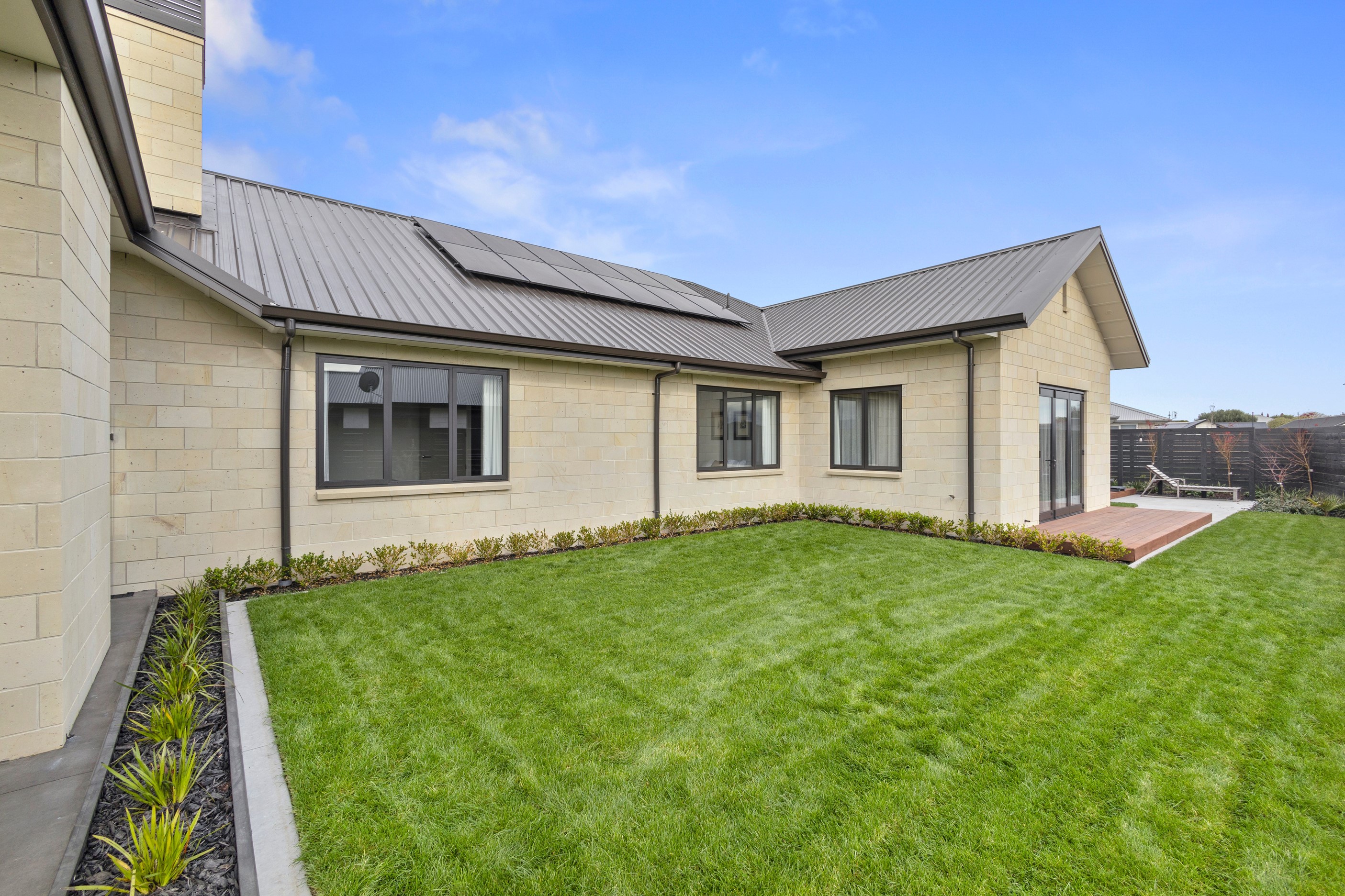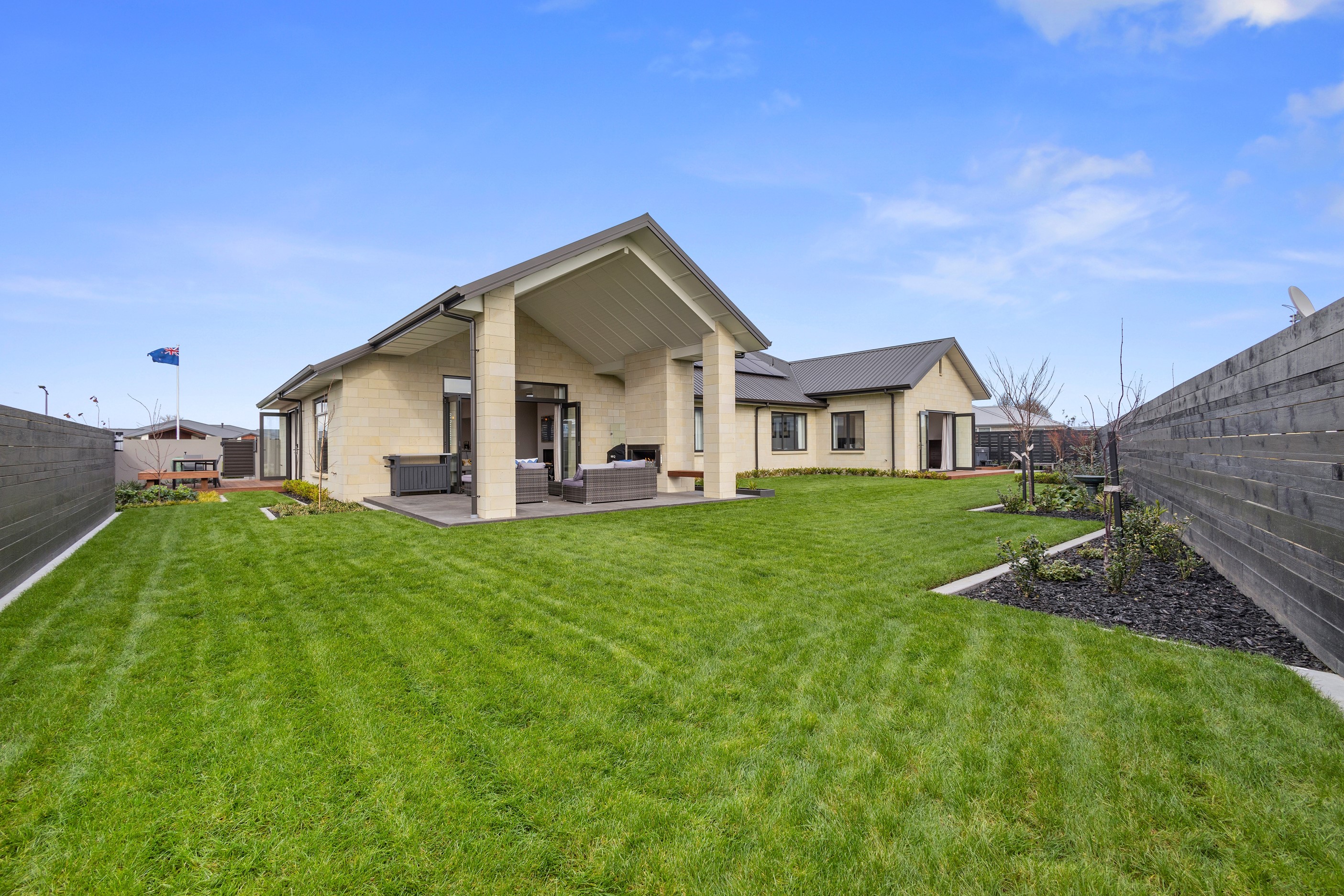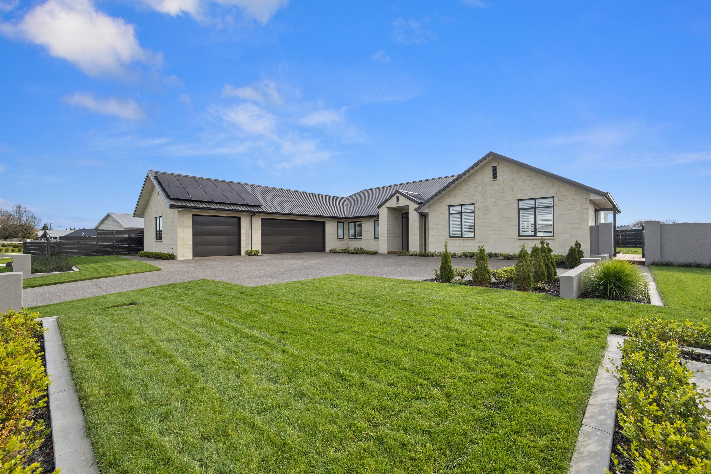 From the skilfully laid natural stone cladding to the welcoming vaulted entrance and outdoor portico, this lovely four-bedroom home exudes quality at every turn. Features such as stone lintels over the windows and doors, and feature louvres in the gables make this property a timeless classic. Inside, a cool palette of white is partnered with panelled timber flooring to create a subtle rustic aesthetic. The kitchen has been positioned to allow maximum light and views while maintaining a seamless connection to the adjoining open-plan living spaces. A generous scullery provides ample storage. Quality and style also flow through to the family bathroom and ensuite. You’ll find large level-access showers with frameless doors, woodgrain floating vanities, fully tiled walls and luxurious under-tile heating for those chilly winter mornings. Future-proofing was a key consideration for the owners during the design process. With this in mind, the home has features such as an energy-efficient heat-pump water heater, solar panels and an EV charging station. This is a home that takes its cue from the elegance of days gone by, but delivers everything needed for the future.
