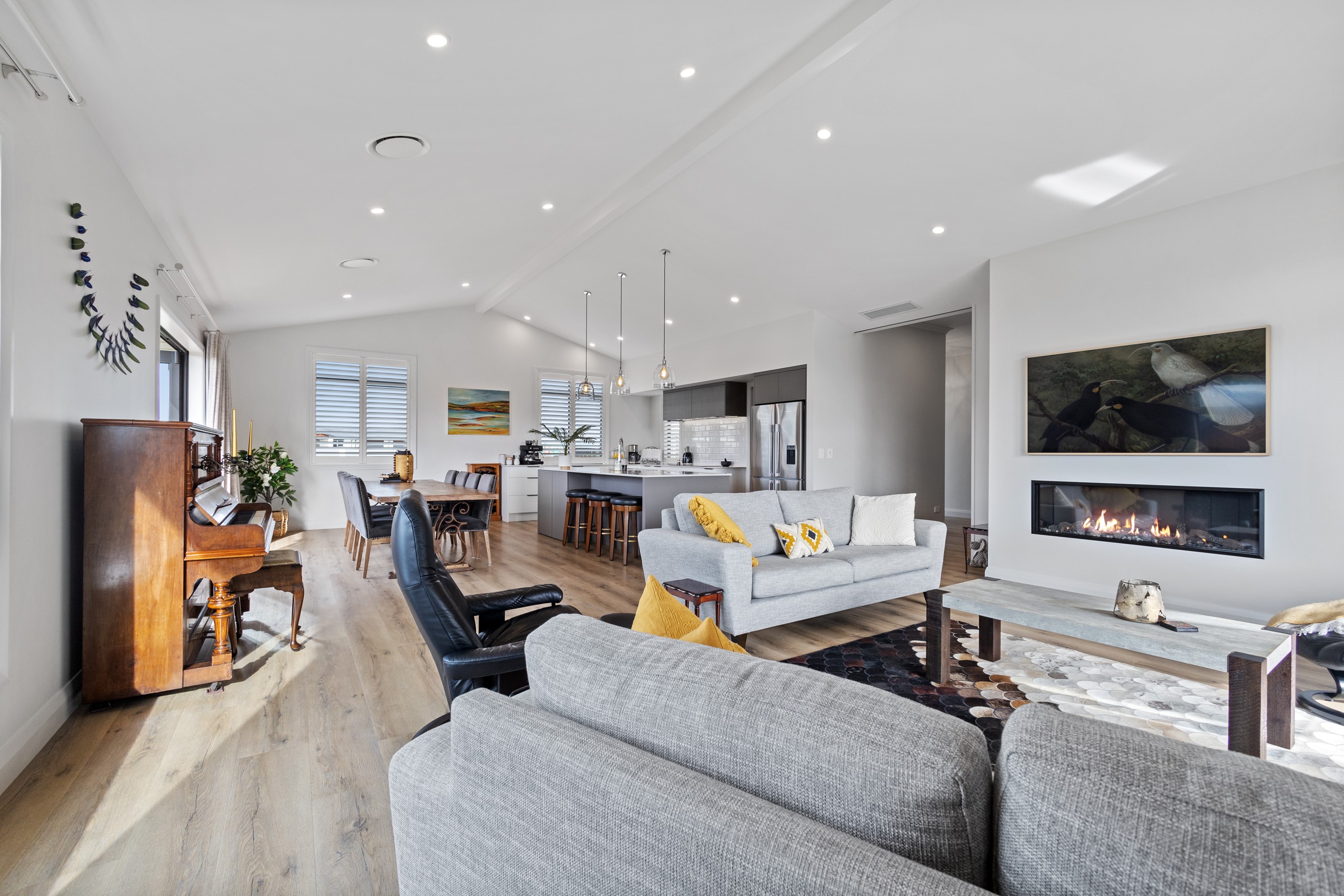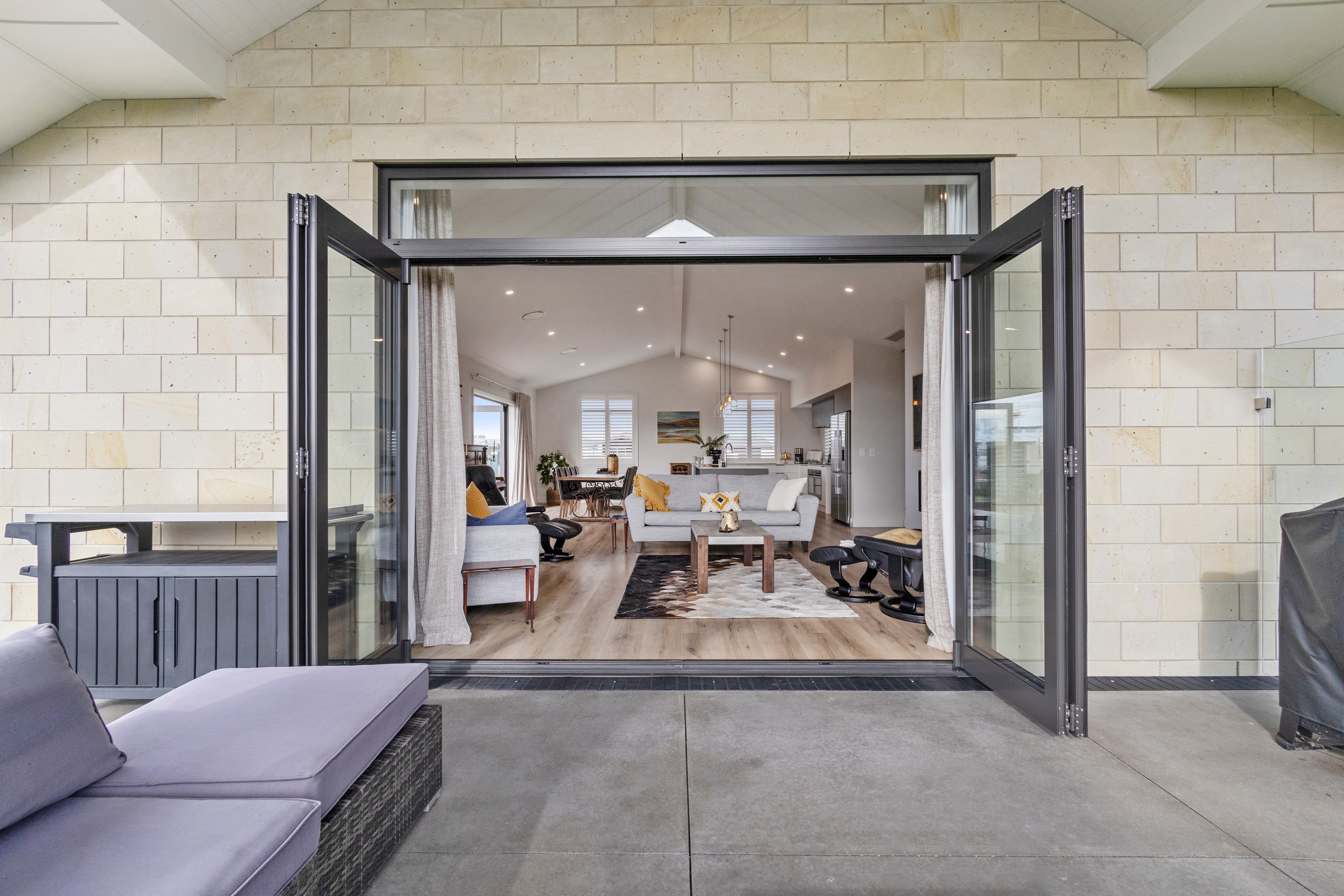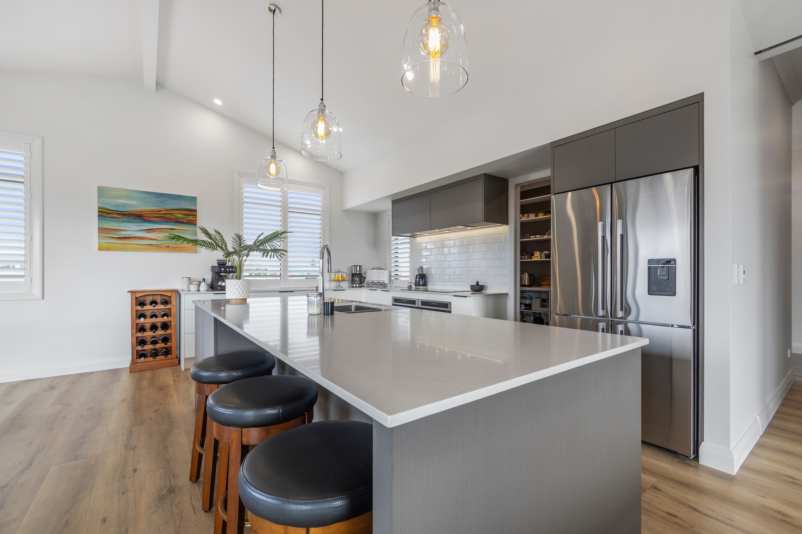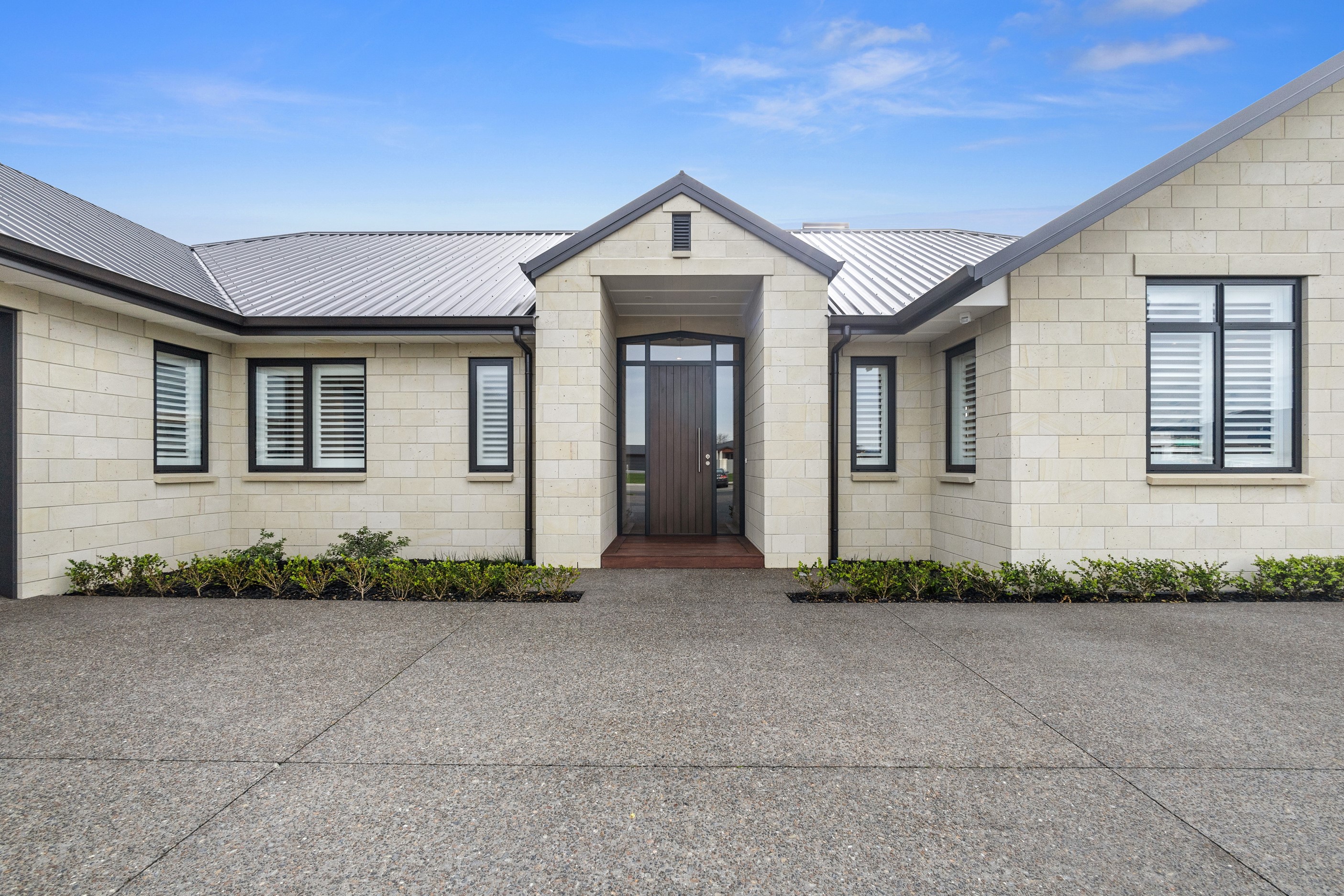 From the skilfully laid natural stone cladding to the welcoming vaulted entrance and outdoor portico, this lovely four-bedroom home exudes quality at every turn. Features such as stone lintels over the windows and doors, and feature louvres in the gables make this property a timeless classic. Inside, a cool palette of white is partnered with panelled timber flooring to create a subtle rustic aesthetic. The kitchen has been positioned to allow maximum light and views while maintaining a seamless connection to the adjoining open-plan living spaces. A generous scullery provides ample storage. Quality and style also flow through to the family bathroom and ensuite. You’ll find large level-access showers with frameless doors, woodgrain floating vanities, fully tiled walls and luxurious under-tile heating for those chilly winter mornings. Future-proofing was a key consideration for the owners during the design process. With this in mind, the home has features such as an energy-efficient heat-pump water heater, solar panels and an EV charging station. This is a home that takes its cue from the elegance of days gone by, but delivers everything needed for the future.