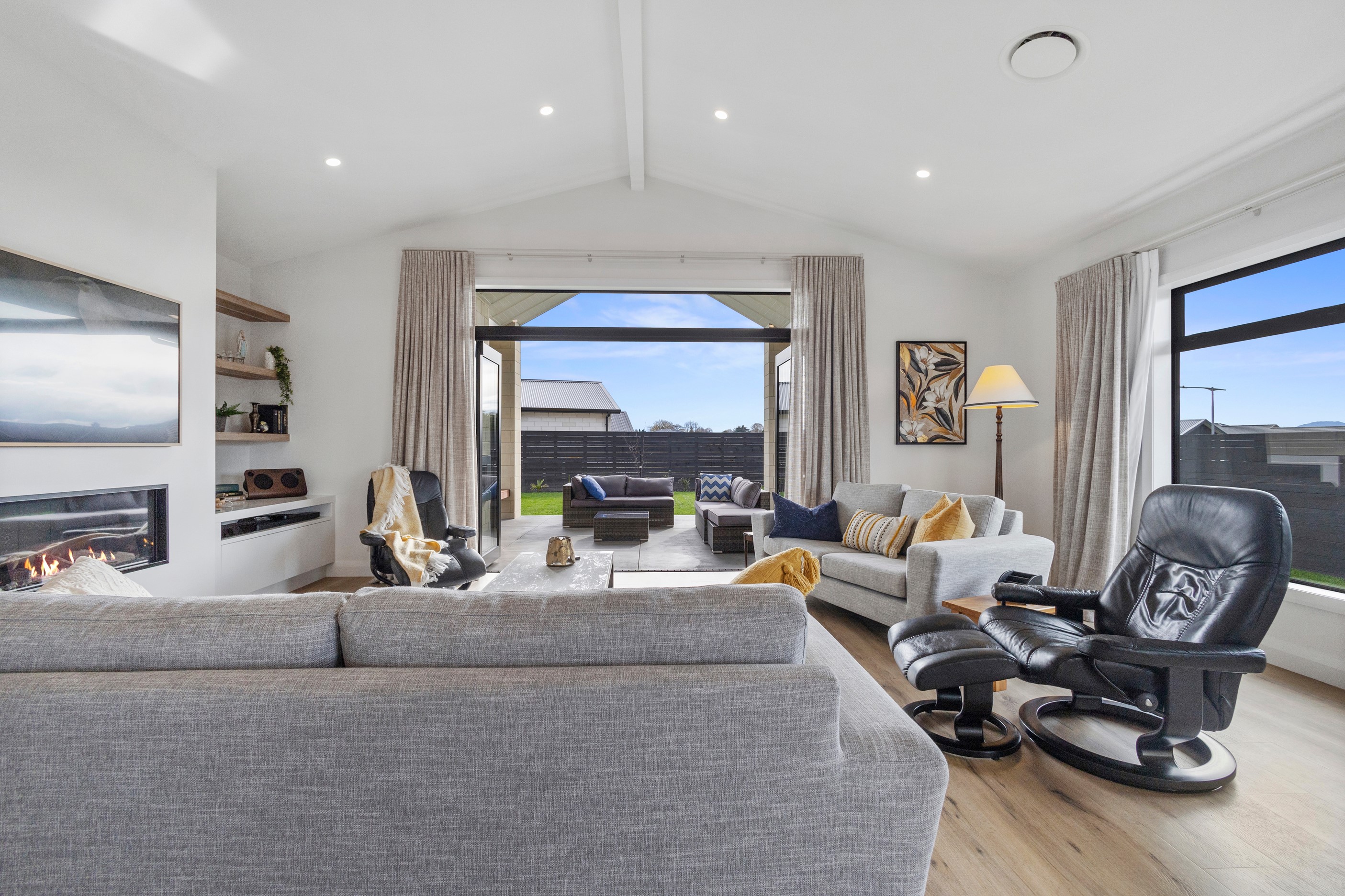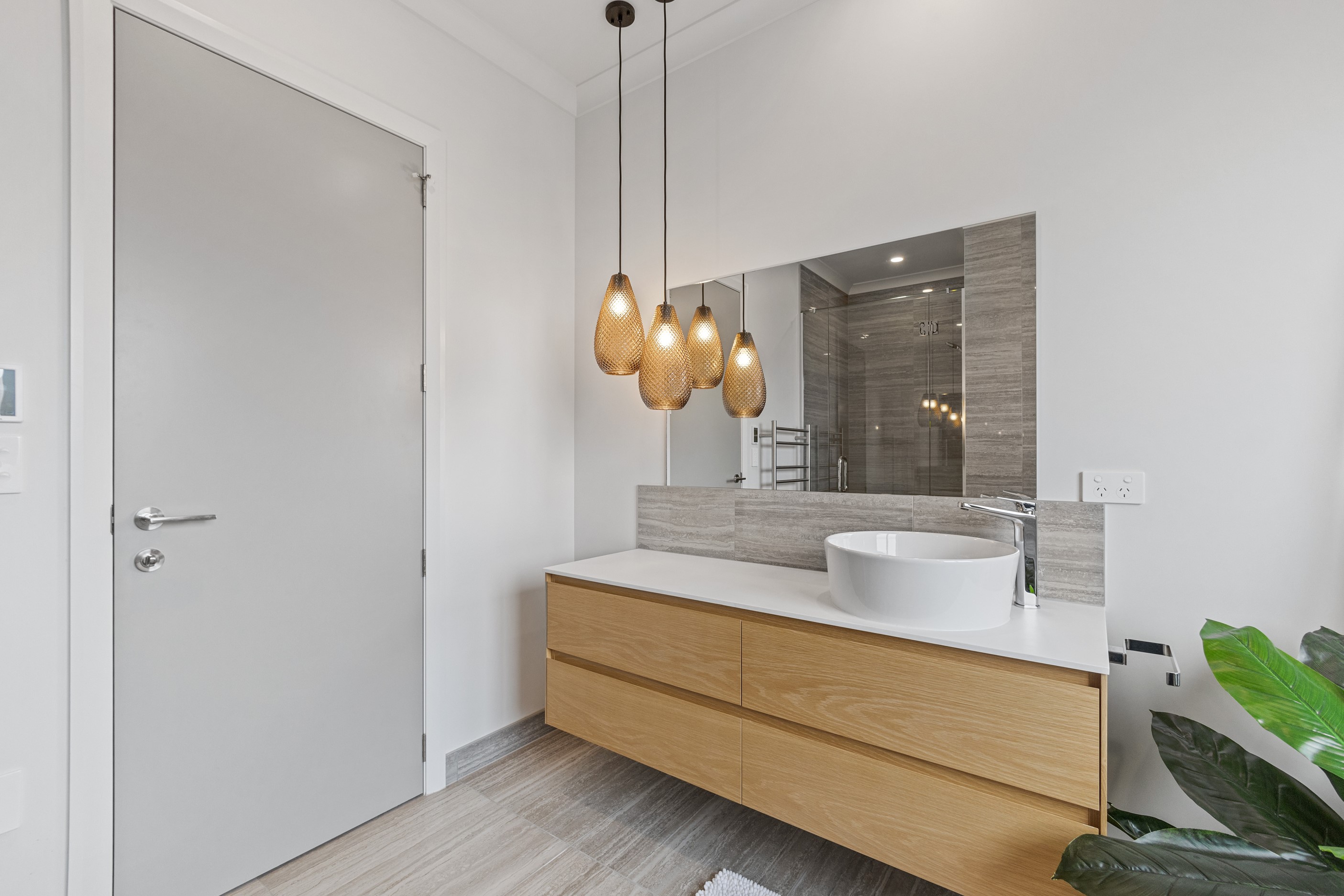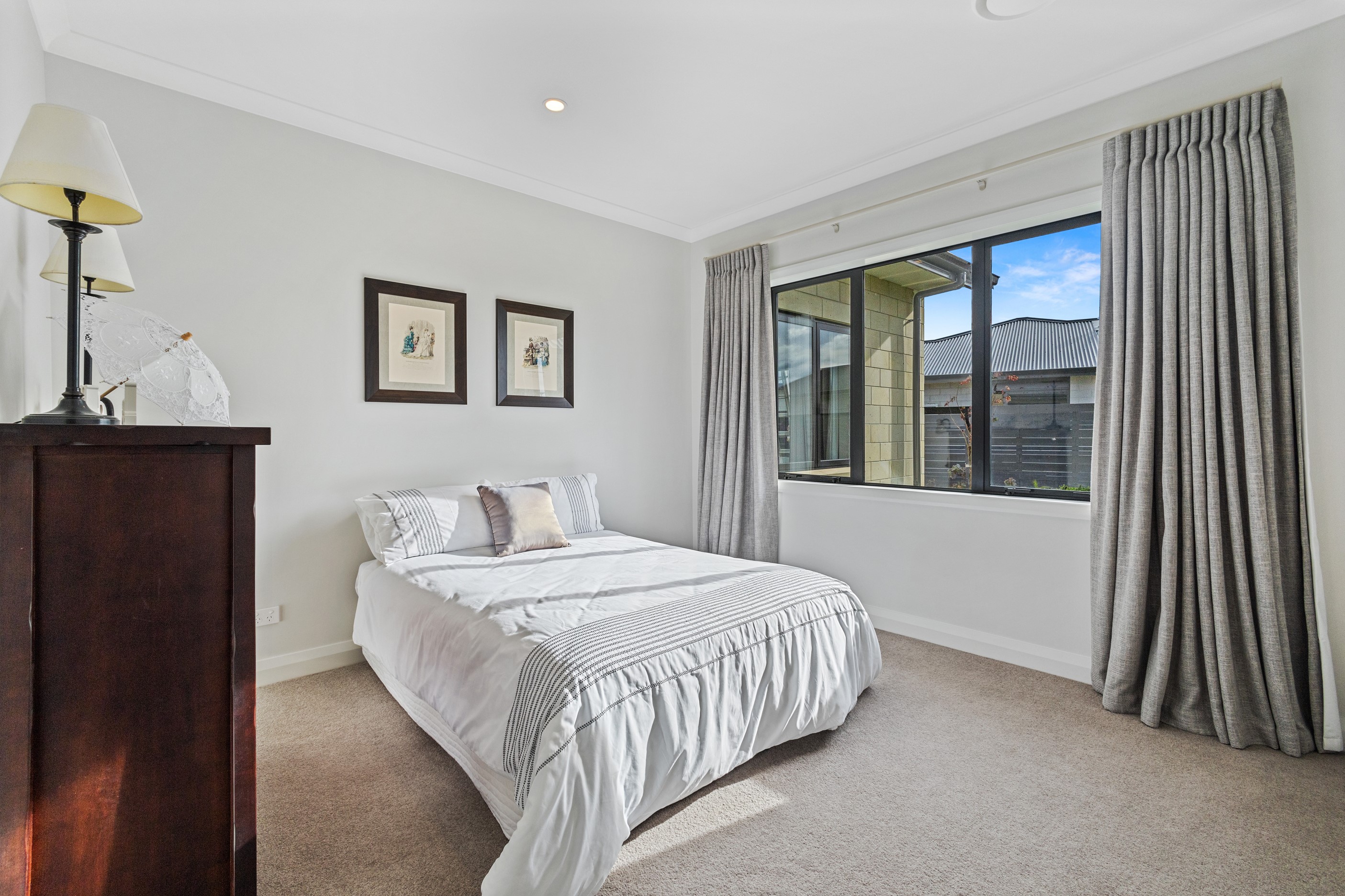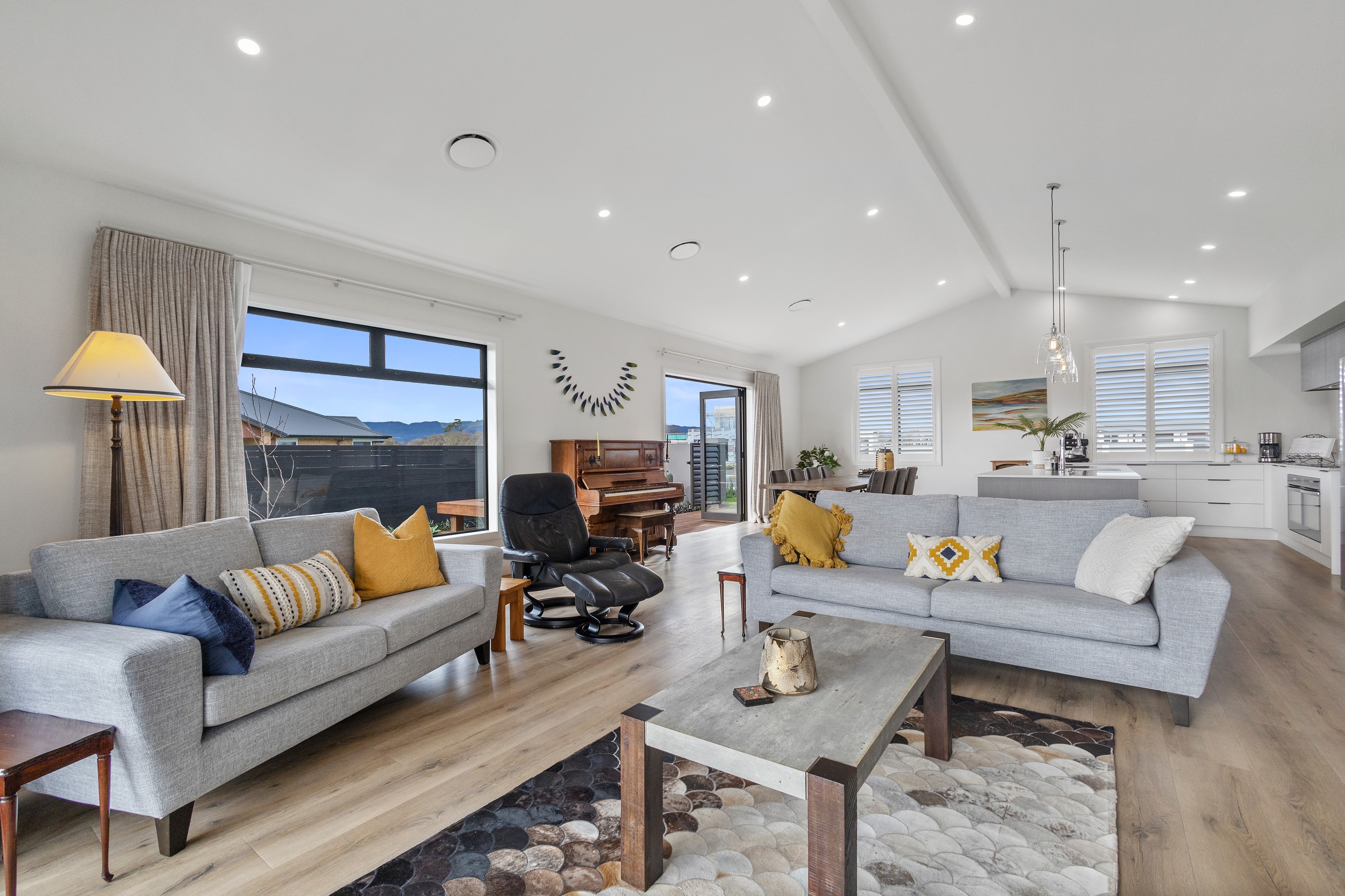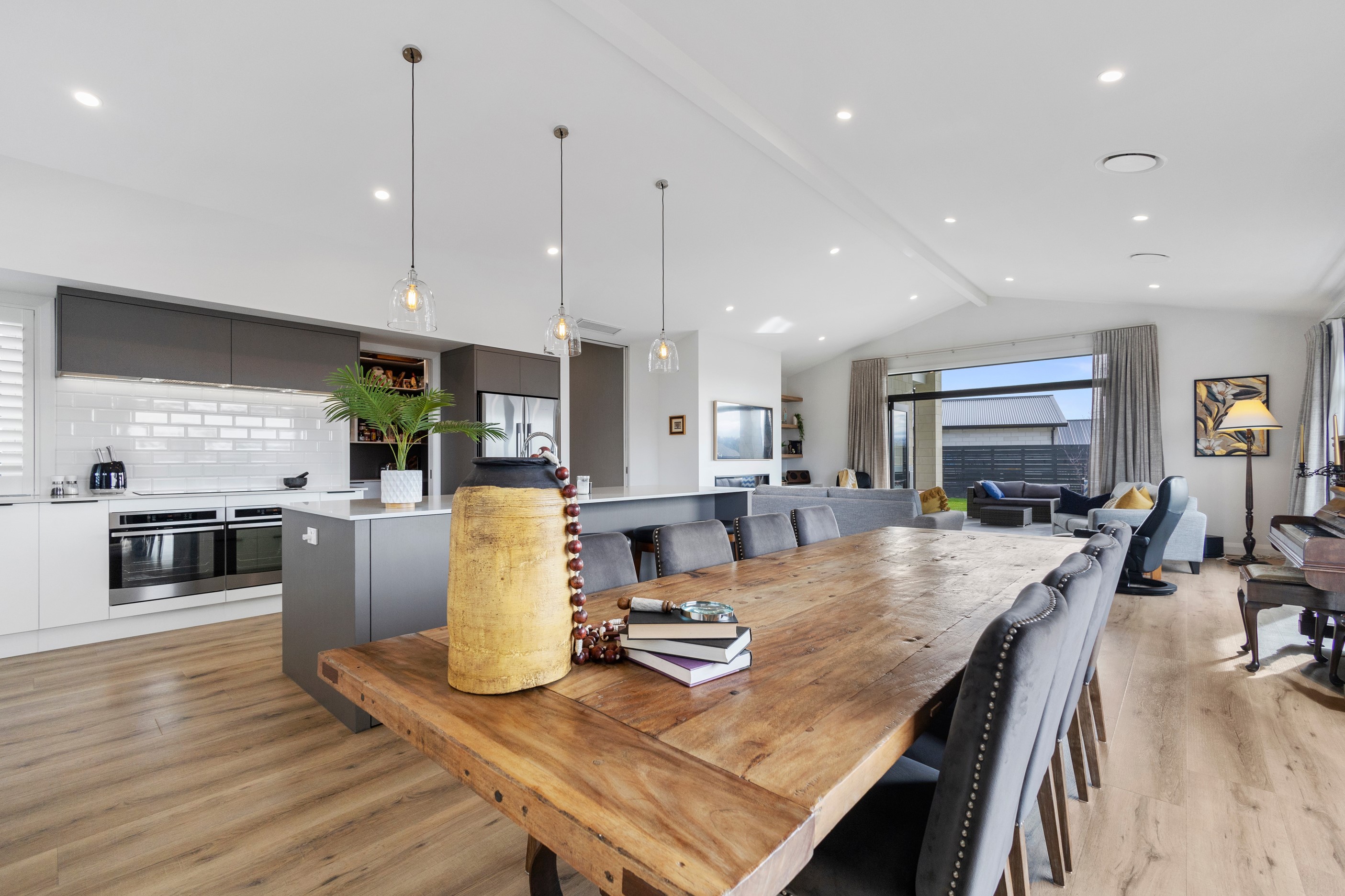 From the skilfully laid natural stone cladding to the welcoming vaulted entrance and outdoor portico, this lovely four-bedroom home exudes quality at every turn. Features such as stone lintels over the windows and doors, and feature louvres in the gables make this property a timeless classic. Inside, a cool palette of white is partnered with panelled timber flooring to create a subtle rustic aesthetic. The kitchen has been positioned to allow maximum light and views while maintaining a seamless connection to the adjoining open-plan living spaces. A generous scullery provides ample storage. Quality and style also flow through to the family bathroom and ensuite. You’ll find large level-access showers with frameless doors, woodgrain floating vanities, fully tiled walls and luxurious under-tile heating for those chilly winter mornings. Future-proofing was a key consideration for the owners during the design process. With this in mind, the home has features such as an energy-efficient heat-pump water heater, solar panels and an EV charging station. This is a home that takes its cue from the elegance of days gone by, but delivers everything needed for the future.