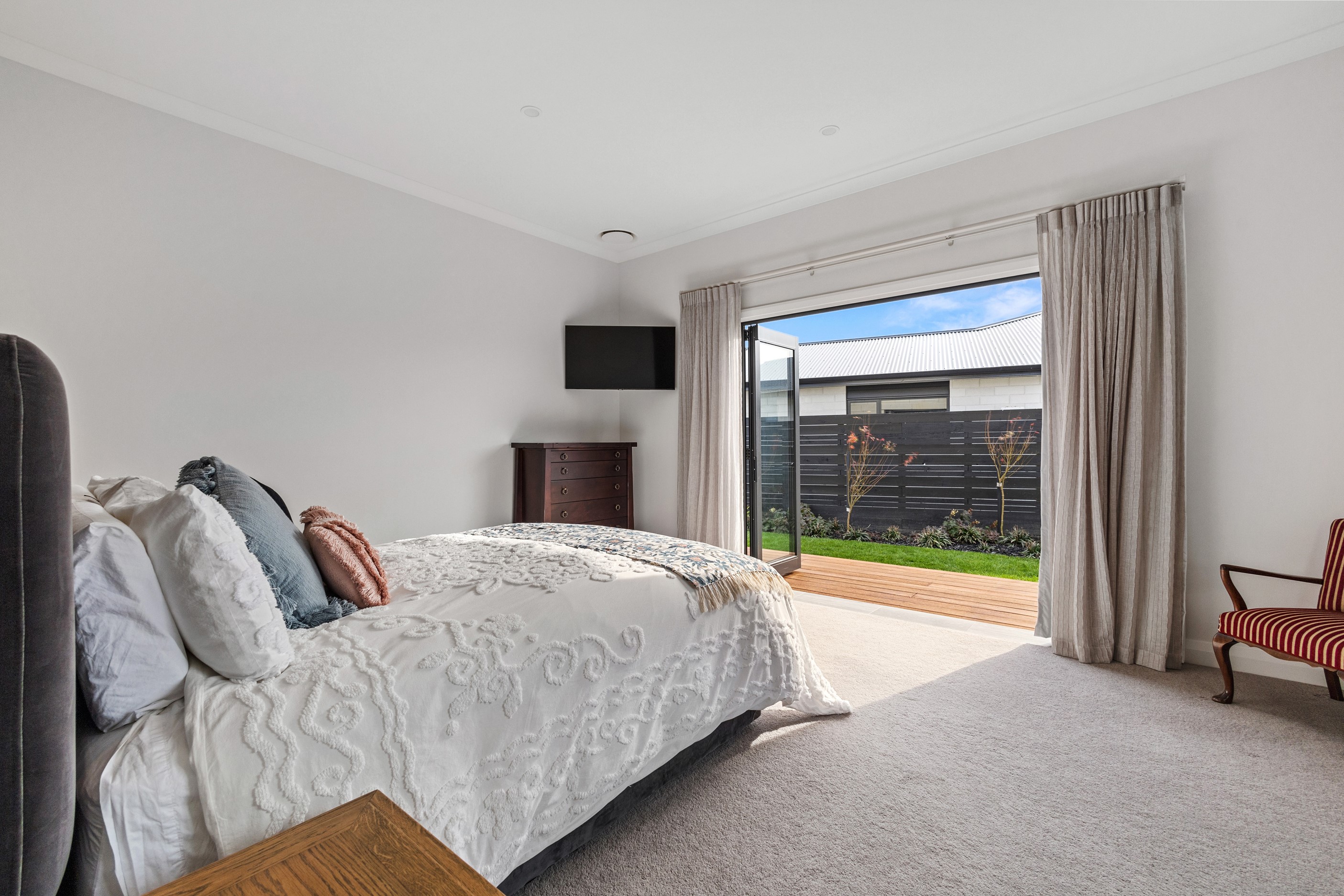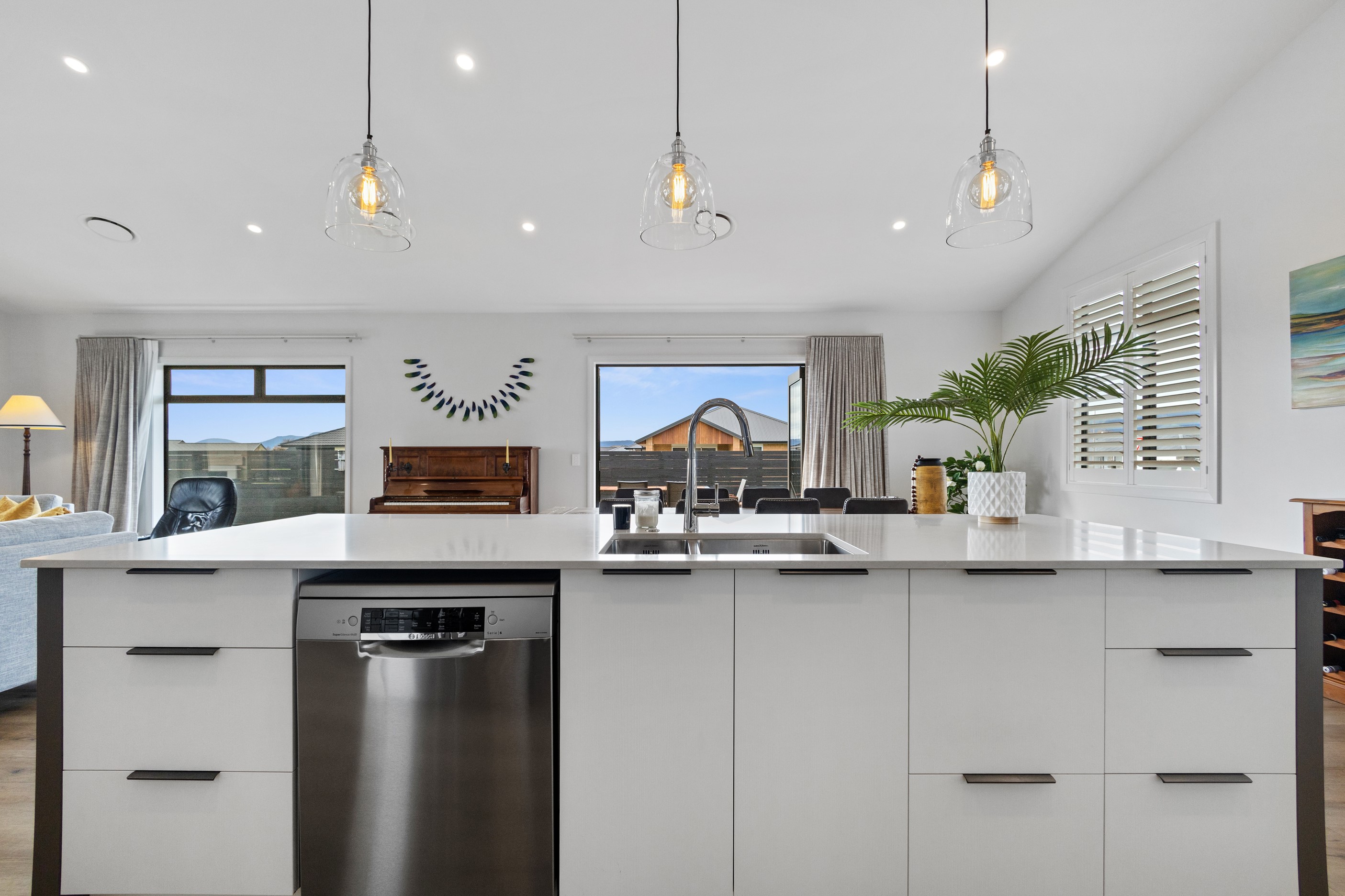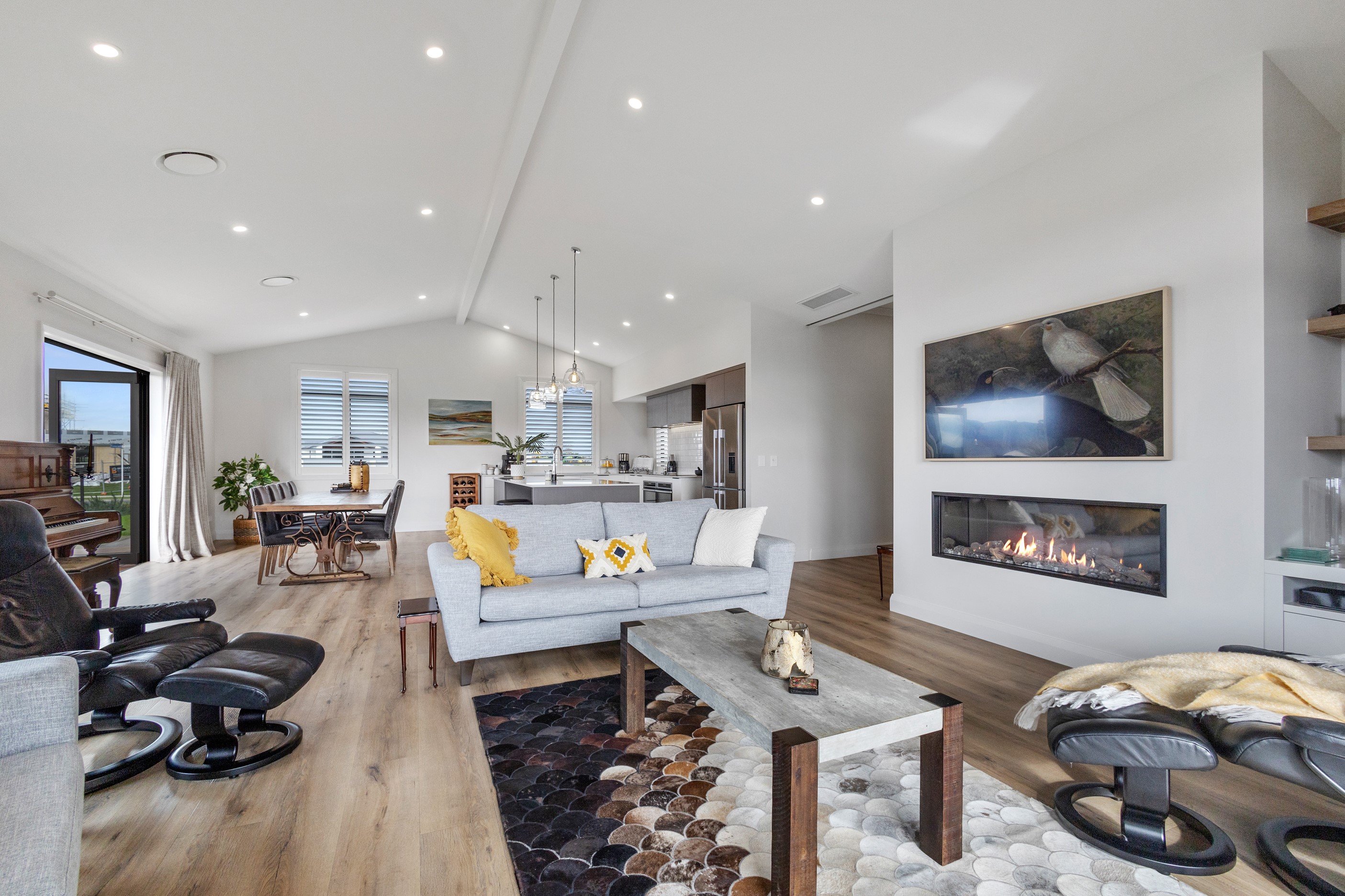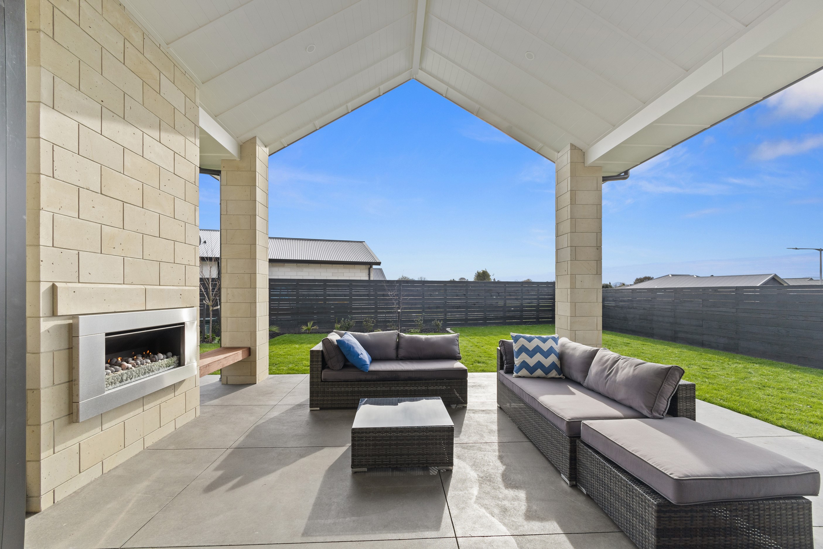 From the skilfully laid natural stone cladding to the welcoming vaulted entrance and outdoor portico, this lovely four-bedroom home exudes quality at every turn. Features such as stone lintels over the windows and doors, and feature louvres in the gables make this property a timeless classic. Inside, a cool palette of white is partnered with panelled timber flooring to create a subtle rustic aesthetic. The kitchen has been positioned to allow maximum light and views while maintaining a seamless connection to the adjoining open-plan living spaces. A generous scullery provides ample storage. Quality and style also flow through to the family bathroom and ensuite. You’ll find large level-access showers with frameless doors, woodgrain floating vanities, fully tiled walls and luxurious under-tile heating for those chilly winter mornings. Future-proofing was a key consideration for the owners during the design process. With this in mind, the home has features such as an energy-efficient heat-pump water heater, solar panels and an EV charging station. This is a home that takes its cue from the elegance of days gone by, but delivers everything needed for the future.