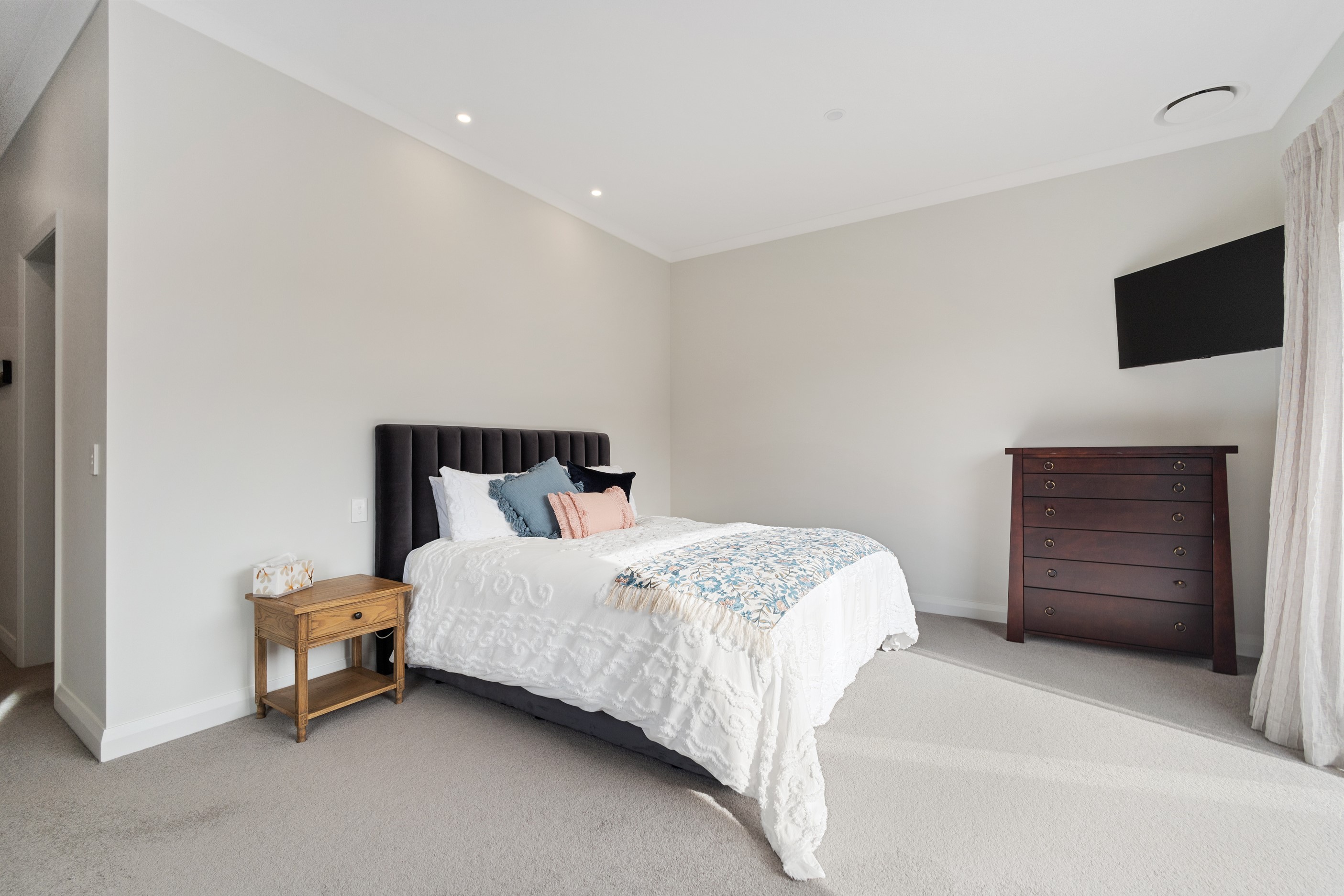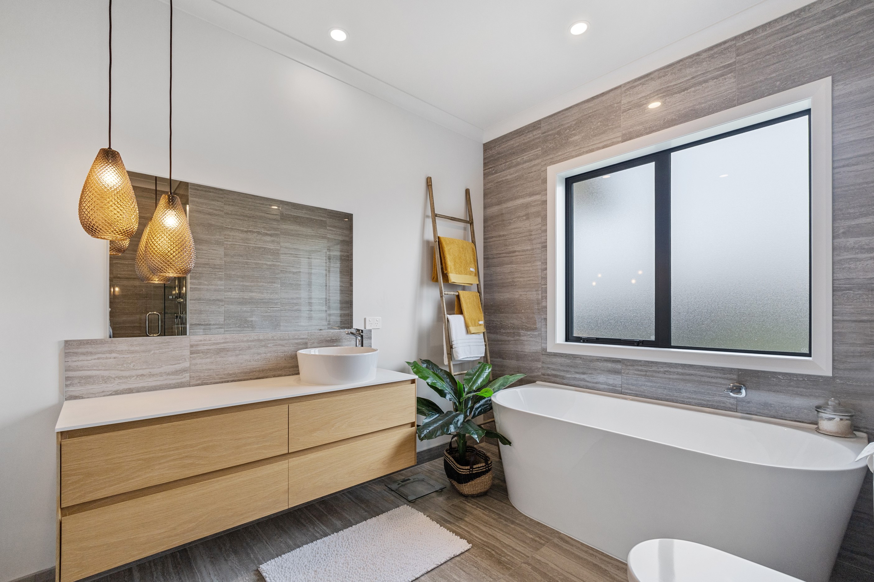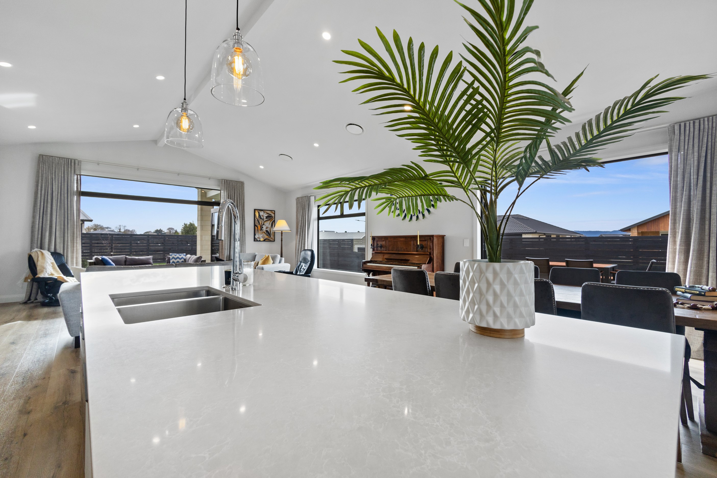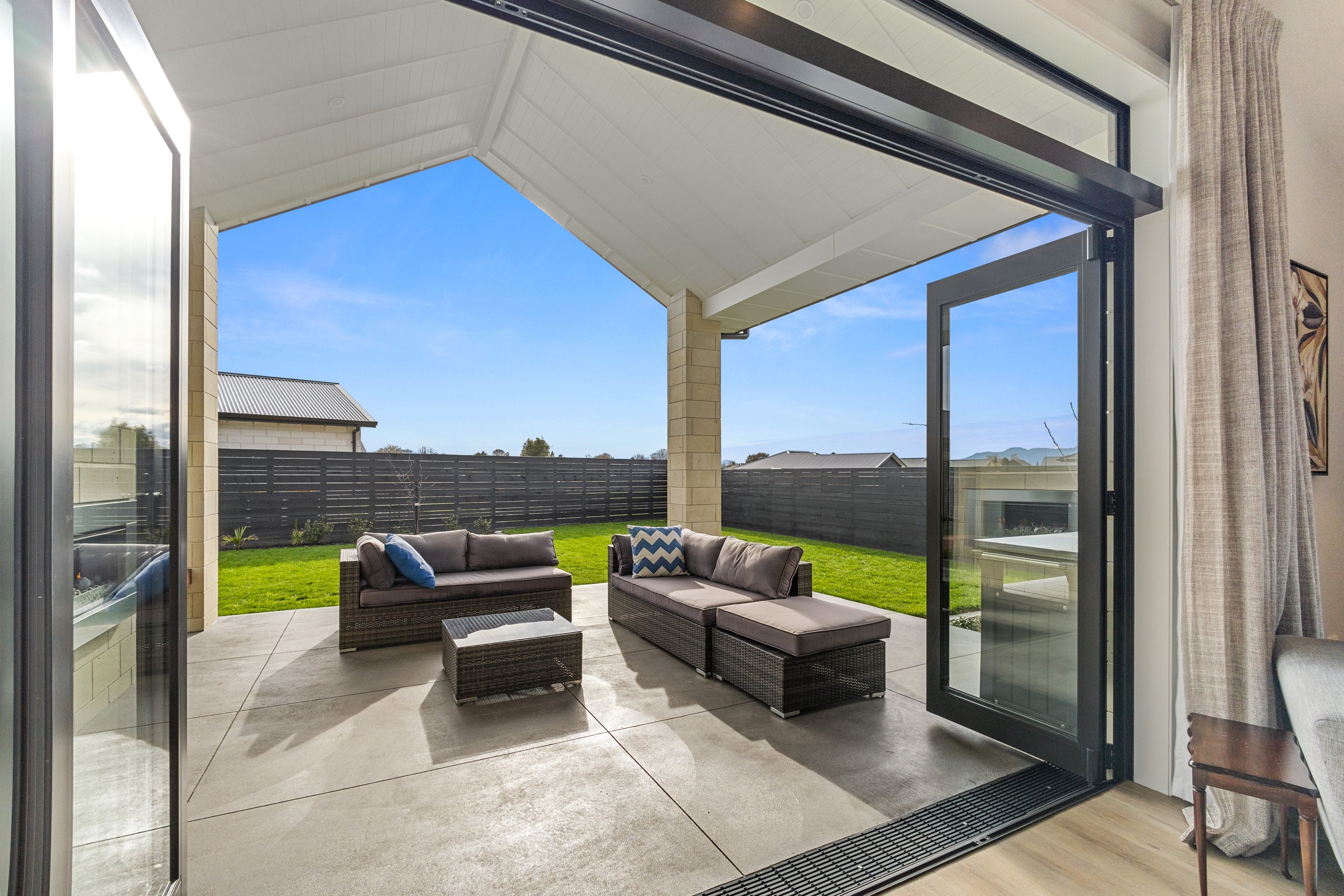 From the skilfully laid natural stone cladding to the welcoming vaulted entrance and outdoor portico, this lovely four-bedroom home exudes quality at every turn. Features such as stone lintels over the windows and doors, and feature louvres in the gables make this property a timeless classic. Inside, a cool palette of white is partnered with panelled timber flooring to create a subtle rustic aesthetic. The kitchen has been positioned to allow maximum light and views while maintaining a seamless connection to the adjoining open-plan living spaces. A generous scullery provides ample storage. Quality and style also flow through to the family bathroom and ensuite. You’ll find large level-access showers with frameless doors, woodgrain floating vanities, fully tiled walls and luxurious under-tile heating for those chilly winter mornings. Future-proofing was a key consideration for the owners during the design process. With this in mind, the home has features such as an energy-efficient heat-pump water heater, solar panels and an EV charging station. This is a home that takes its cue from the elegance of days gone by, but delivers everything needed for the future.