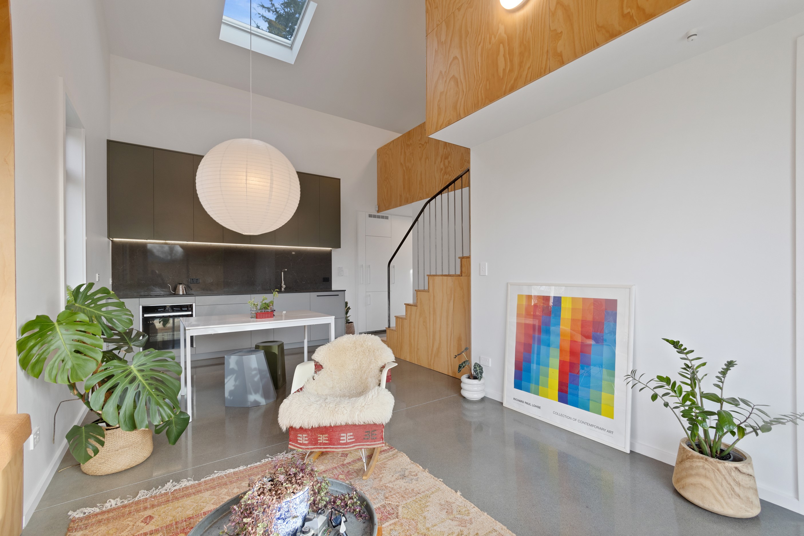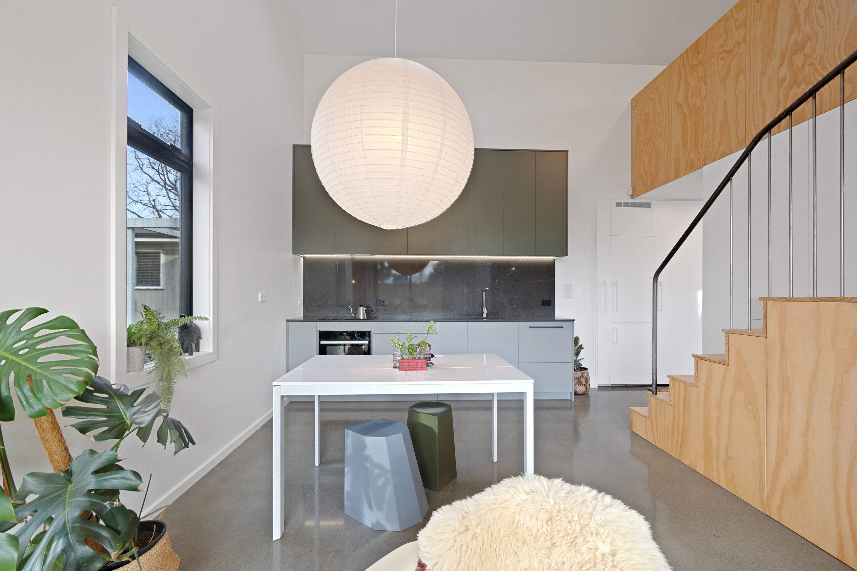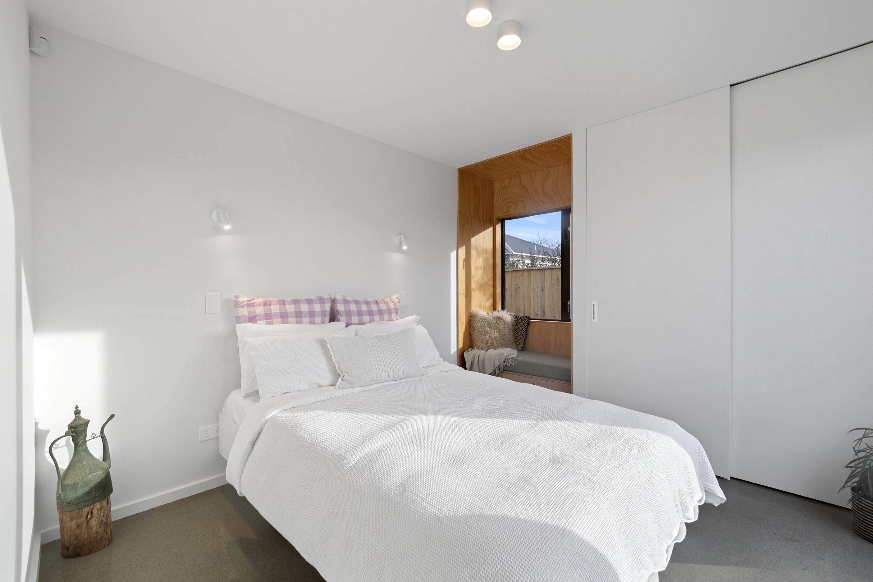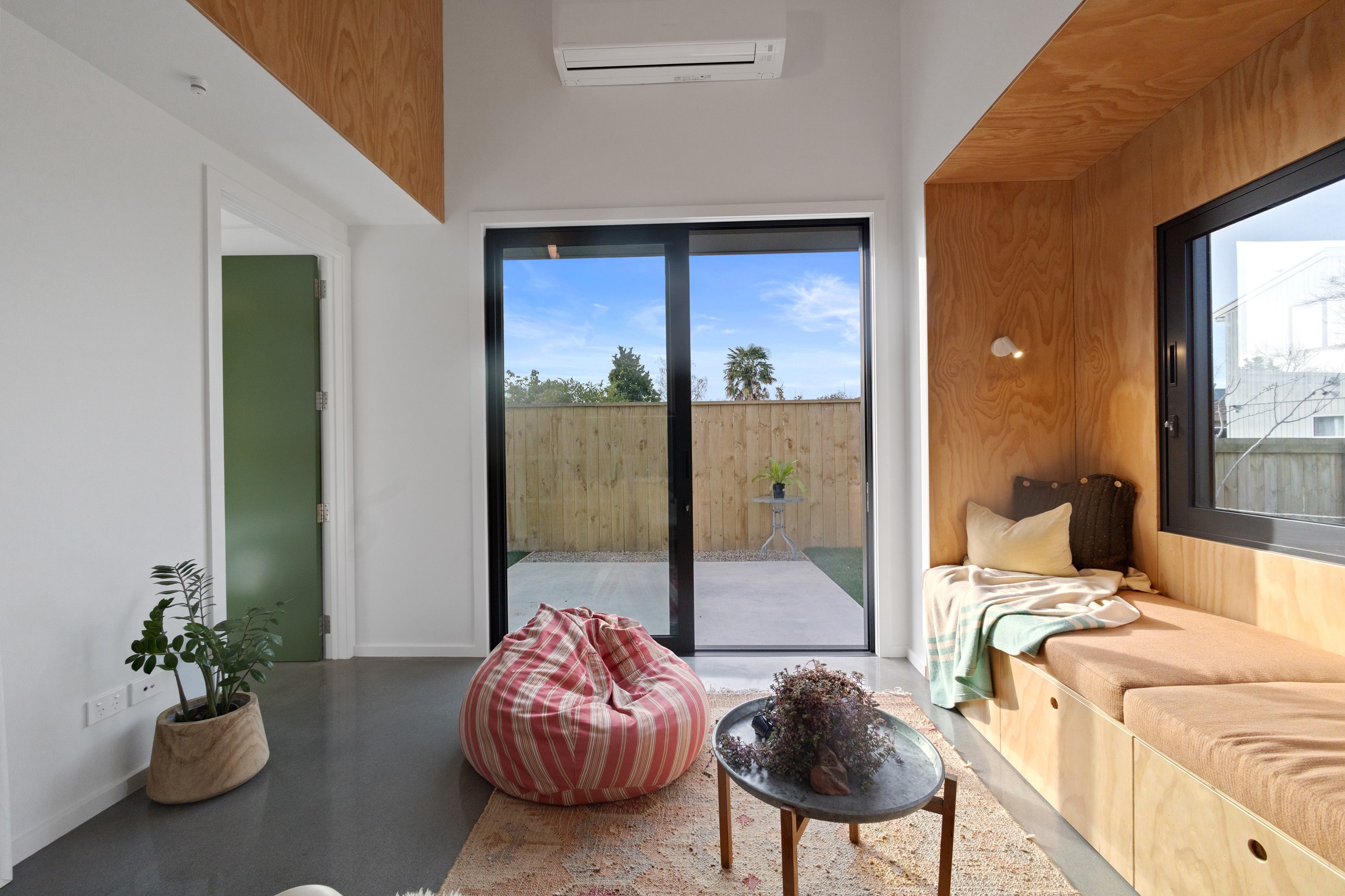 Smart, stylish and compact, this petite home packs plenty into its 73sqm footprint. A secondary dwelling on an established section in Cambridge, it’s full of inspired storage solutions and a delight to inhabit. Intelligent design and a contemporary combination of materials add up to much more than you’d expect, including two bedrooms and two living areas. The second storey accommodates a bedroom and generous office space. Downstairs, a bedroom opens to the outdoors through full-height sliders. Large windows, sliding glass doors and skylights allow natural light to flow in freely throughout the home. The kitchen, living and dining area is a cohesive space and full of storage smarts. Cabinetry-concealed appliances keep the area streamlined, which supports the minimalist design vibe. For a blissful spot to relax, put your feet up on the window seat, which also provides amble storage. Low-maintenance coloursteel cladding and plywood interior walls make this little beauty practical, as well as lending a thoroughly contemporary design edge.