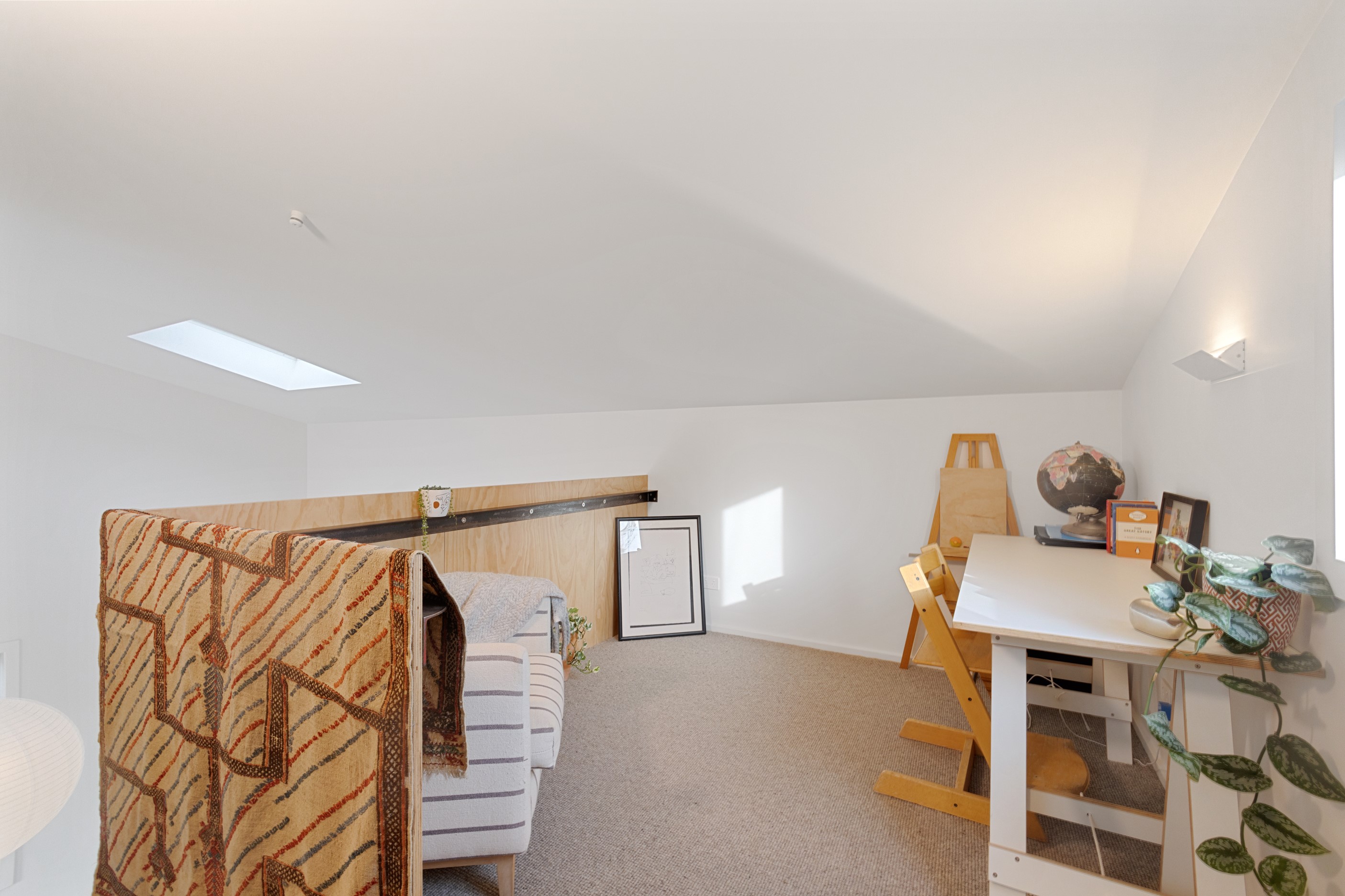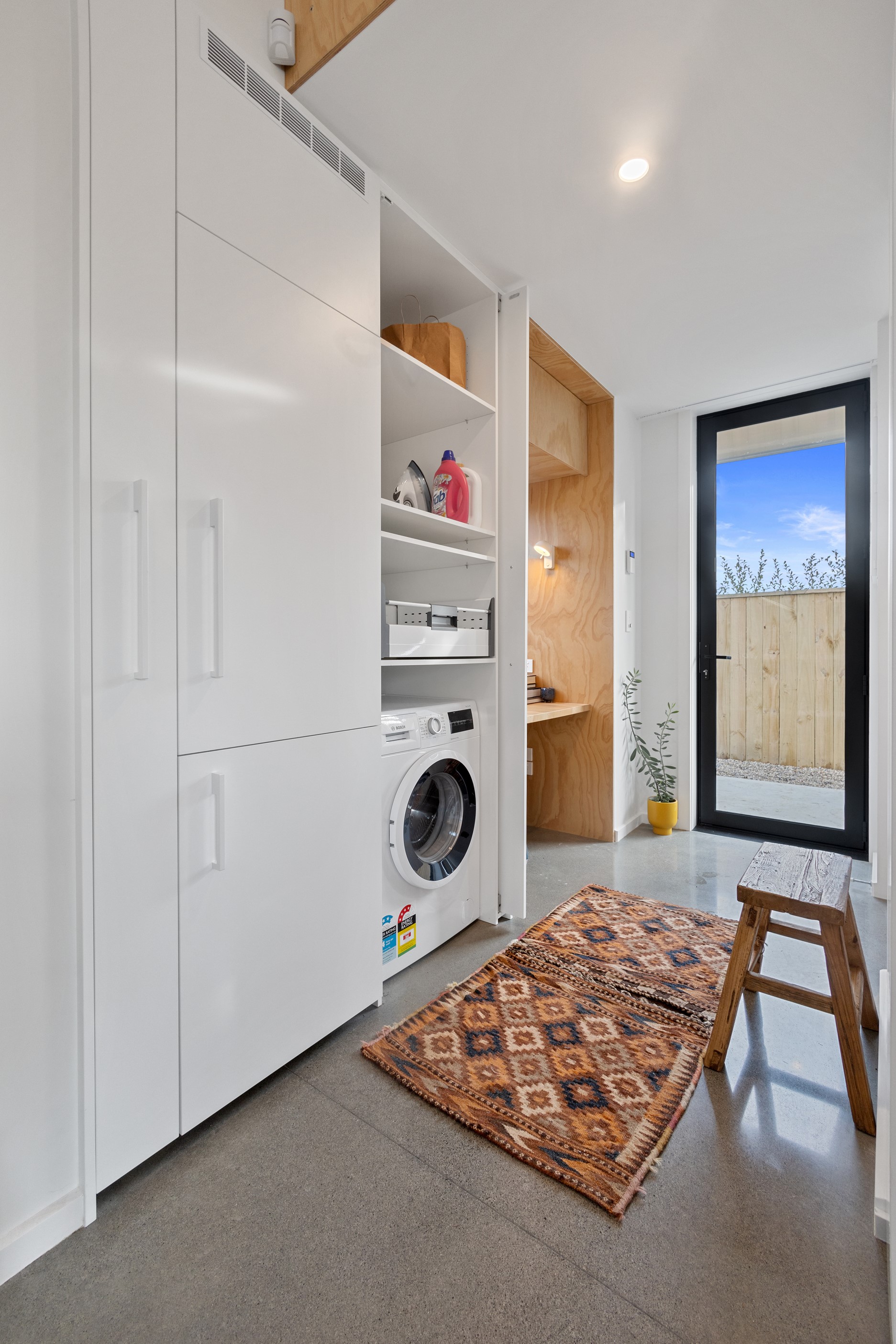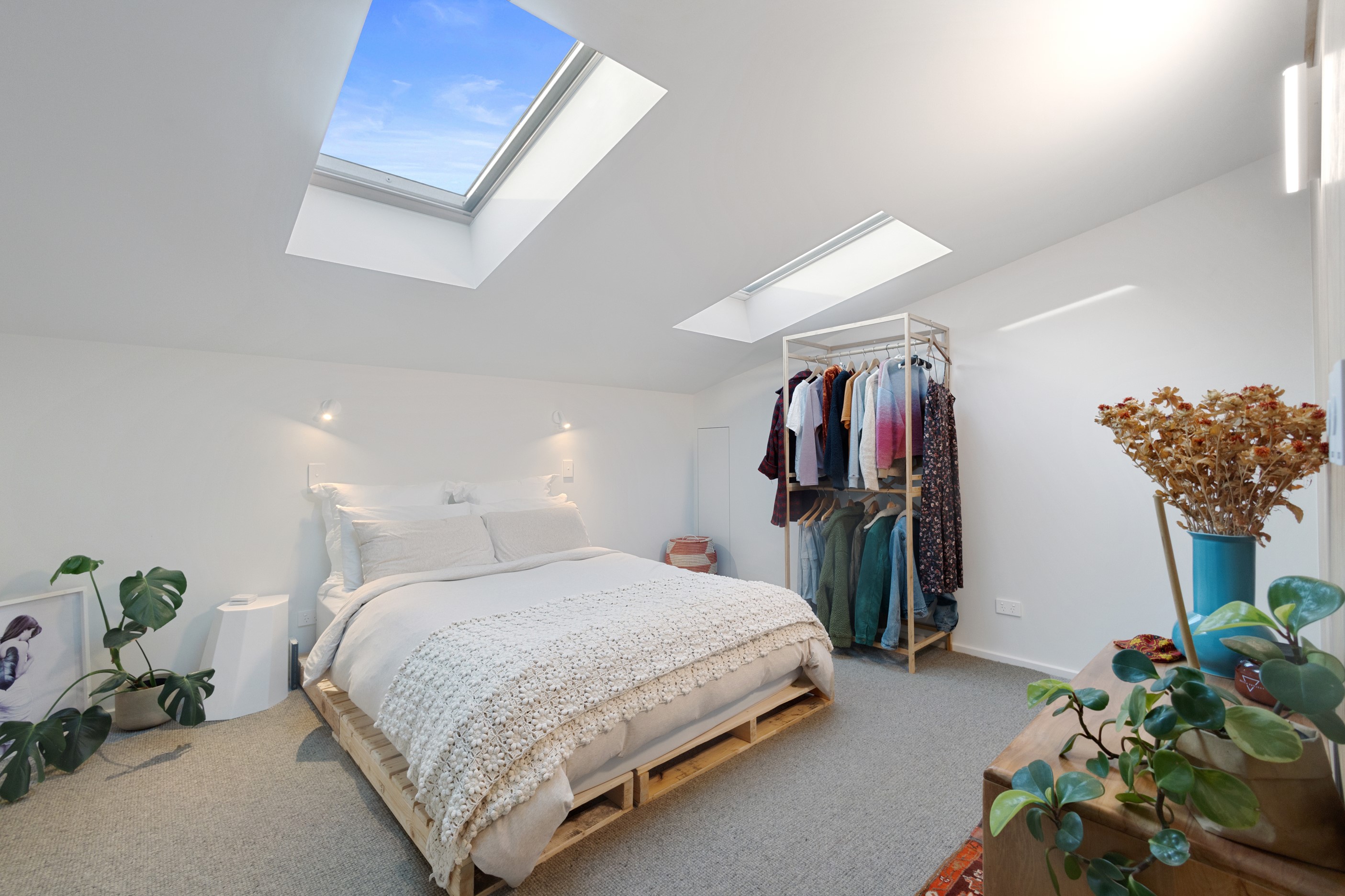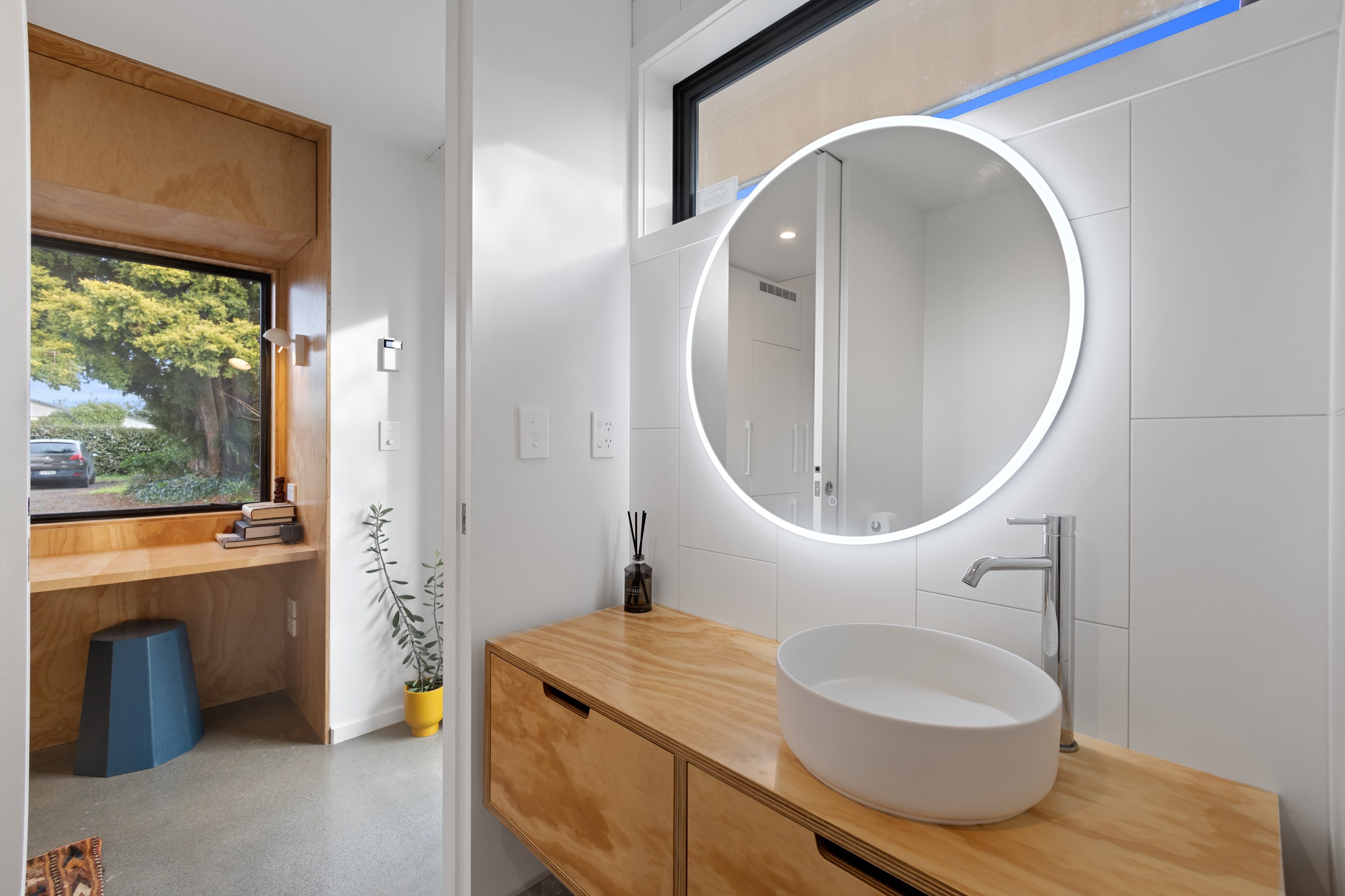 Smart, stylish and compact, this petite home packs plenty into its 73sqm footprint. A secondary dwelling on an established section in Cambridge, it’s full of inspired storage solutions and a delight to inhabit. Intelligent design and a contemporary combination of materials add up to much more than you’d expect, including two bedrooms and two living areas. The second storey accommodates a bedroom and generous office space. Downstairs, a bedroom opens to the outdoors through full-height sliders. Large windows, sliding glass doors and skylights allow natural light to flow in freely throughout the home. The kitchen, living and dining area is a cohesive space and full of storage smarts. Cabinetry-concealed appliances keep the area streamlined, which supports the minimalist design vibe. For a blissful spot to relax, put your feet up on the window seat, which also provides amble storage. Low-maintenance coloursteel cladding and plywood interior walls make this little beauty practical, as well as lending a thoroughly contemporary design edge.