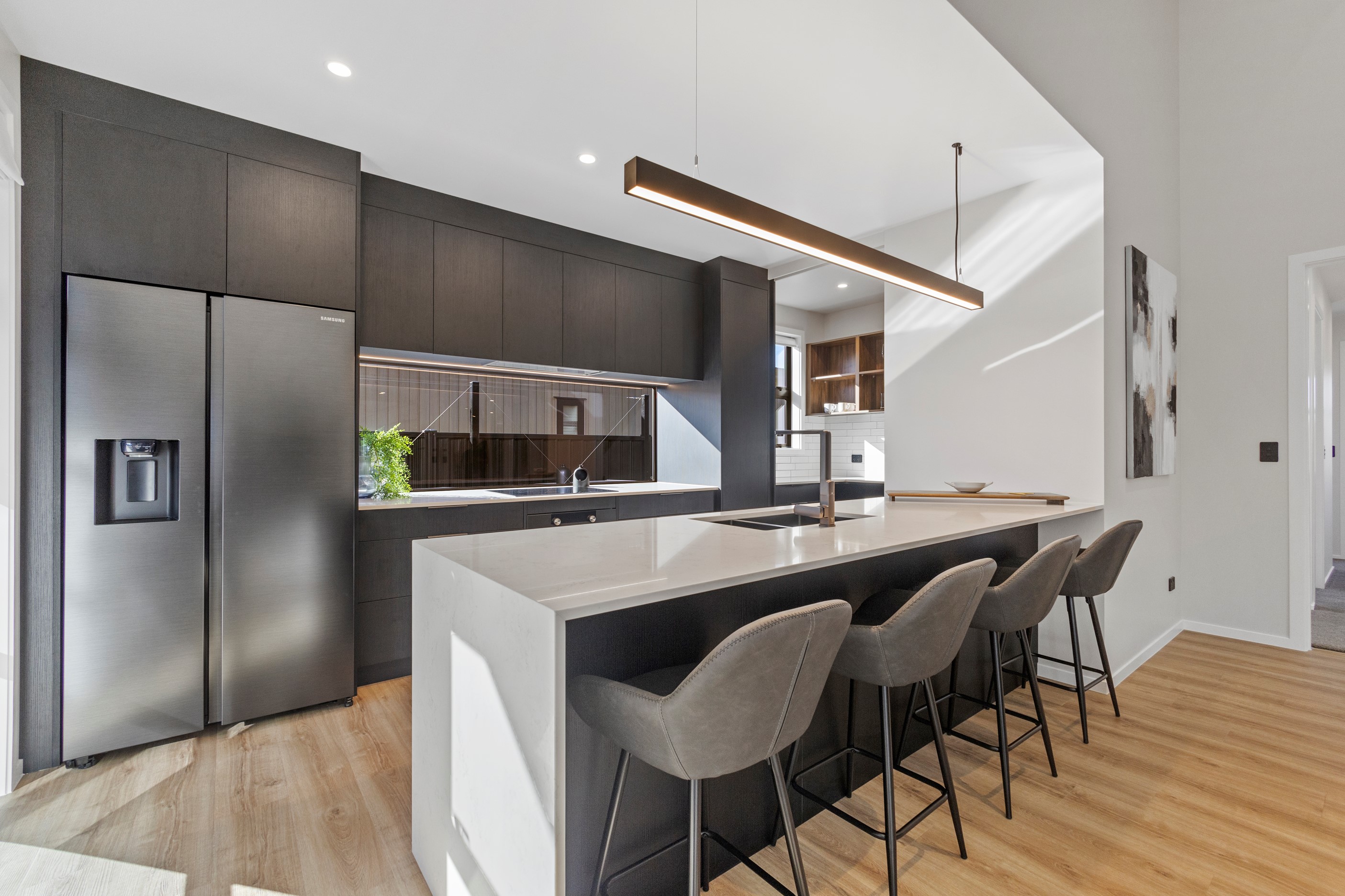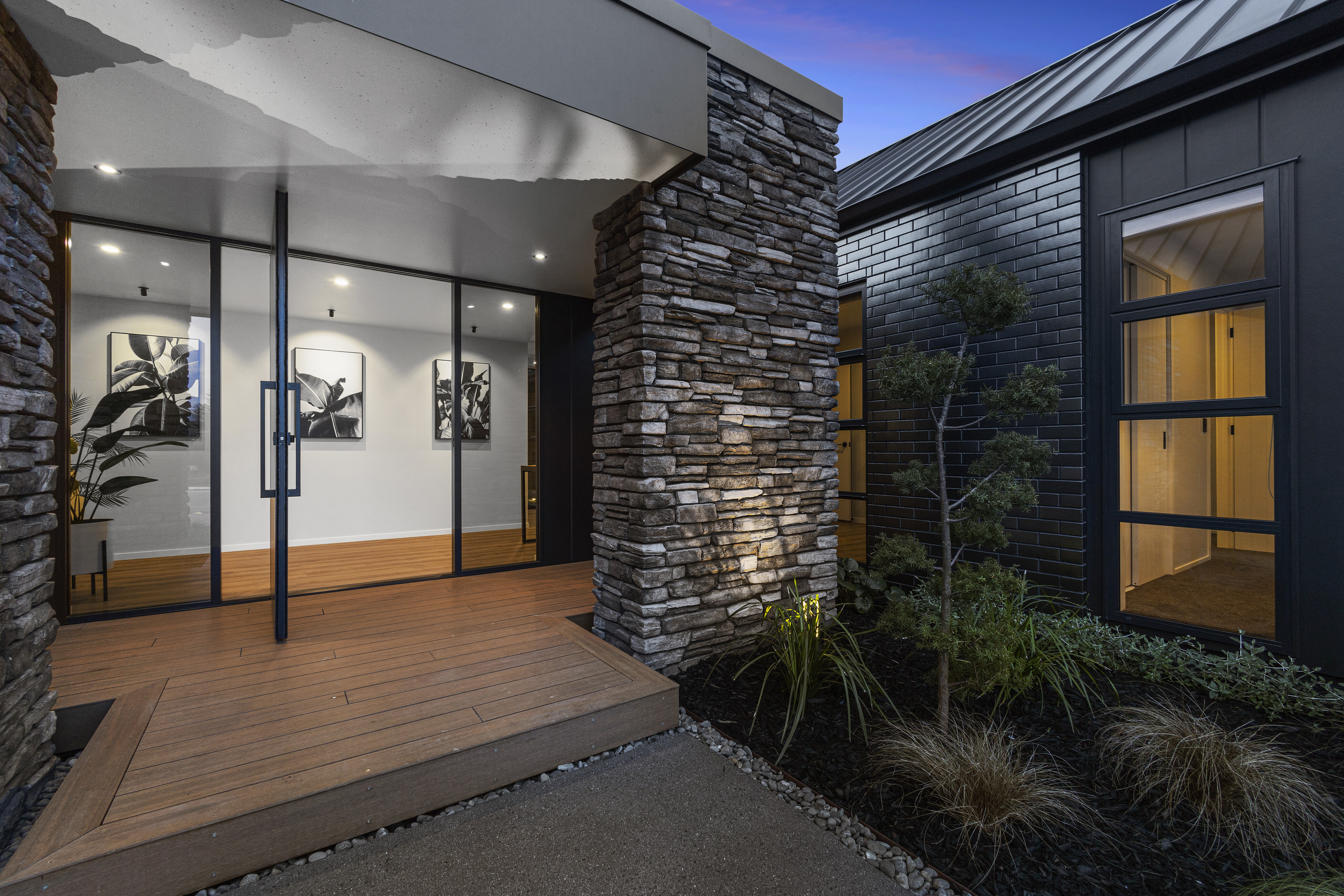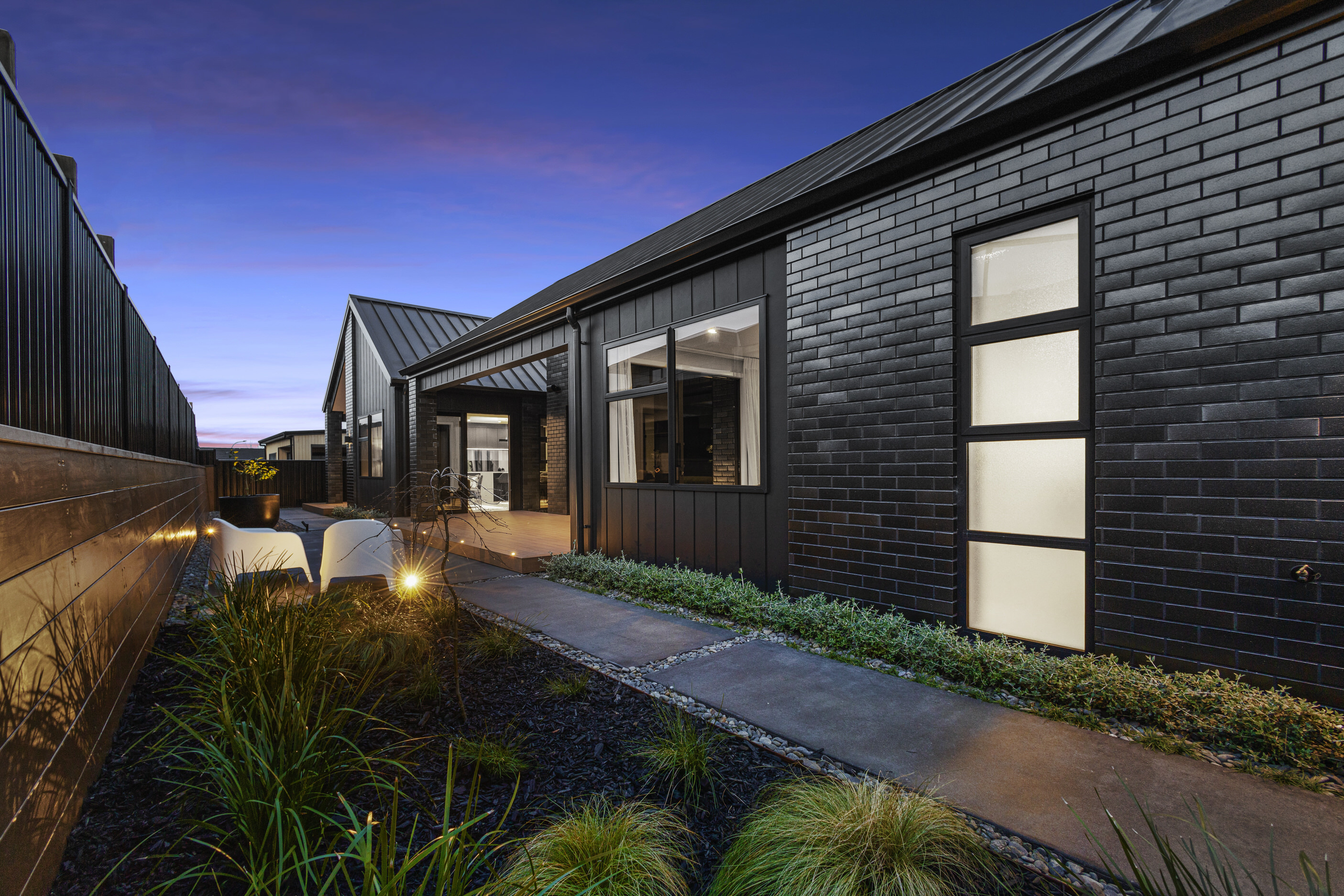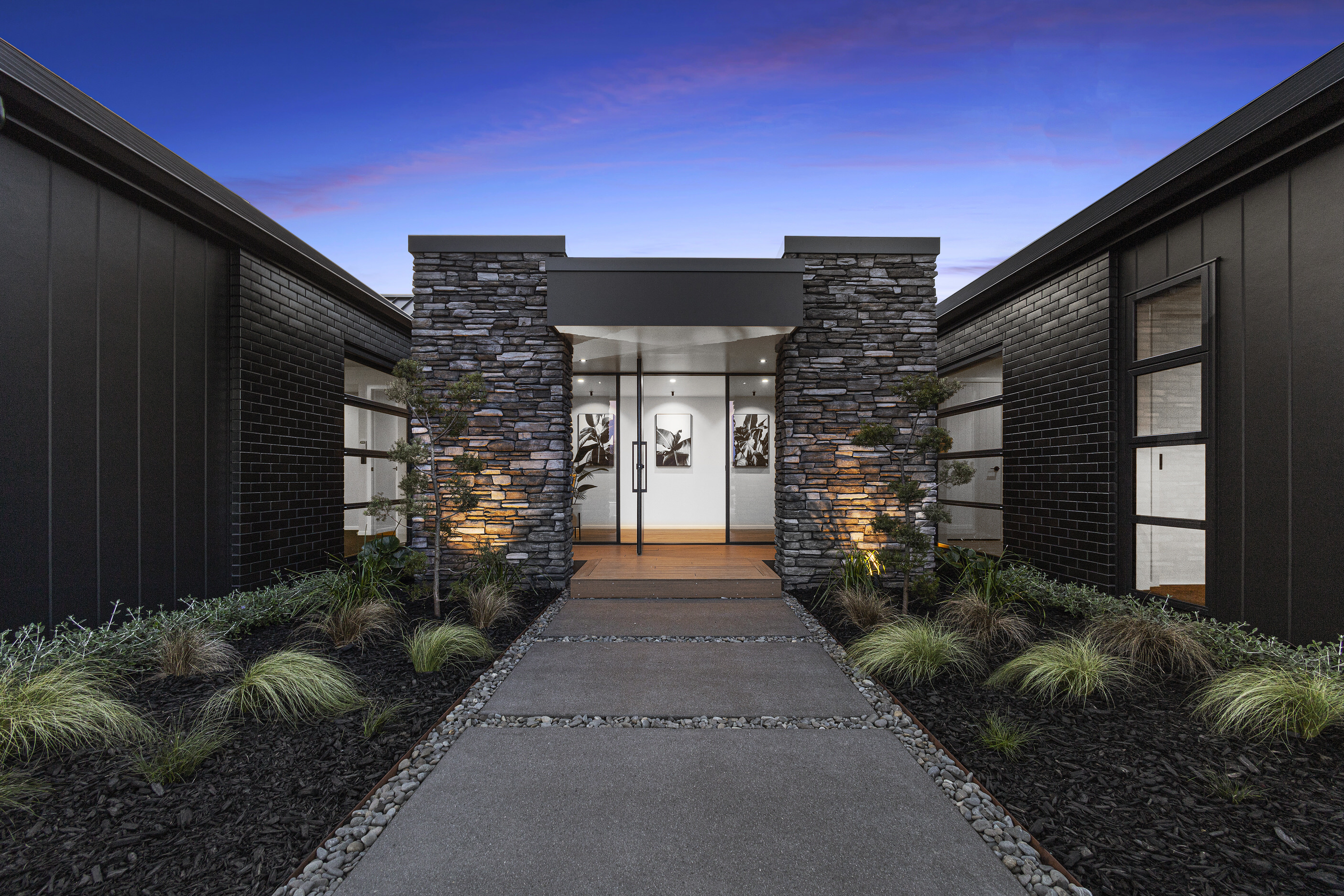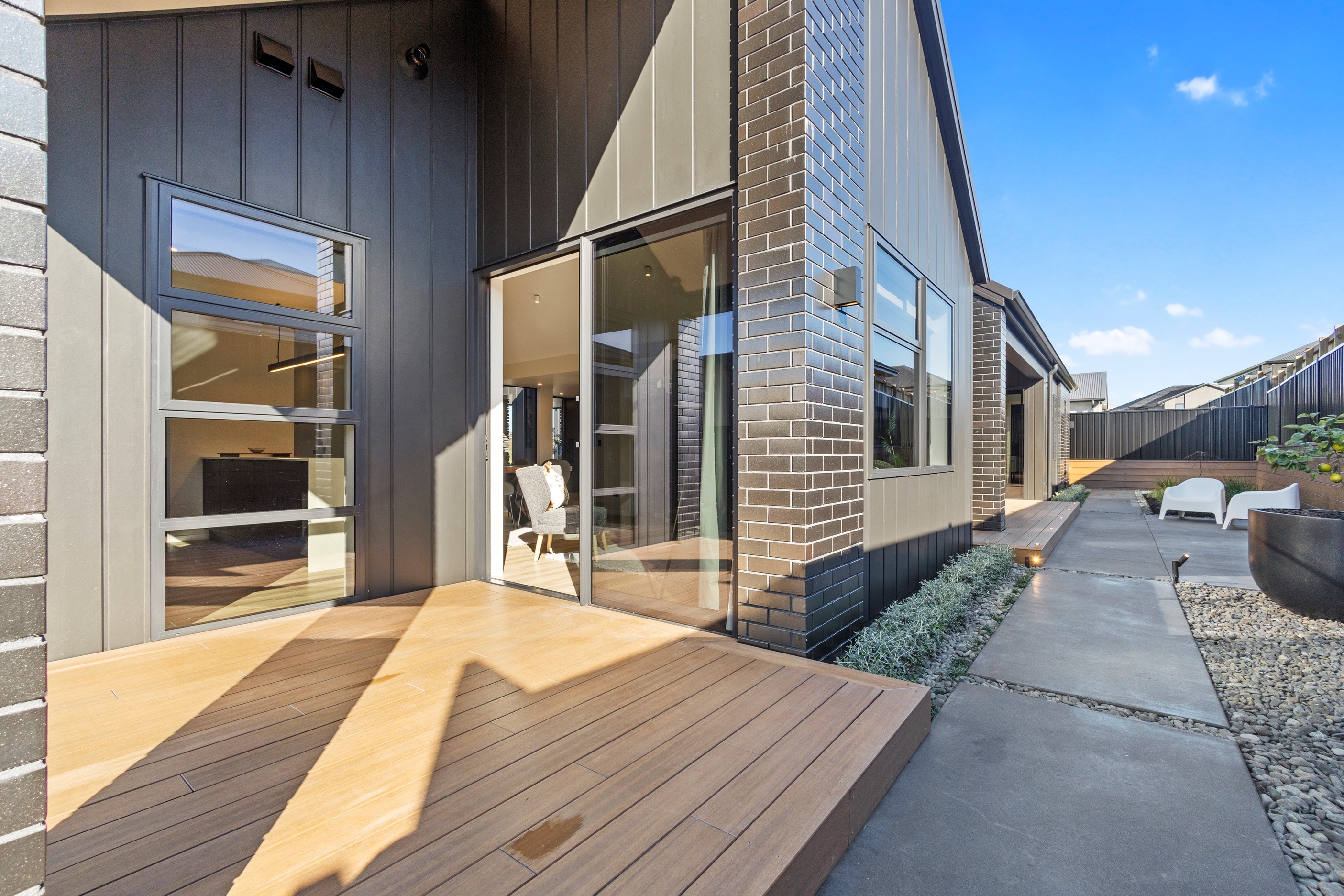 Refined style best describes this contemporary four-bedroom home. The bold and prominent entry is framed by wide stone pillars, drawing your eye directly to the oversized pivot front door. Tray roofing and metallic-finish bricks pair with dark vertical weatherboard to lend style to the pavilion form. Beyond the entrance portico of this 238sqm home, living areas showcase raking ceilings, feature lighting, and over-height interior doors designed for spacious family living and entertaining. Dark cabinetry, gun-metal tapware and appliances set in stone benchtops blend harmoniously to deliver an impressive kitchen – destined to be the hub of this family home. The large scullery has ample storage and prep space and a window for natural light. Each of the generously sized four bedrooms draws in an abundance of natural light thanks to well-positioned glazing. The sleek, tiled bathrooms are what you’d expect to find in a high-end hotel. Dual living areas open to sleek composite decks for relaxed and private outdoor living. This home shows off the best in quality materials, design and craftsmanship.
