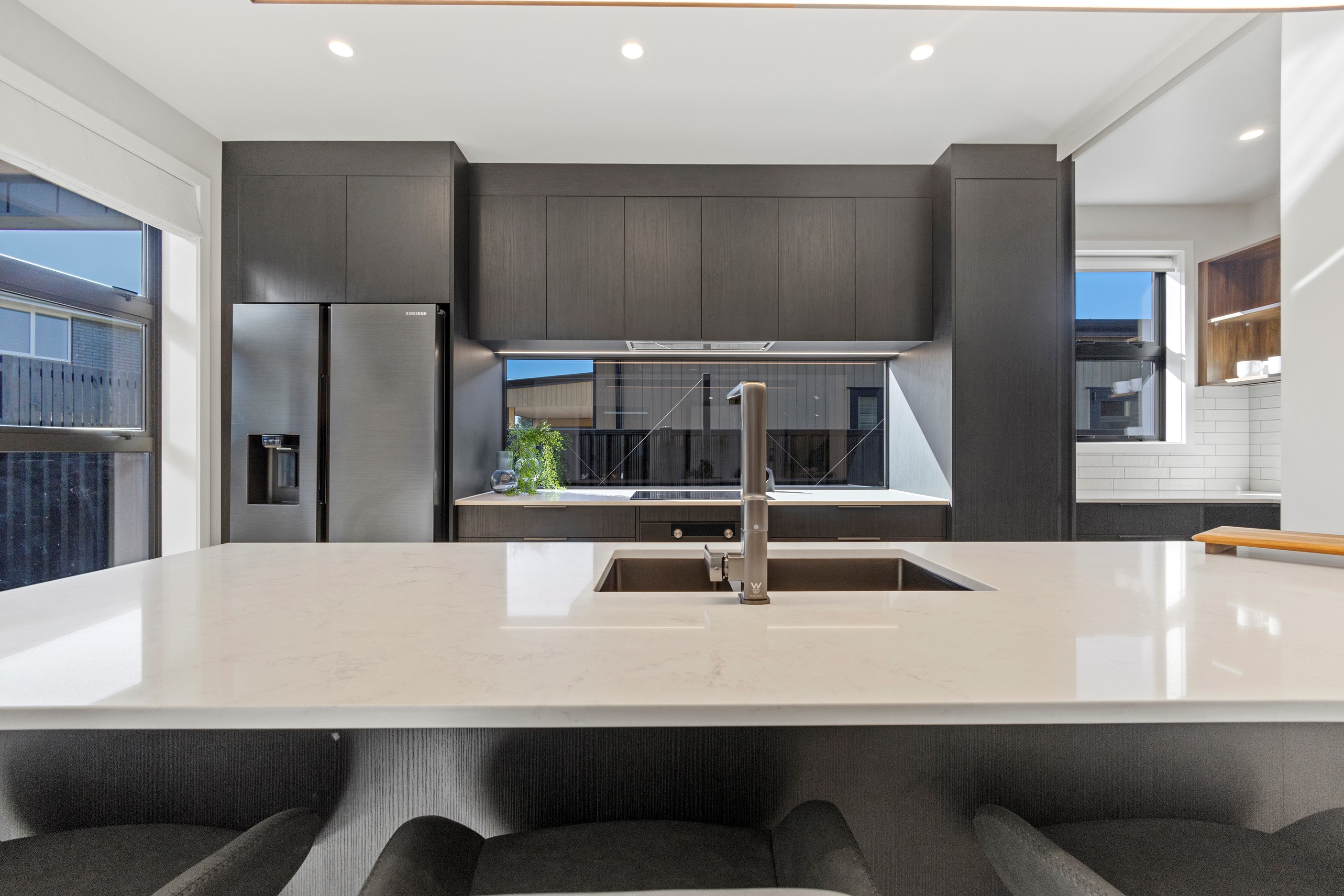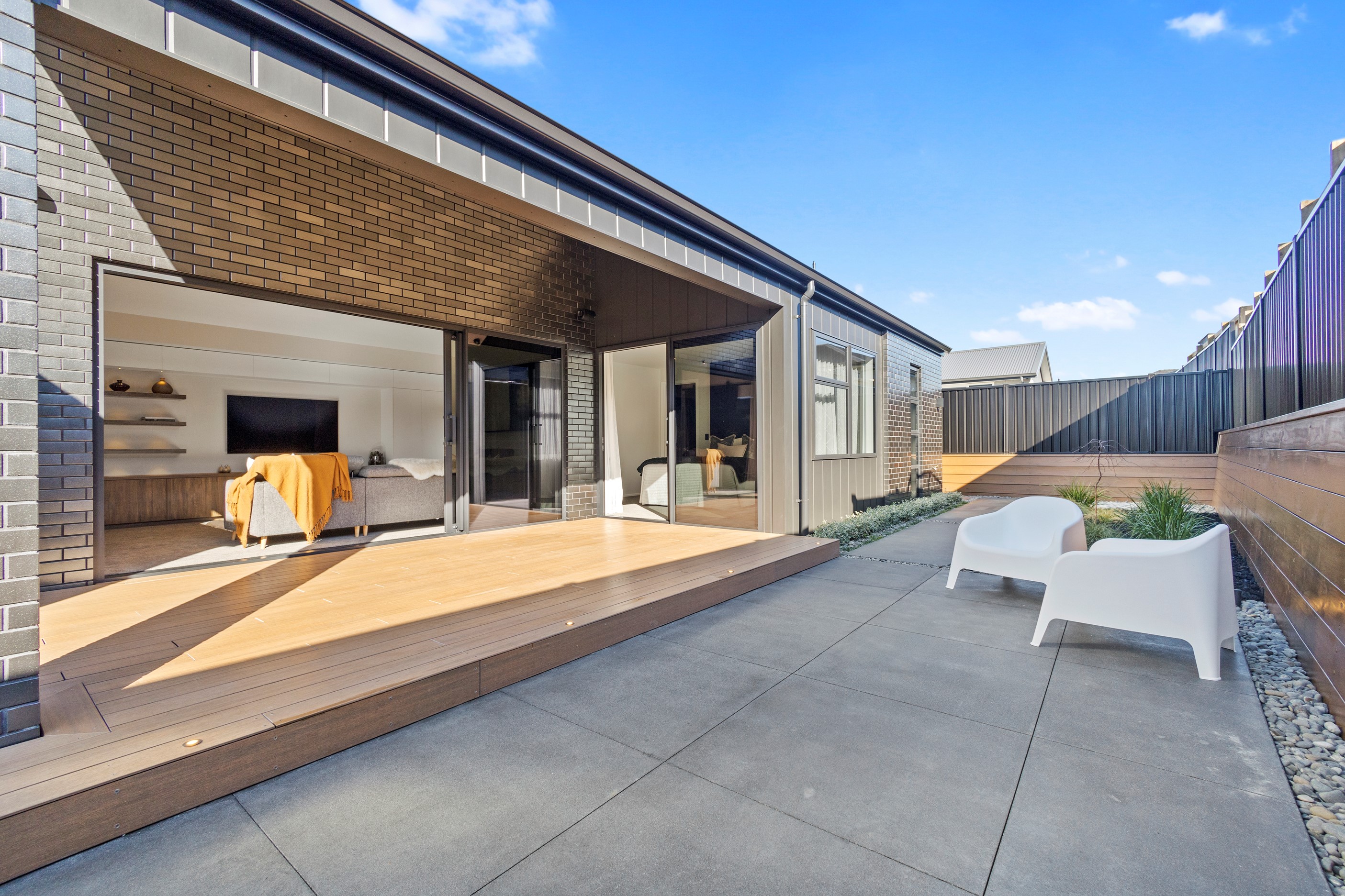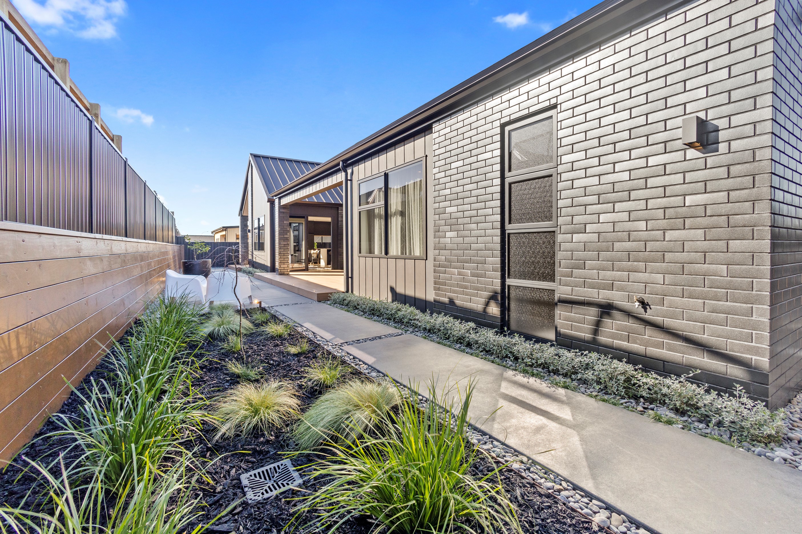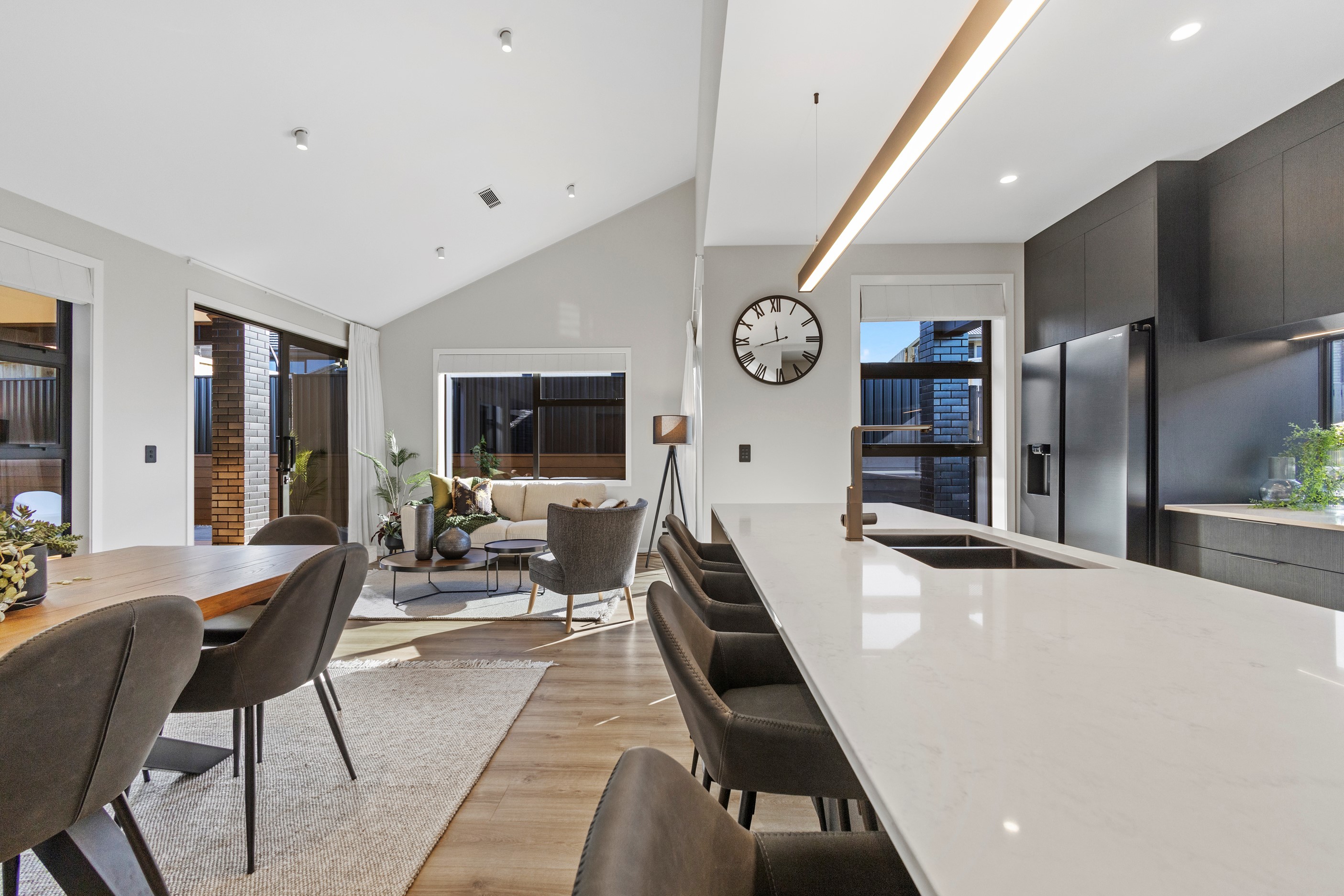 Refined style best describes this contemporary four-bedroom home. The bold and prominent entry is framed by wide stone pillars, drawing your eye directly to the oversized pivot front door. Tray roofing and metallic-finish bricks pair with dark vertical weatherboard to lend style to the pavilion form. Beyond the entrance portico of this 238sqm home, living areas showcase raking ceilings, feature lighting, and over-height interior doors designed for spacious family living and entertaining. Dark cabinetry, gun-metal tapware and appliances set in stone benchtops blend harmoniously to deliver an impressive kitchen – destined to be the hub of this family home. The large scullery has ample storage and prep space and a window for natural light. Each of the generously sized four bedrooms draws in an abundance of natural light thanks to well-positioned glazing. The sleek, tiled bathrooms are what you’d expect to find in a high-end hotel. Dual living areas open to sleek composite decks for relaxed and private outdoor living. This home shows off the best in quality materials, design and craftsmanship.