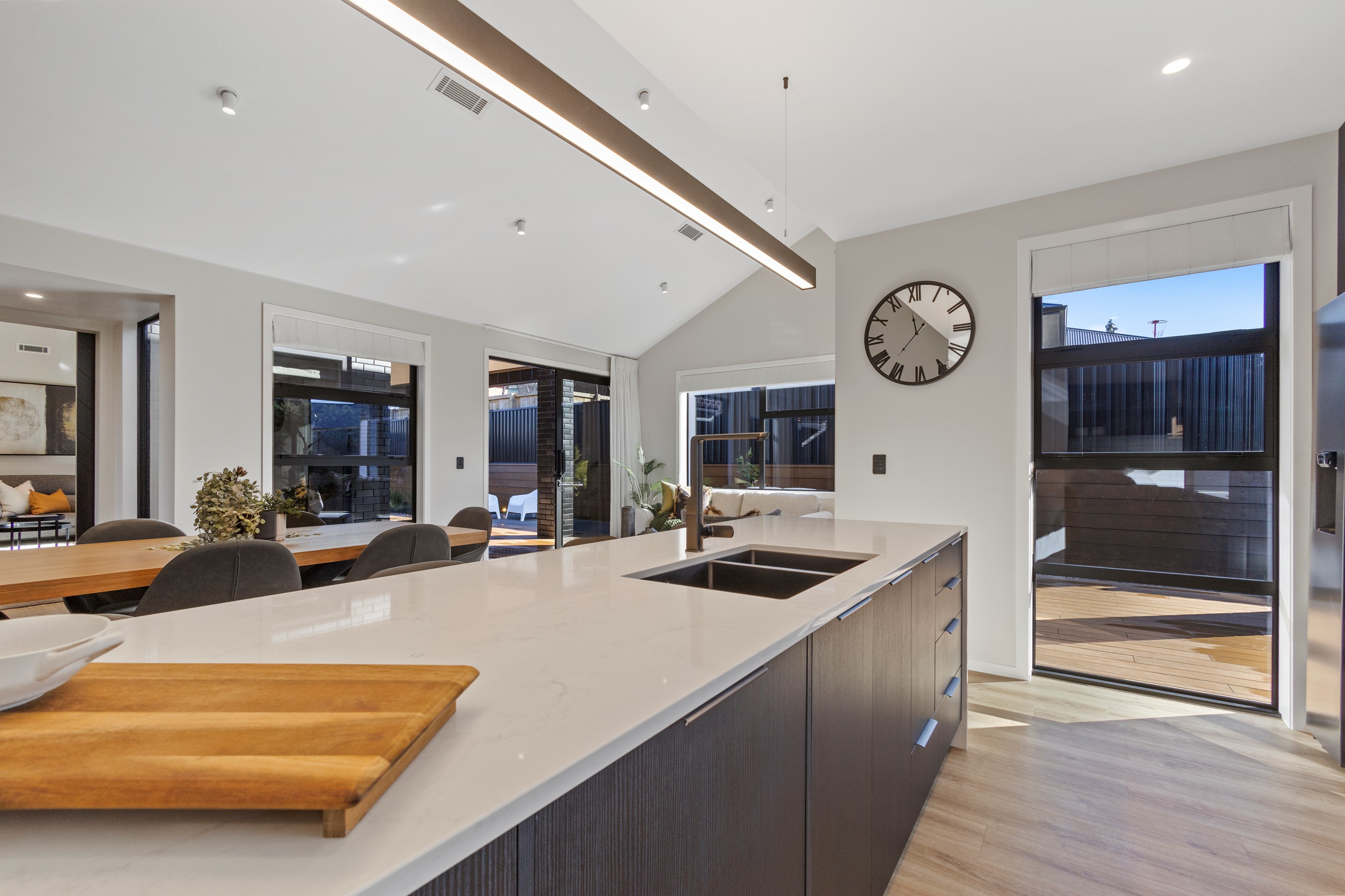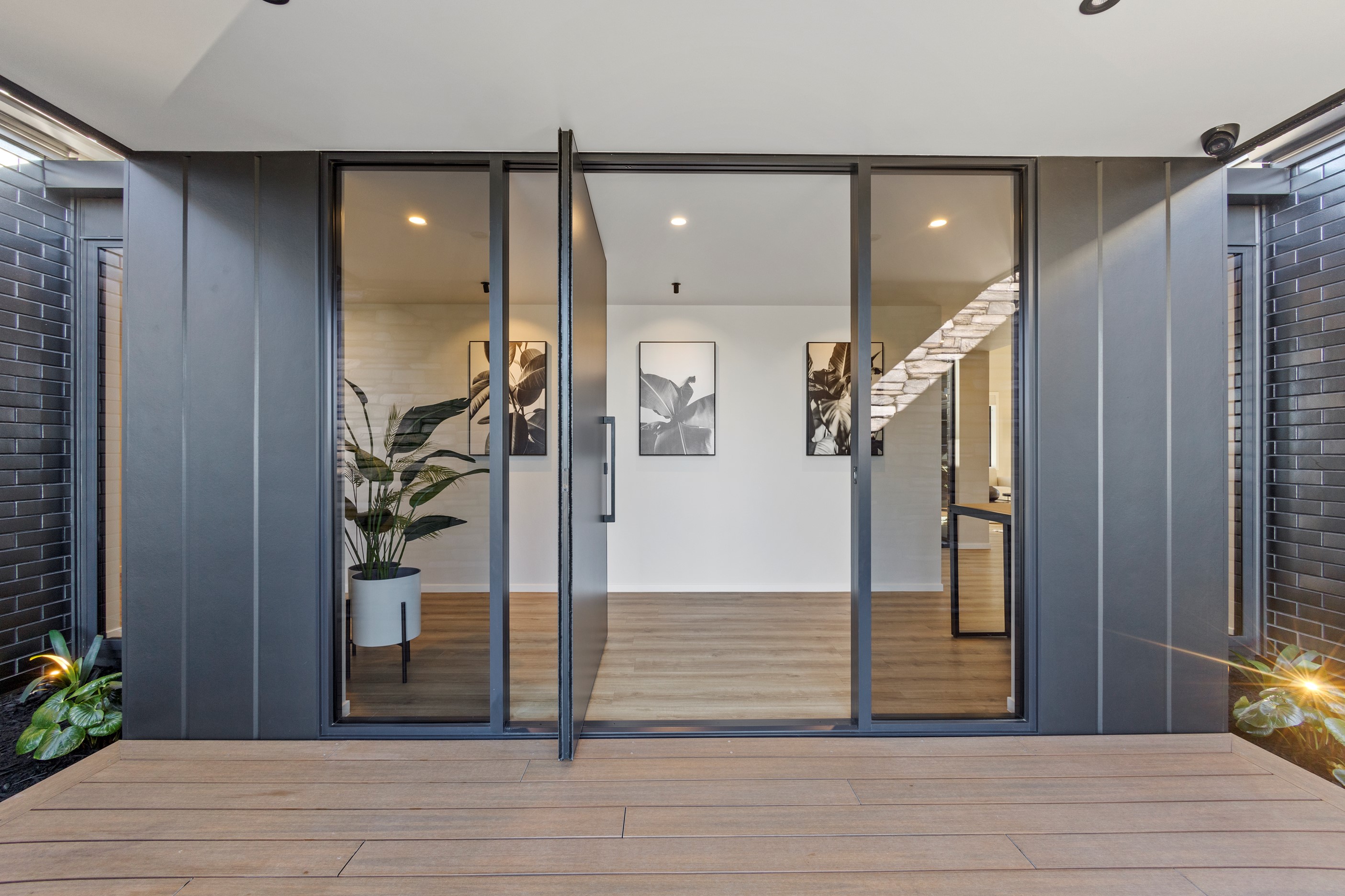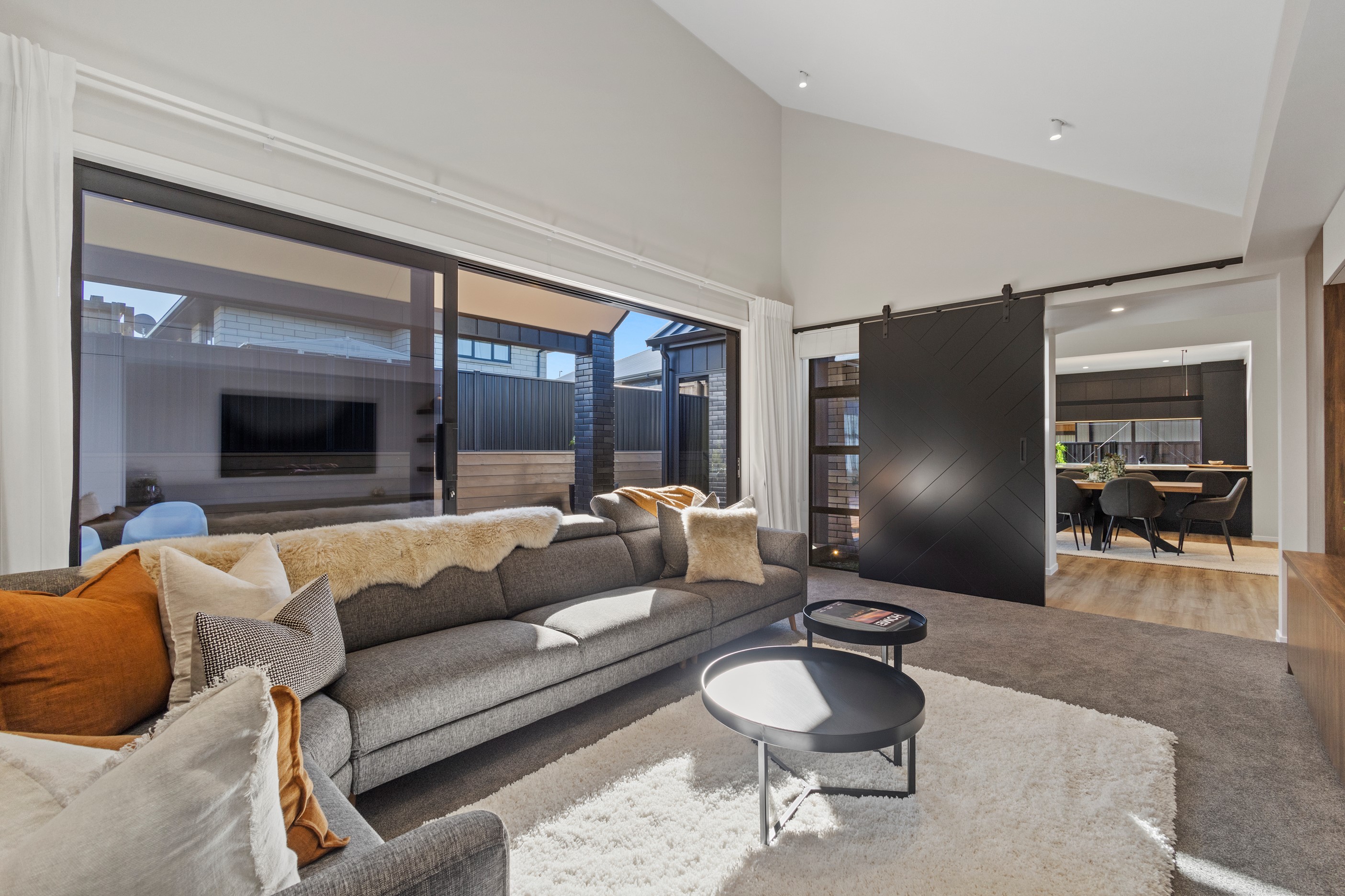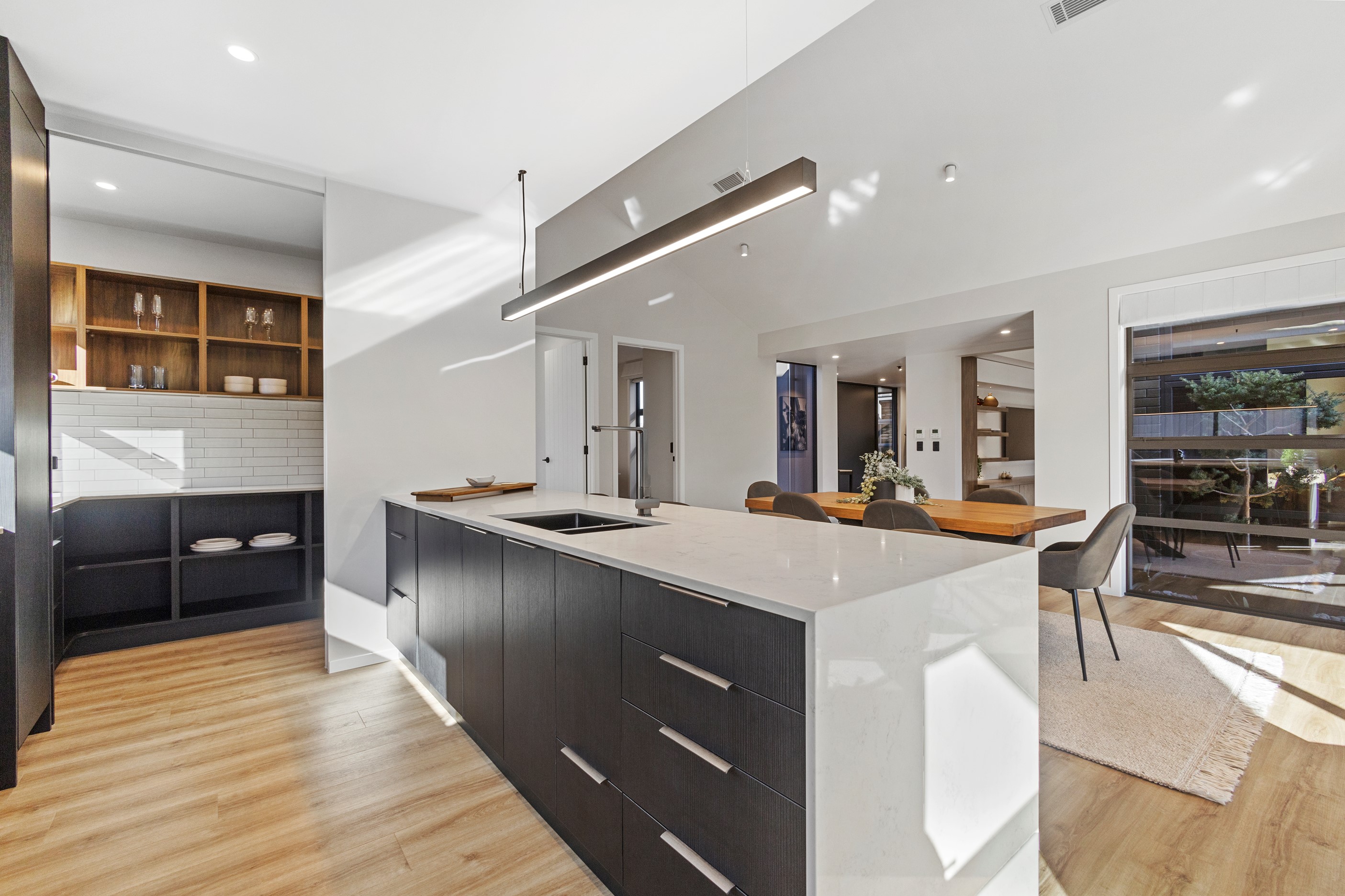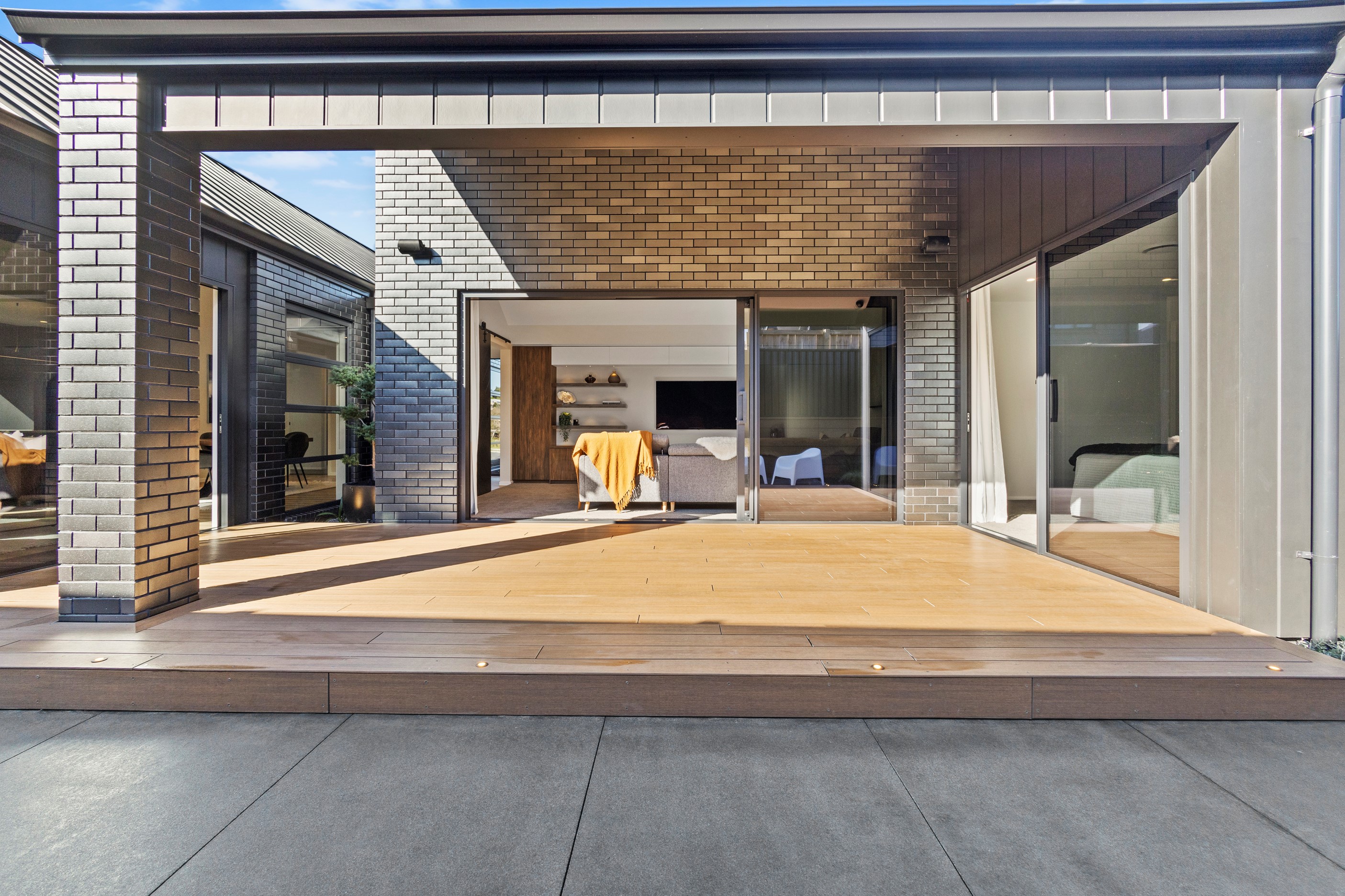 Refined style best describes this contemporary four-bedroom home. The bold and prominent entry is framed by wide stone pillars, drawing your eye directly to the oversized pivot front door. Tray roofing and metallic-finish bricks pair with dark vertical weatherboard to lend style to the pavilion form. Beyond the entrance portico of this 238sqm home, living areas showcase raking ceilings, feature lighting, and over-height interior doors designed for spacious family living and entertaining. Dark cabinetry, gun-metal tapware and appliances set in stone benchtops blend harmoniously to deliver an impressive kitchen – destined to be the hub of this family home. The large scullery has ample storage and prep space and a window for natural light. Each of the generously sized four bedrooms draws in an abundance of natural light thanks to well-positioned glazing. The sleek, tiled bathrooms are what you’d expect to find in a high-end hotel. Dual living areas open to sleek composite decks for relaxed and private outdoor living. This home shows off the best in quality materials, design and craftsmanship.