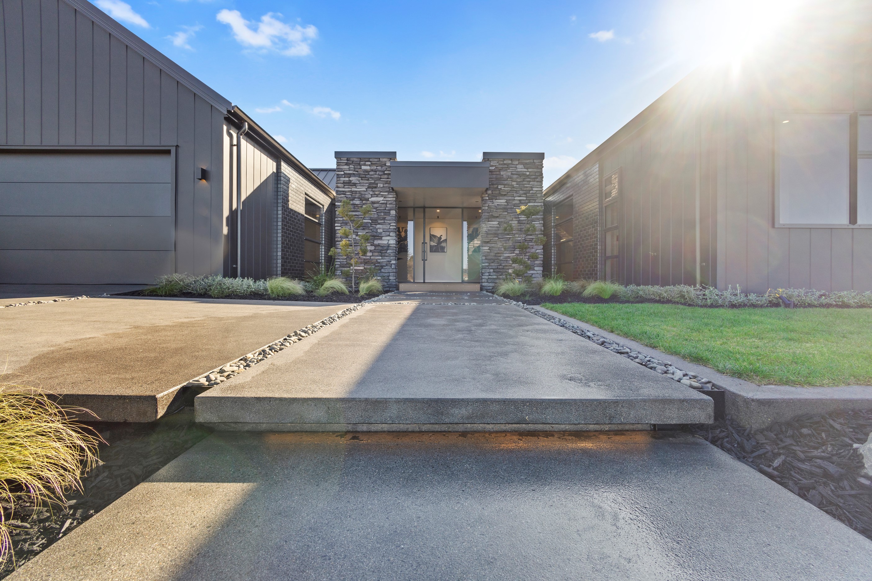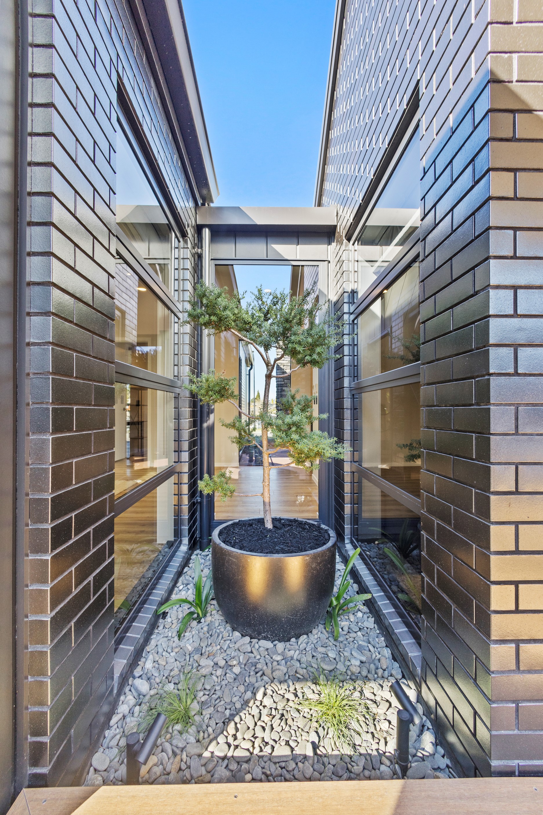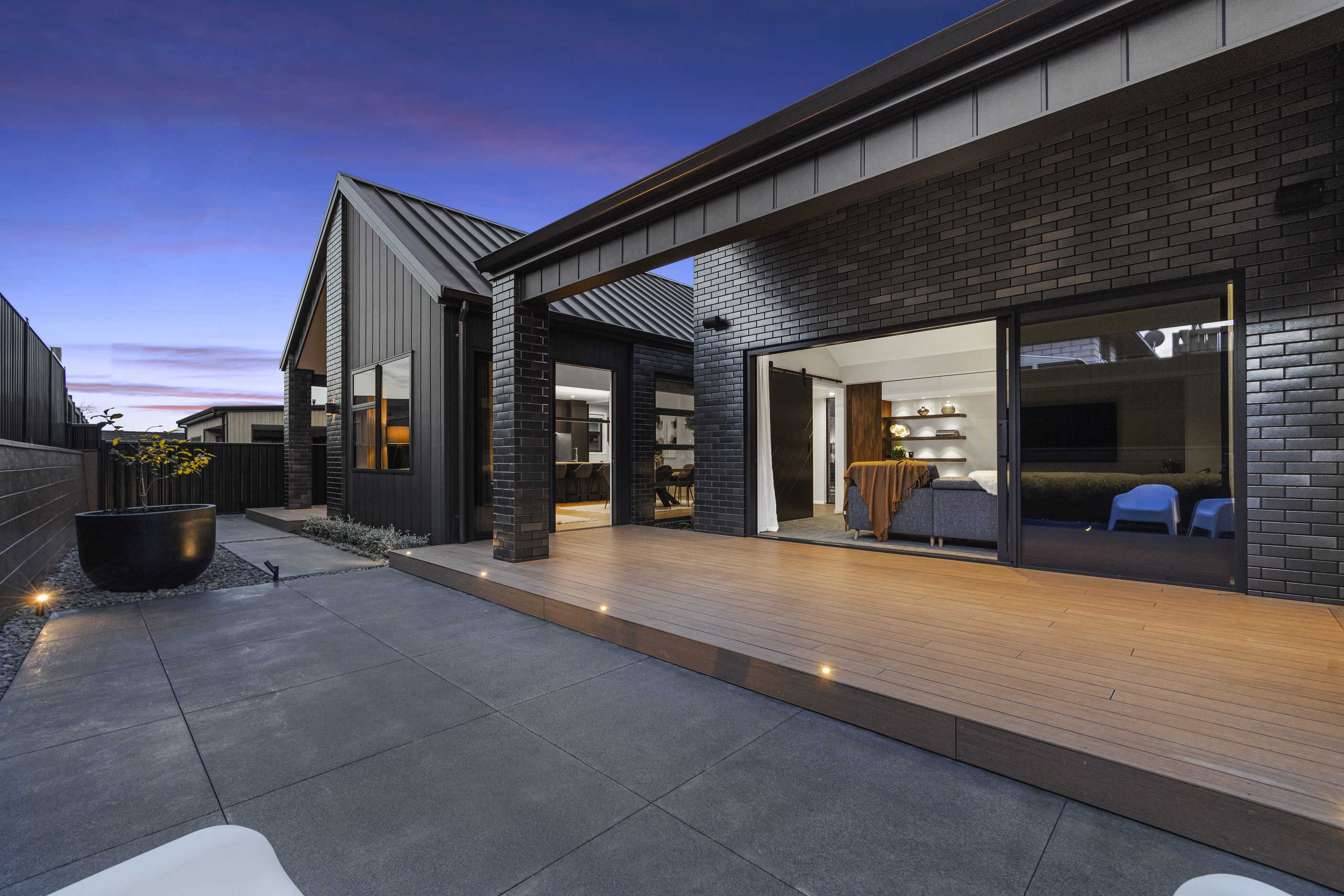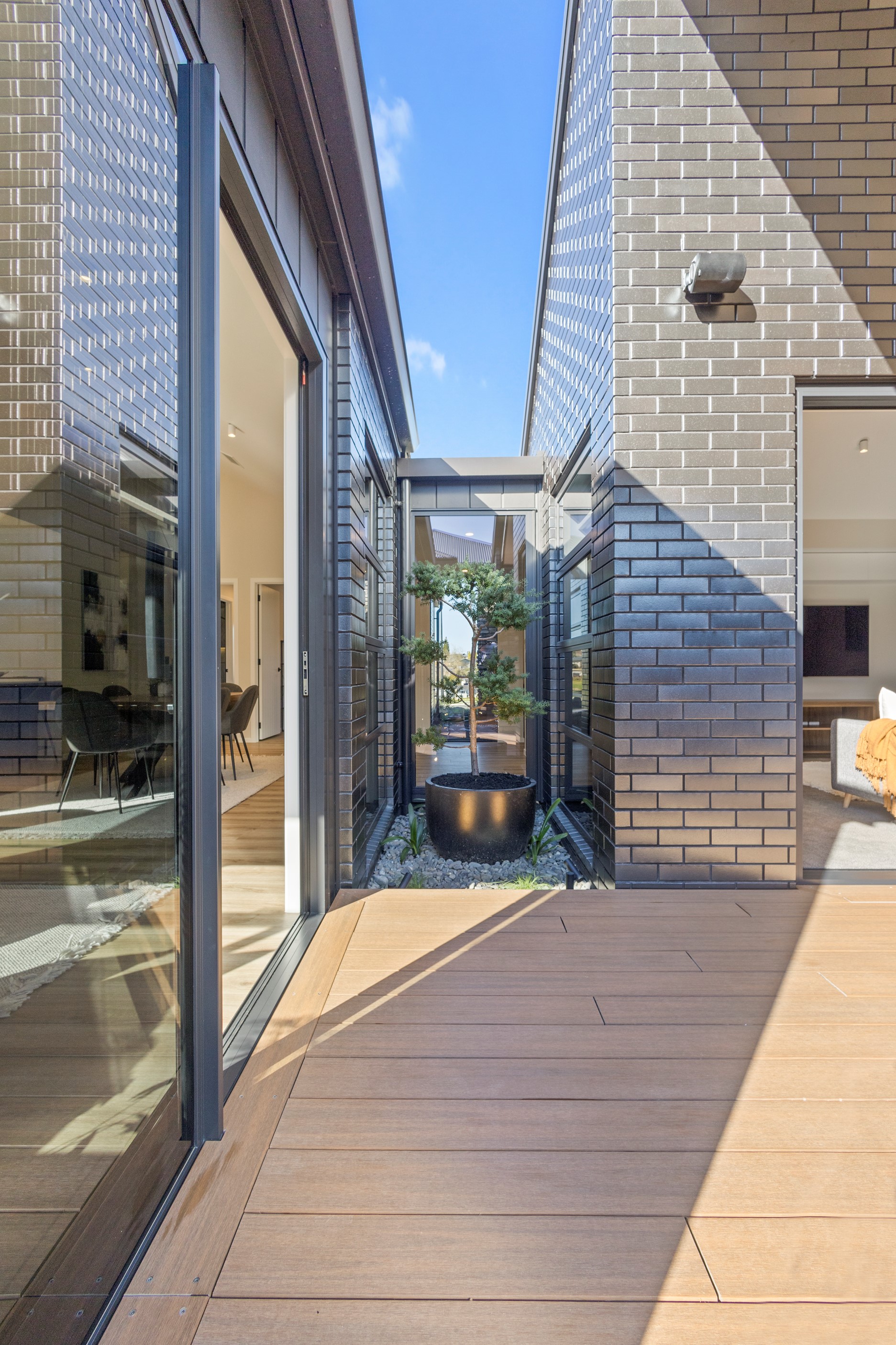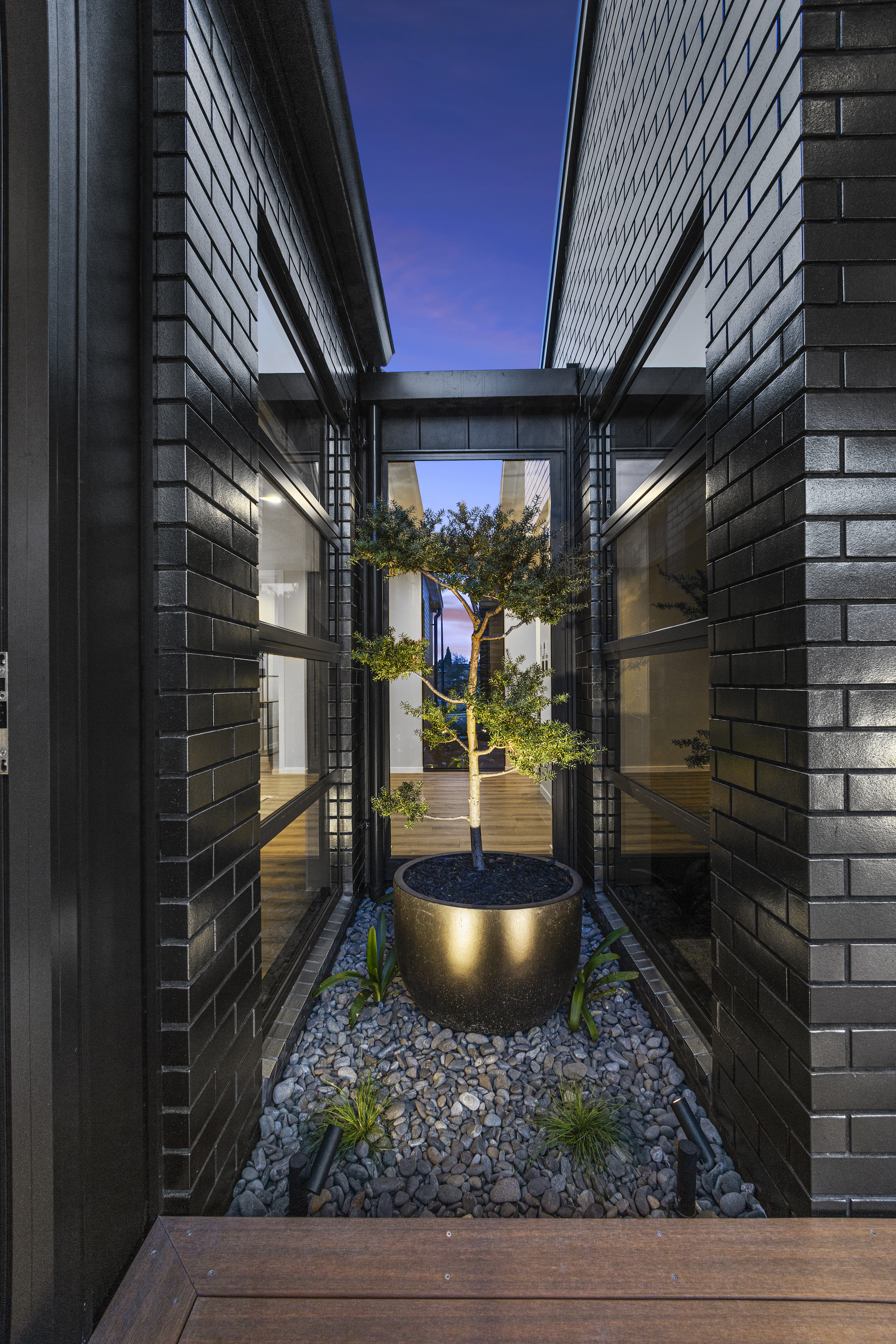 Refined style best describes this contemporary four-bedroom home. The bold and prominent entry is framed by wide stone pillars, drawing your eye directly to the oversized pivot front door. Tray roofing and metallic-finish bricks pair with dark vertical weatherboard to lend style to the pavilion form. Beyond the entrance portico of this 238sqm home, living areas showcase raking ceilings, feature lighting, and over-height interior doors designed for spacious family living and entertaining. Dark cabinetry, gun-metal tapware and appliances set in stone benchtops blend harmoniously to deliver an impressive kitchen – destined to be the hub of this family home. The large scullery has ample storage and prep space and a window for natural light. Each of the generously sized four bedrooms draws in an abundance of natural light thanks to well-positioned glazing. The sleek, tiled bathrooms are what you’d expect to find in a high-end hotel. Dual living areas open to sleek composite decks for relaxed and private outdoor living. This home shows off the best in quality materials, design and craftsmanship.
