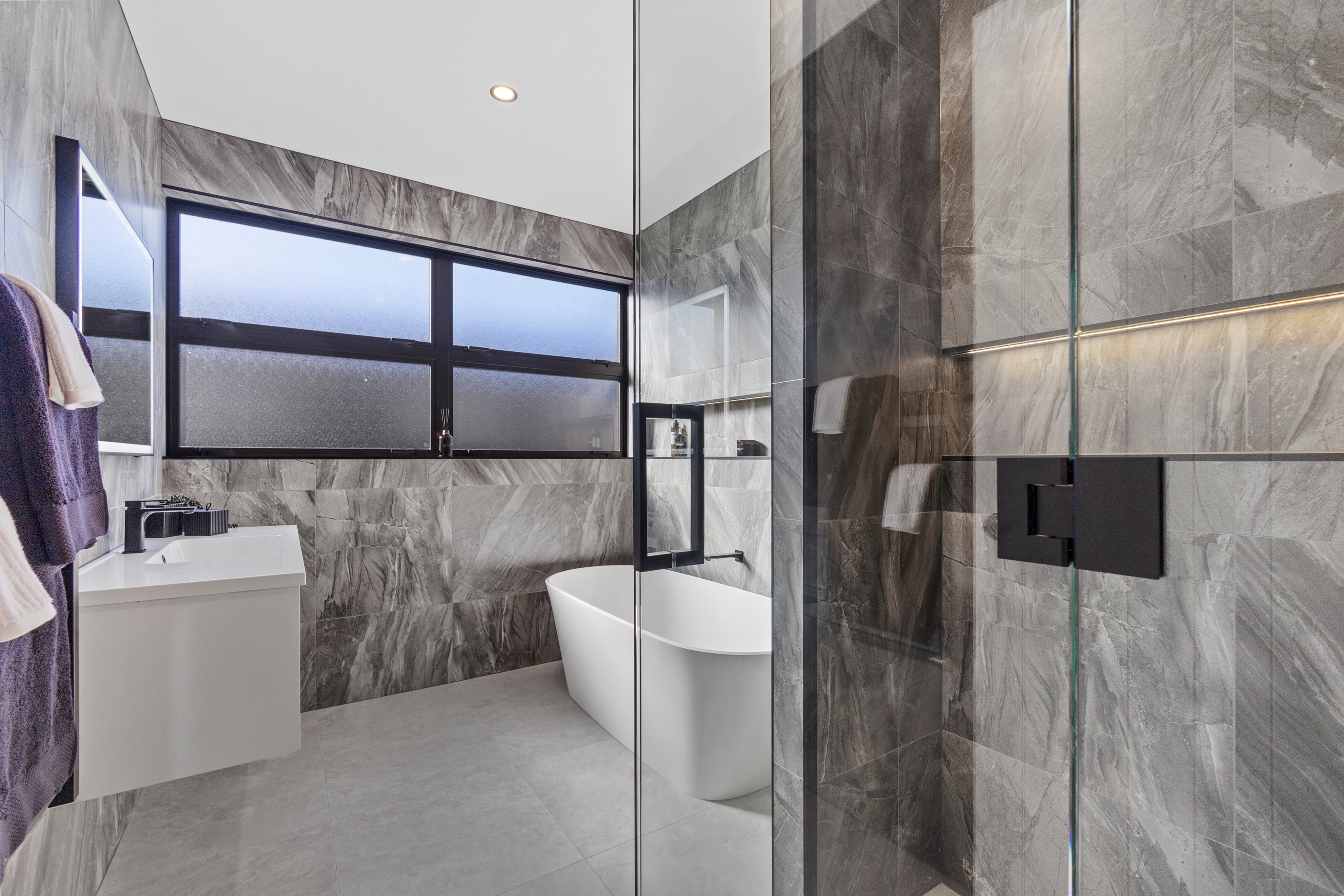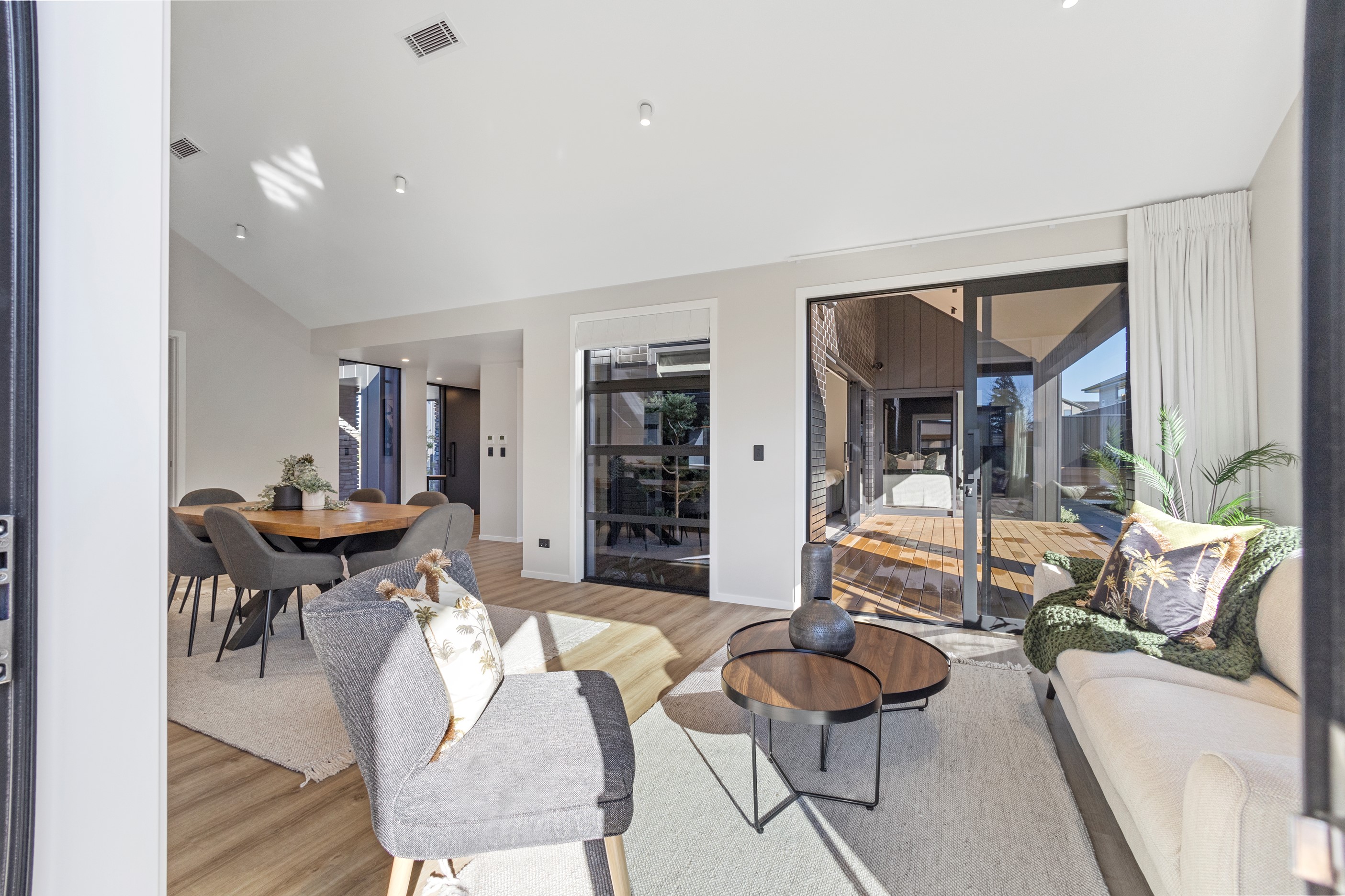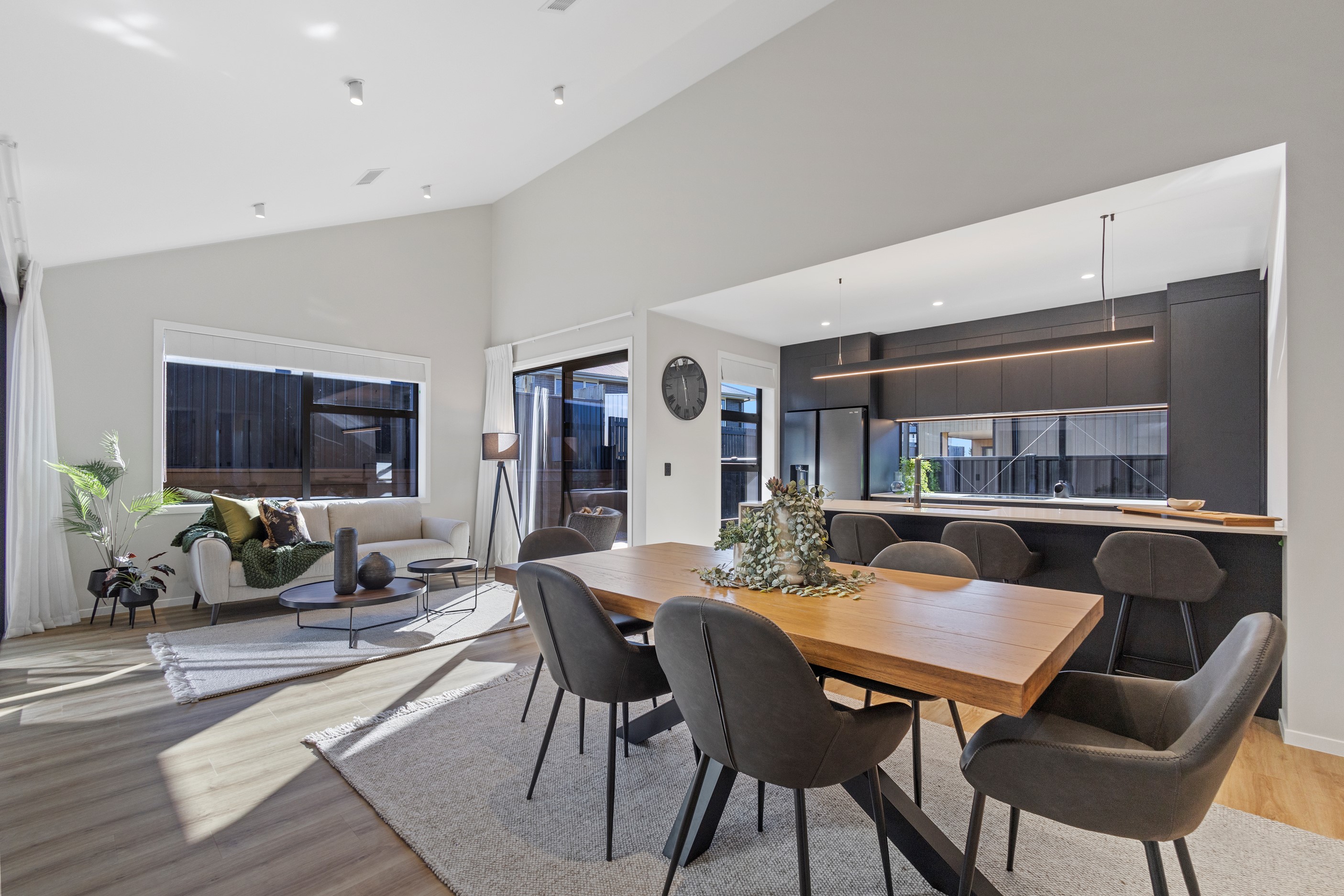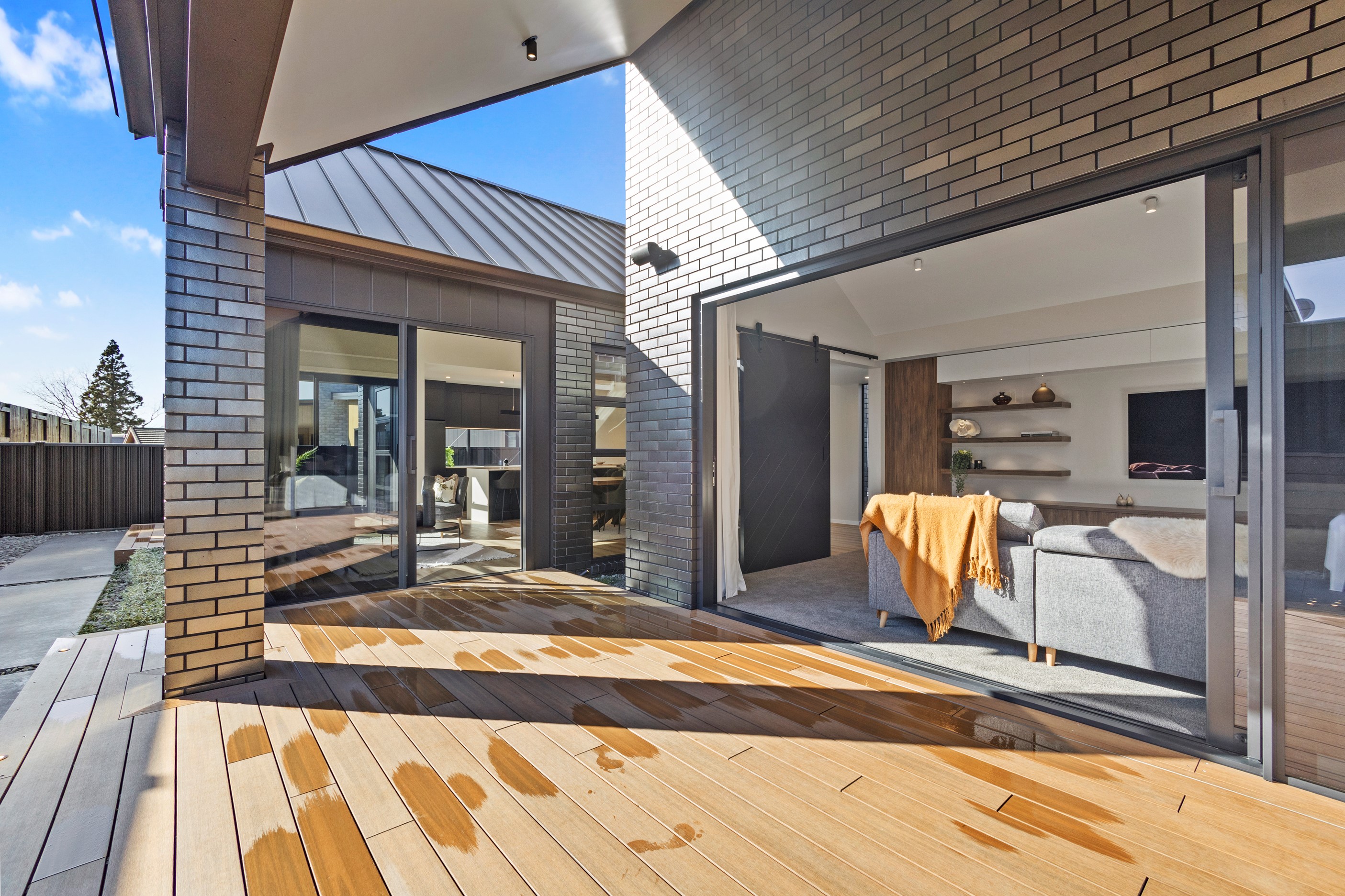 Refined style best describes this contemporary four-bedroom home. The bold and prominent entry is framed by wide stone pillars, drawing your eye directly to the oversized pivot front door. Tray roofing and metallic-finish bricks pair with dark vertical weatherboard to lend style to the pavilion form. Beyond the entrance portico of this 238sqm home, living areas showcase raking ceilings, feature lighting, and over-height interior doors designed for spacious family living and entertaining. Dark cabinetry, gun-metal tapware and appliances set in stone benchtops blend harmoniously to deliver an impressive kitchen – destined to be the hub of this family home. The large scullery has ample storage and prep space and a window for natural light. Each of the generously sized four bedrooms draws in an abundance of natural light thanks to well-positioned glazing. The sleek, tiled bathrooms are what you’d expect to find in a high-end hotel. Dual living areas open to sleek composite decks for relaxed and private outdoor living. This home shows off the best in quality materials, design and craftsmanship.