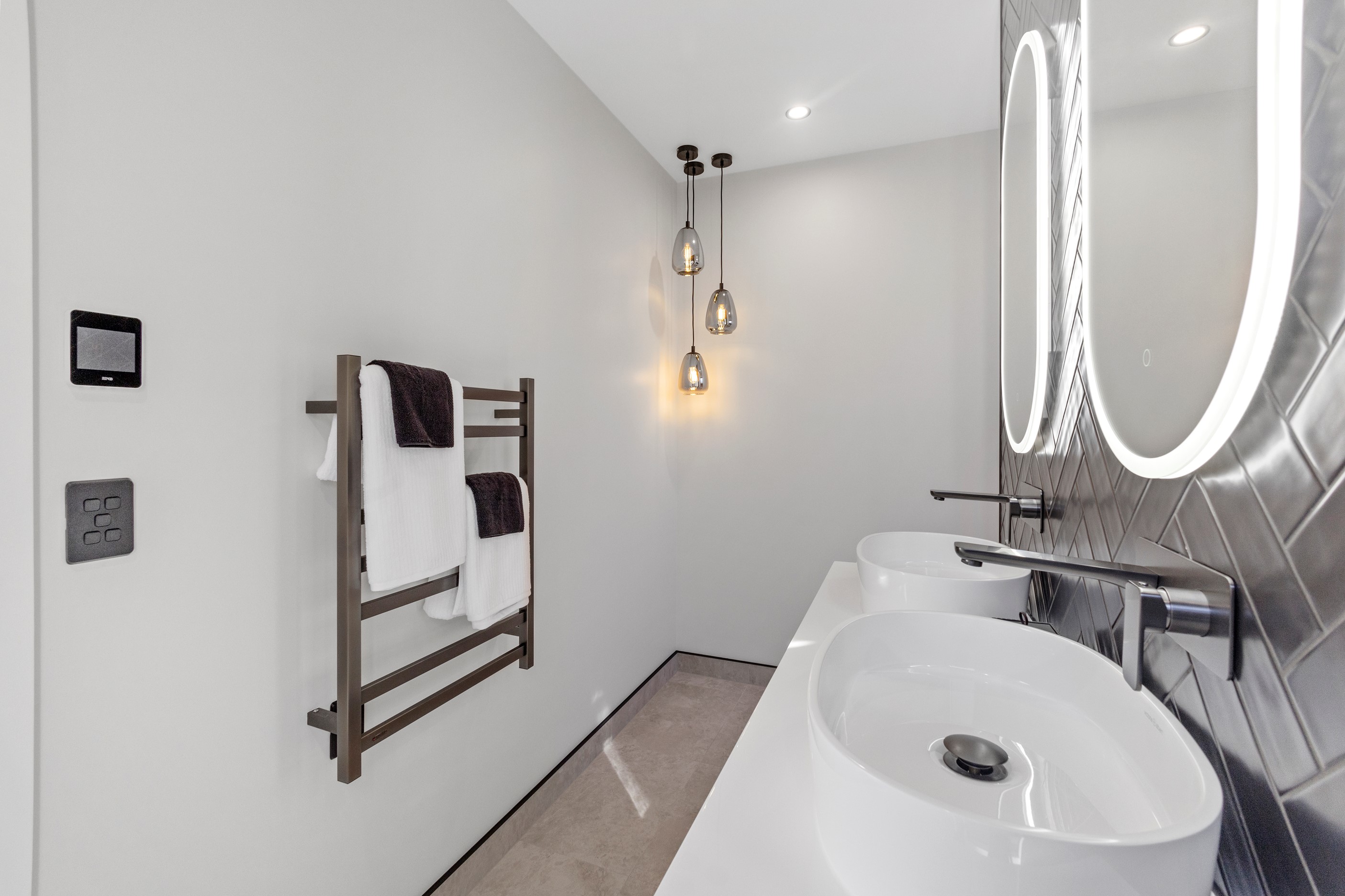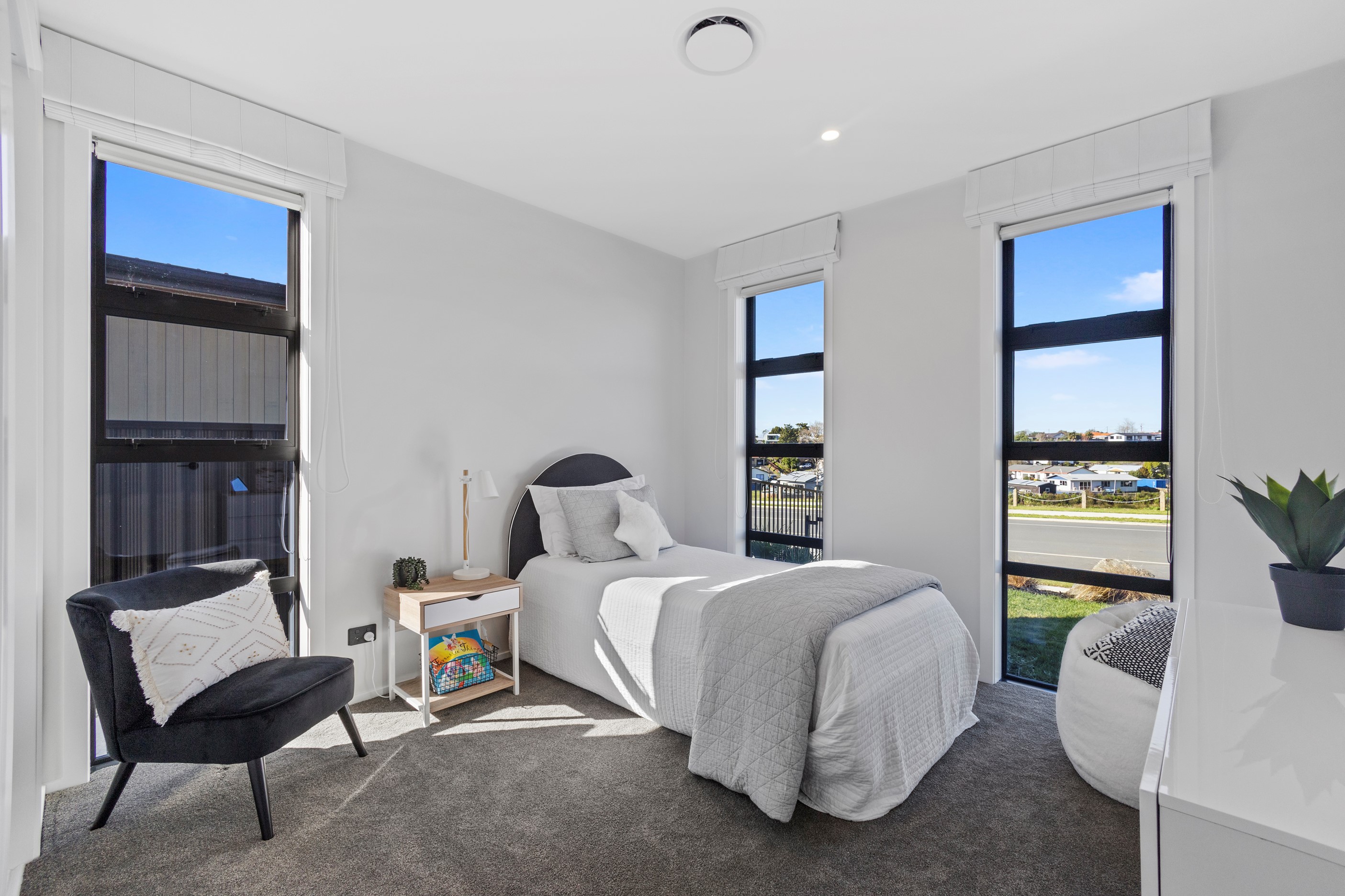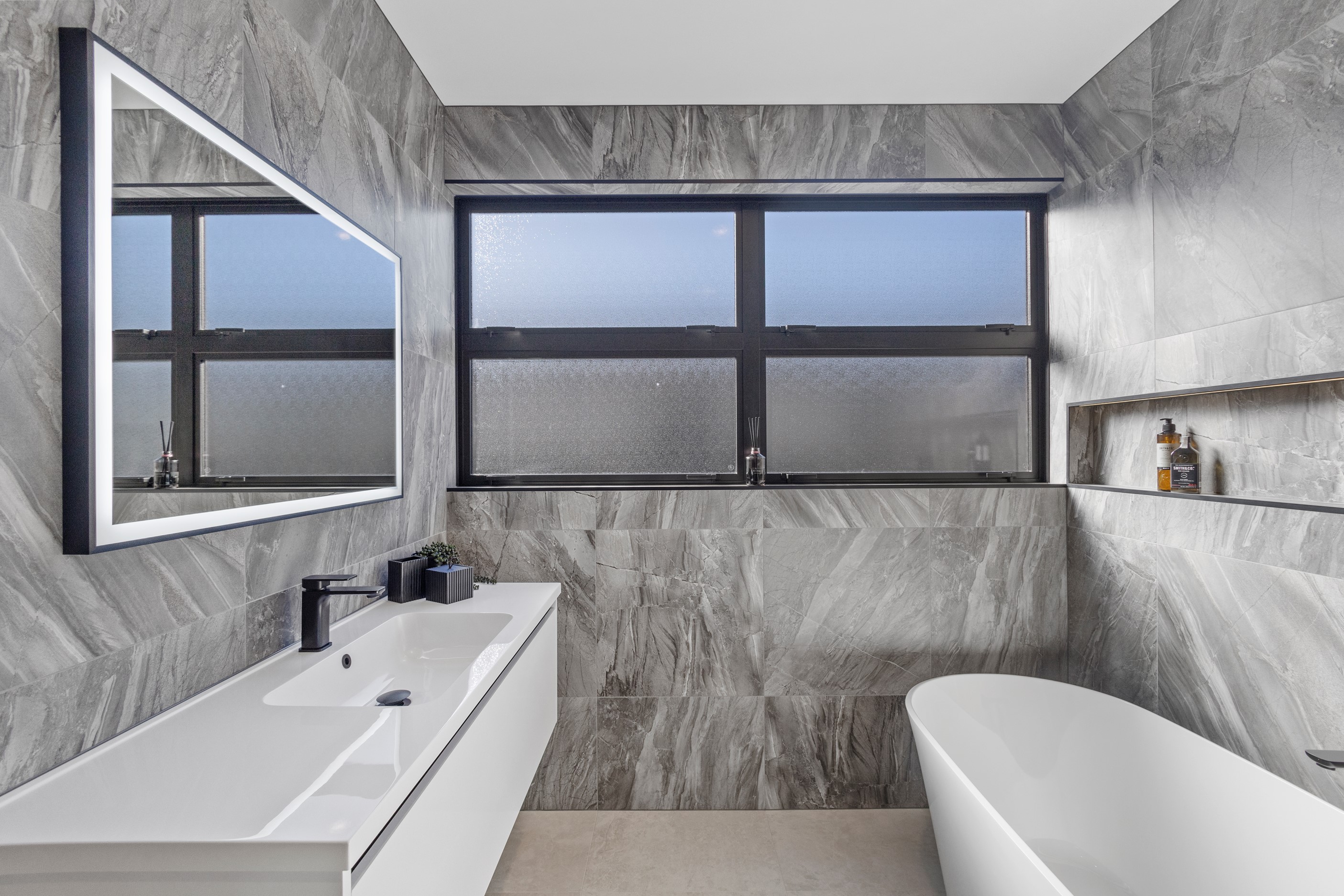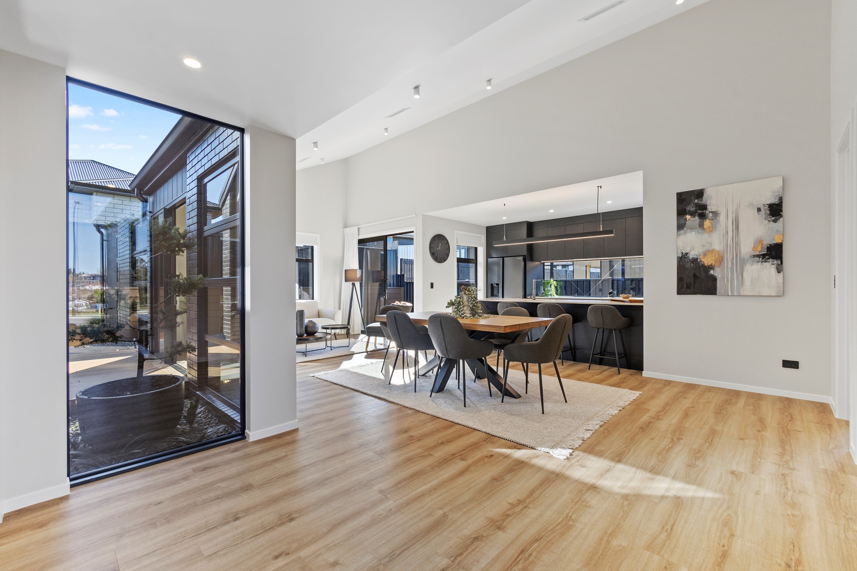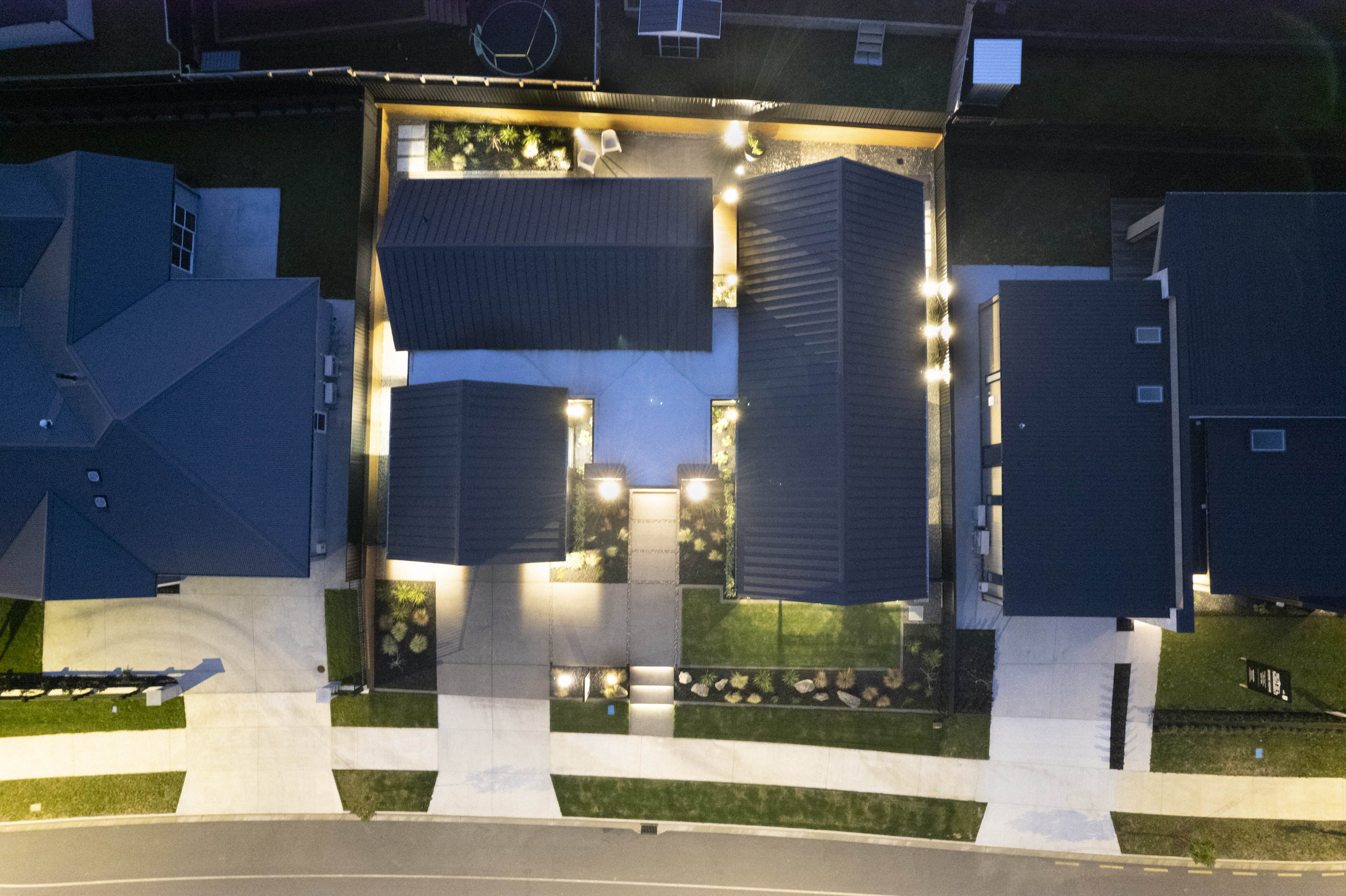 Refined style best describes this contemporary four-bedroom home. The bold and prominent entry is framed by wide stone pillars, drawing your eye directly to the oversized pivot front door. Tray roofing and metallic-finish bricks pair with dark vertical weatherboard to lend style to the pavilion form. Beyond the entrance portico of this 238sqm home, living areas showcase raking ceilings, feature lighting, and over-height interior doors designed for spacious family living and entertaining. Dark cabinetry, gun-metal tapware and appliances set in stone benchtops blend harmoniously to deliver an impressive kitchen – destined to be the hub of this family home. The large scullery has ample storage and prep space and a window for natural light. Each of the generously sized four bedrooms draws in an abundance of natural light thanks to well-positioned glazing. The sleek, tiled bathrooms are what you’d expect to find in a high-end hotel. Dual living areas open to sleek composite decks for relaxed and private outdoor living. This home shows off the best in quality materials, design and craftsmanship.