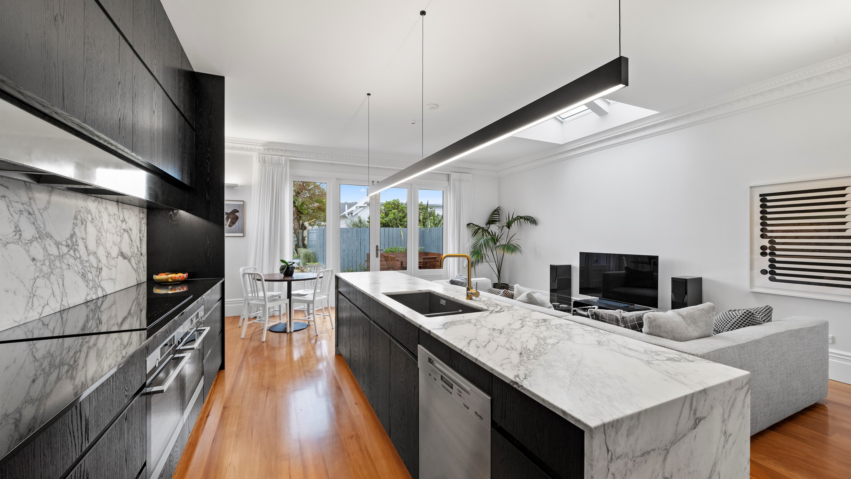 No, your eyes aren’t deceiving you. This house in one of Wellington’s heritage suburbs is brand new. The exterior is designed to reflect and respect its neighbourhood, and every effort has been taken to ensure period proportions and scale have been matched – while also complying with today’s building regulations. The poor condition of the original 1890s villa and a 1960s plaster garage meant demolition; a complicated process due to the proximity of neighbours. Extensive earthworks were needed, as was the construction of temporary soldier pile walls down two boundaries to retain neighbouring properties. Concrete piles were placed under a thermally broken slab to ensure this home is here to stay. The interior is a highly crafted balance of traditional design features – think plastered cornices, panelled walls and deep skirting boards – with elements and materials you’d expect in a contemporary home. Modern comforts include embedded heating in the thermally isolated concrete slab and a smart ventilation system. This home is a stellar example of how you can build in a traditional style but ensure every contemporary comfort has been accounted for.