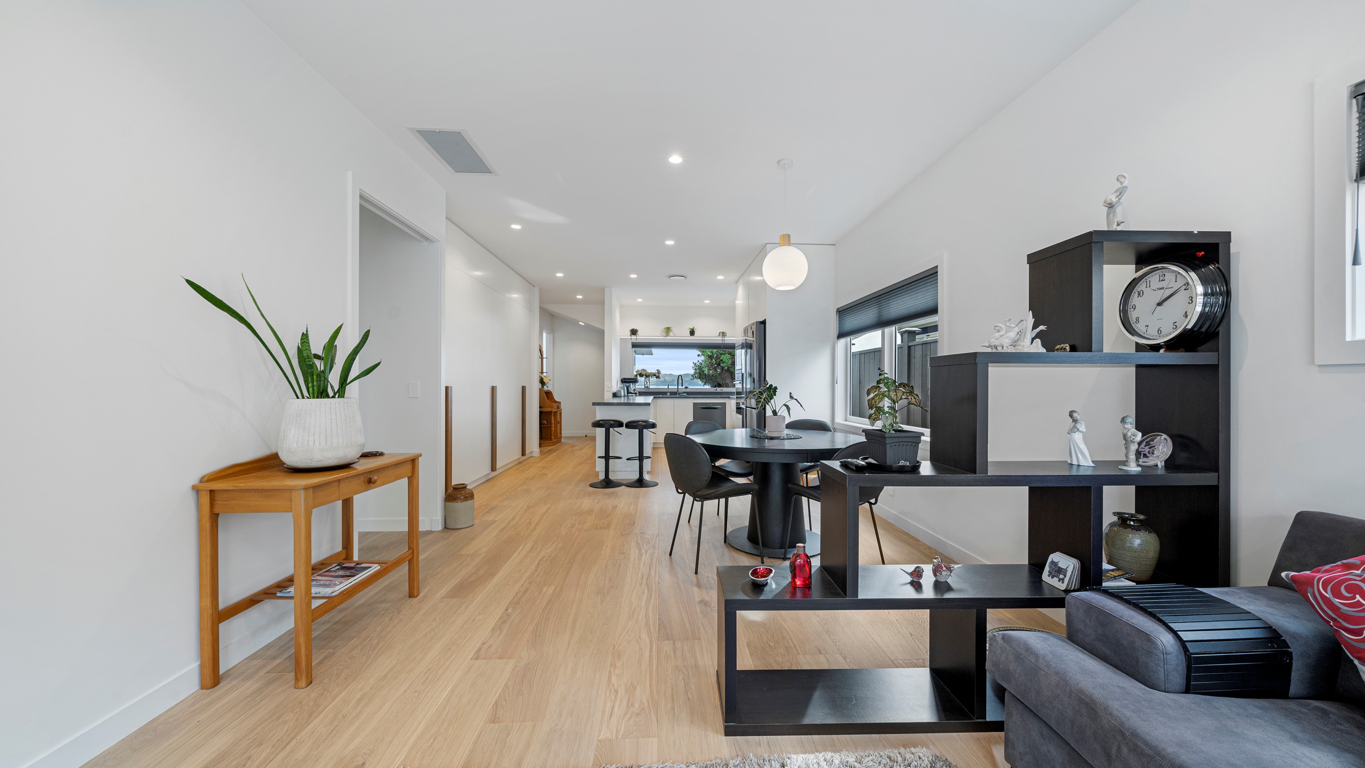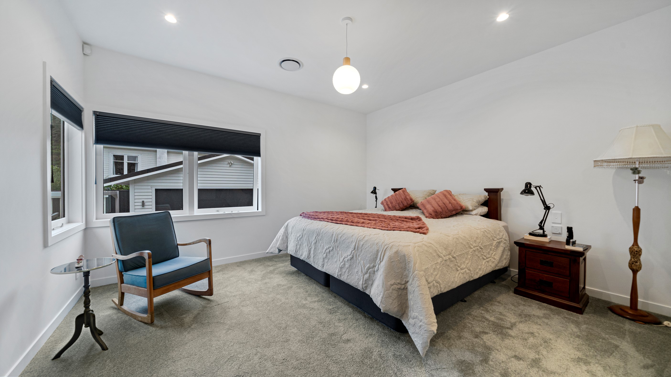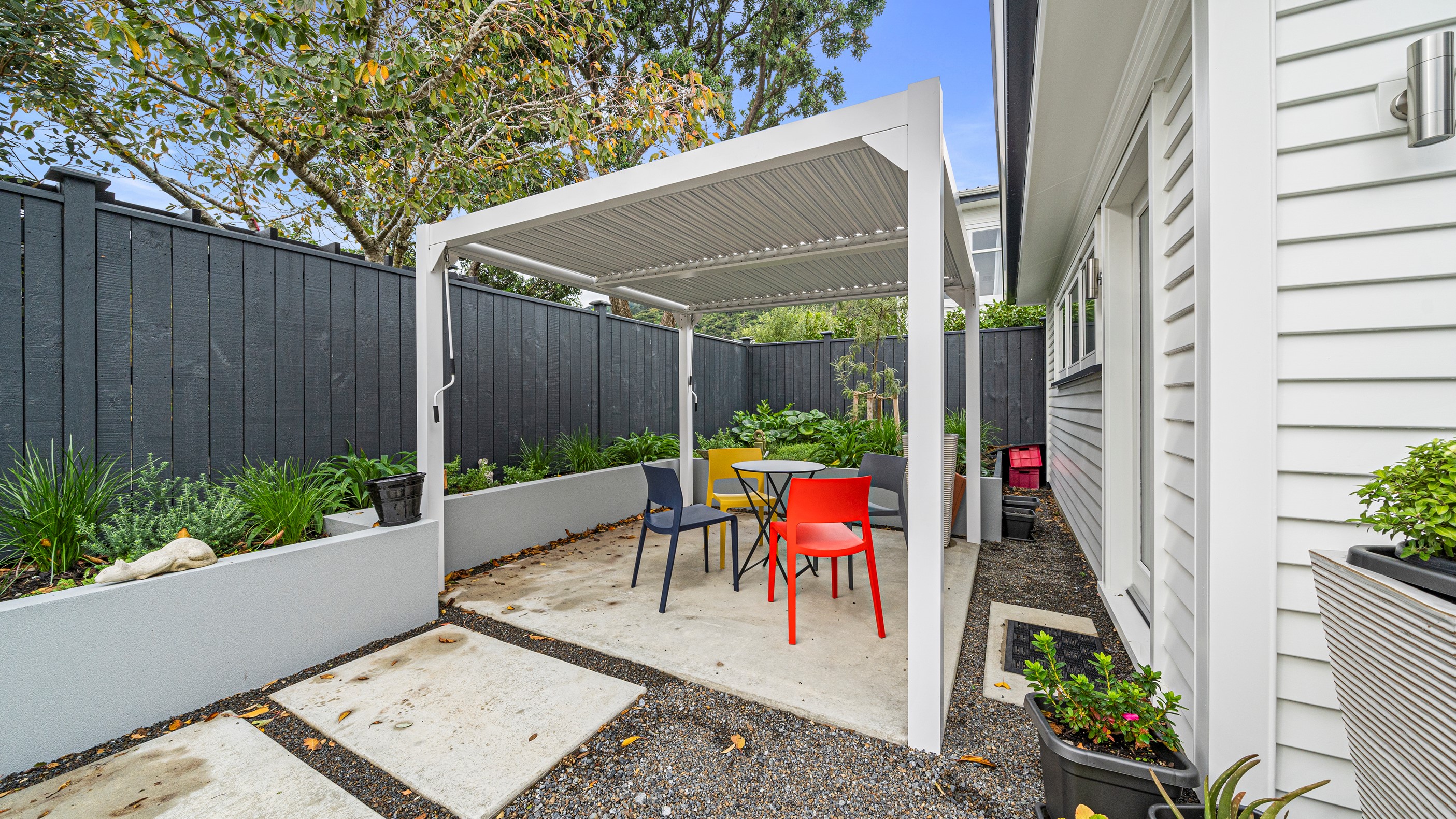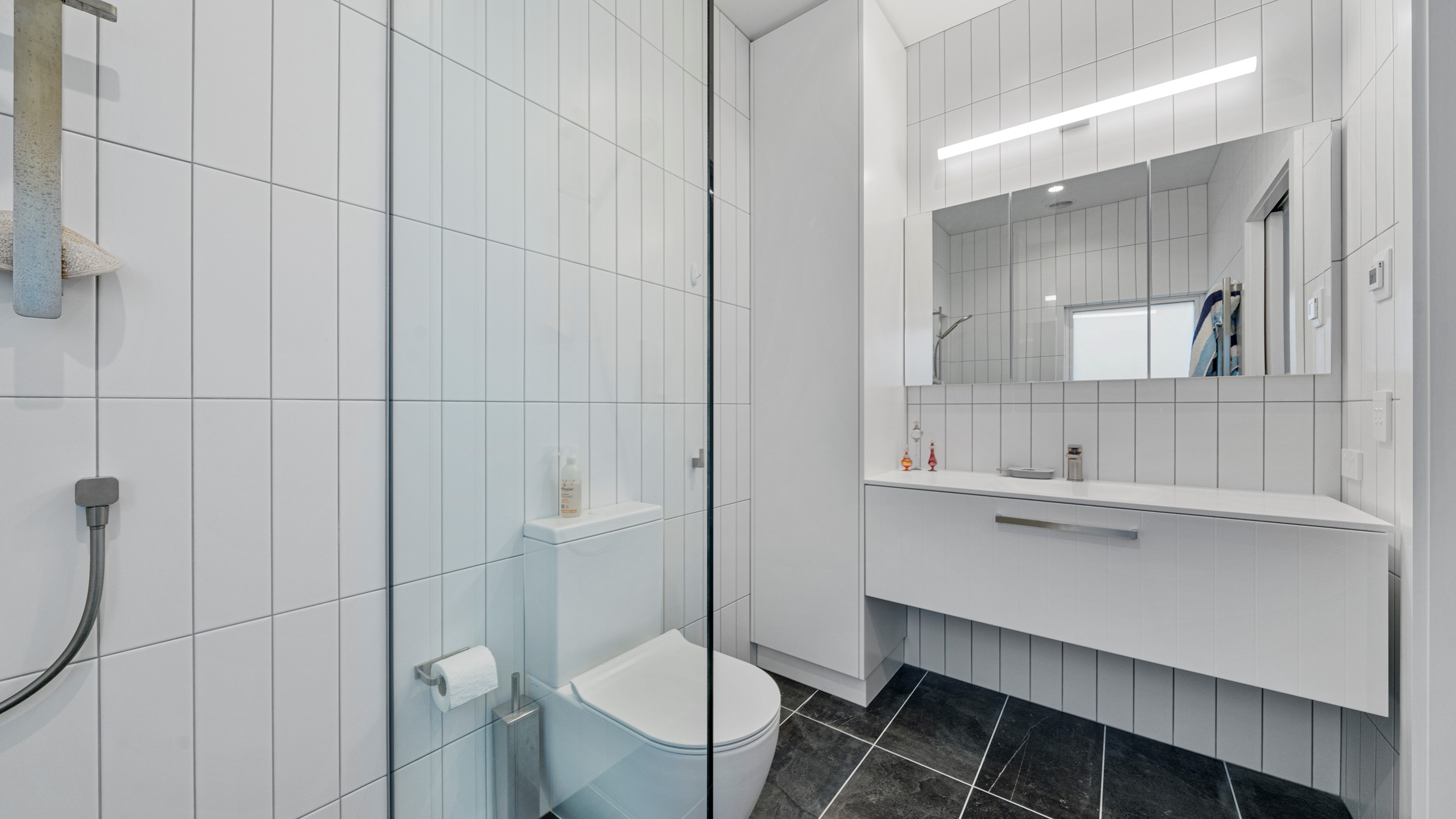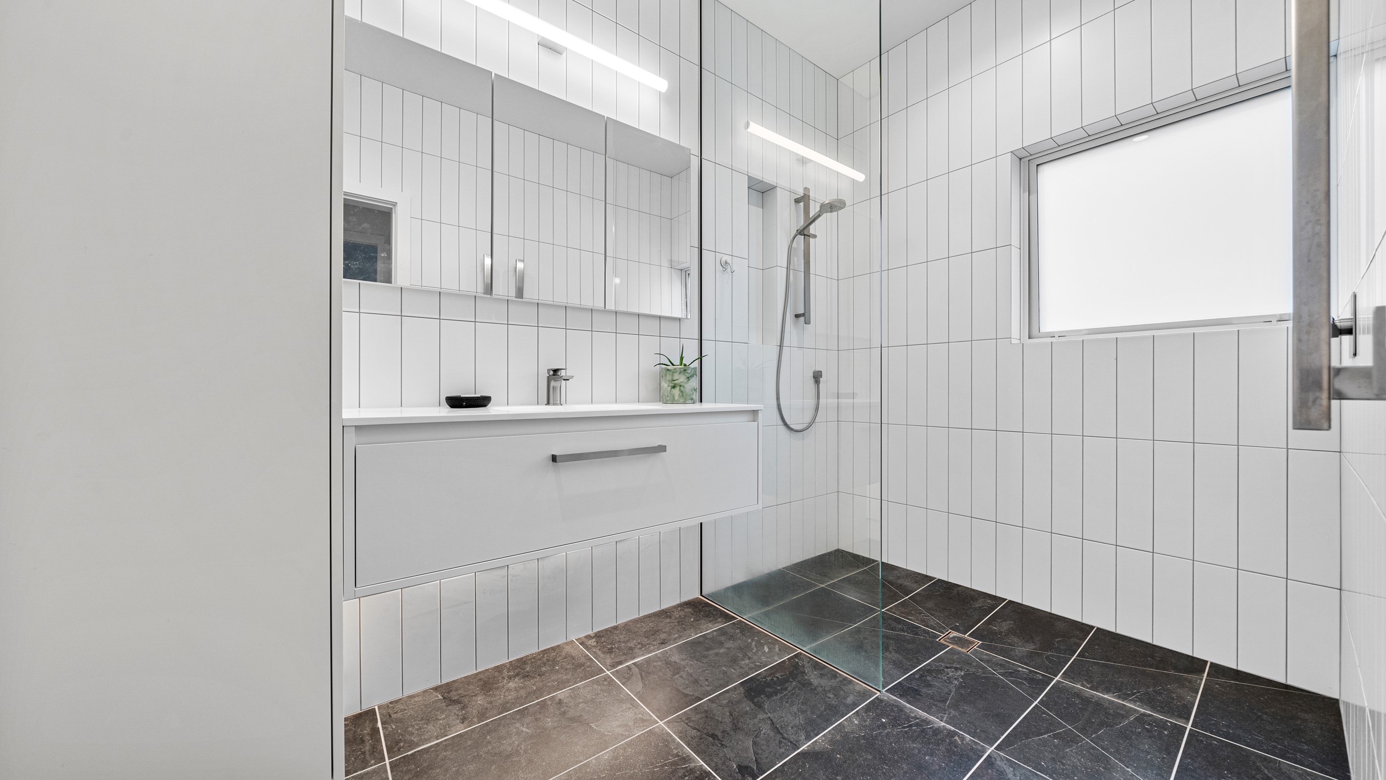 This charming beach bungalow was in serious need of a renovation from a skilled set of hands. It received both thanks to builders who managed the high-spec upgrade while retaining the home’s original vibe. The revamp brings the 188sqm house up to modern standards and has established comfortable living for decades to come. A rejigged layout, modern materials, a heating and cooling system, and above-code insulation make it a fantastic place to live – no matter what the Wellington weather throws its way. The renovation involved new timber-framed walls, wall linings, skillion ceilings, skylights, a huge amount of joinery and a mammoth upgrade of the existing deck. Floorboards were taken up and, where possible, reused. New window joinery was installed and – in one case – a door, window and weatherboards were replaced with sliders. Views over Wellington Harbour are on show through glazing along the front of the house. Light is invited in through skylights and new windows, giving the two-bedroom home a completely different feel. You’ll also find a slick new monochrome galley kitchen, two freshly updated and fully tiled bathrooms, landscaping from front to back, and a new garage.